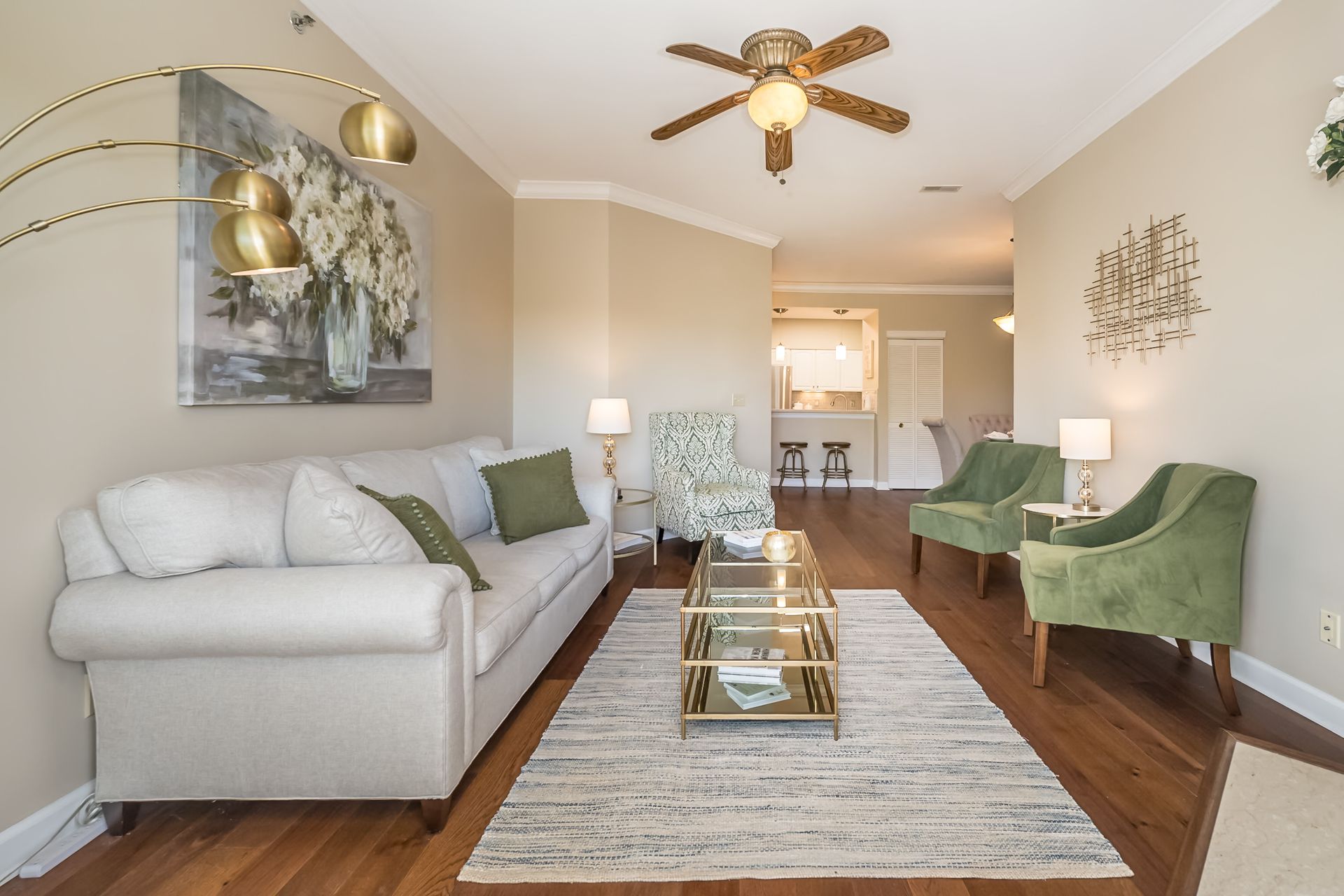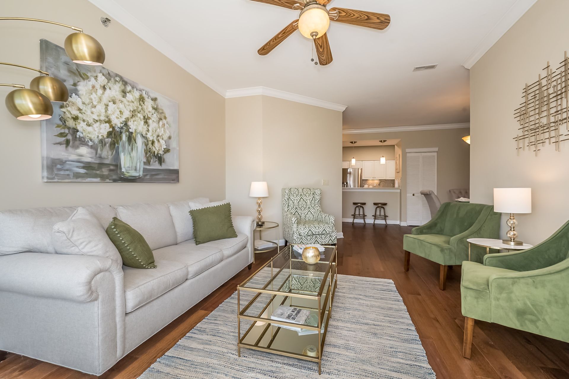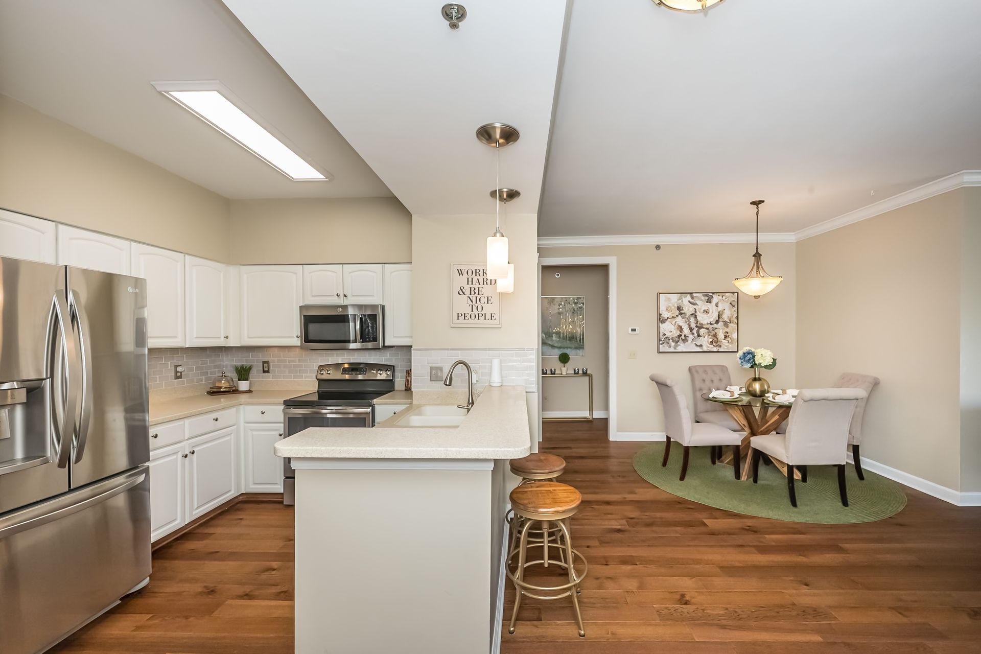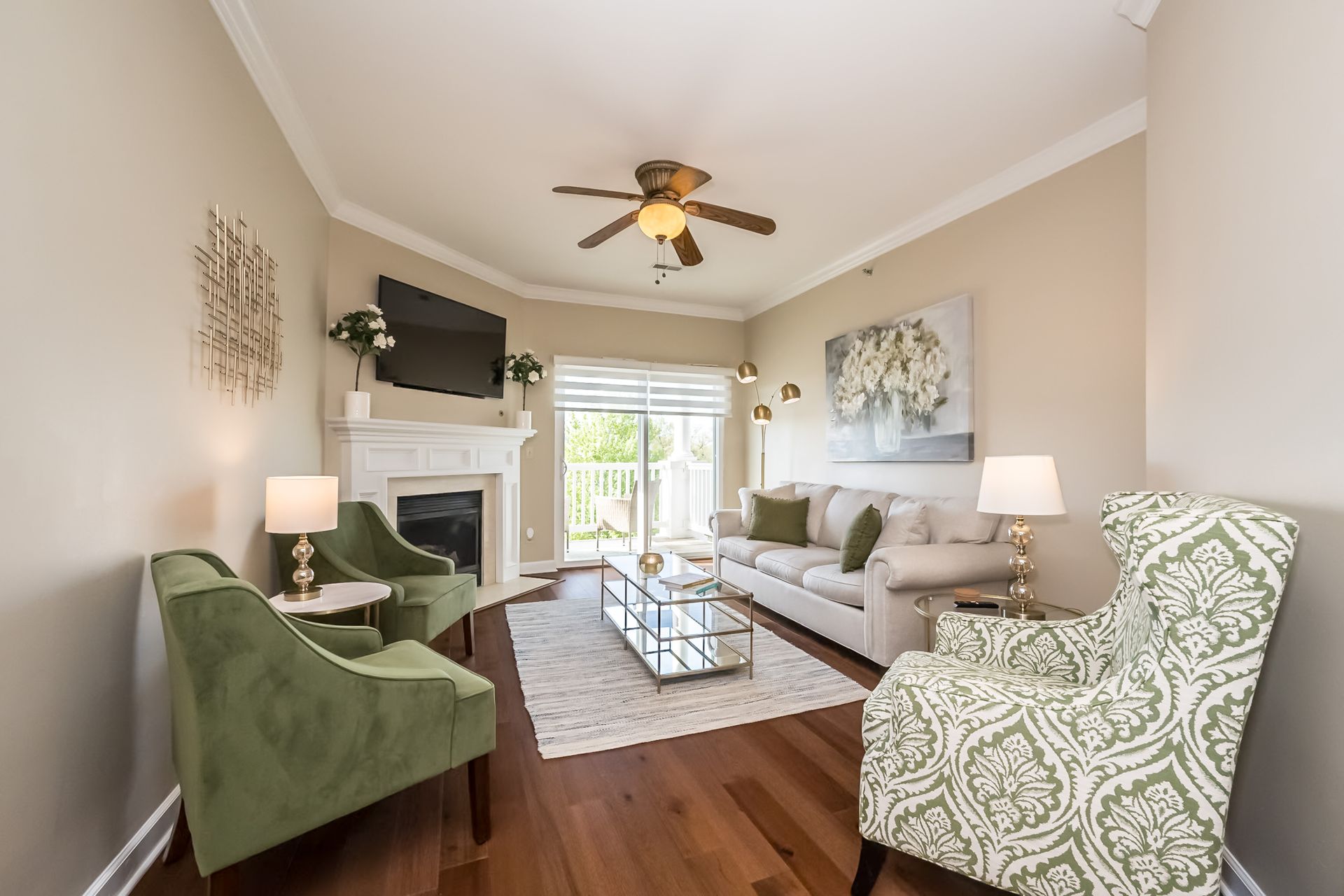 Great location, charming updates and meticulous maintained are just a few of the reasons that you don't want to miss this one! Located in the popular, gate Mill Crossing...hop on the elevator and head up to this bright and open top floor, two bedroom, two bath unit! Gorgeous, newer hardwood floors flow throughout. The updated kitchen boasts stainless steel appliances, solid surface counters, subway tile backsplash and opens to the living room with a cozy gas fireplace. The covered deck overlooks the pool and is the ideal retreat to start and end your day! Enjoy the private primary en suite with separate shower, tub and custom walk-in closet. There is an abundance of in-unit storage as well as the main floor in-unit laundry. Delight in the convenience of the SECURED UNDERGROUND GARAGE with a designated spot just off the elevator and an additional storage unit. The beautiful, spacious clubhouse, fitness room and community pool are the icing on the cake of this move-in beauty!
