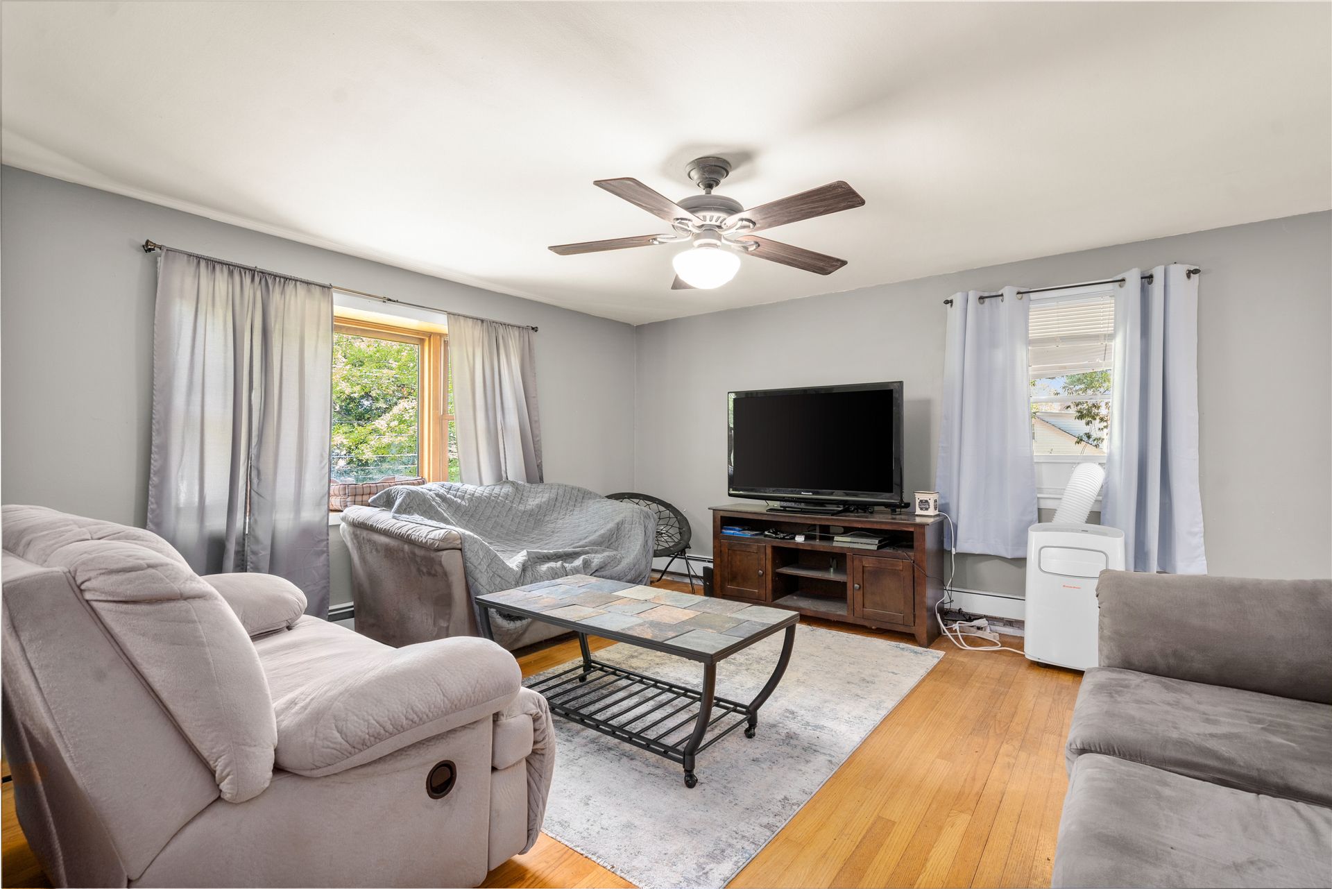 Contemporary pizzazz in this 3Br. tri-level home with fenced-in backyard is sure to please! This home is nicely updated. Kitchen includes all appliances with newer cabinetry opens to the dining and living room to engage with family and friends while you cook and entertain. Step outside from the dining room into a large, serene fenced-in backyard. The weather is perfect right now for gardening, relaxing, or having friends and family gather for a BBQ. The lower level is where the action takes place for the guys who want a getaway space with its own half bath with newer vanity and attractively updated. And when the day ends and everyone is tired from all the day's activities, the three nicely sized bedrooms all with hardwood flooring on the second level, is nicely set apart from the other living spaces for quiet sleep. Full bath on second level also recently updated with new vanity, sink and lighting. Beautiful decor throughout and move-in ready! Converted to gas heat