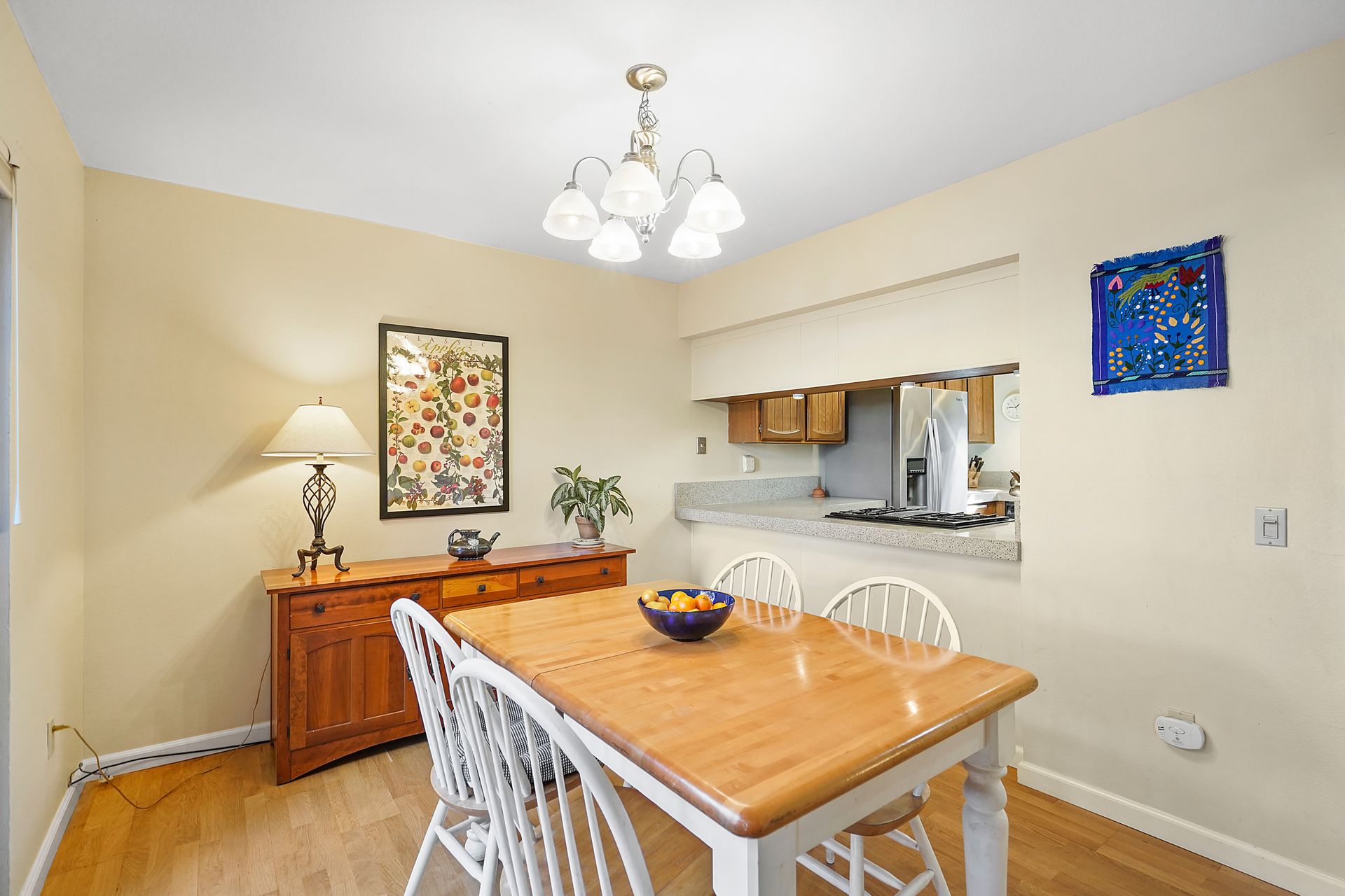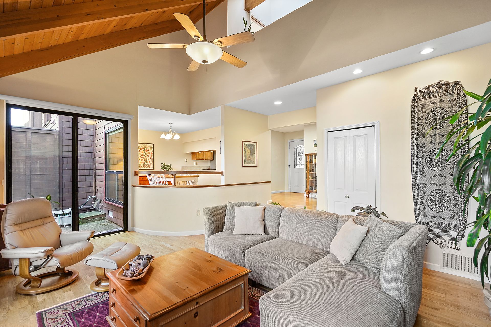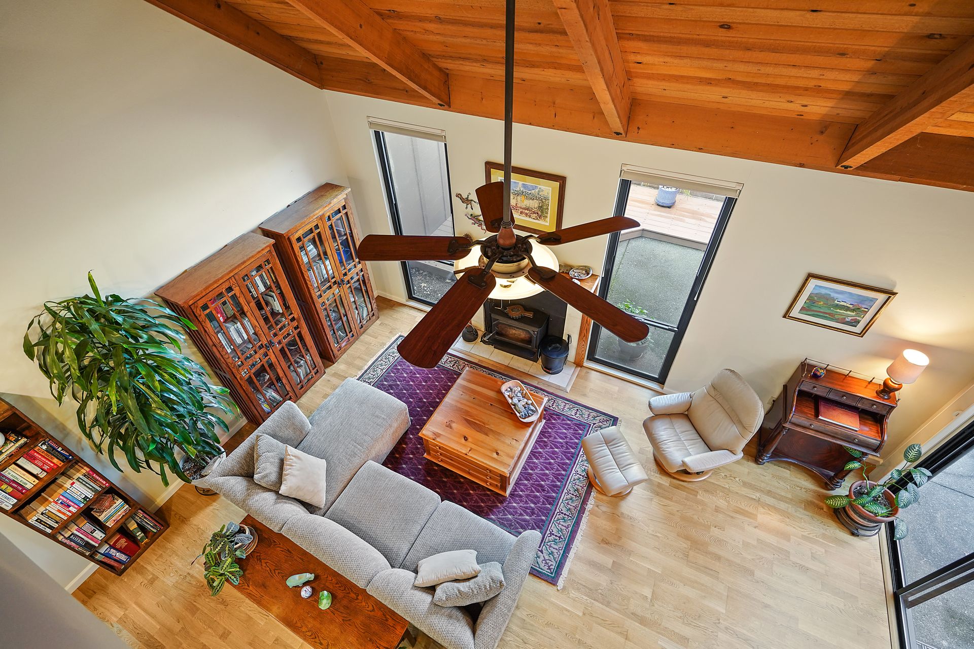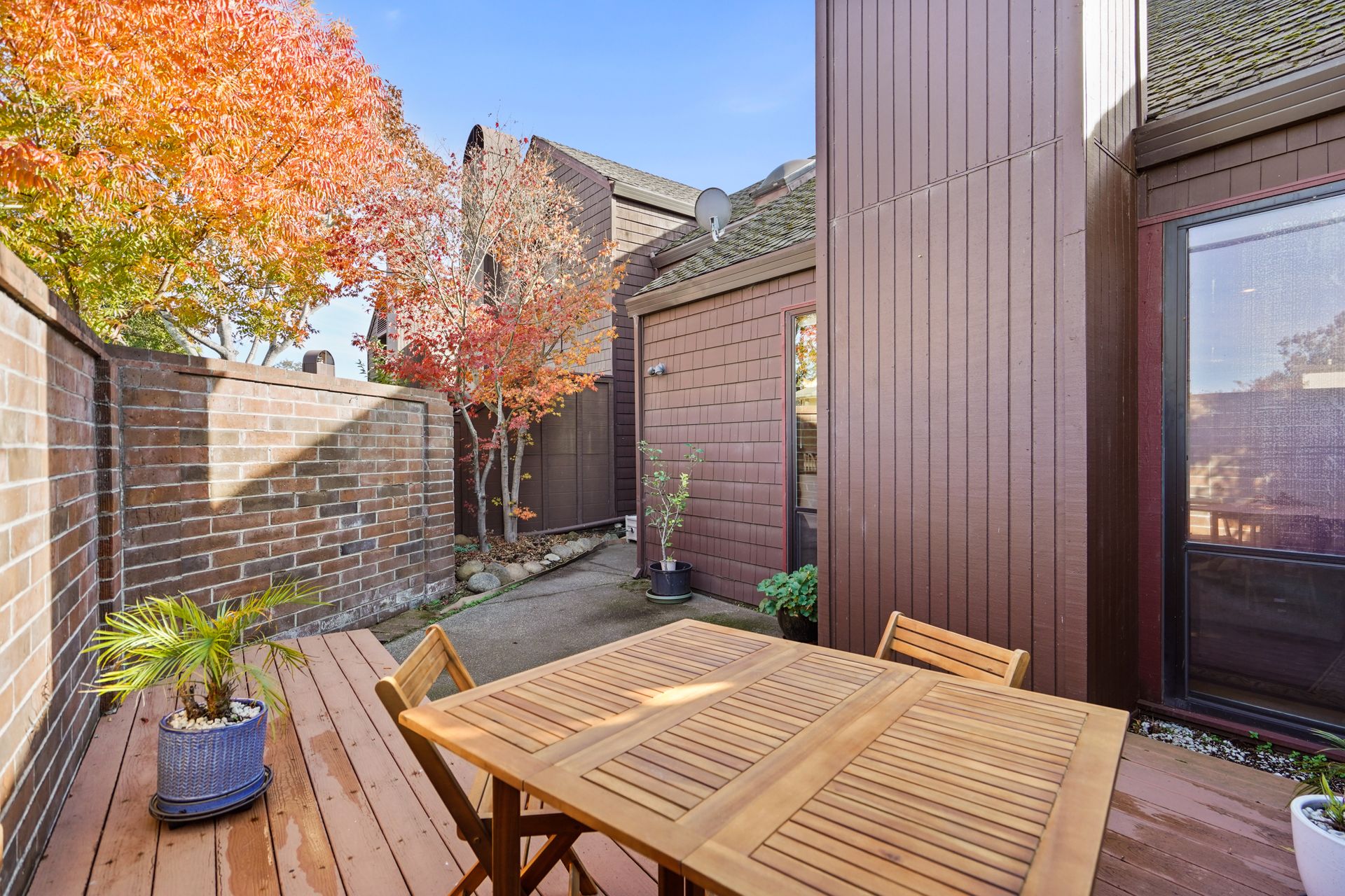Live in the coveted Pacific North complex, nestled in Santa Rosa's McDonald/Junior College neighborhood, in the center of town and convenient to amenities. This two bedroom, two bath home is architecturally interesting: the living room has dramatic vaulted ceilings accented in wood; the formal dining area has a gracefully curved balcony rail, open to the kitchen and overlooking the step-down living room; and the spacious upstairs bedroom suite has a pitched wood ceiling and a private balcony. Beautiful natural hardwood floors can be found in the living room, dining room, bedrooms and kitchen. An indoor laundry, Hunter Douglas window shades, a two-car garage, a private backyard with deck and central heat and air complete this comfortable home. The complex features tennis and pickleball courts and a swimming pool with a spa.