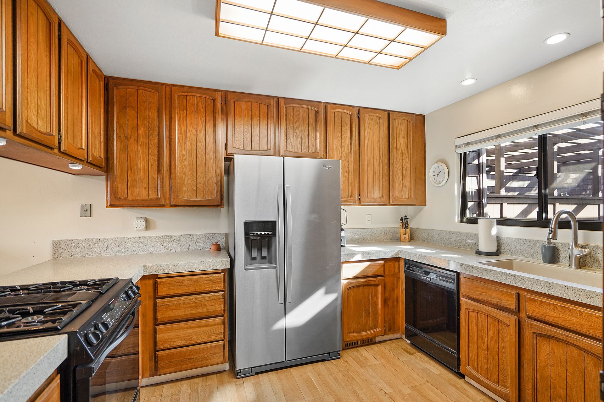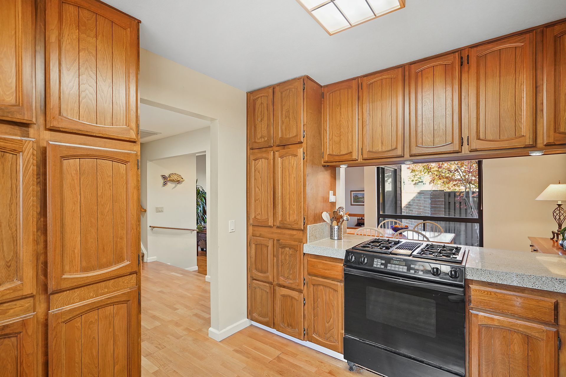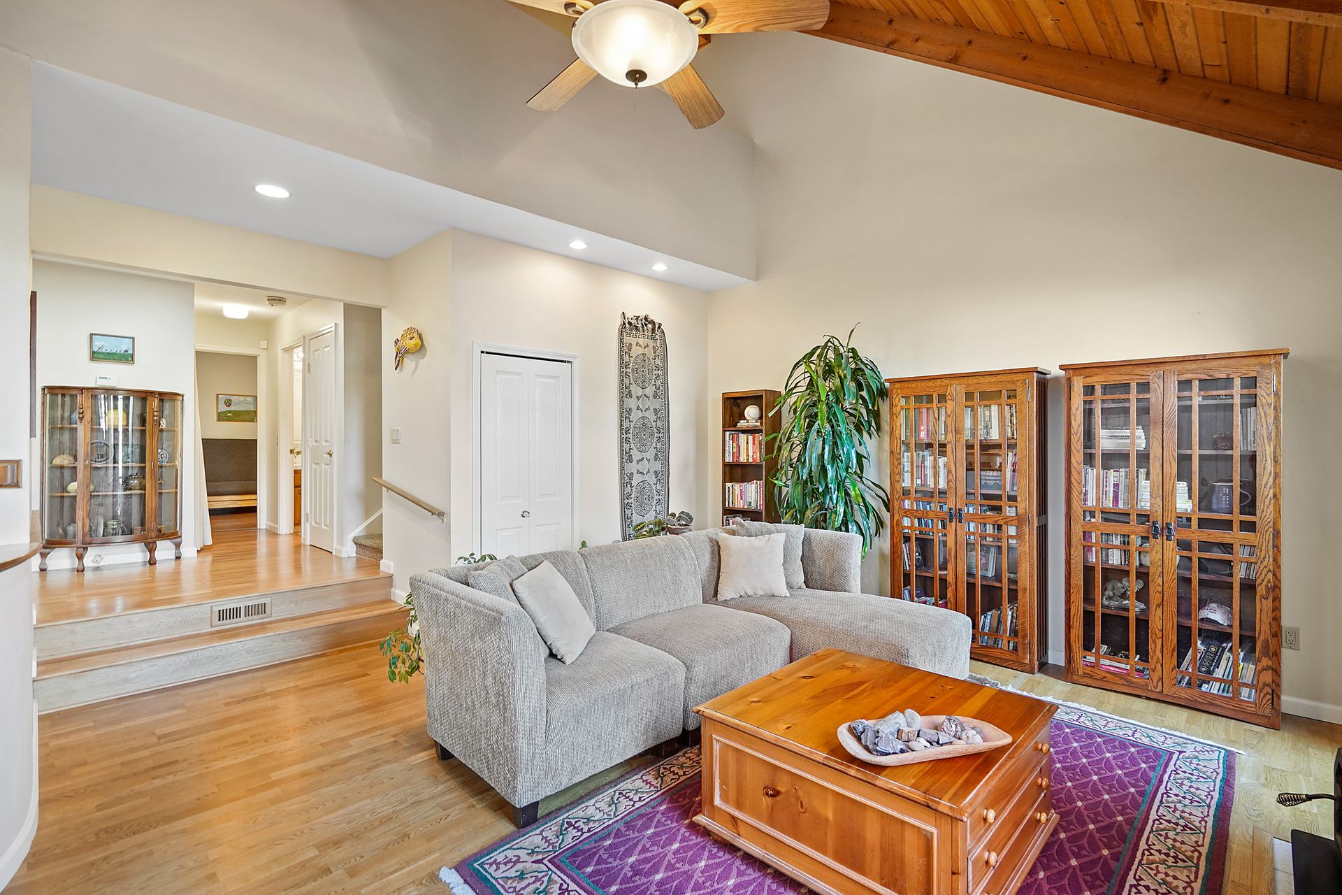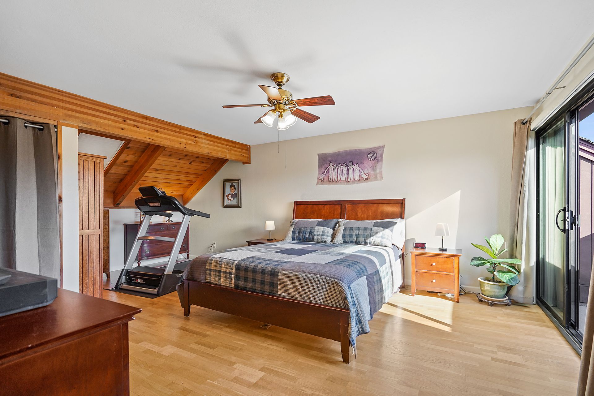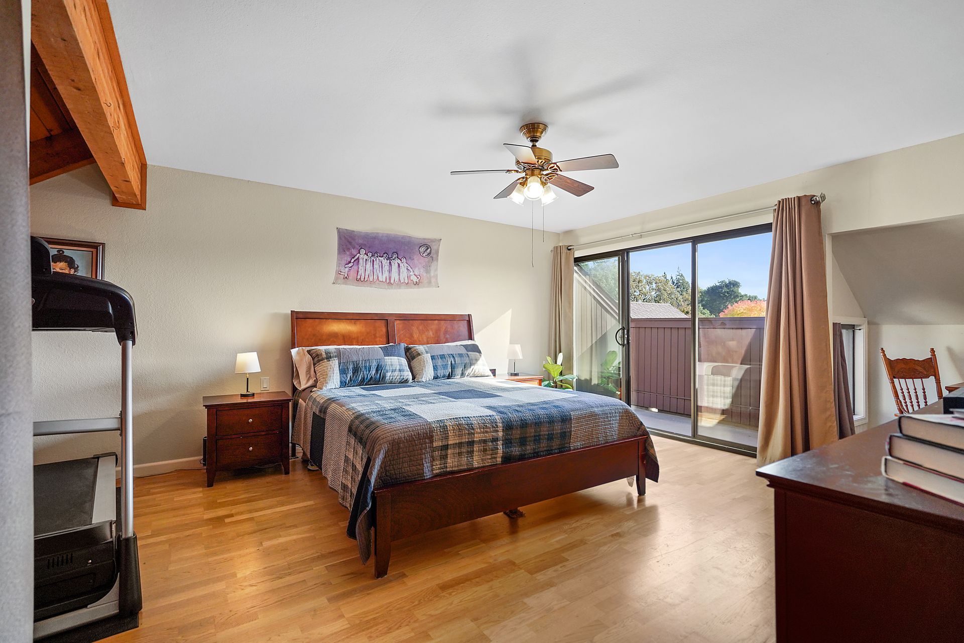 Live in the coveted Pacific North complex, nestled in Santa Rosa's McDonald/Junior College neighborhood, in the center of town and convenient to amenities. This two bedroom, two bath home is architecturally interesting: the living room has dramatic vaulted ceilings accented in wood; the formal dining area has a gracefully curved balcony rail, open to the kitchen and overlooking the step-down living room; and the spacious upstairs bedroom suite has a pitched wood ceiling and a private balcony. Beautiful natural hardwood floors can be found in the living room, dining room, bedrooms and kitchen. An indoor laundry, Hunter Douglas window shades, a two-car garage, a private backyard with deck and central heat and air complete this comfortable home. The complex features tennis and pickleball courts and a swimming pool with a spa.