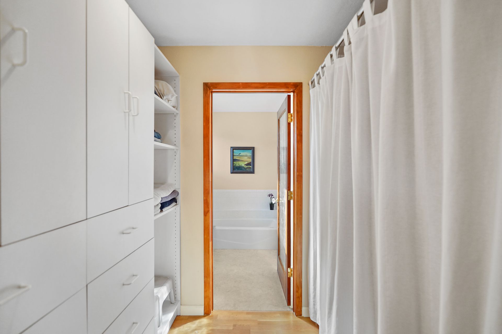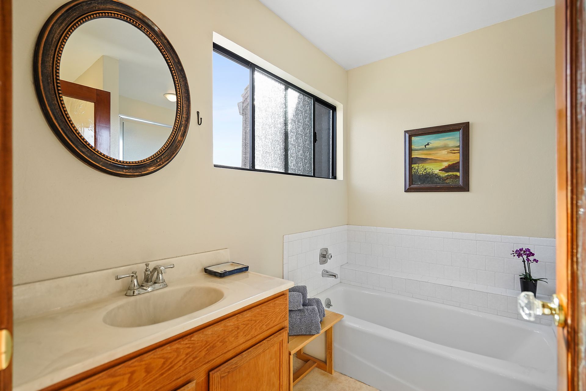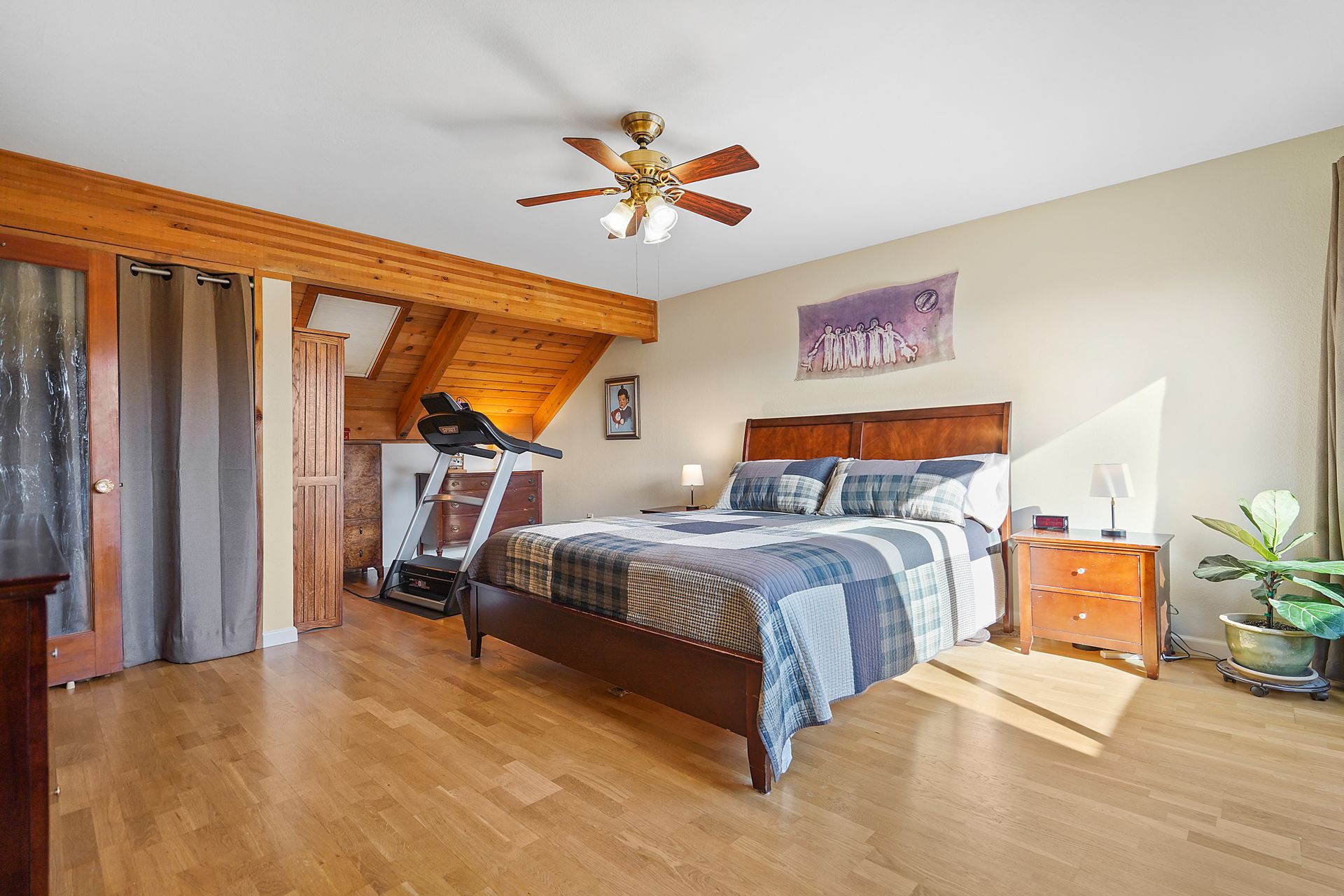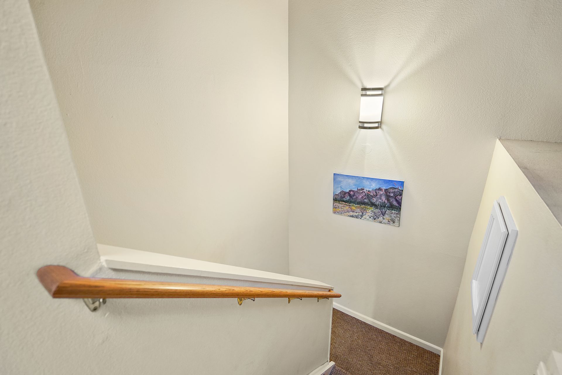 Live in the coveted Pacific North complex, nestled in Santa Rosa's McDonald/Junior College neighborhood, in the center of town and convenient to amenities. This two bedroom, two bath home is architecturally interesting: the living room has dramatic vaulted ceilings accented in wood; the formal dining area has a gracefully curved balcony rail, open to the kitchen and overlooking the step-down living room; and the spacious upstairs bedroom suite has a pitched wood ceiling and a private balcony. Beautiful natural hardwood floors can be found in the living room, dining room, bedrooms and kitchen. An indoor laundry, Hunter Douglas window shades, a two-car garage, a private backyard with deck and central heat and air complete this comfortable home. The complex features tennis and pickleball courts and a swimming pool with a spa.