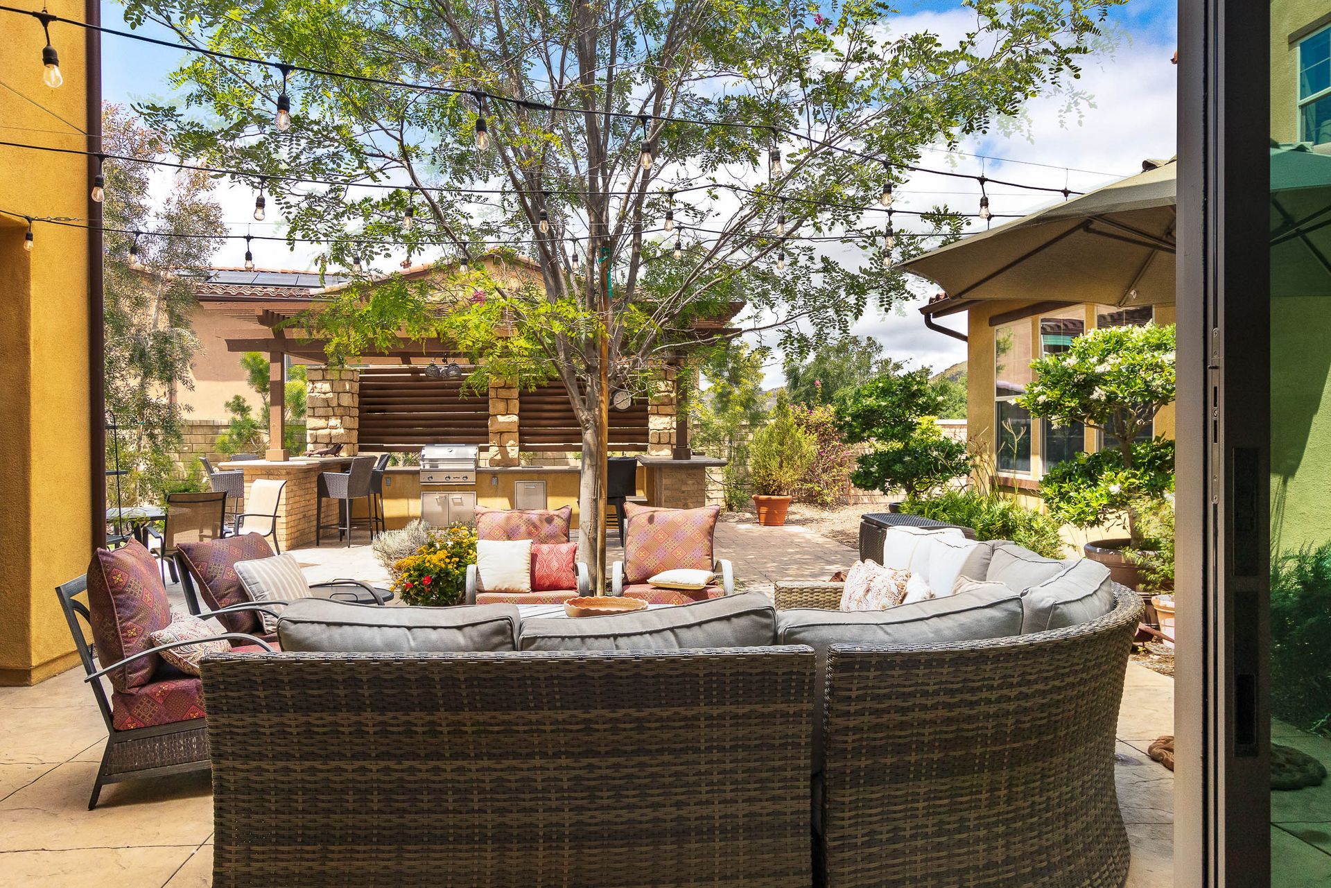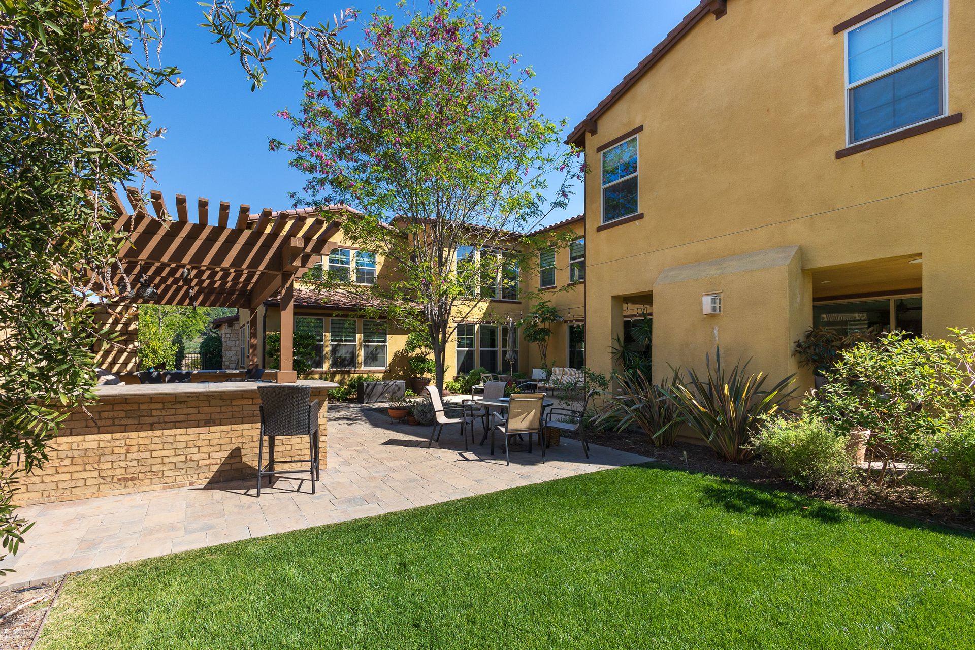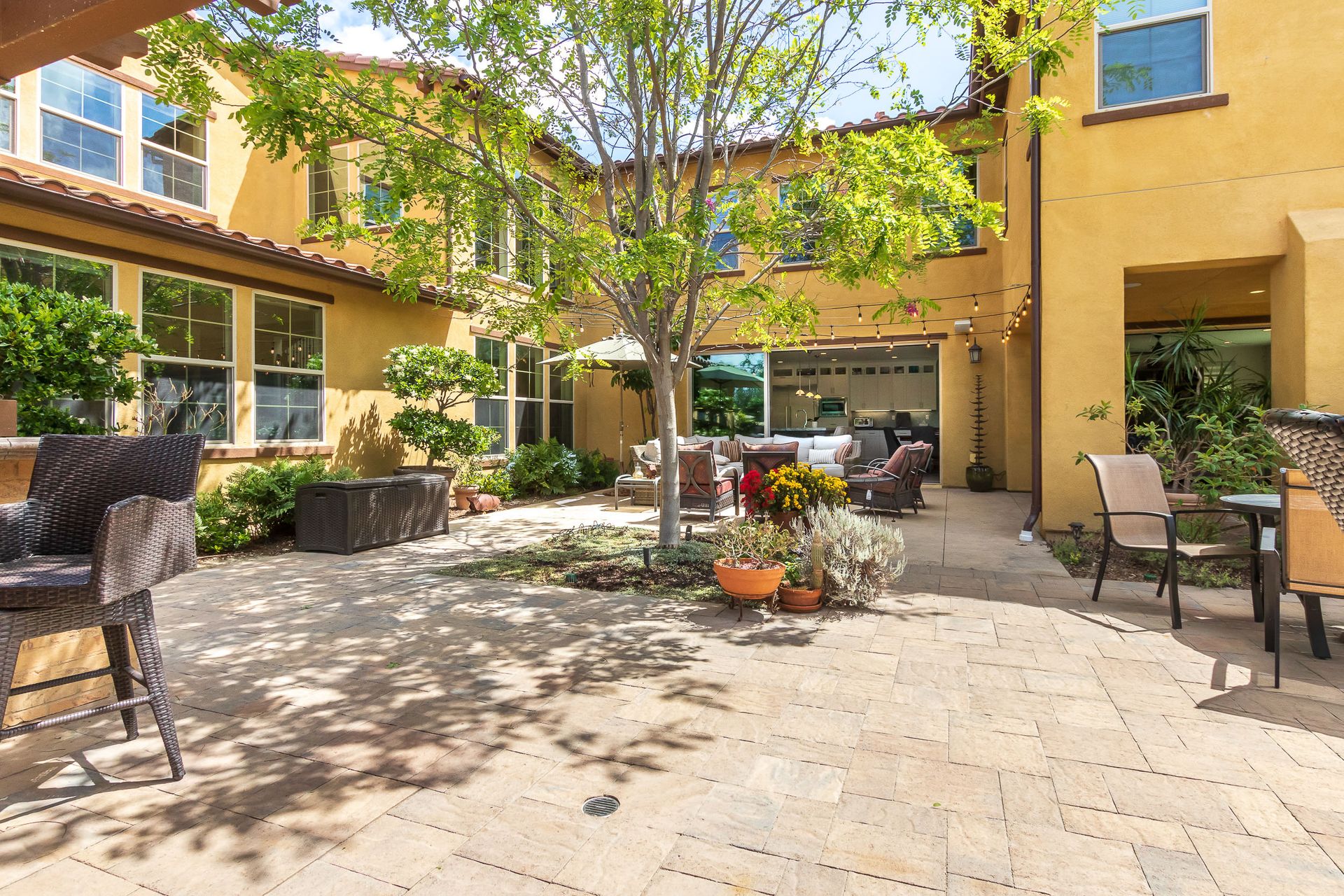 Exclusive Montellano Estate situated in a private guard gated community, this Mediterranean masterpiece boasts impeccable craftsmanship, elegantly designed indoor-outdoor living spaces, luxurious amenities and a voluminous interior that is warm, inviting and comfortable. The centerpiece of the main level is the incredible great room with two sets of stacked Panoramic doors opening to the outdoor California room and courtyard. Set on almost one-half acre, the professionally landscaped yard features an outdoor cooking center, raised planting beds, a large grassy area and fruit trees. Adjacent to the great room is an open-concept gourmet kitchen with nearly every high-end appliance you can imagine, plus an enormous center island and a breakfast bar. As if that wasn’t enough to impress, there is also an enormous walk-in pantry and a butler's area that connects to the formal dining room. A stylish study/office/den and a private ensuite downstairs bedroom complete the main level. Not to be outdone, the home's top level is also remarkable featuring a media room/gathering area and a grand owner's suite. Relax and unwind in the luxurious and serene bedroom with a lavish bath including a dramatic book-matched marble slab shower, a soaking tub, dual vanities and an enormous walk-in closet. Over $460,000 in upgrades include pre-wired for home automation, an alarm system wired for cameras, central vacuum, home theater speakers, an intercom, a 24-panel Photovoltaic Solar Electric System and a three-car garage. Extensive community amenities and a convenient Thousand Oaks location distinguish this stunning residence!
