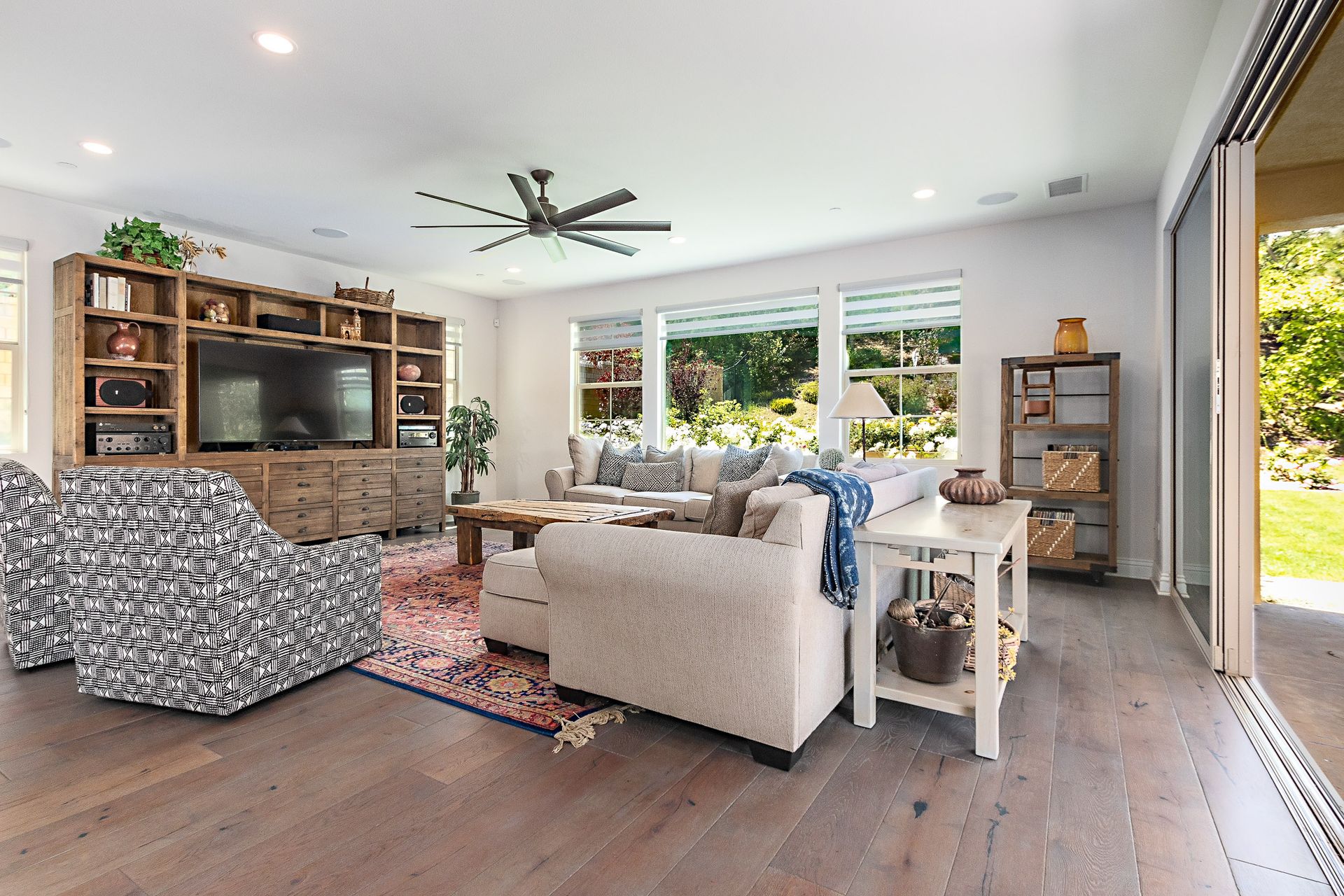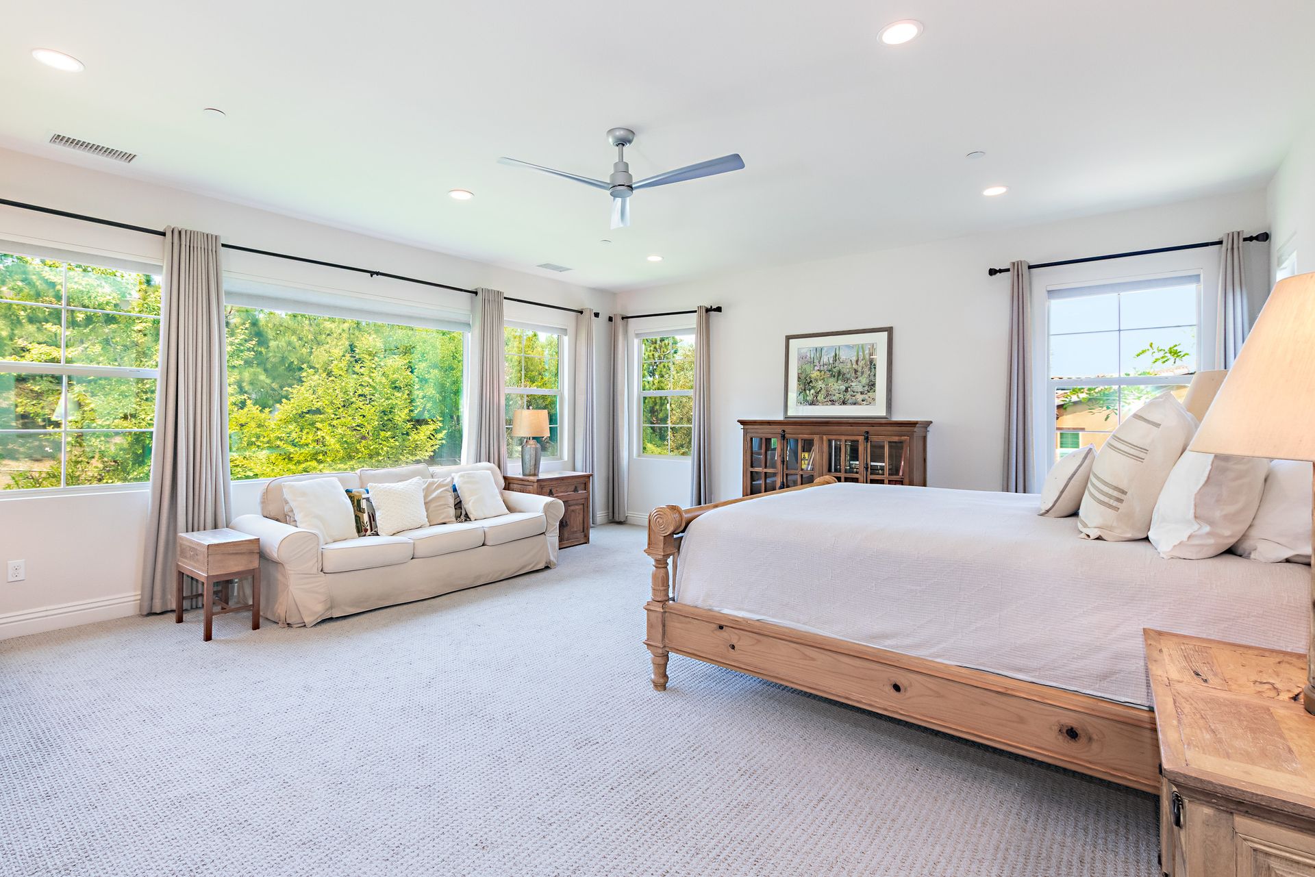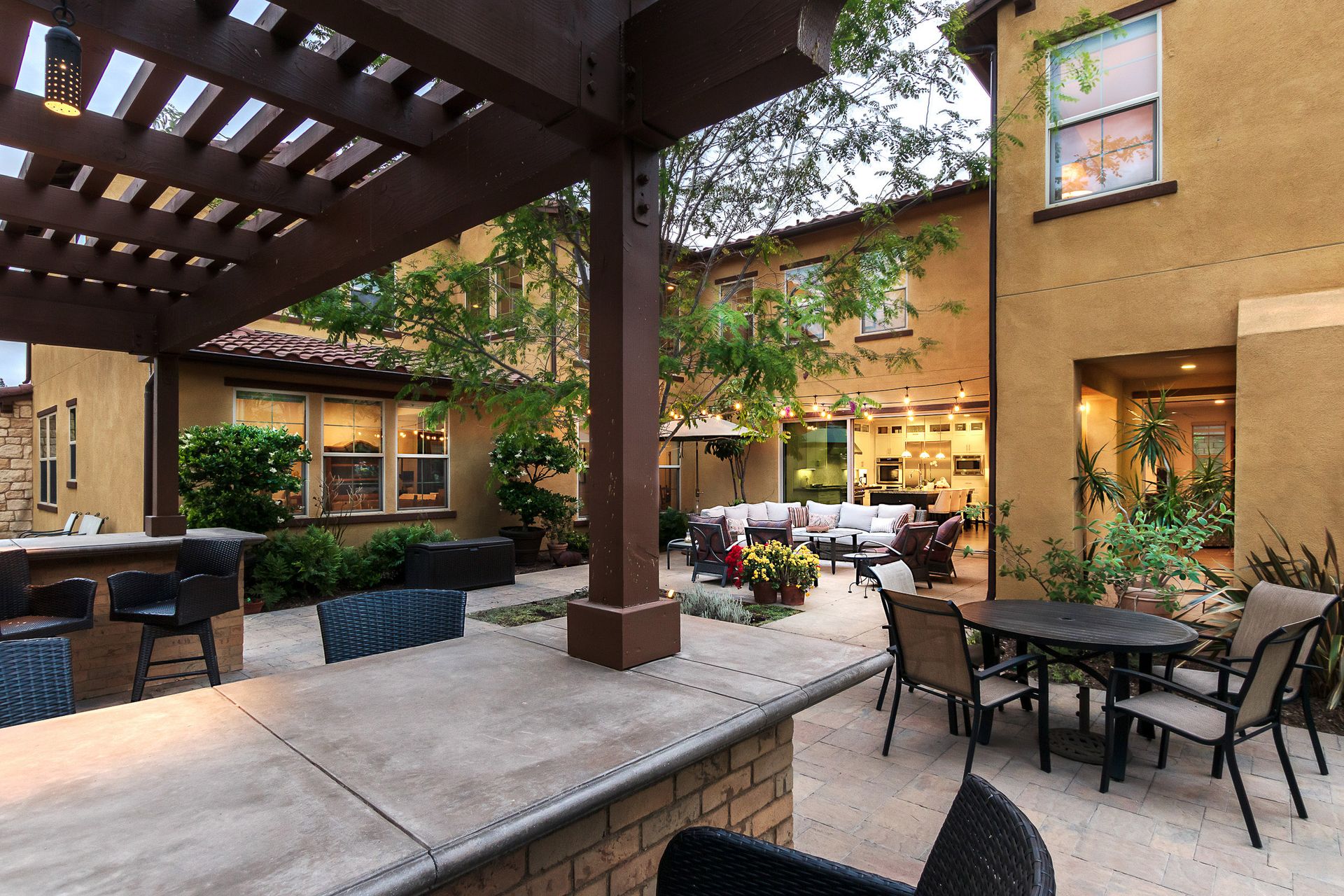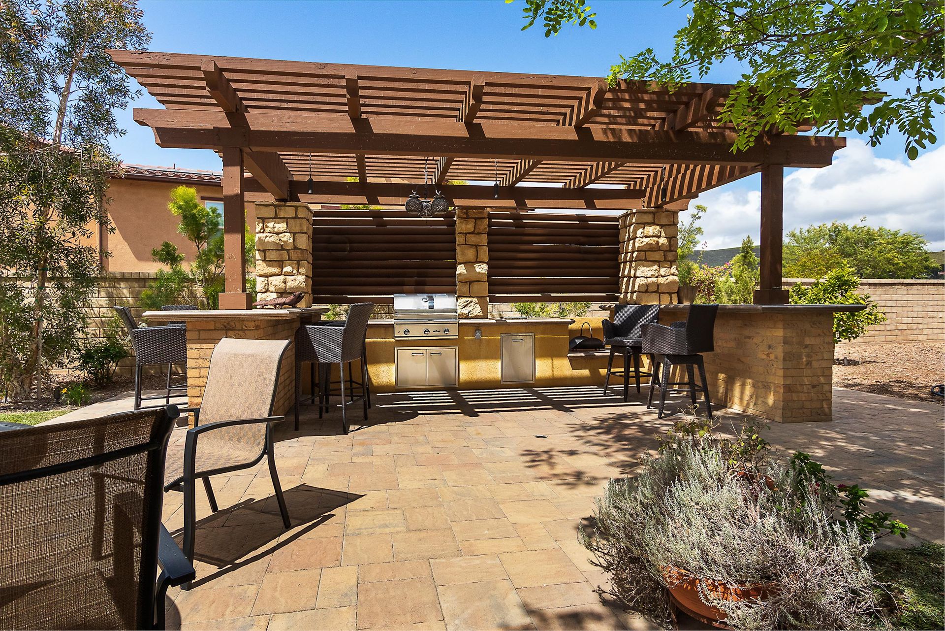 Exclusive Montellano Estate situated in a private guard gated community, this Mediterranean masterpiece boasts impeccable craftsmanship, elegantly designed indoor-outdoor living spaces, luxurious amenities and a voluminous interior that is warm, inviting and comfortable. The centerpiece of the main level is the incredible great room with two sets of stacked Panoramic doors opening to the outdoor California room and courtyard. Set on almost one-half acre, the professionally landscaped yard features an outdoor cooking center, raised planting beds, a large grassy area and fruit trees. Adjacent to the great room is an open-concept gourmet kitchen with nearly every high-end appliance you can imagine, plus an enormous center island and a breakfast bar. As if that wasn’t enough to impress, there is also an enormous walk-in pantry and a butler's area that connects to the formal dining room. A stylish study/office/den and a private ensuite downstairs bedroom complete the main level. Not to be outdone, the home's top level is also remarkable featuring a media room/gathering area and a grand owner's suite. Relax and unwind in the luxurious and serene bedroom with a lavish bath including a dramatic book-matched marble slab shower, a soaking tub, dual vanities and an enormous walk-in closet. Over $460,000 in upgrades include pre-wired for home automation, an alarm system wired for cameras, central vacuum, home theater speakers, an intercom, a 24-panel Photovoltaic Solar Electric System and a three-car garage. Extensive community amenities and a convenient Thousand Oaks location distinguish this stunning residence!