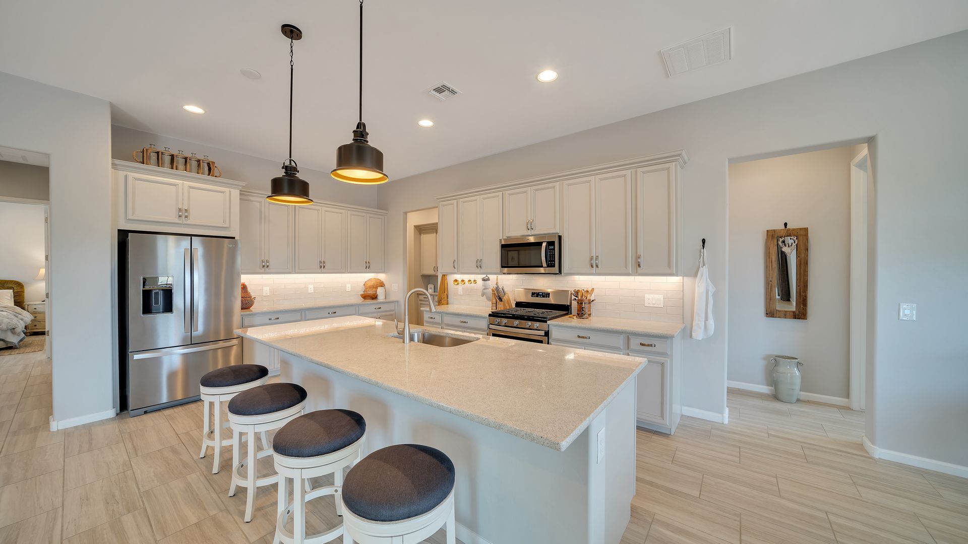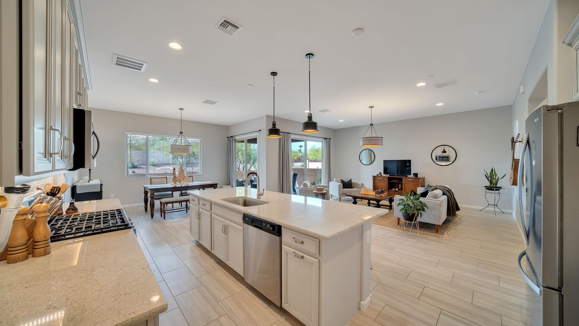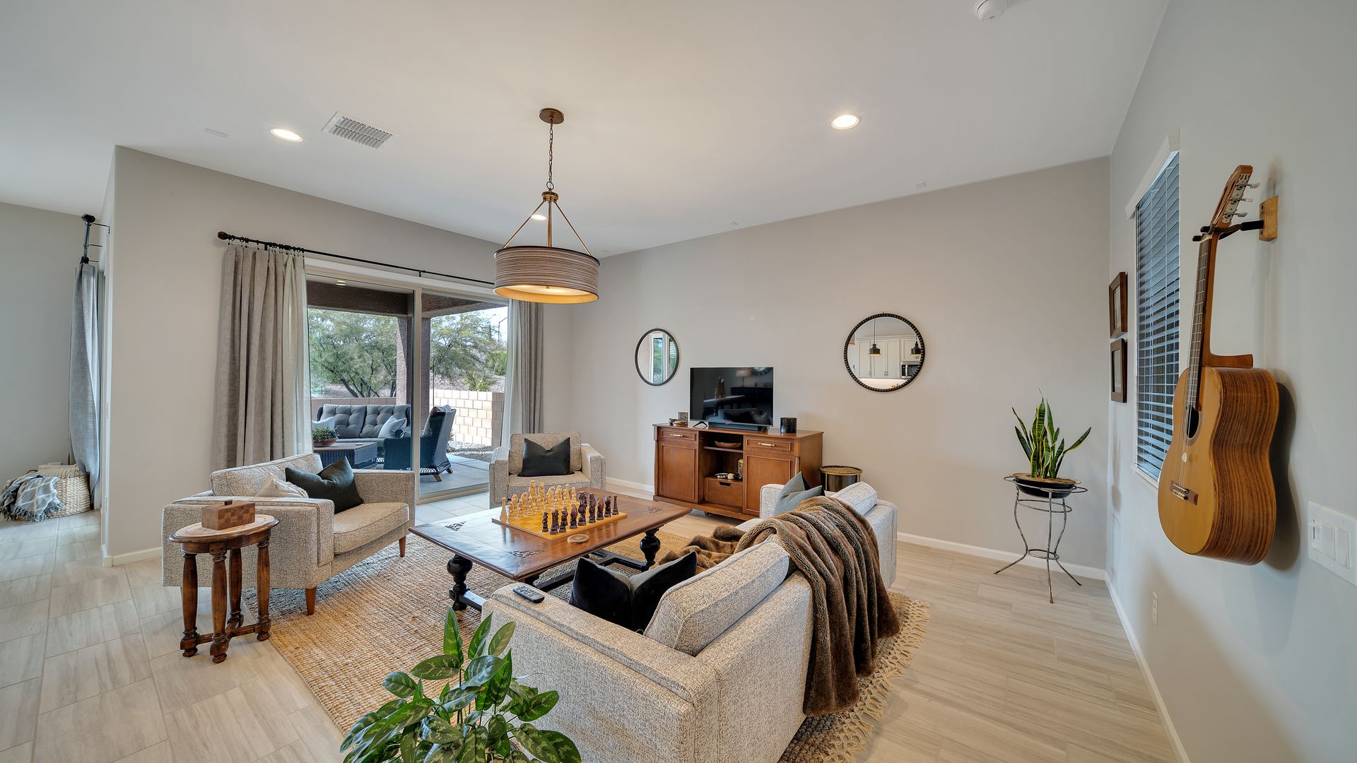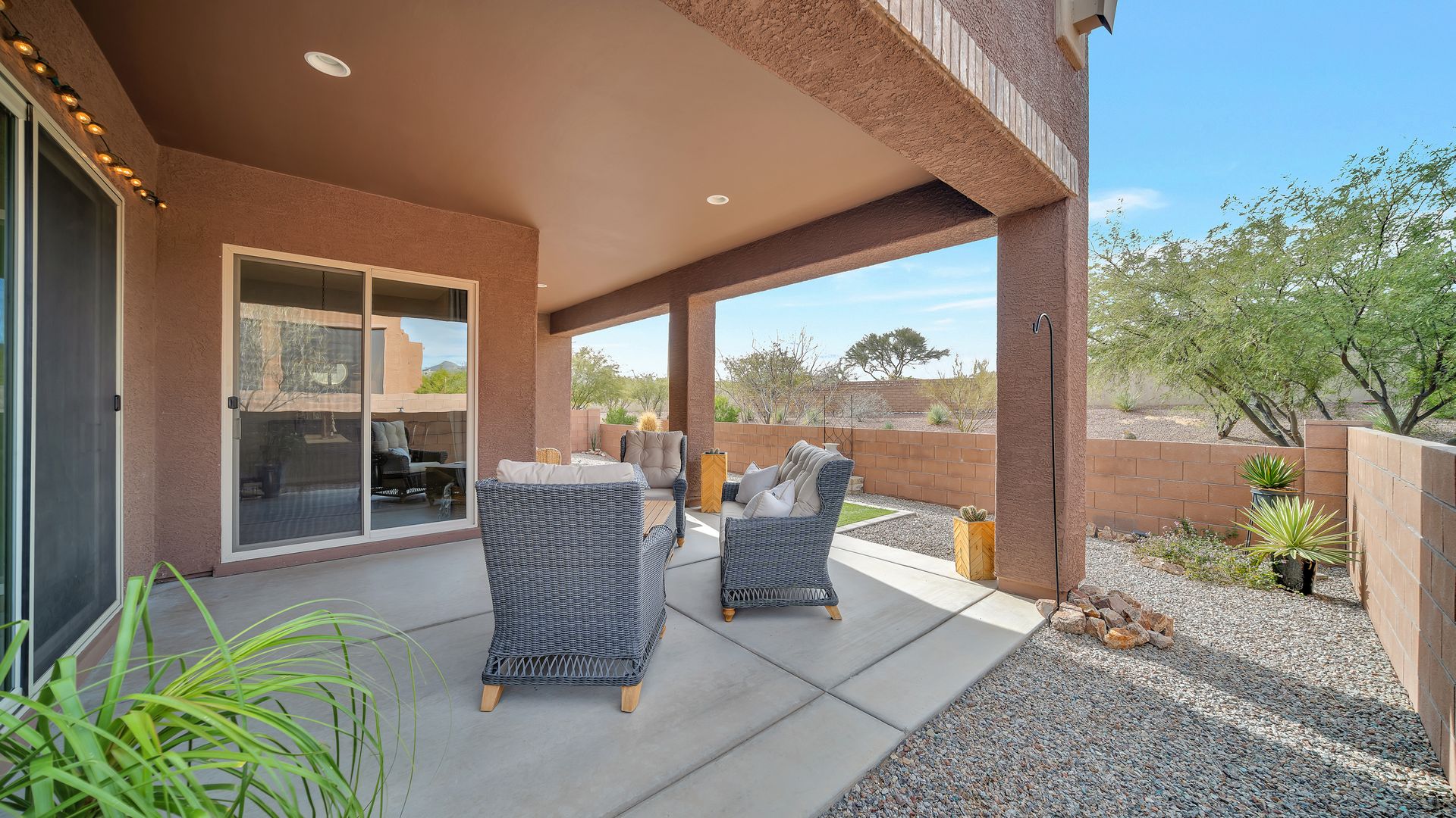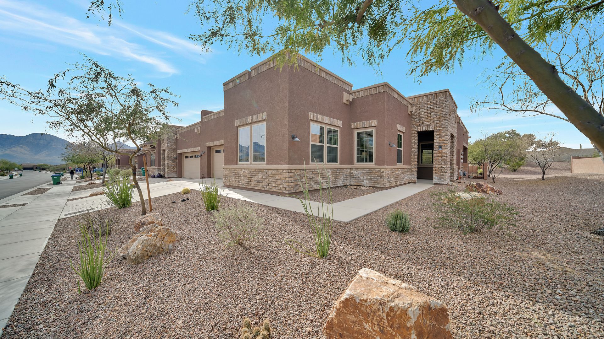 Welcome to Oro Valley/Rancho Vistoso living as it was designed to be enjoyed. This gated enclave of Ridgeview at Vistoso Trails offers Luxury End Unit Townhome elegance. With two bedrooms, two bathrooms, and approximately 2,113 square-feet of livable space, this home features a split bedroom floor plan, Den/Office (glass French doors), Spacious ceilings, a Great room, and a Chef’s kitchen with granite counters, a Generous Island, Stunning backsplash, and Exquisite high-end 45-inch upper cabinets with crown molding. Relax in your low care backyard with majestic Catalina and Dove Mountain Views. Community amenities include a Club House, Spa/Pool, and Fire pit. This is HOME.