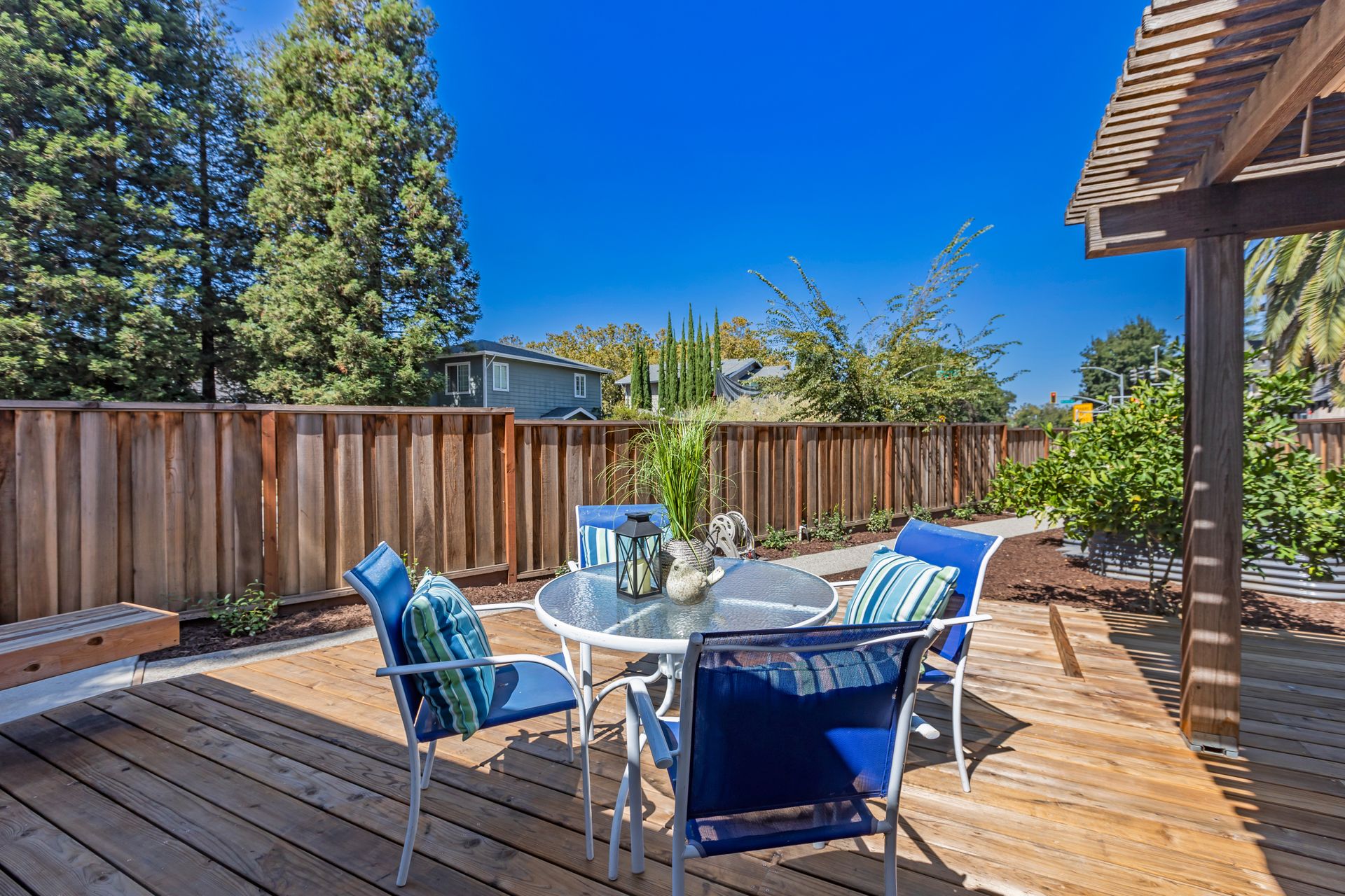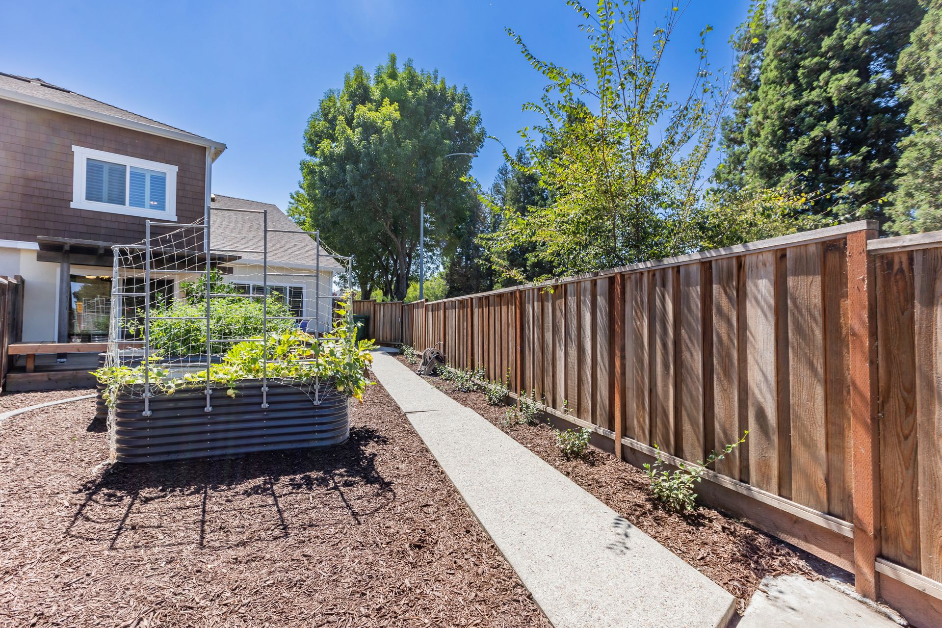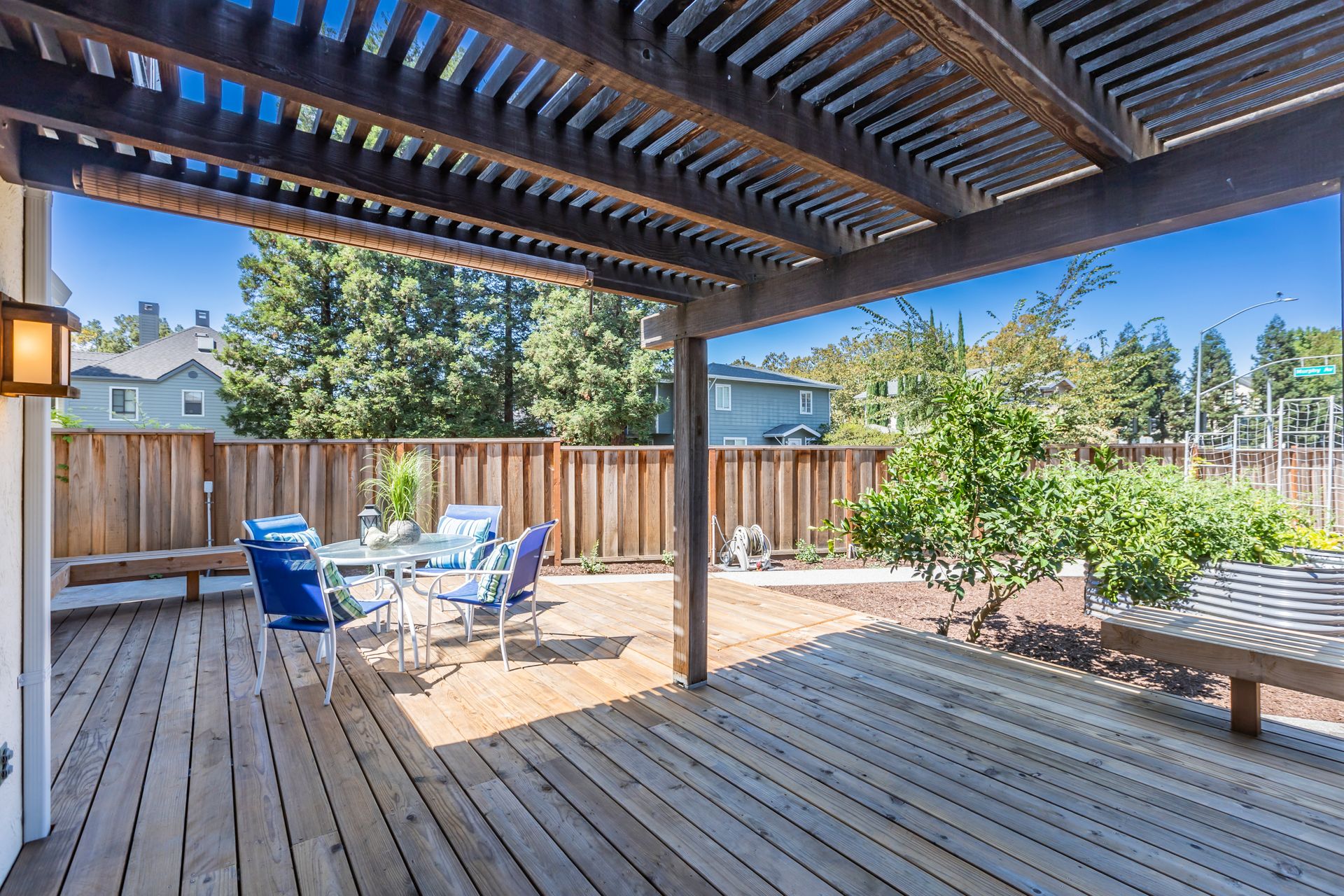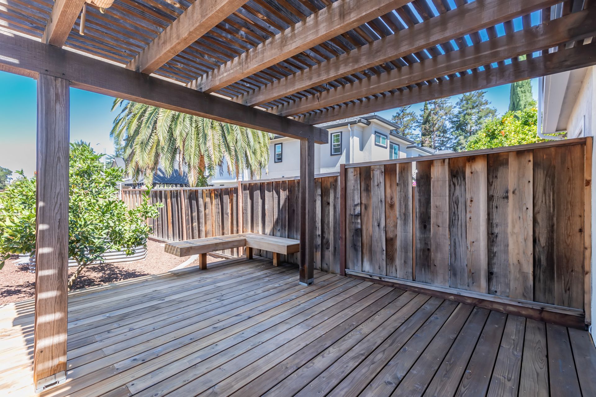 Outdoors, the property boasts a spacious deck, offering an inviting space for outdoor enjoyment. The irrigated raised planting beds and prolific Meyer lemon tree provide opportunities for gardening and fresh produce. The home's proximity to public transit, including the Milpitas BART and Berryessa BART stations, as well as the San Jose International Airport, offers convenient access to the surrounding area.