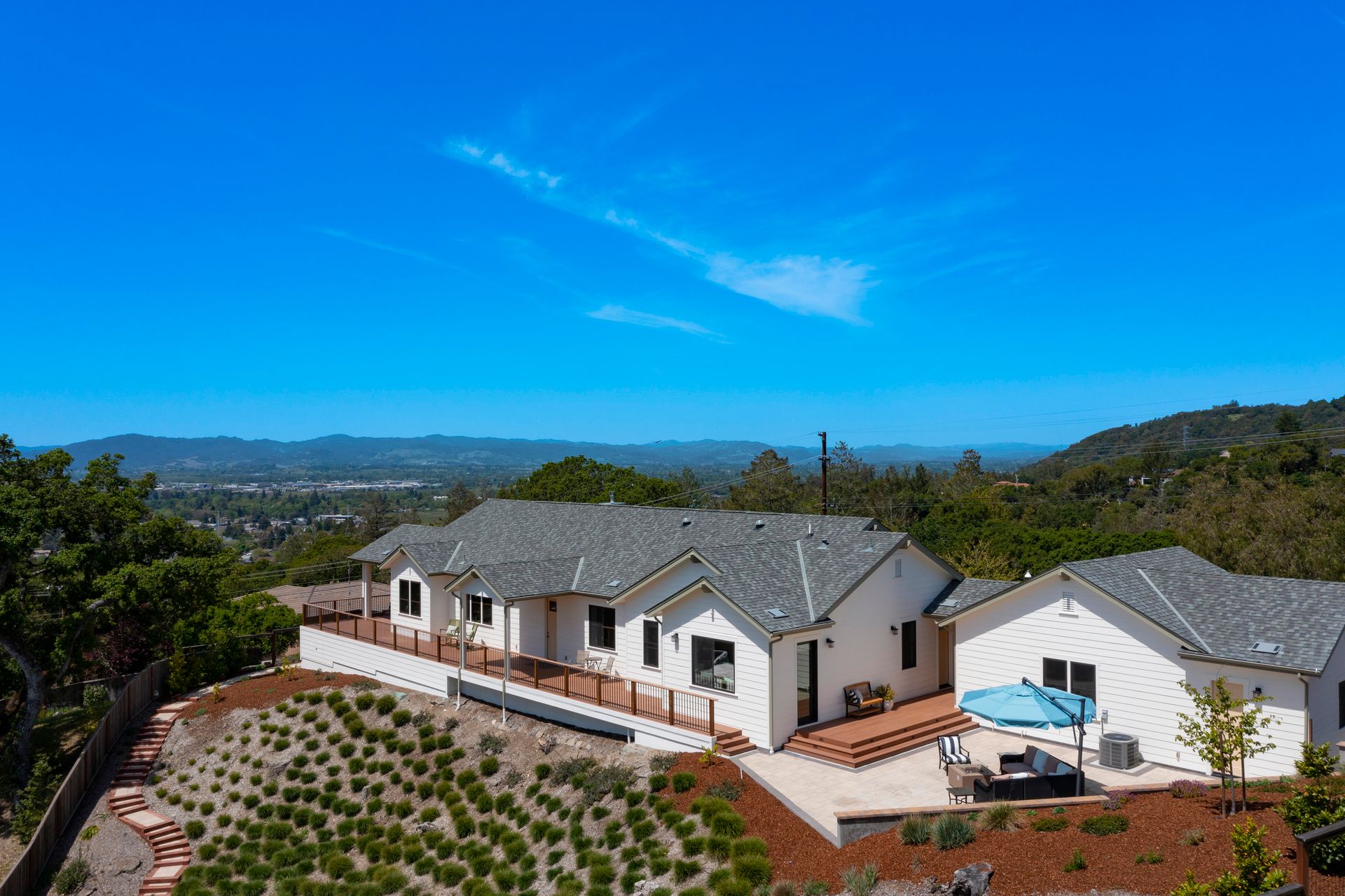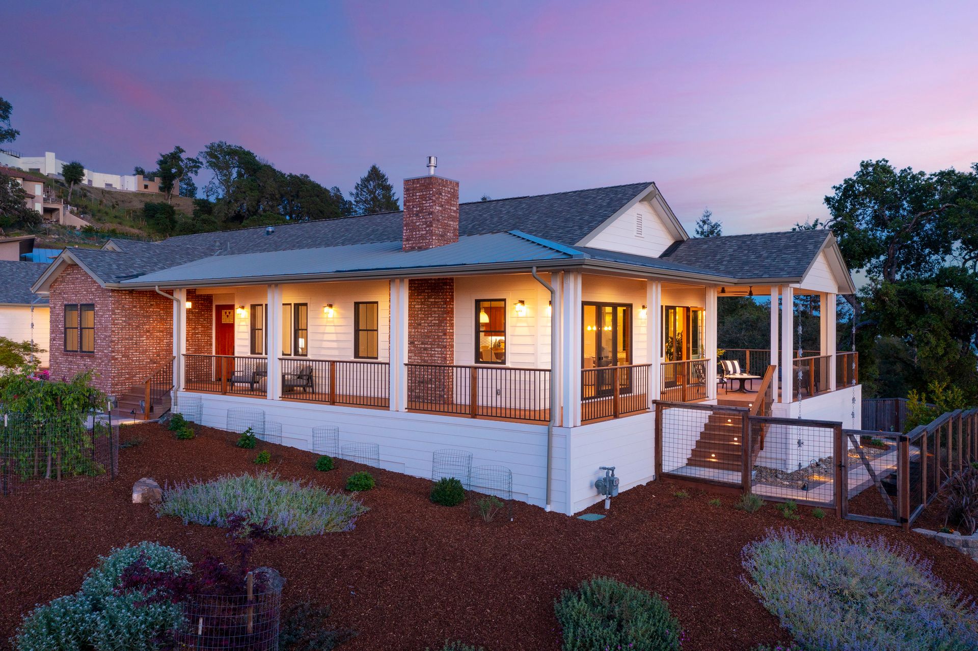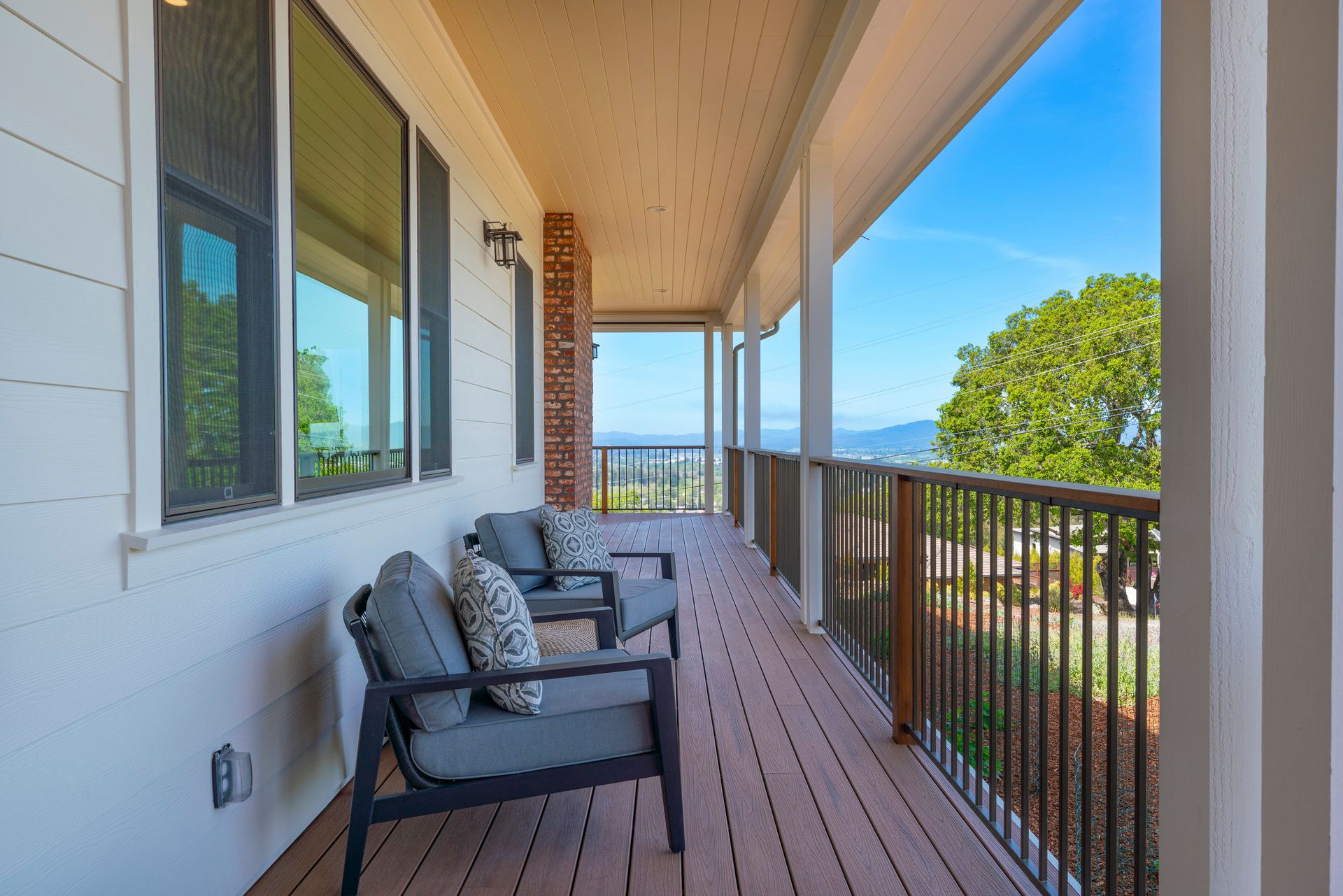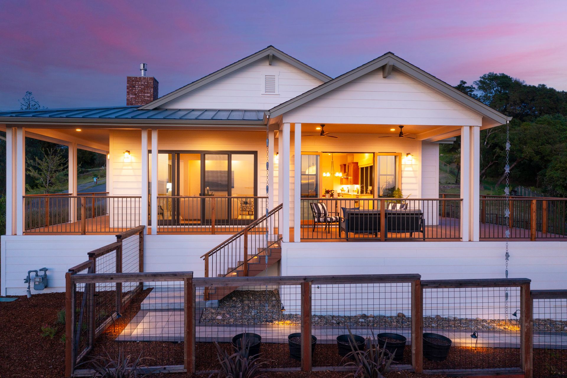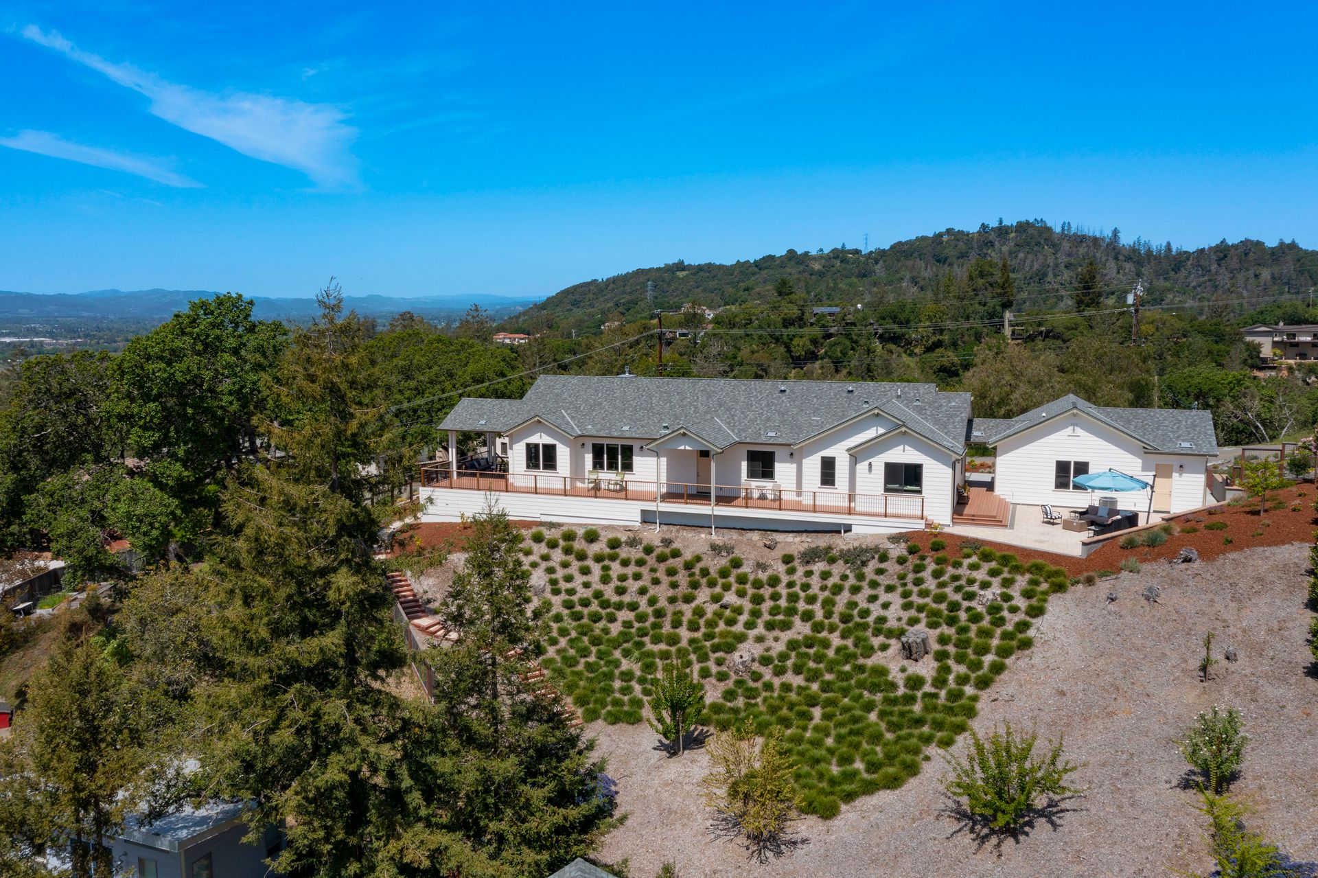 This highly desirable location in Wikiup offers sweeping city light views from this stunning single level home with 4 bedrooms and 2.5 baths on more than 1/2 acre. The exceptional designer appeal showcases solid cherry double entry doors. Extensive use of wide plank white oak flooring adds a touch of elegance and sophistication. An open concept floor plan with an abundance of natural light makes the home spacious and airy. The wrap around porch is accessible from the front entry to the great room providing a sunny spot to enjoy views from morning to evening. The great room is open to the gourmet kitchen and dining area with architecturally appealing coffered ceiling and a free standing fireplace with floor to ceiling solid walnut surround. The kitchen boasts a large island, high-end BlueStar appliances, and walk-in pantry. Additionally, there is a home office. The primary suite features wool carpet, coved ceiling, and direct access to the patio. There are 3 additional bedrooms. Great outdoor entertaining space includes Trex decking, a spacious patio, professionally landscaped grounds include many fruit trees and flowering foliage for a colorful garden. This recently built custom home is set in the heart of wine country with close proximity to wineries, shopping & fine dining.