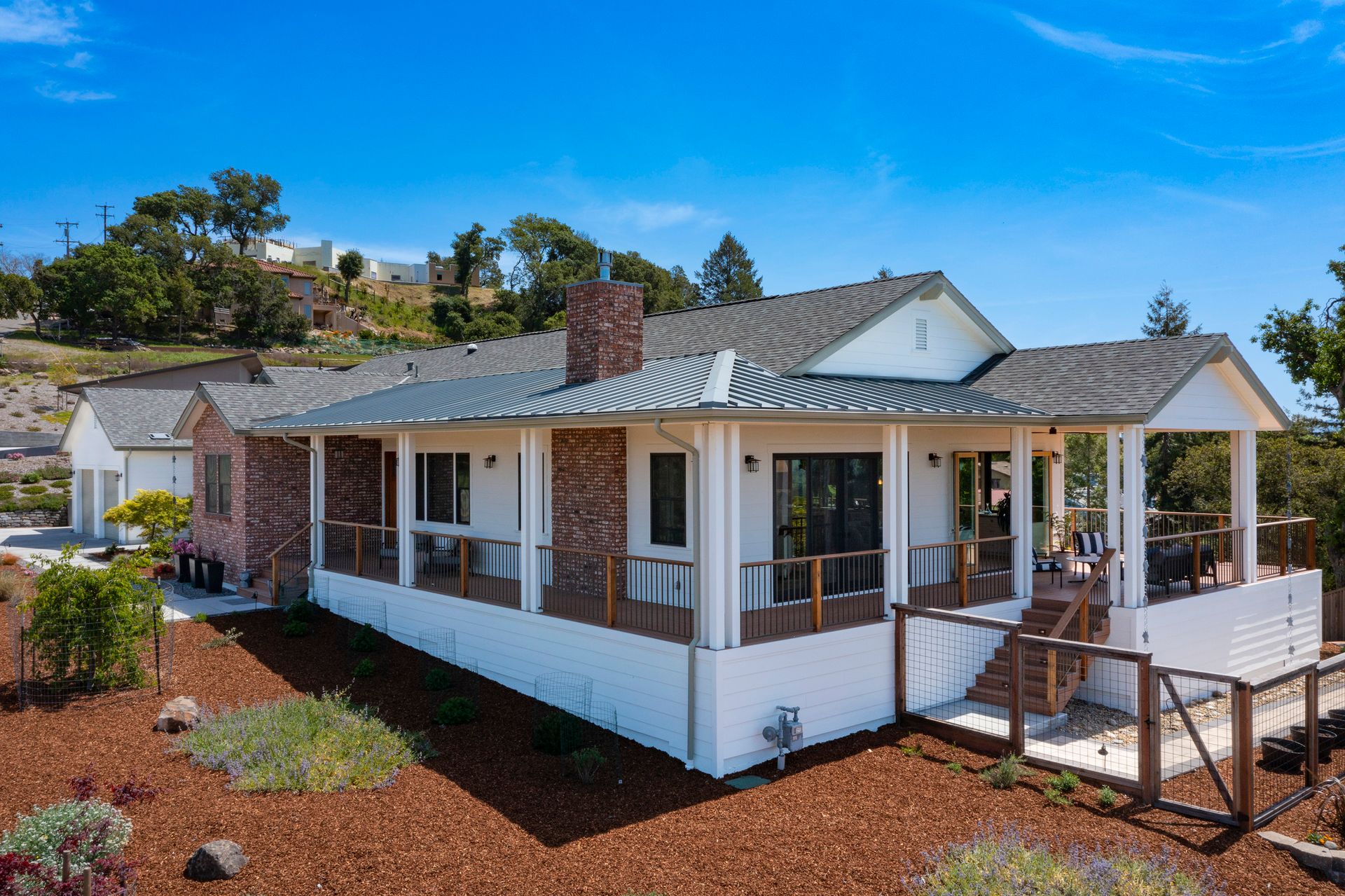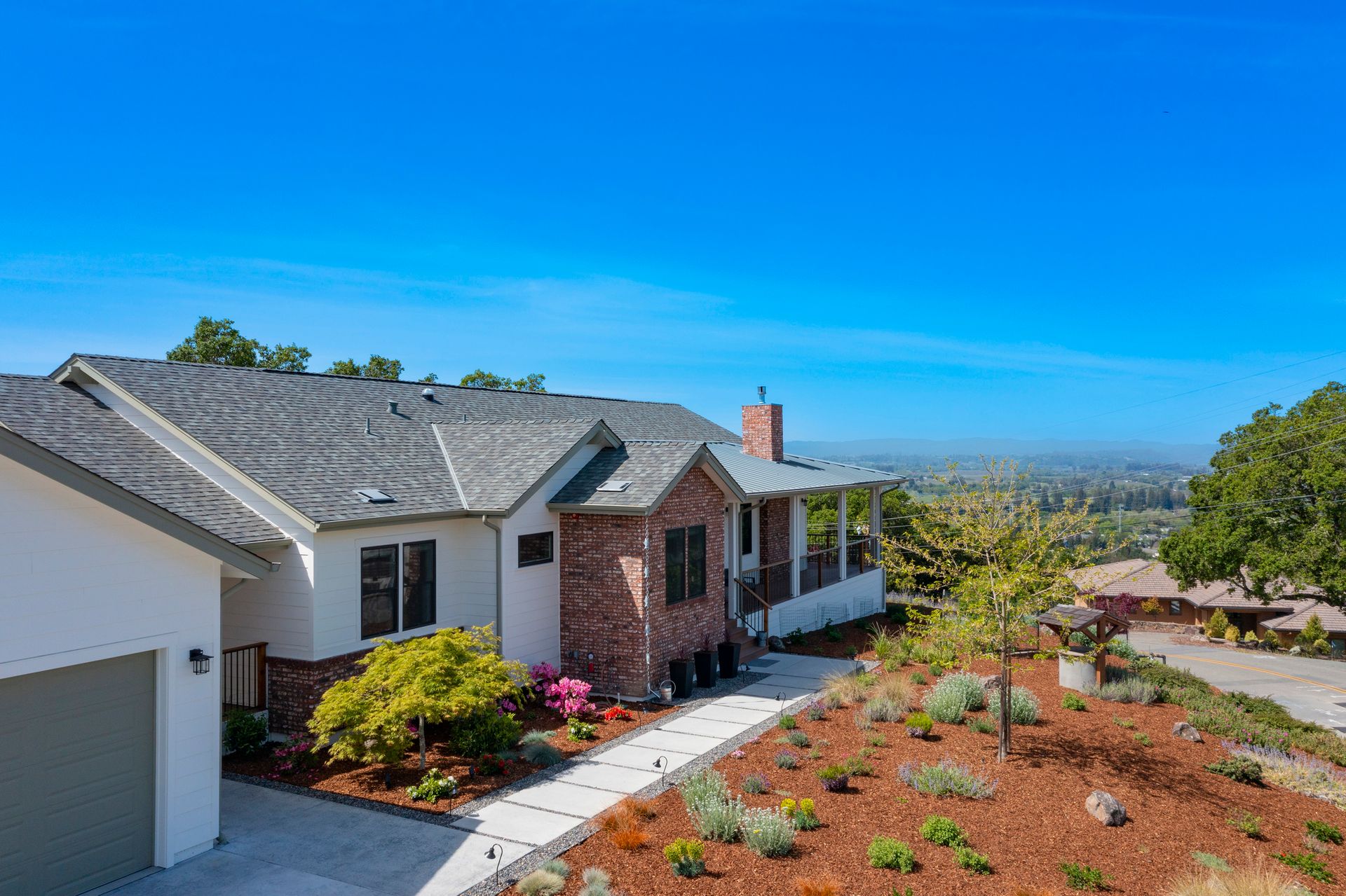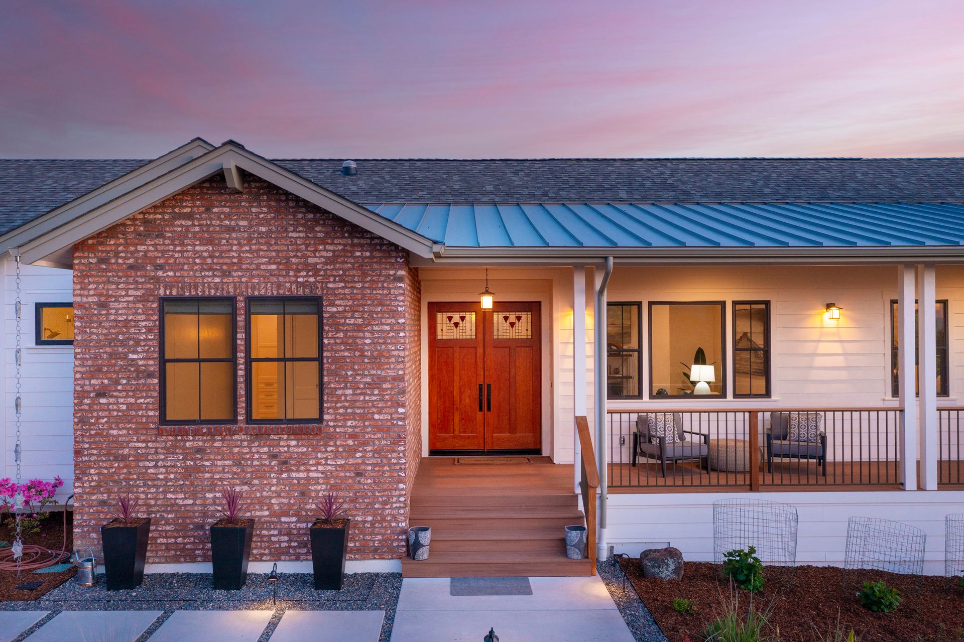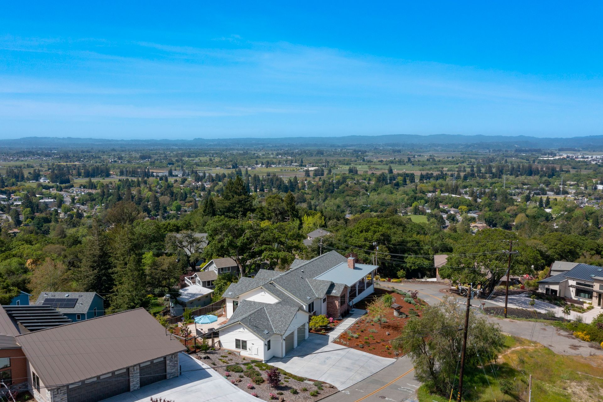 This highly desirable location in Wikiup offers sweeping city light views from this stunning single level home with 4 bedrooms and 2.5 baths on more than 1/2 acre. The exceptional designer appeal showcases solid cherry double entry doors. Extensive use of wide plank white oak flooring adds a touch of elegance and sophistication. An open concept floor plan with an abundance of natural light makes the home spacious and airy. The wrap around porch is accessible from the front entry to the great room providing a sunny spot to enjoy views from morning to evening. The great room is open to the gourmet kitchen and dining area with architecturally appealing coffered ceiling and a free standing fireplace with floor to ceiling solid walnut surround. The kitchen boasts a large island, high-end BlueStar appliances, and walk-in pantry. Additionally, there is a home office. The primary suite features wool carpet, coved ceiling, and direct access to the patio. There are 3 additional bedrooms. Great outdoor entertaining space includes Trex decking, a spacious patio, professionally landscaped grounds include many fruit trees and flowering foliage for a colorful garden. This recently built custom home is set in the heart of wine country with close proximity to wineries, shopping & fine dining.