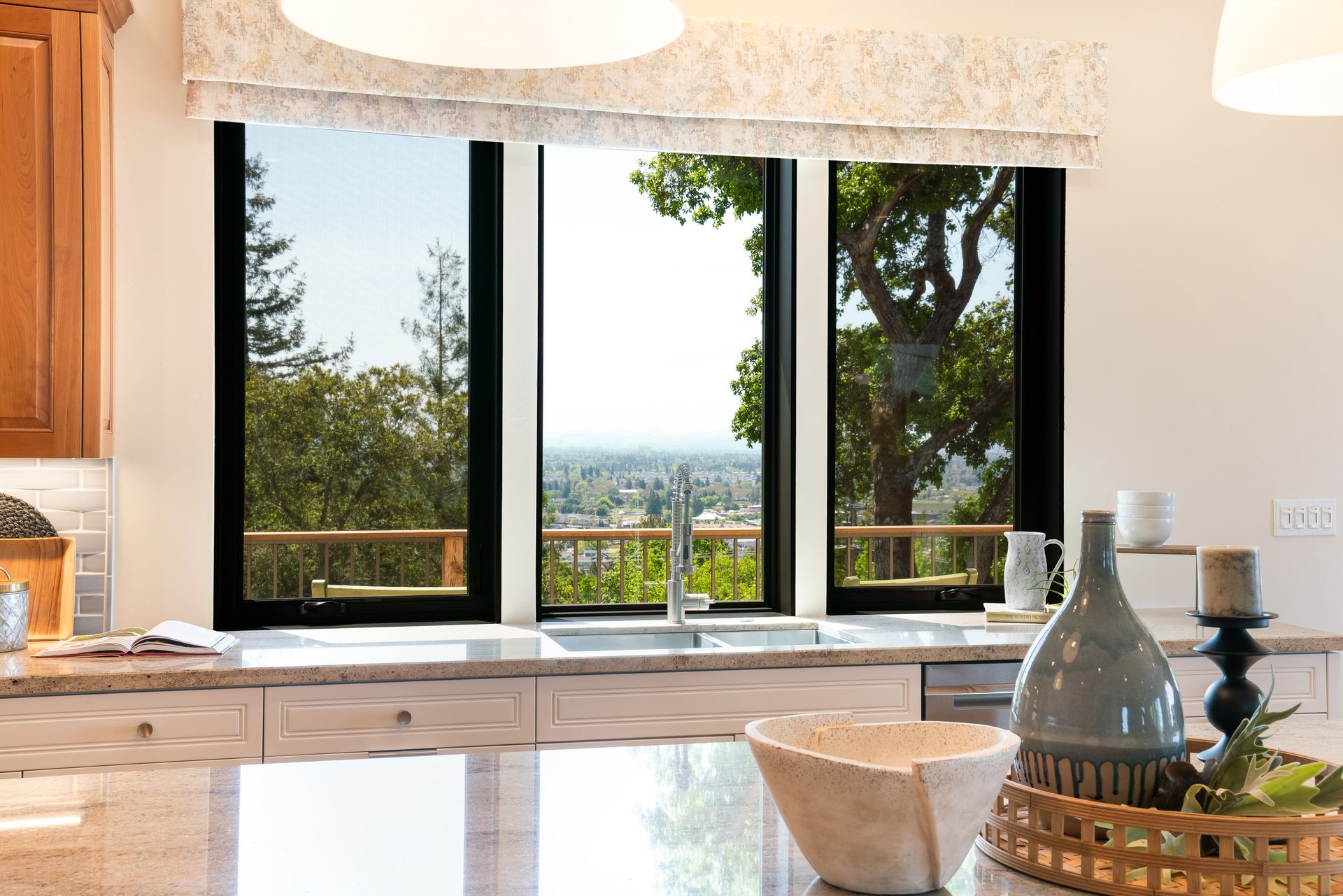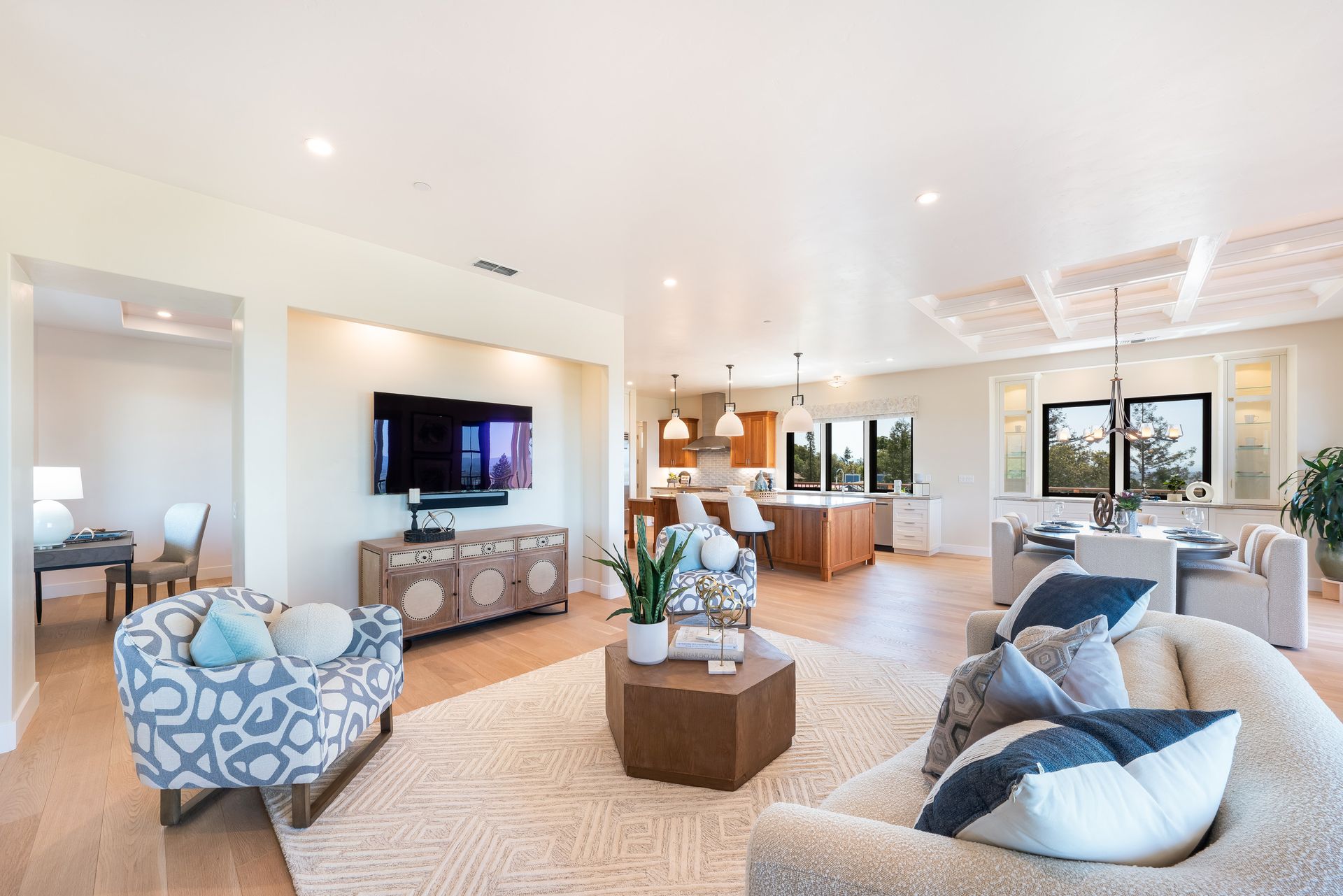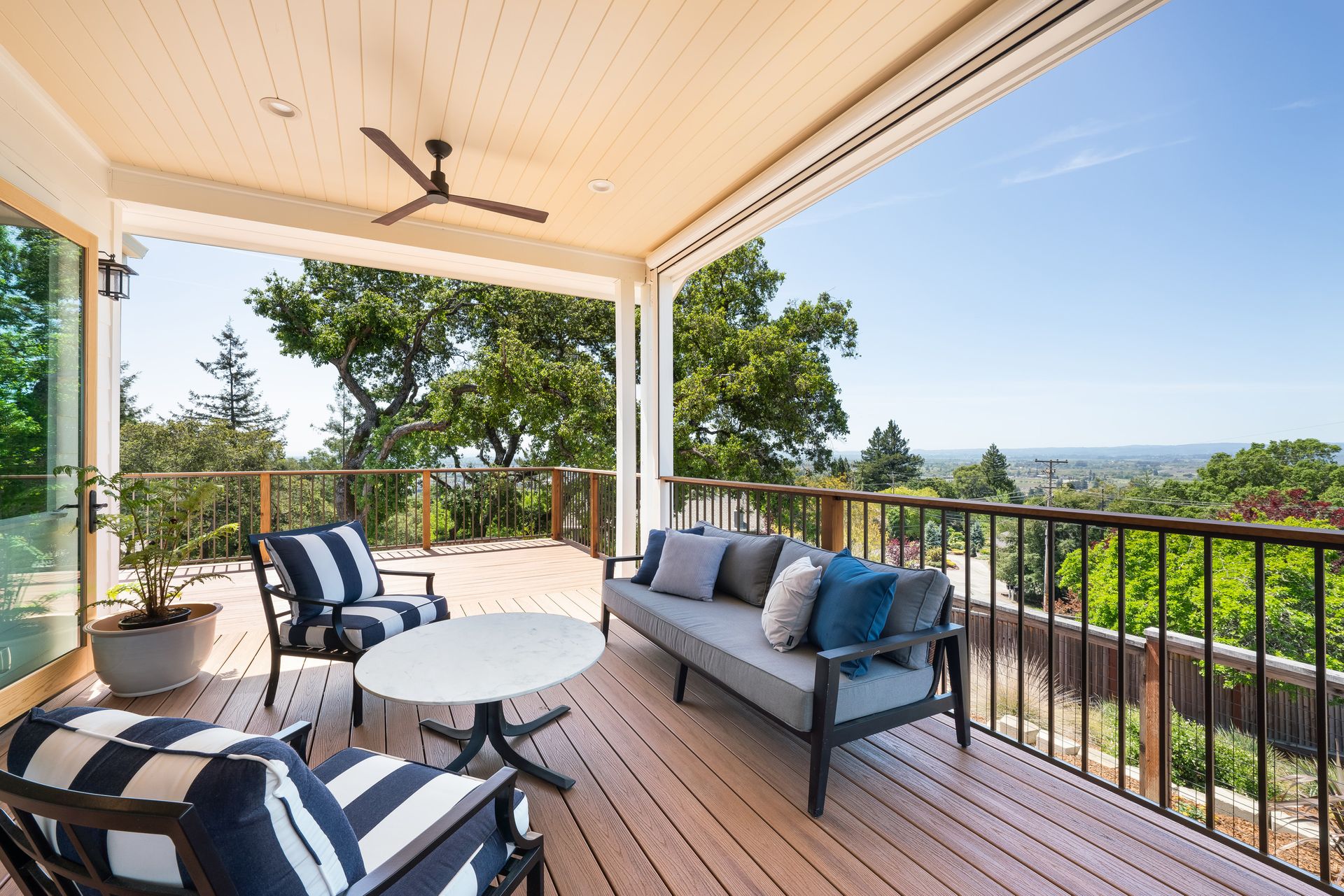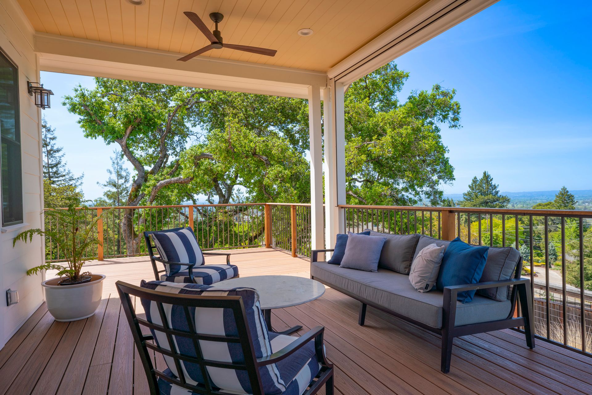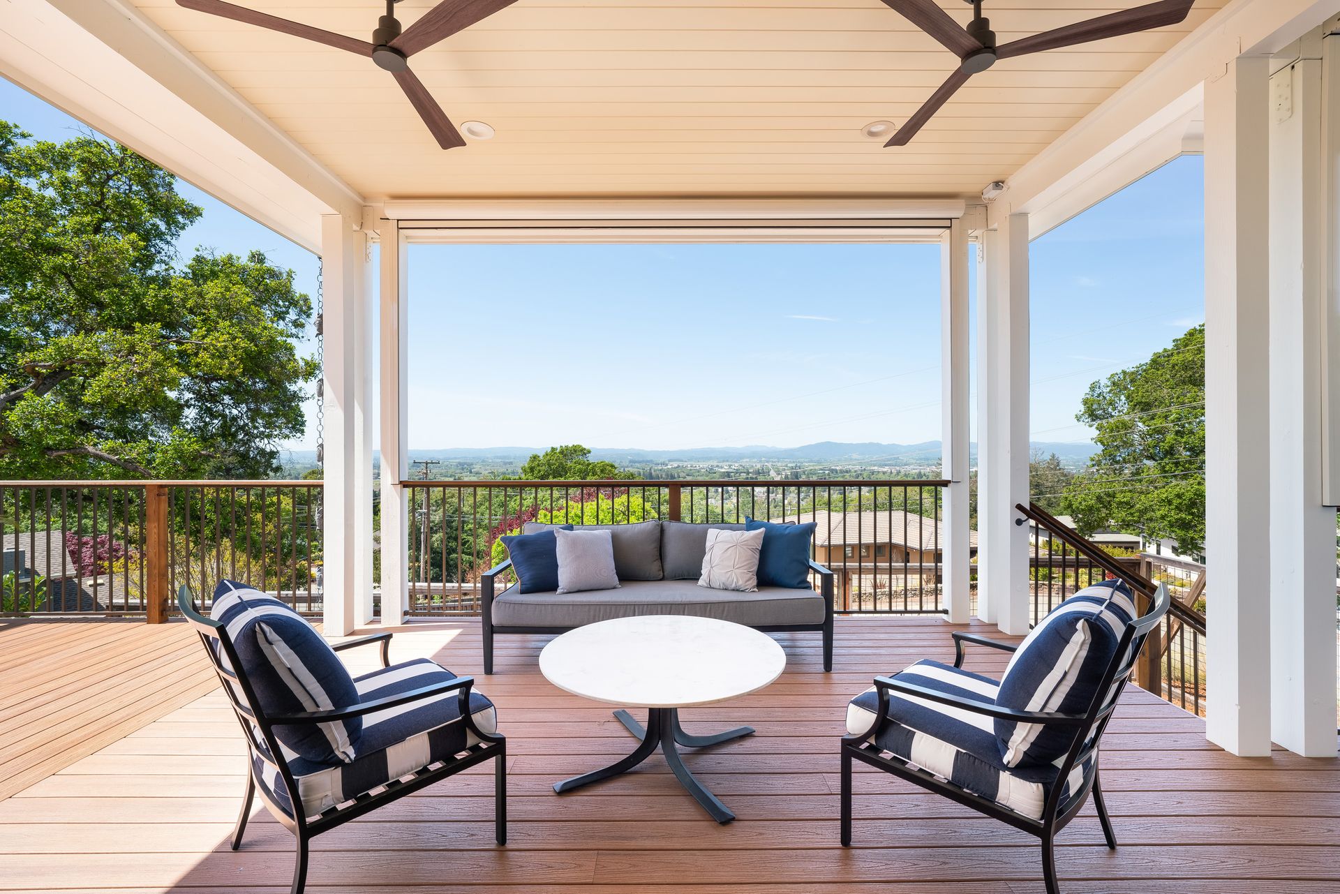 This highly desirable location in Wikiup offers sweeping city light views from this stunning single level home with 4 bedrooms and 2.5 baths on more than 1/2 acre. The exceptional designer appeal showcases solid cherry double entry doors. Extensive use of wide plank white oak flooring adds a touch of elegance and sophistication. An open concept floor plan with an abundance of natural light makes the home spacious and airy. The wrap around porch is accessible from the front entry to the great room providing a sunny spot to enjoy views from morning to evening. The great room is open to the gourmet kitchen and dining area with architecturally appealing coffered ceiling and a free standing fireplace with floor to ceiling solid walnut surround. The kitchen boasts a large island, high-end BlueStar appliances, and walk-in pantry. Additionally, there is a home office. The primary suite features wool carpet, coved ceiling, and direct access to the patio. There are 3 additional bedrooms. Great outdoor entertaining space includes Trex decking, a spacious patio, professionally landscaped grounds include many fruit trees and flowering foliage for a colorful garden. This recently built custom home is set in the heart of wine country with close proximity to wineries, shopping & fine dining.