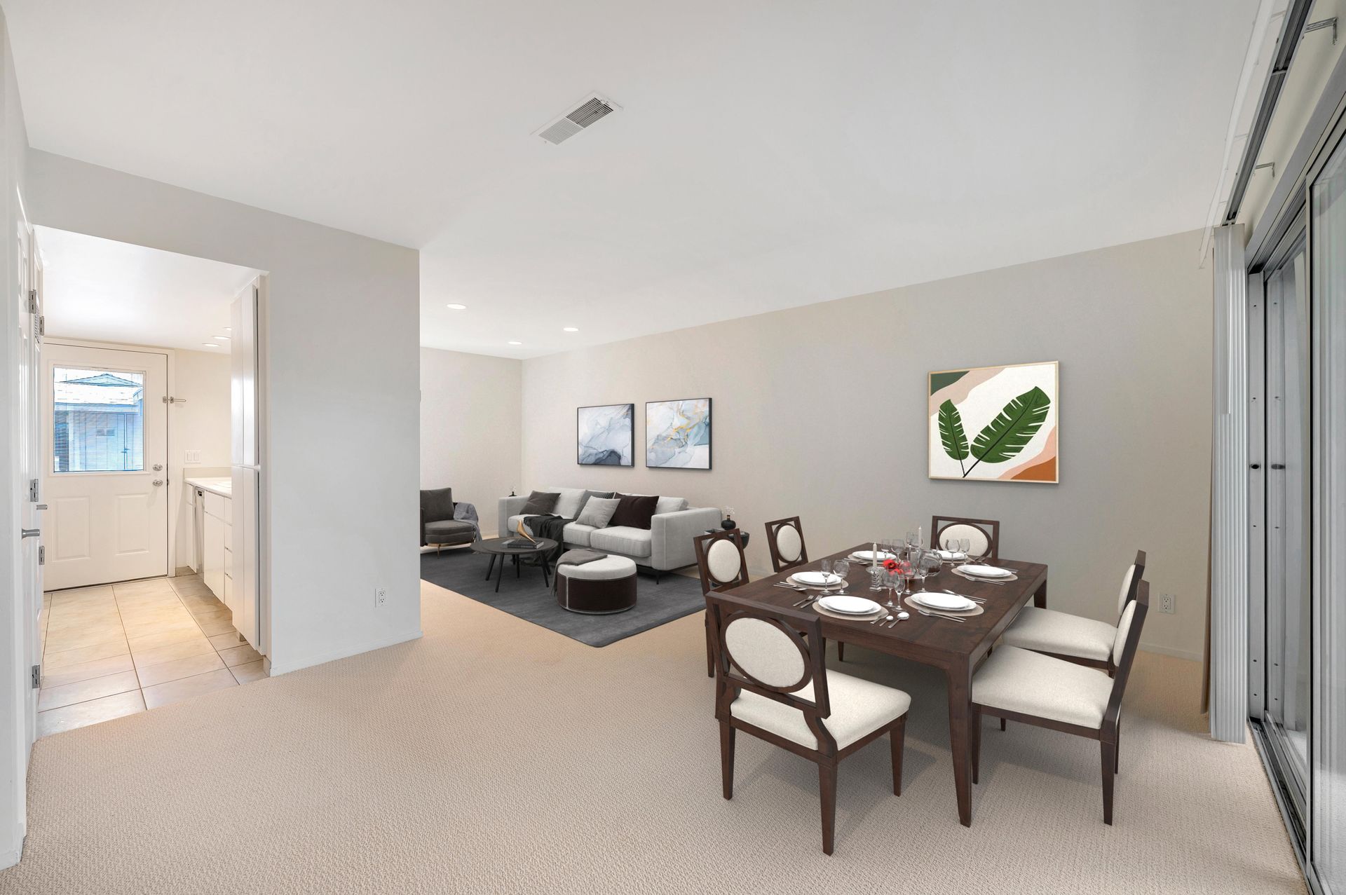 MOVE IN READY! Welcome to this very clean, newly painted and carpeted two bed, one and one-half bath townhome in Marinwood! The main level has recessed lighting and a spacious living room/dining room combo, a tiled one-half bath and a sliding door leading to a private outdoor patio. The kitchen has recently painted cabinets, along with newer appliances. The upper level bedrooms are spacious with roomy storage closets and the upstairs bathroom is also tiled. The community includes a recently renovated pool, a club house and coin laundry facilities that are adjacent to the unit. Within the coveted and award-winning Miller Creek School District with easy access to Highway 101, public transportation and the nearby Marinwood market, this townhome. This is a must see!