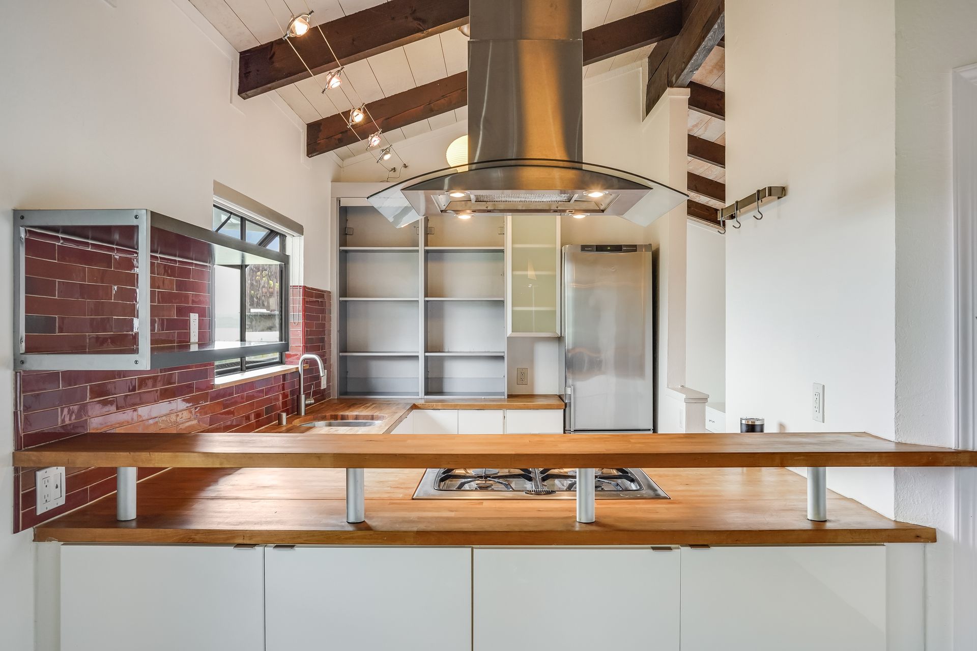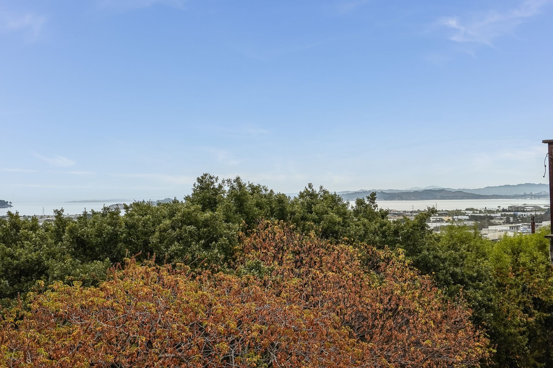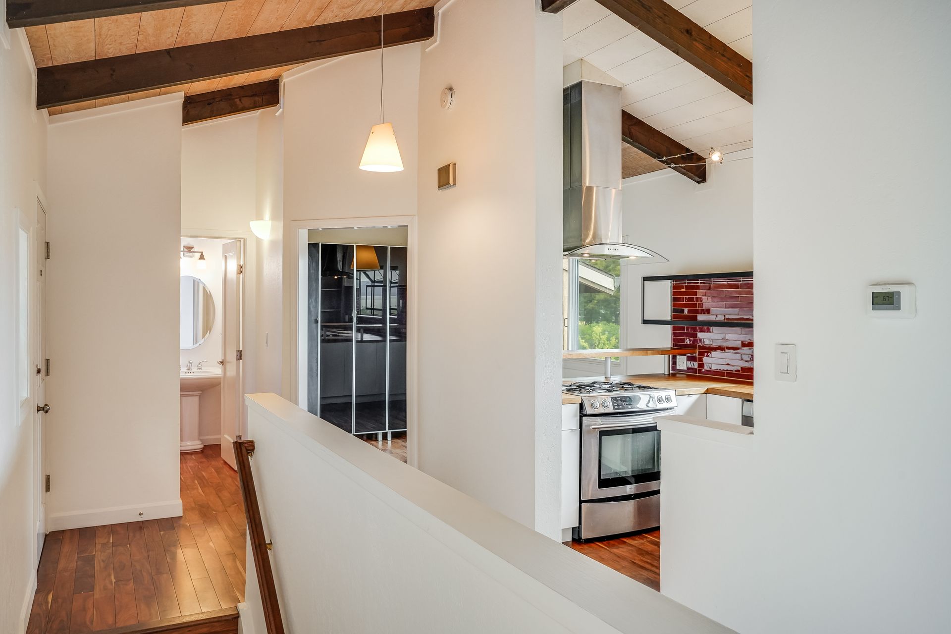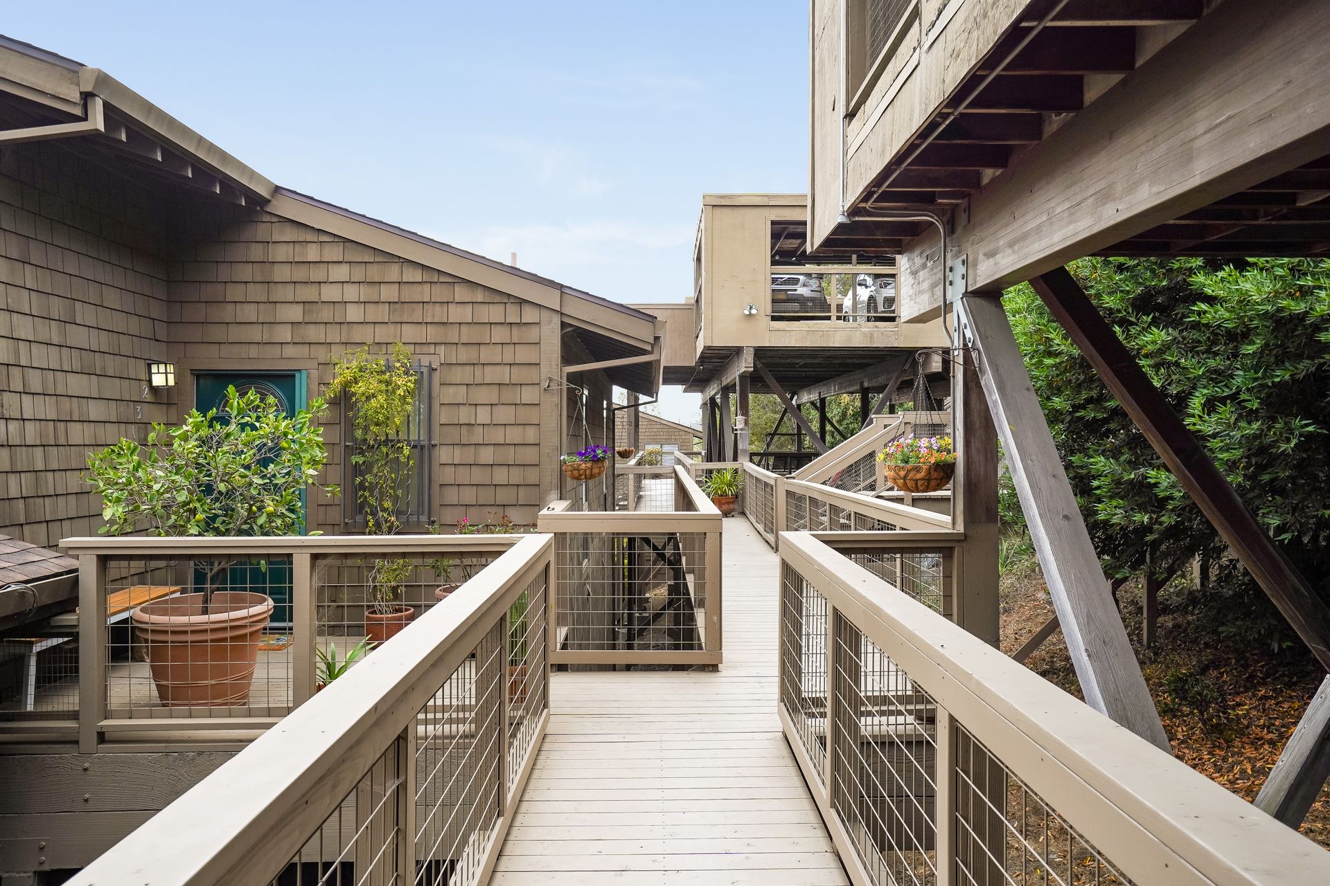 This mid-century contemporary, turn-key ready, two bedroom, one and one-half bath condo boasts privacy with a spectacular view of the San Pablo Bay! The vaulted open beam ceilings lends to the airy appeal with butcher block kitchen counters, a garden window and range hood open to the dining area providing ample space to enjoy with cabinets galore. Walnut wood floors flow into the living room area complimented by a brick fireplace and sliding doors to the deck with city bay views. The spacious bedrooms are downstairs with a full bath and a laundry closet. This is all conveniently located near Larkspur Ferry Terminal, the 101 and the surrounding Bay area.