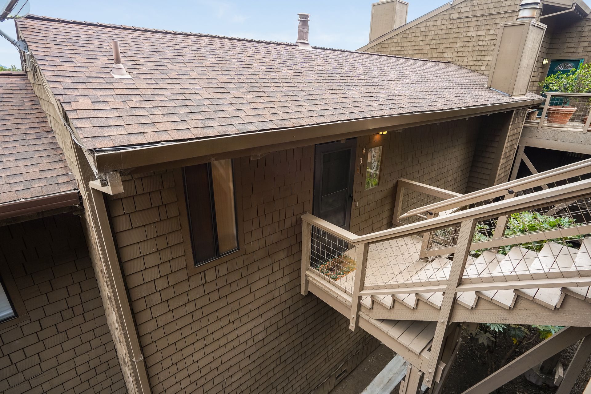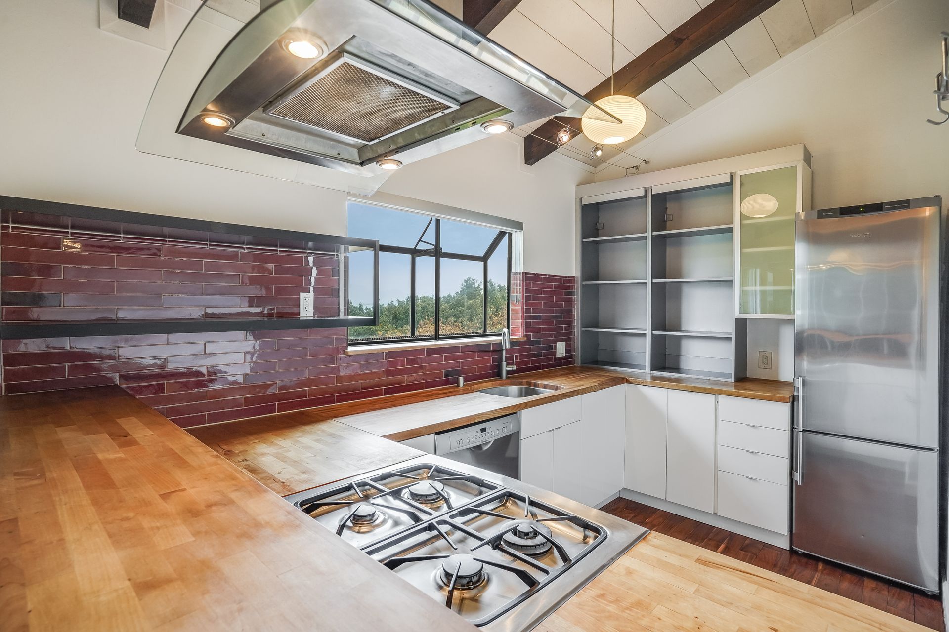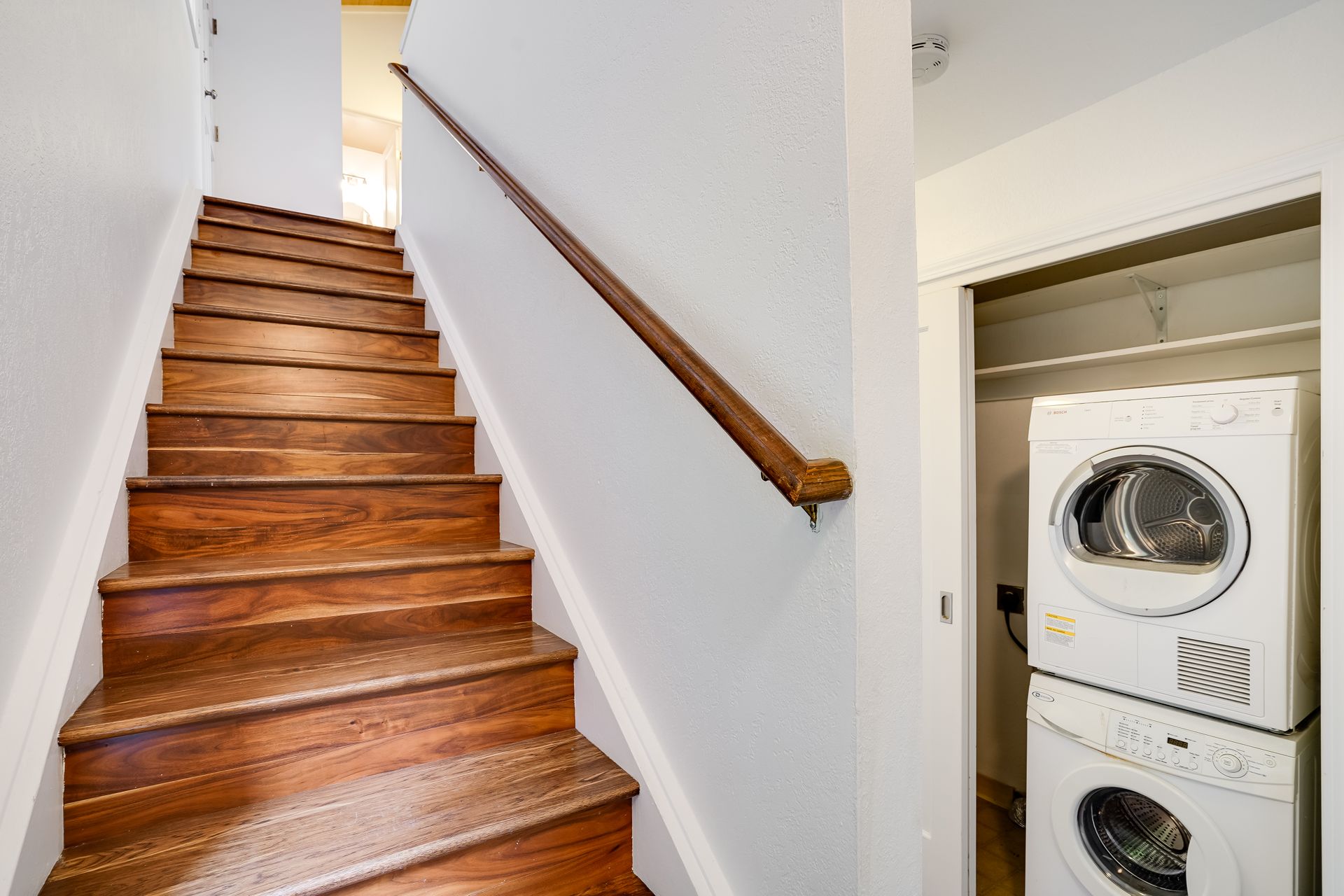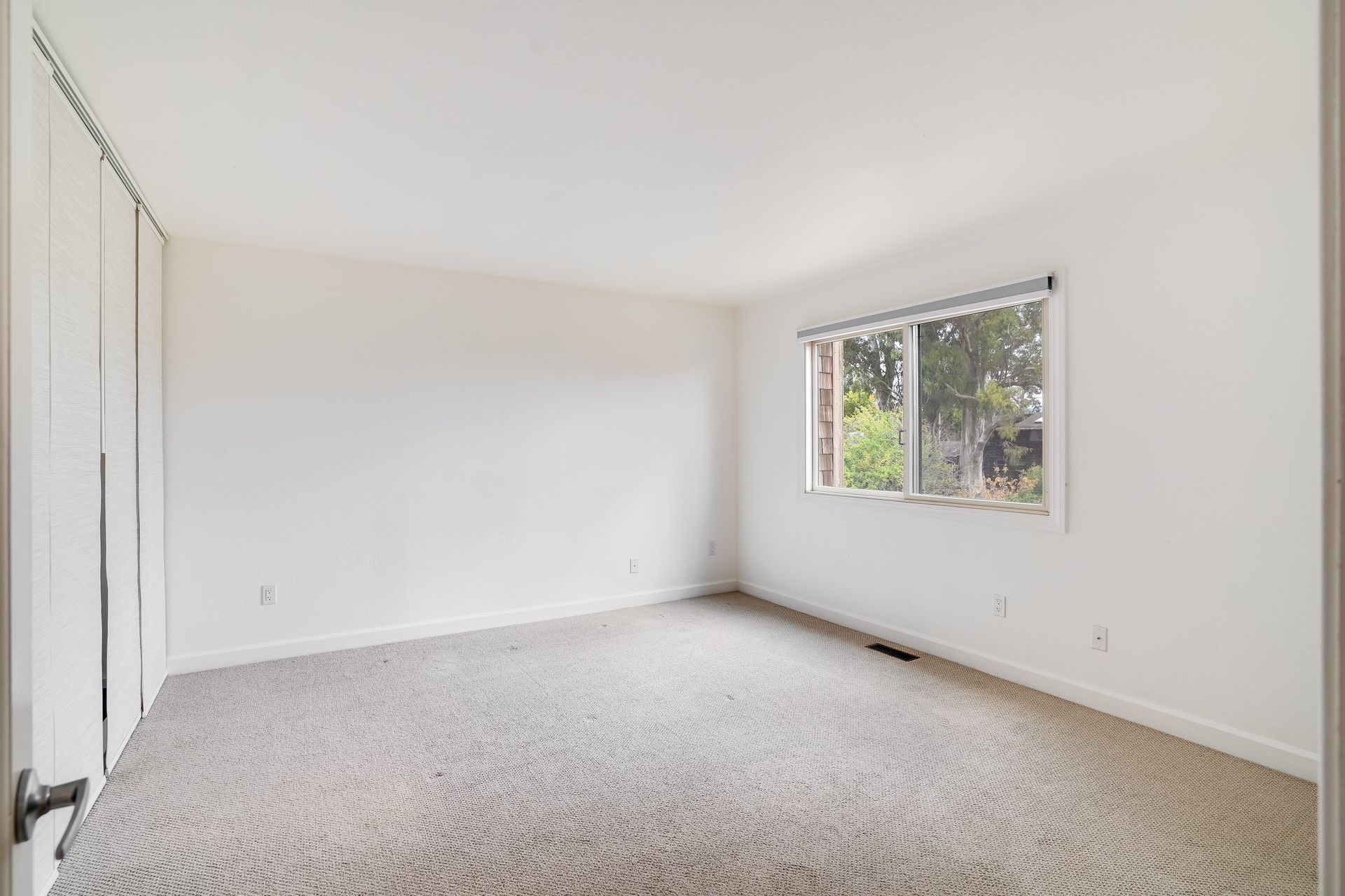 This mid-century contemporary, turn-key ready, two bedroom, one and one-half bath condo boasts privacy with a spectacular view of the San Pablo Bay! The vaulted open beam ceilings lends to the airy appeal with butcher block kitchen counters, a garden window and range hood open to the dining area providing ample space to enjoy with cabinets galore. Walnut wood floors flow into the living room area complimented by a brick fireplace and sliding doors to the deck with city bay views. The spacious bedrooms are downstairs with a full bath and a laundry closet. This is all conveniently located near Larkspur Ferry Terminal, the 101 and the surrounding Bay area.
