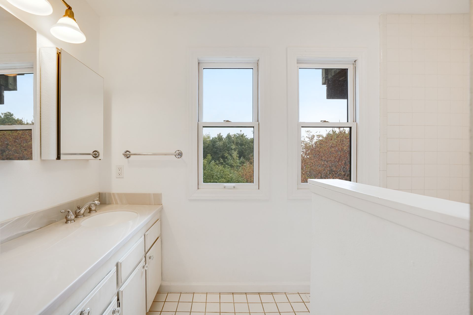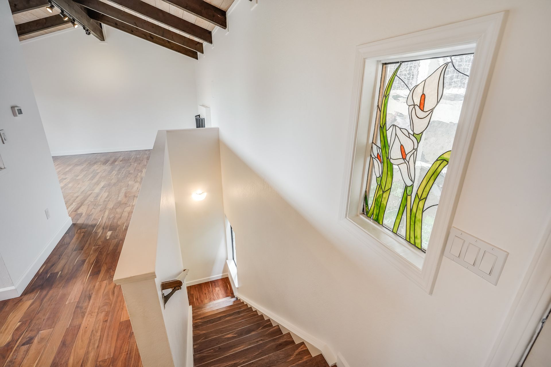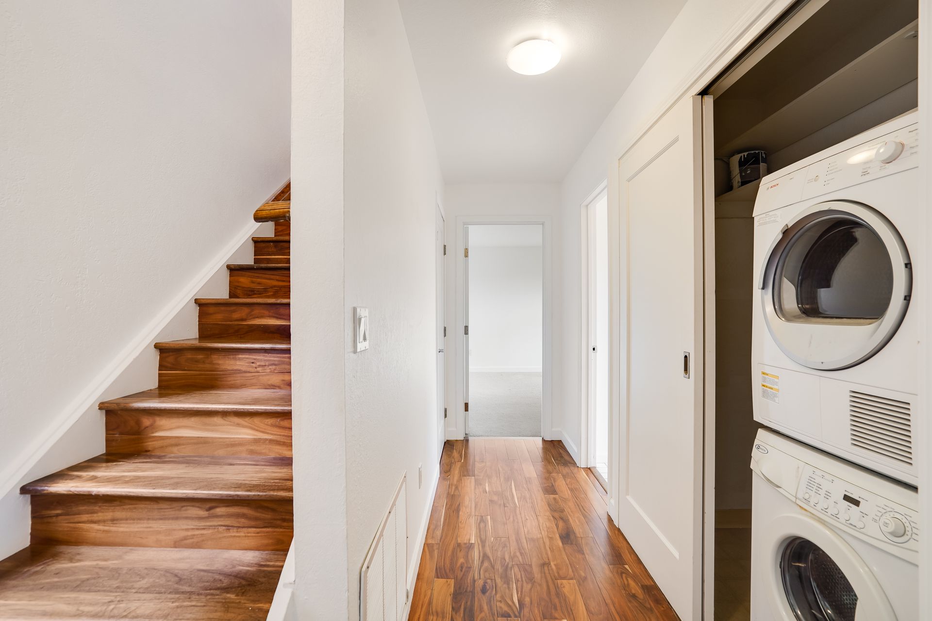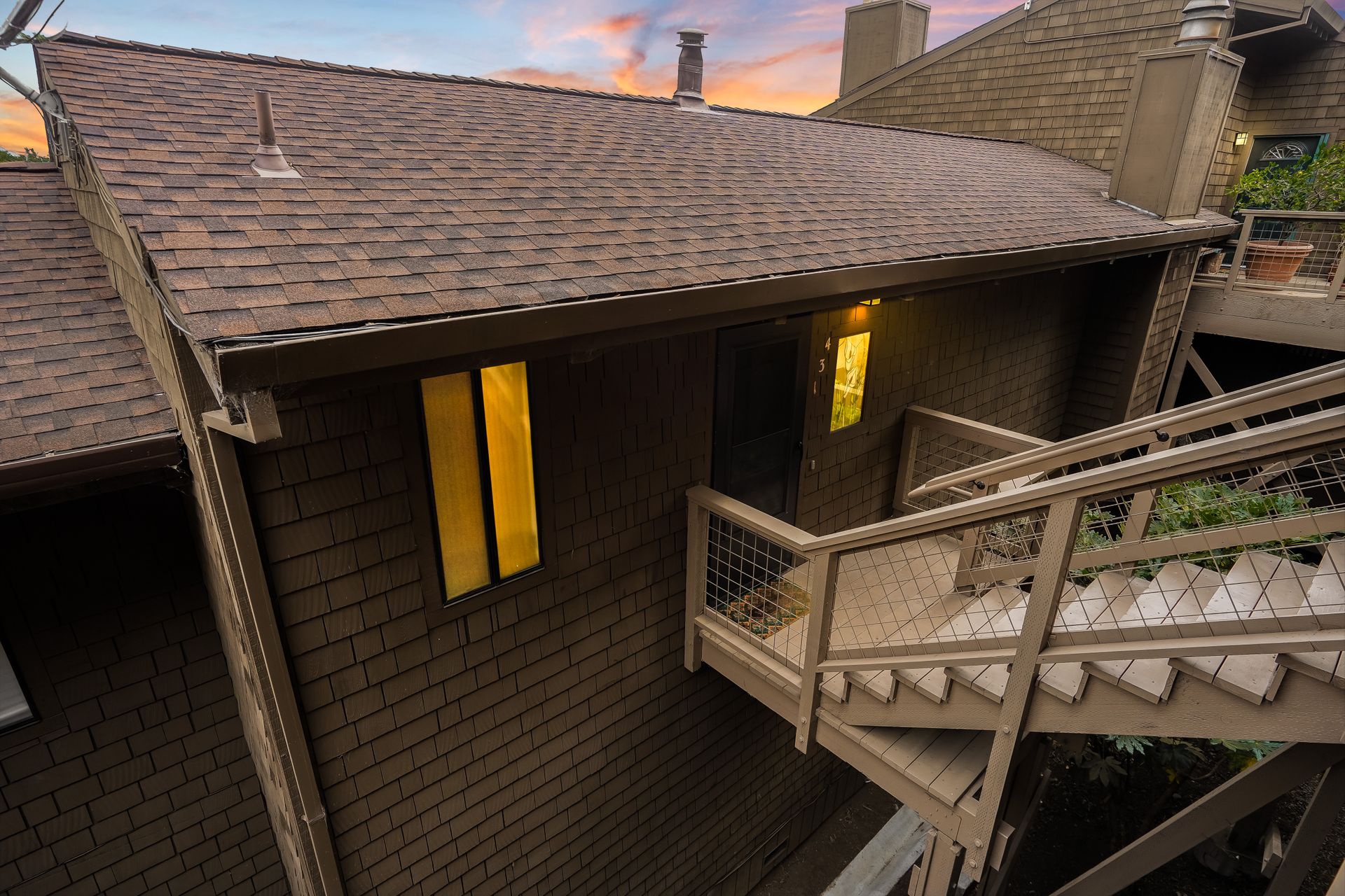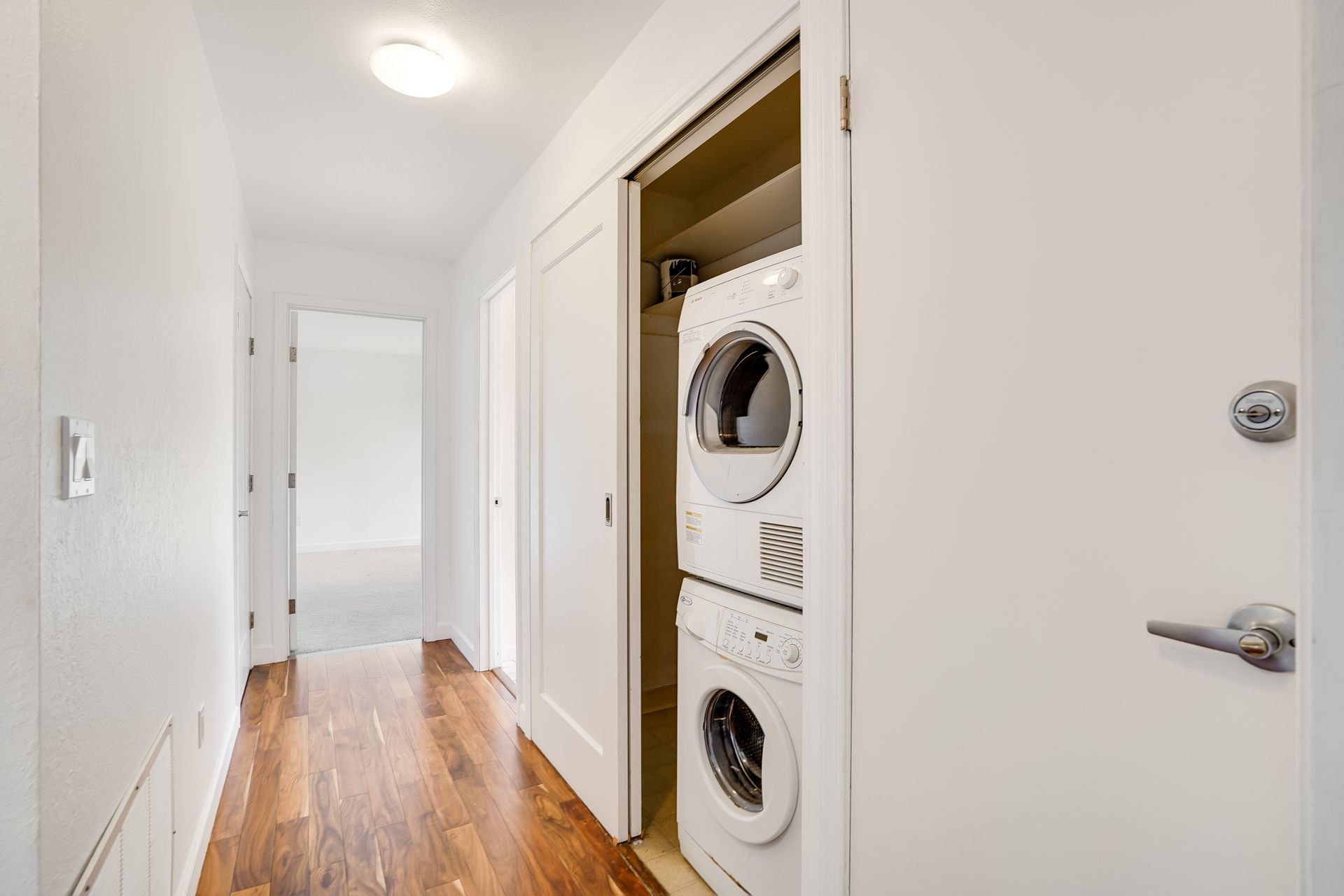 This mid-century contemporary, turn-key ready, two bedroom, one and one-half bath condo boasts privacy with a spectacular view of the San Pablo Bay! The vaulted open beam ceilings lends to the airy appeal with butcher block kitchen counters, a garden window and range hood open to the dining area providing ample space to enjoy with cabinets galore. Walnut wood floors flow into the living room area complimented by a brick fireplace and sliding doors to the deck with city bay views. The spacious bedrooms are downstairs with a full bath and a laundry closet. This is all conveniently located near Larkspur Ferry Terminal, the 101 and the surrounding Bay area.