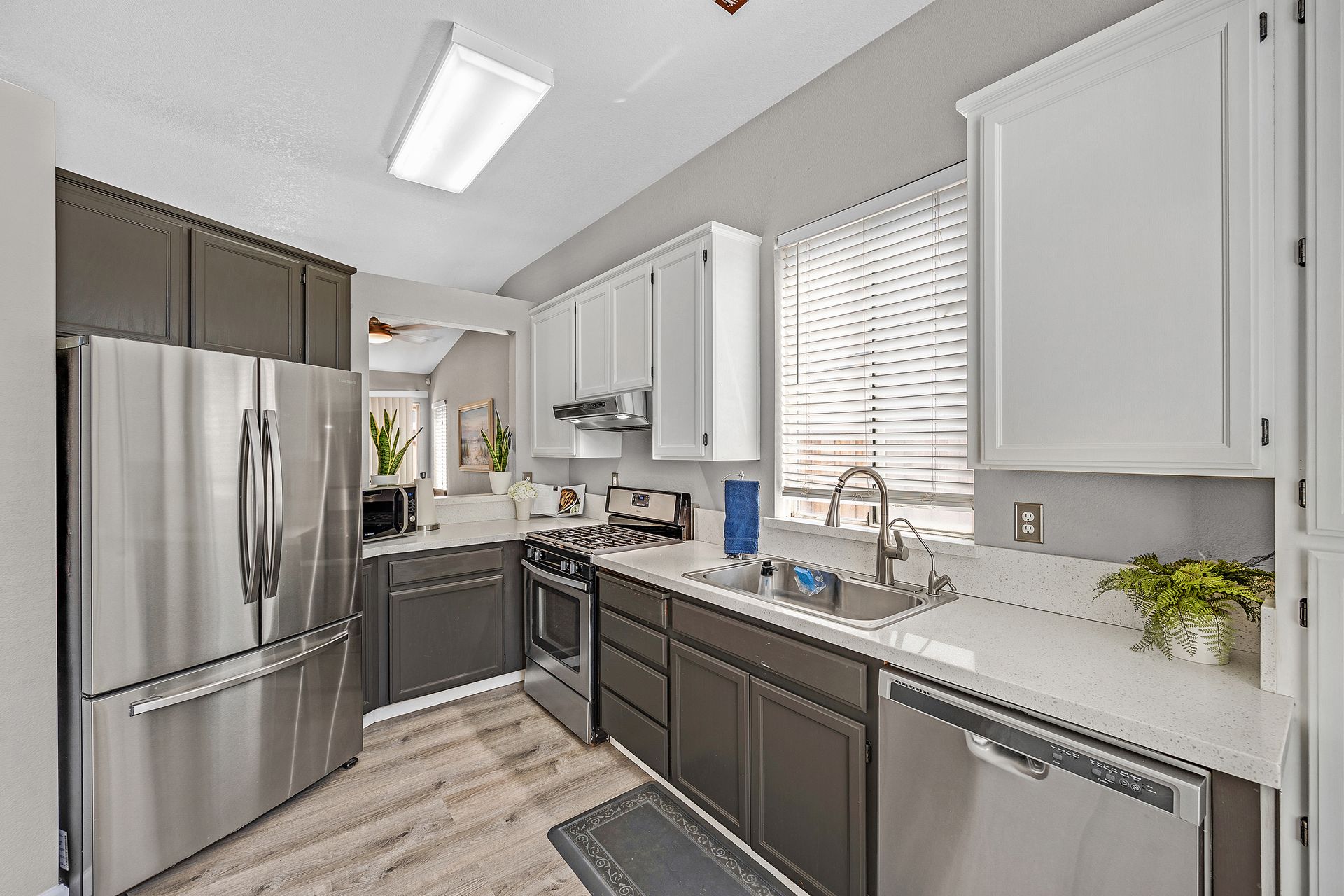 Bring your creativity to this charming single-story home in Tracy! Featuring three bedrooms and two bathrooms, this centrally located gem boasts abundant natural light throughout. The kitchen comes equipped with granite countertops, stainless steel appliances and a breakfast bar, opening into a combined living and dining area with a cozy fireplace. Sliding glass doors lead to the backyard with a patio, ideal for outdoor entertaining. Additional highlights include an indoor laundry area and a prime location near shopping, schools, parks and highways.