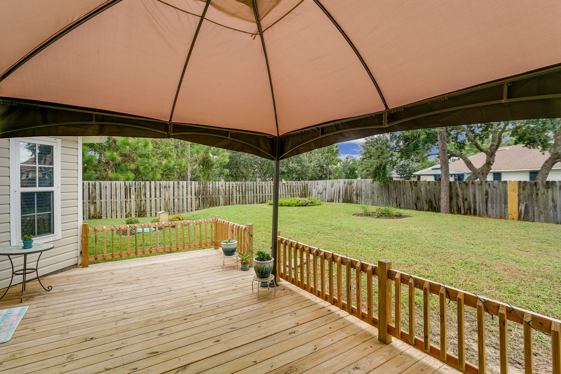 This recently renovated home is in a great neighborhood with excellent schools. RV/boat pad and no HOA! Inside you will find luxury vinyl plank flooring throughout, newly updated kitchen and bathrooms, fresh paint and both the front and rear decks were done last year. The vaulted ceiling gives the living, dining rooms and kitchen a spacious feel. The split floorplan is perfect for privacy with the master on one side and the additional bedrooms on the other. As you enter the master bathroom, you will see the beautiful walk-in tiled shower and large double sink vanity recently updated. Bring your pets, the back yard is completely fenced. All of this and only 15 minutes from Pensacola Beach. Five minutes to shopping, and 10-15 minutes to a hospital or Andrews Institute of Sports Medicine.