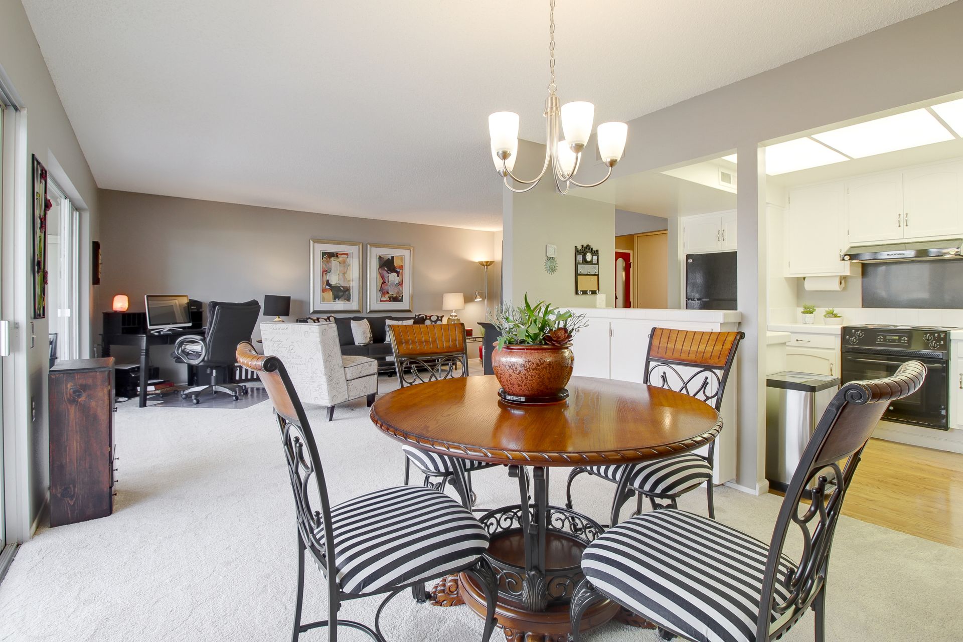 This beautiful Sonoma model two bedroom, one bath condo is ready for you to move in! The expansive veranda is a lovely space for relaxing with a cup of tea and your favorite book. This cute condo features a wonderful, spacious living room, a dining room, a galley-style kitchen and an open floor plan with expansive windows overlooking the open veranda. The veranda features retractable shades and extra storage. The kitchen has painted white cabinetry, crisp white tile, and newer black appliances. The bathroom is spacious with tub/shower, nice tile flooring, white cabinets and a linen closet. Other features of this home are new laminate flooring in the entry, the hallway and the kitchen, plantation shutters in the bedrooms, newer designer paint and carpet. This home is conveniently located close to the shared laundry room, the carport space with storage, and walking trails. The home has a great location at the top of Running Springs at end of a cul-de-sac and offers ample guest parking and views. Enjoy all this home has to offer, plus all the amenities of Rossmoor, the premier active 55 plus community.