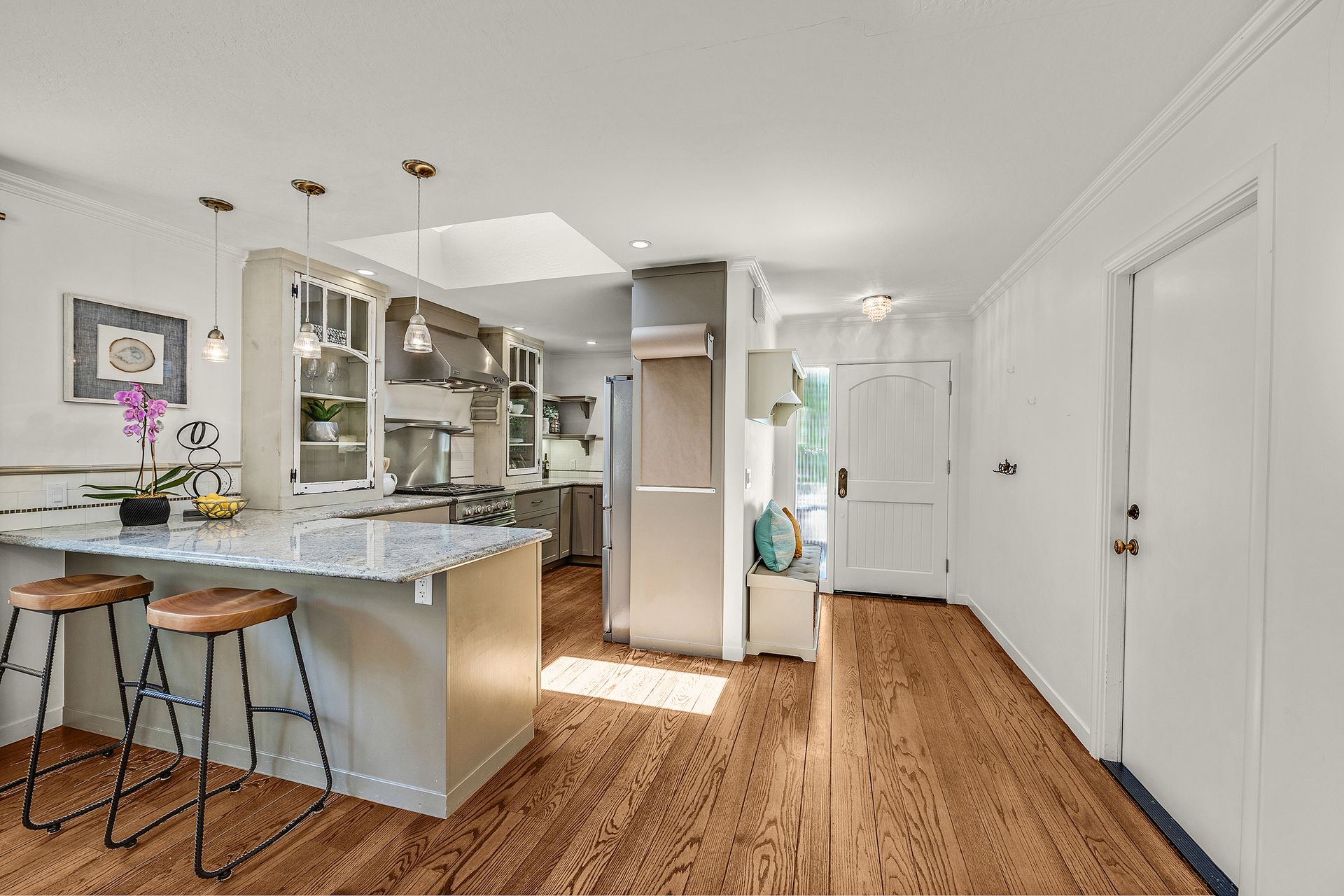 Welcome to Oak Park of San Carlos! You are located just five short blocks from Laurel Street and Trader Joe's (where all the action is - stores, shops, restaurants, wine bars and so much more!), and three blocks from Burton Park (playing fields, tennis courts, hoops, playground, and recreation center)! The prior owner was a designer, and she remolded the kitchen and bathroom beautifully - very stylish! The eclectic kitchen has a mixture of vintage and modern finishes with stainless steel appliances. You will love the open floorplan bringing the kitchen, dining and living all together, and opening to your courtyard dining patio. There are exposed random plank hardwood floors, wood burning fireplace, large glass doors with side lights to the patio, oversized hall bath with large deep soaking tub (small swimming pool for little ones - ha-ha), plus a bonus quarter bath in the garage, and a wide driveway with side-by-side parking and a two-car garage! You will Love Living here!