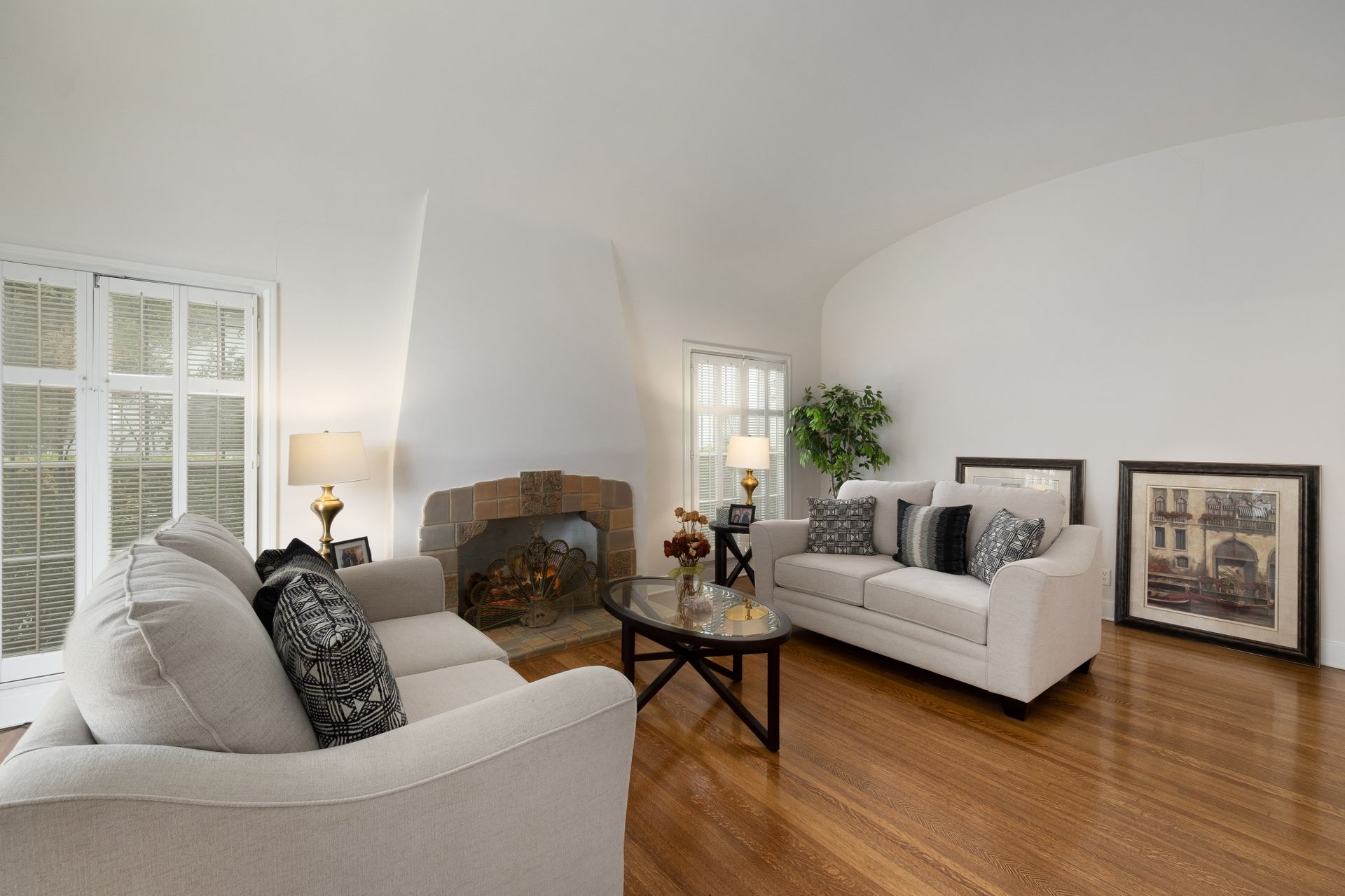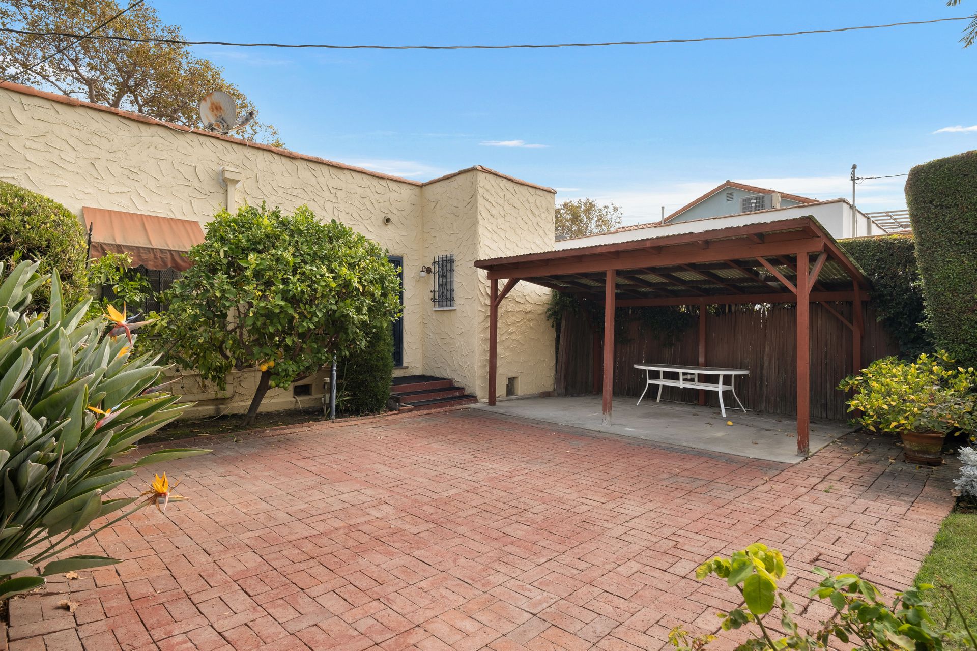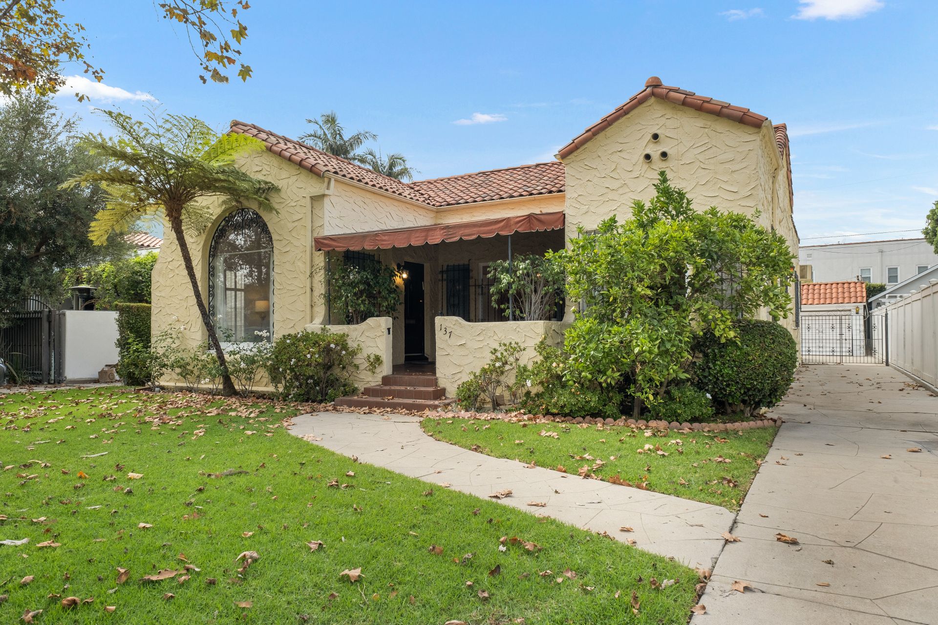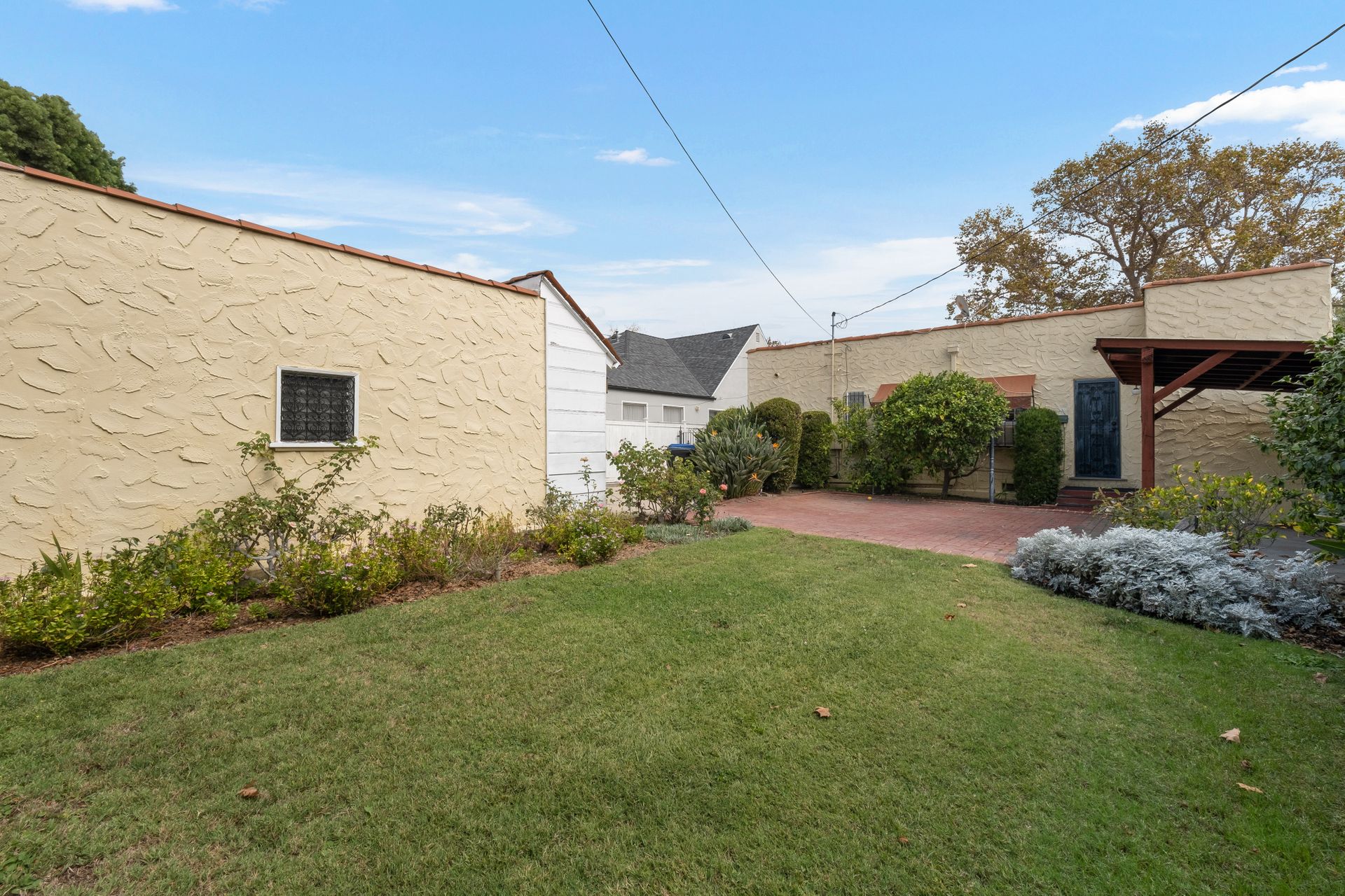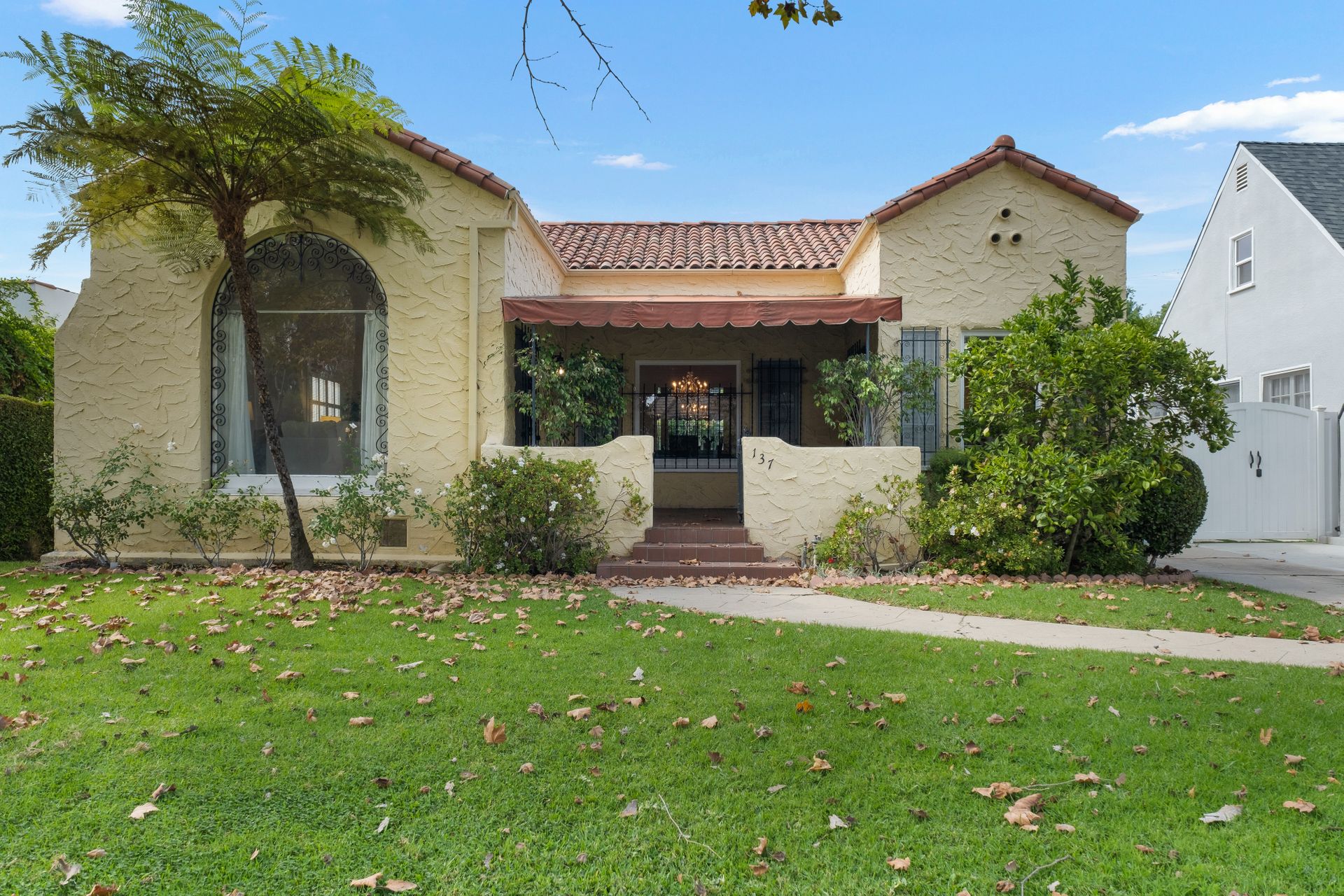 This charming Spanish home is situated on one of the best streets in Hancock Park! Enter through the inviting front porch into a bright living room with coved ceilings, a picturesque arched window and a Batchelder fireplace. The elegant dining room overlooks the front porch. The spacious kitchen offers a lovely breakfast area, built-in appliances and lots of cabinet space. The home includes three generous bedrooms and two beautifully remodeled bathrooms. Head outside to a verdant and private garden with a covered patio, a grassy area and mature fruit trees. Fantastic location, 3rd St. Elementary district.