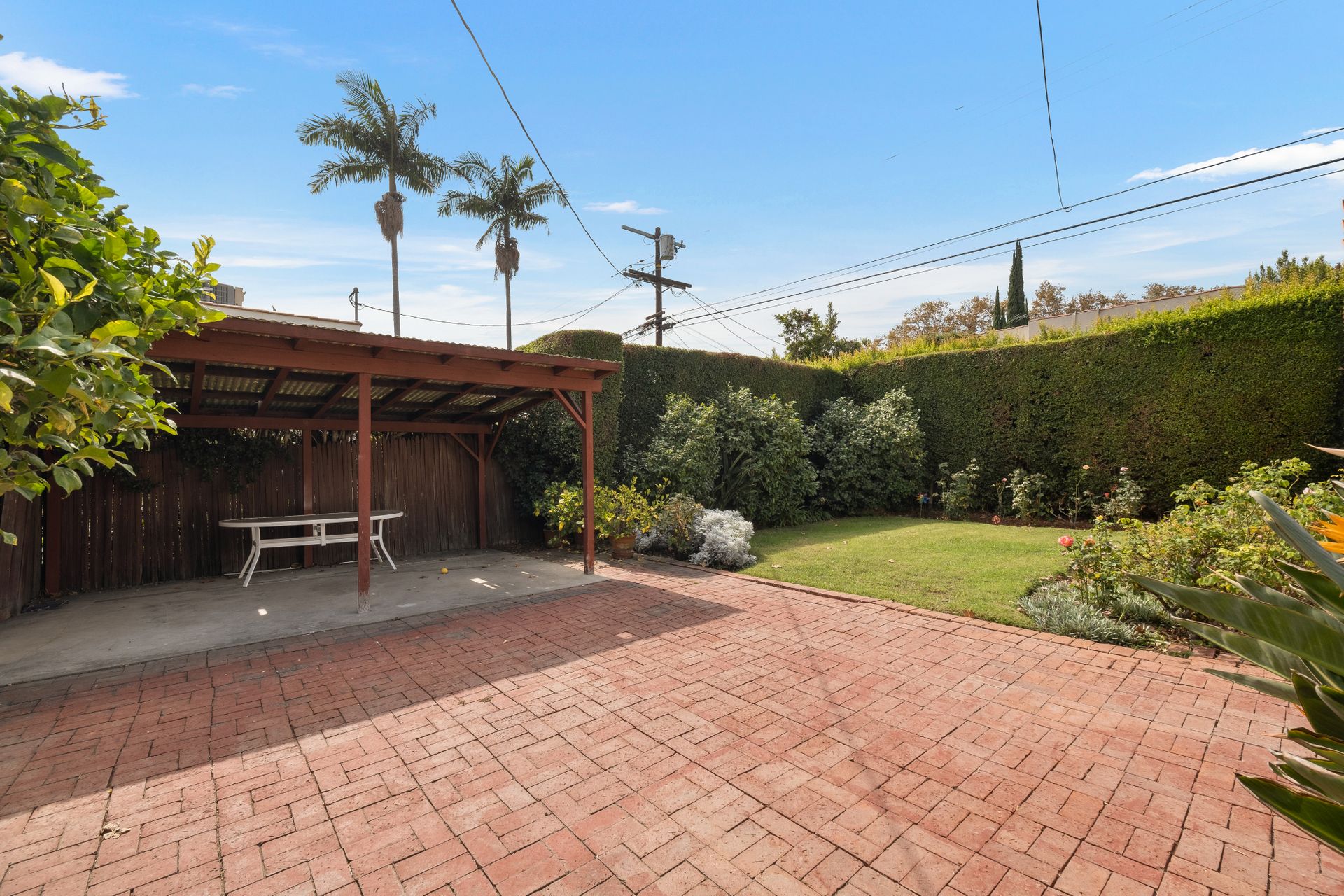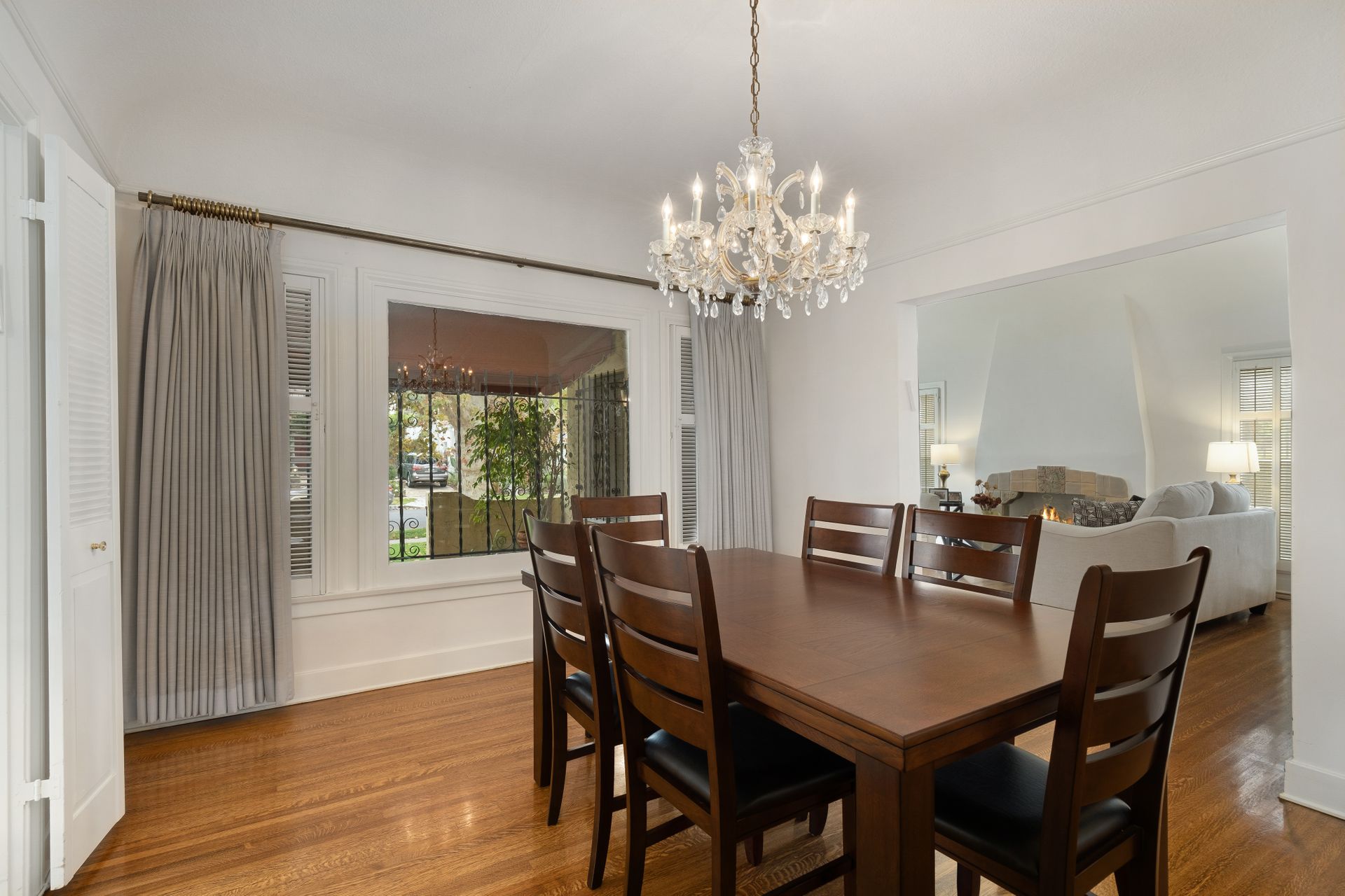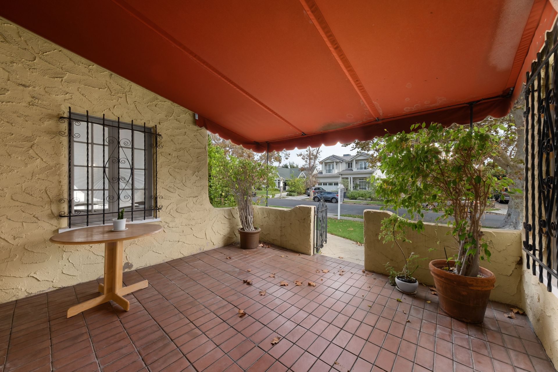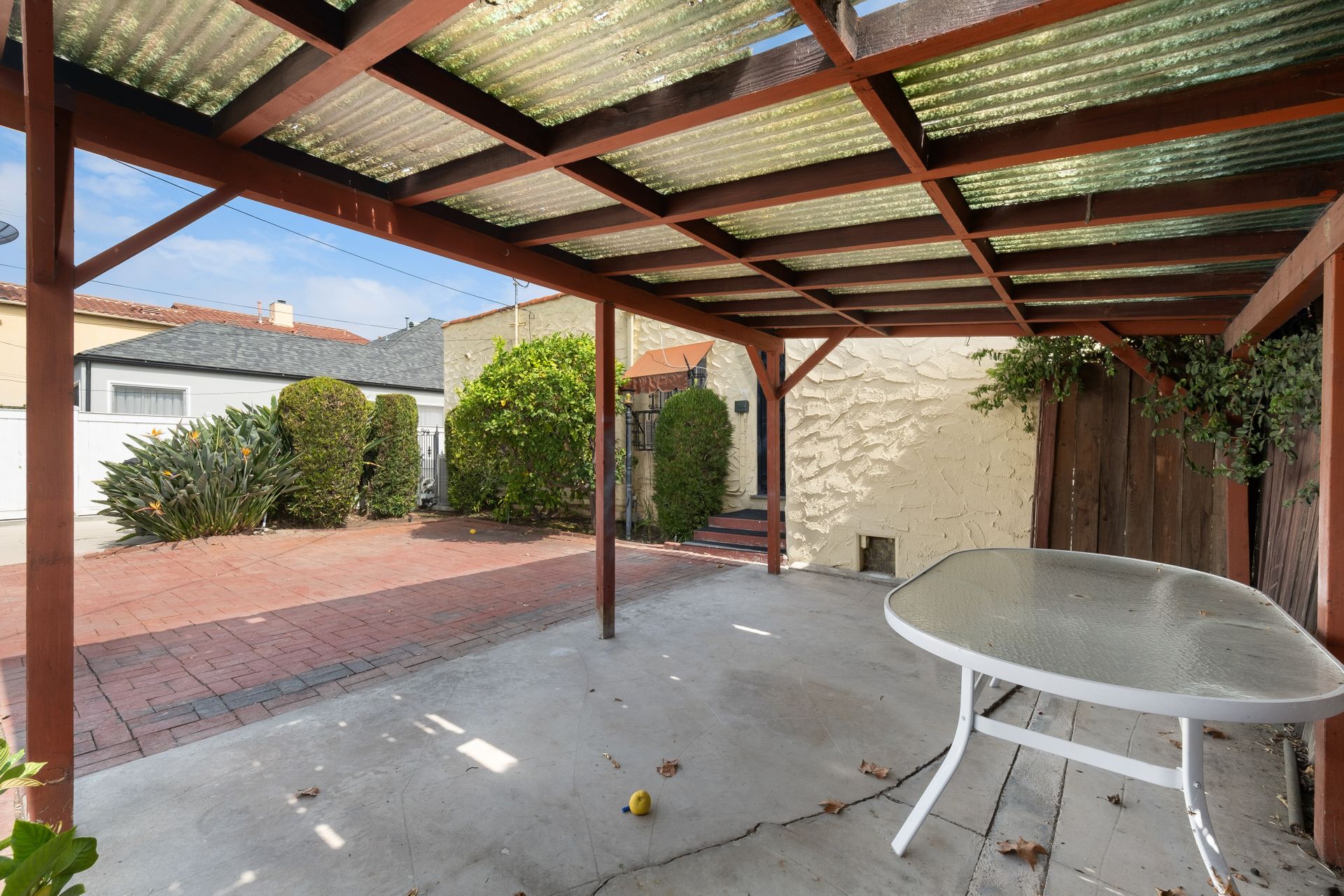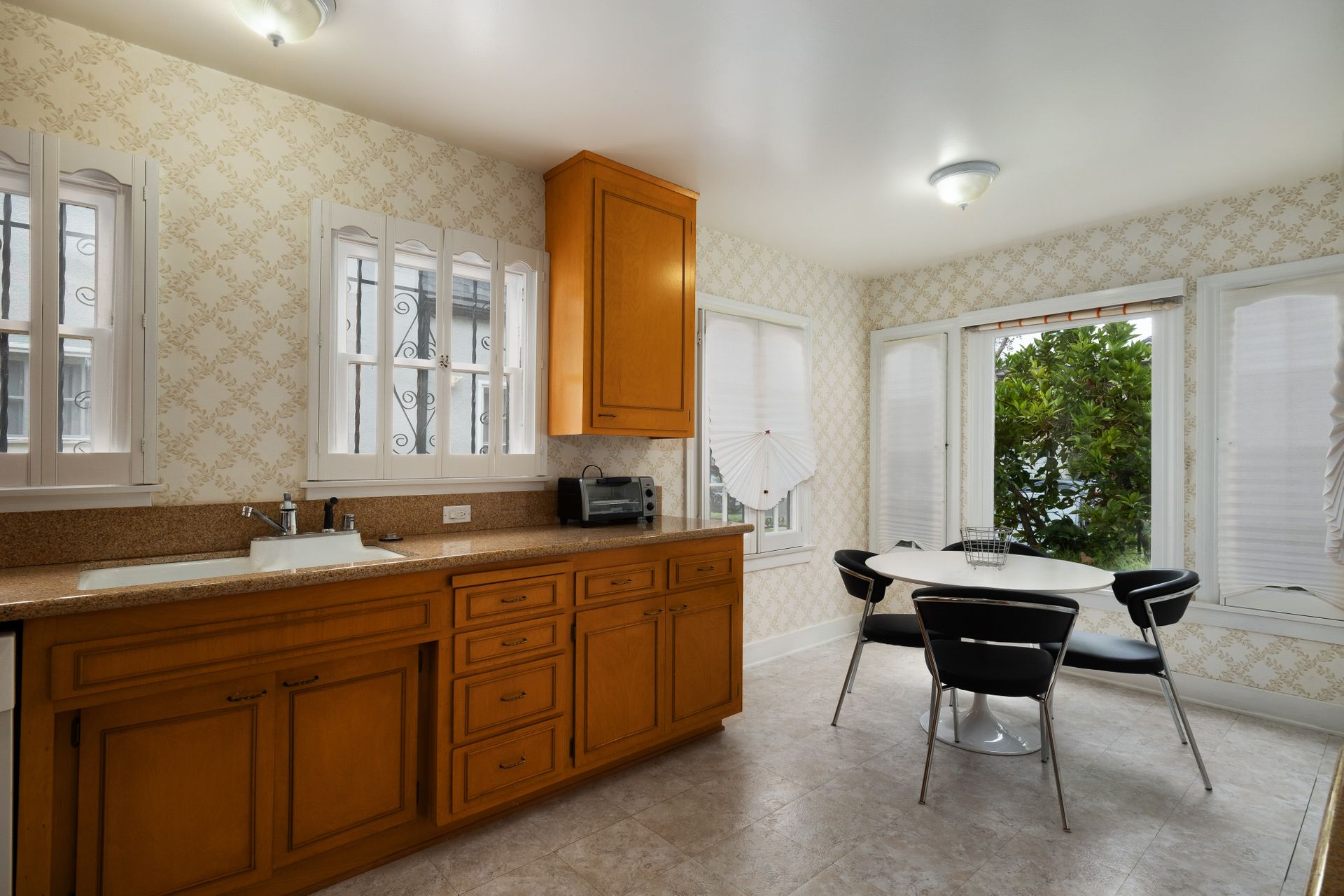 This charming Spanish home is situated on one of the best streets in Hancock Park! Enter through the inviting front porch into a bright living room with coved ceilings, a picturesque arched window and a Batchelder fireplace. The elegant dining room overlooks the front porch. The spacious kitchen offers a lovely breakfast area, built-in appliances and lots of cabinet space. The home includes three generous bedrooms and two beautifully remodeled bathrooms. Head outside to a verdant and private garden with a covered patio, a grassy area and mature fruit trees. Fantastic location, 3rd St. Elementary district.