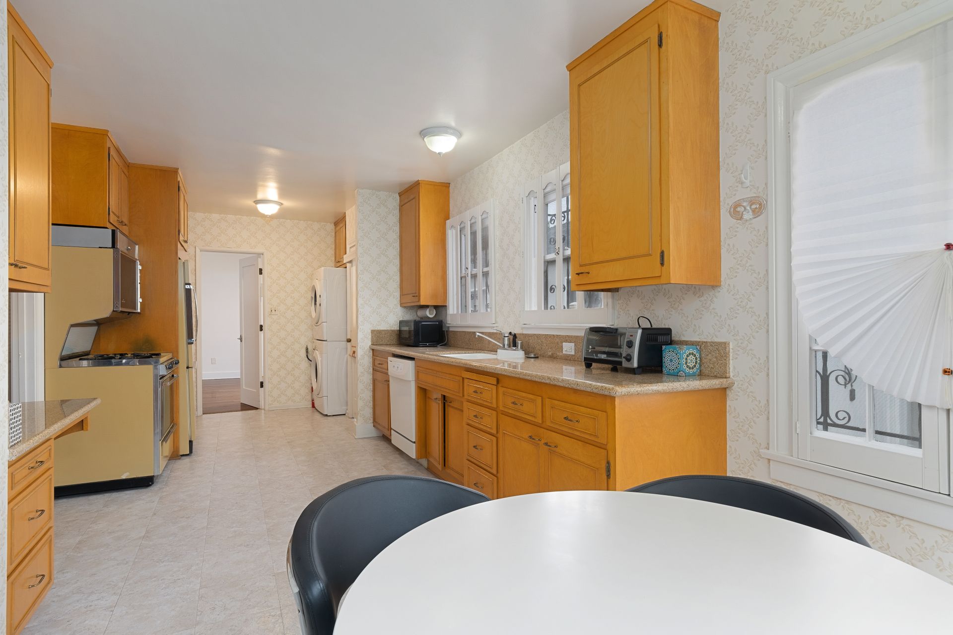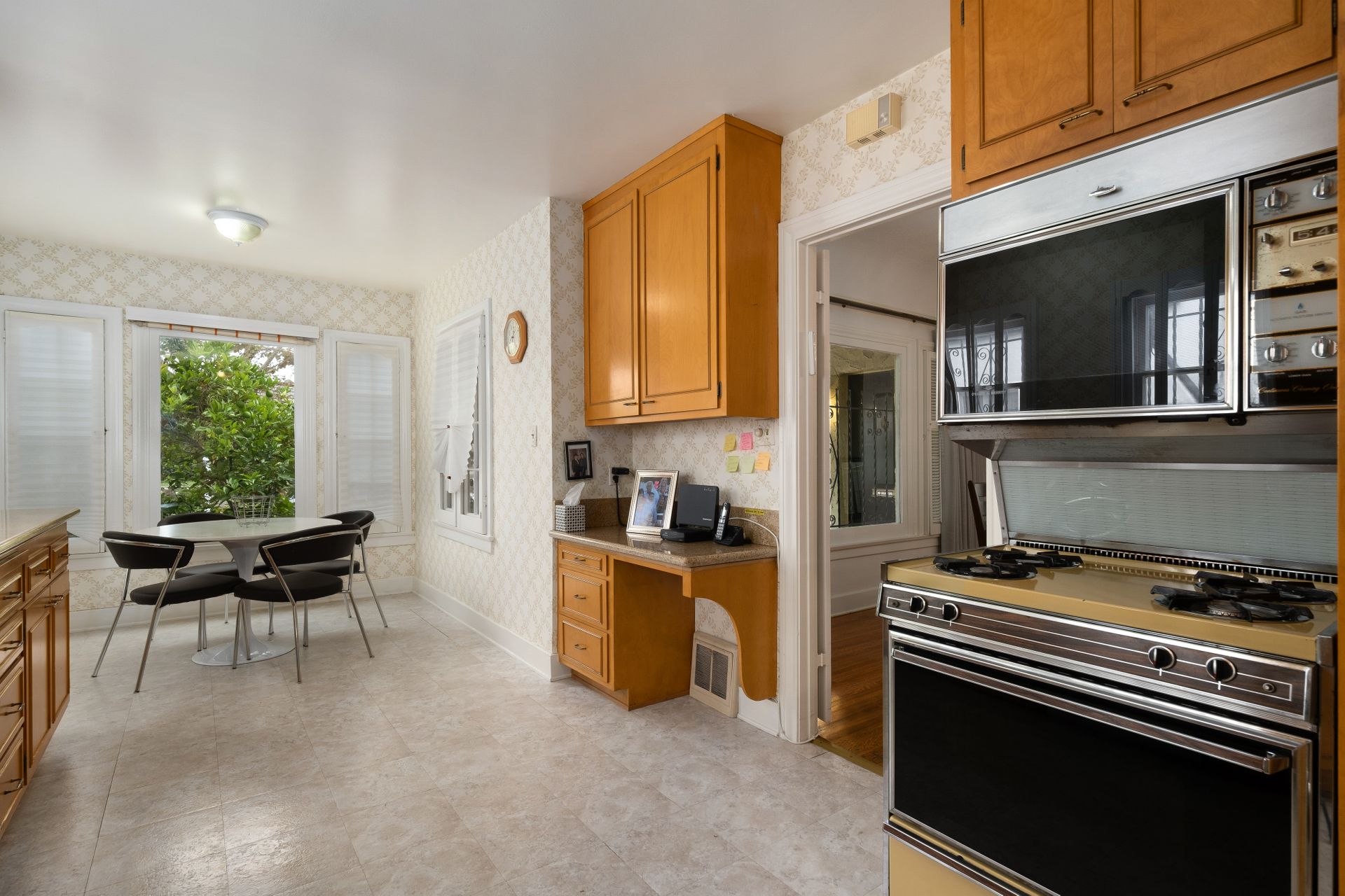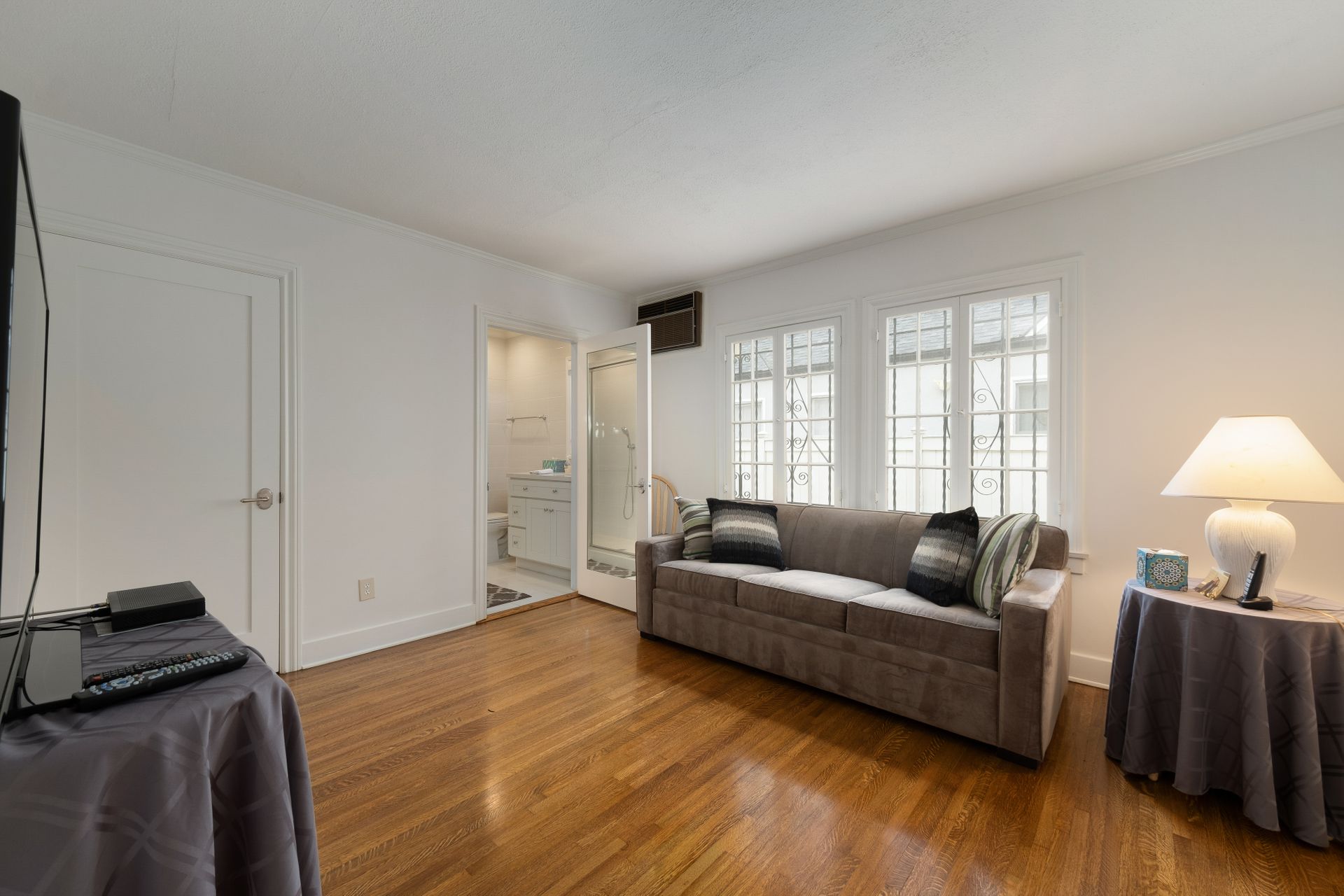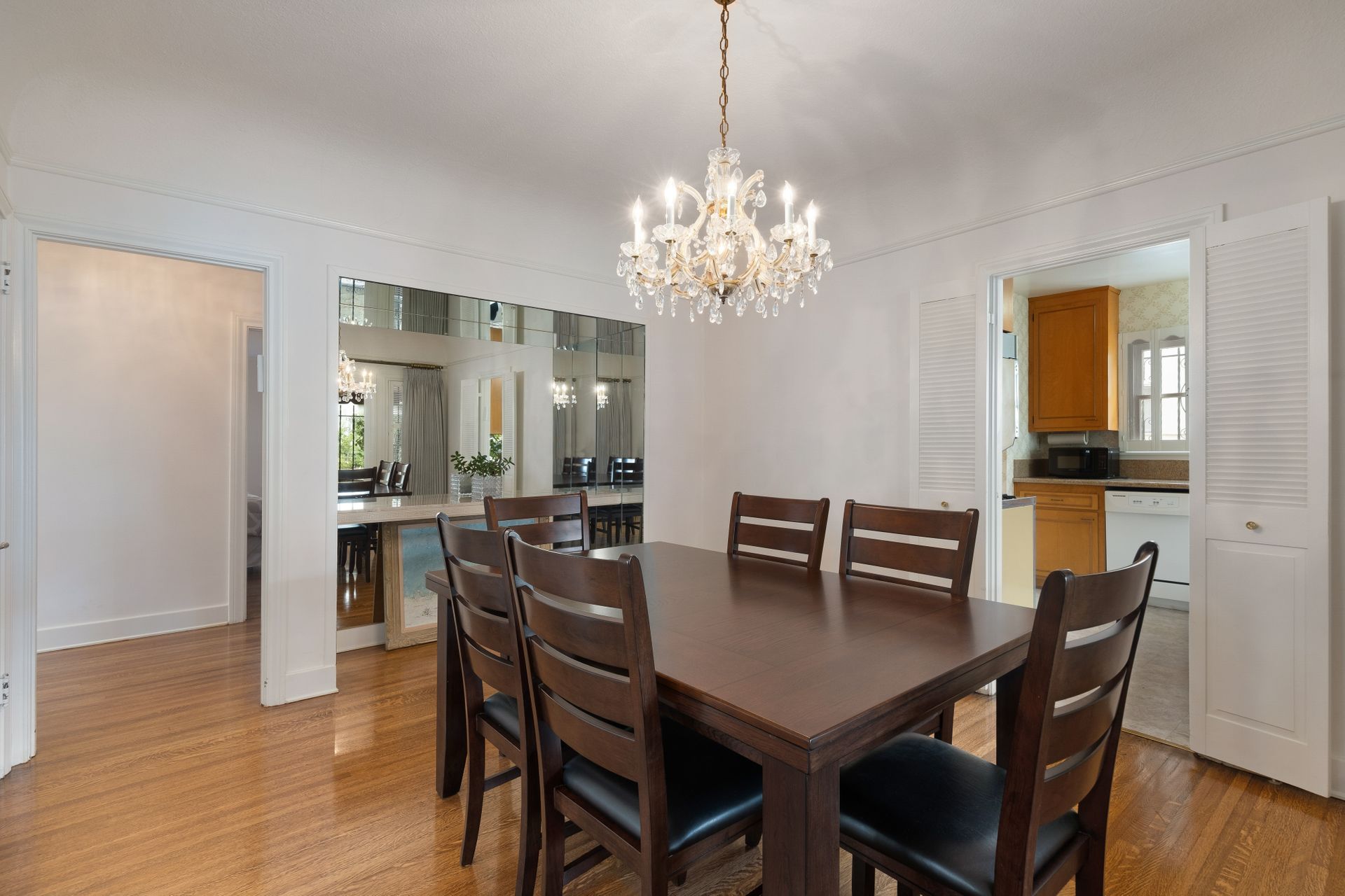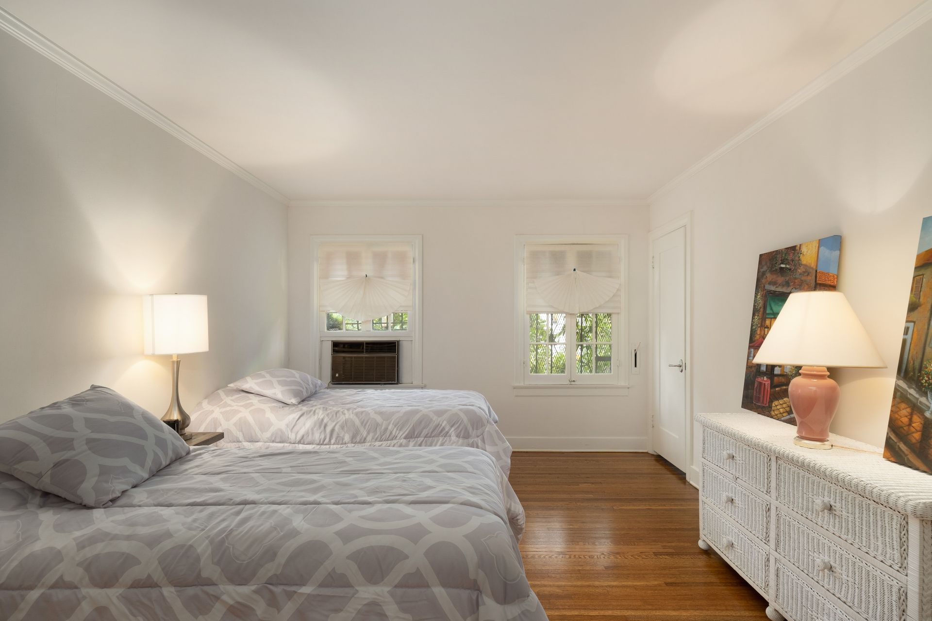 This charming Spanish home is situated on one of the best streets in Hancock Park! Enter through the inviting front porch into a bright living room with coved ceilings, a picturesque arched window and a Batchelder fireplace. The elegant dining room overlooks the front porch. The spacious kitchen offers a lovely breakfast area, built-in appliances and lots of cabinet space. The home includes three generous bedrooms and two beautifully remodeled bathrooms. Head outside to a verdant and private garden with a covered patio, a grassy area and mature fruit trees. Fantastic location, 3rd St. Elementary district.