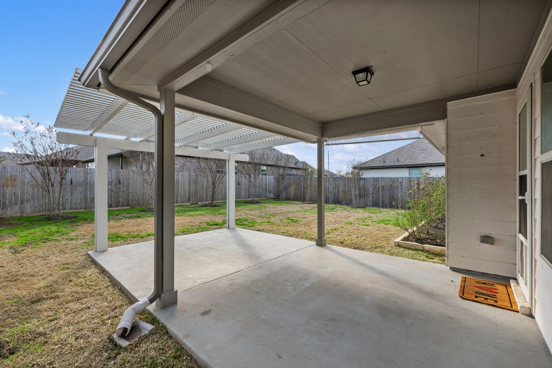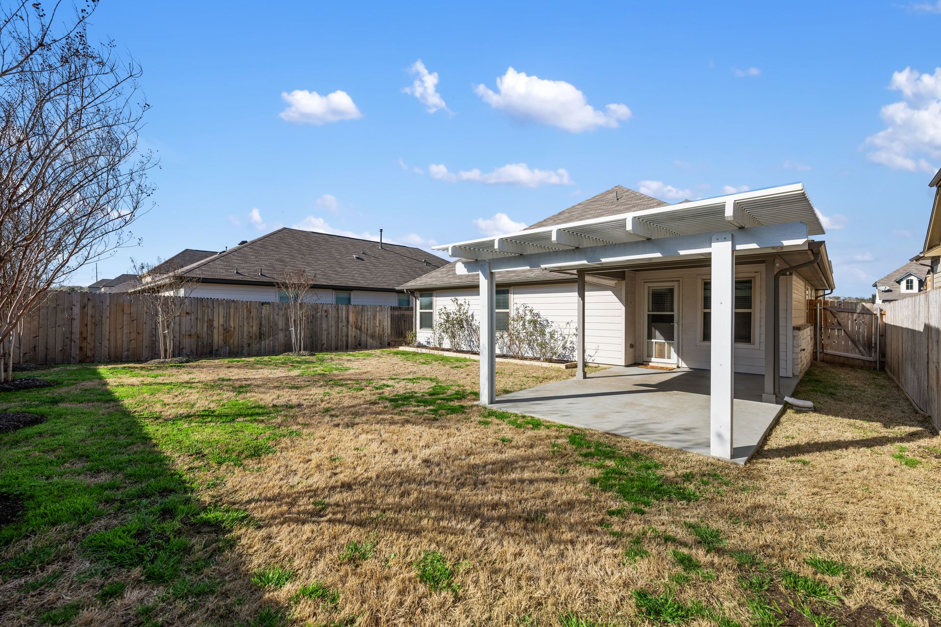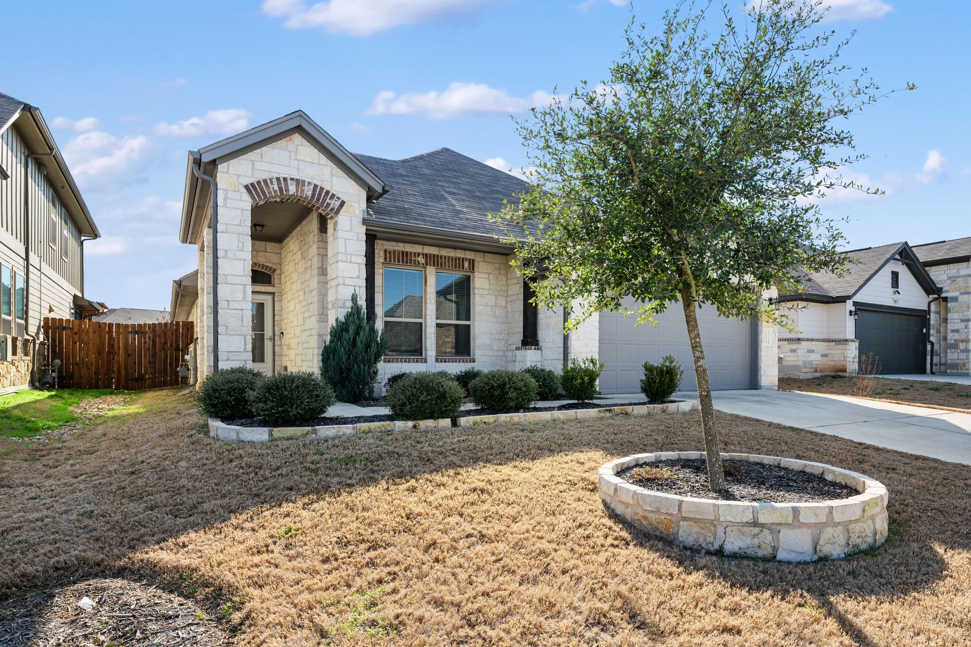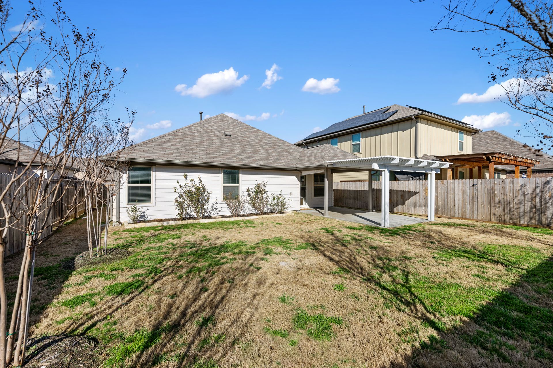 Situated in the Hills of Bear Creek, just South of Austin is this 2019-built, three bedroom, two bath home. This freshly painted home features the perfect-sized open floorplan with high ceilings and large kitchen with quartz countertops and ample cabinet space. There's just enough separation from the secondary bedrooms from your quiet primary suite in the back of the home. All the bedrooms have newly installed carpet, too! Love being outdoors? Then you'll enjoy the extended covered back patio and pergola. The Crape Myrtles will soon bloom and be a beautiful backdrop to your parties or kicking back. The HOA offers a large pool, grills, dining areas and plenty of green space throughout the neighborhood. Did I mention the low tax rate of 1.46%? With its prime location, Southpark Meadows for shopping, schools, highways and Buda & Kyle nearby. This is the right home at the right price point for you. Come take a look!