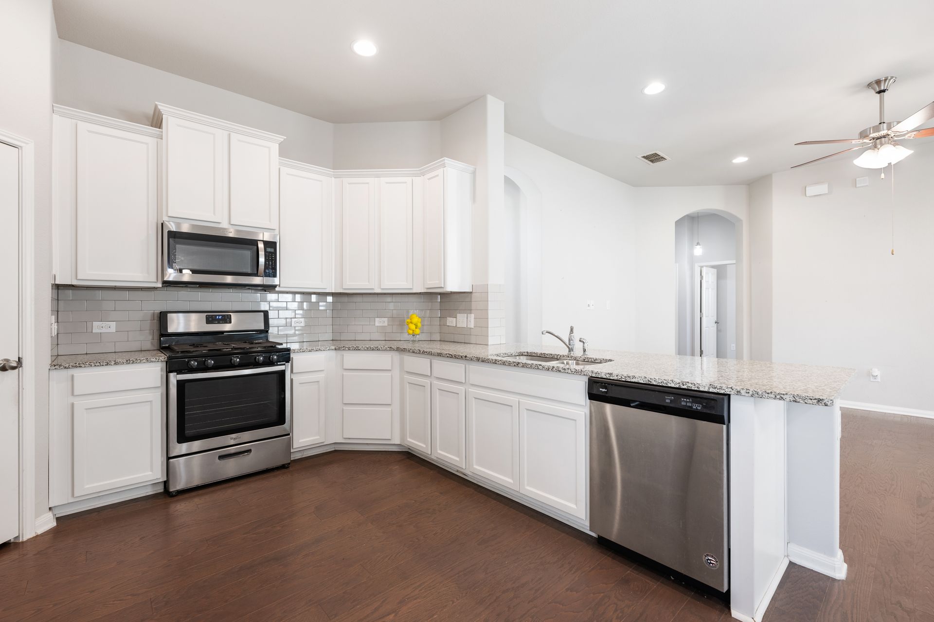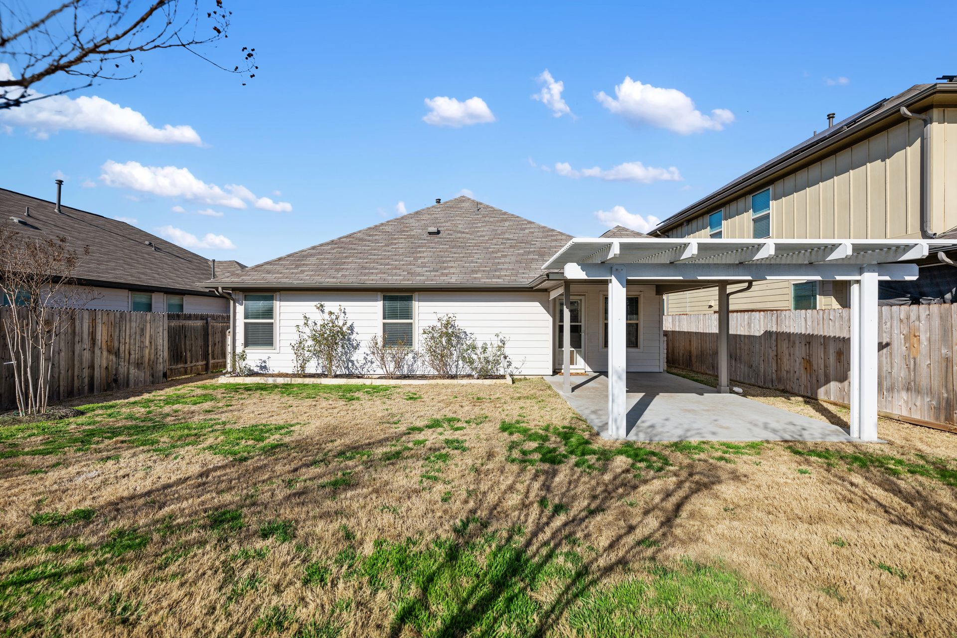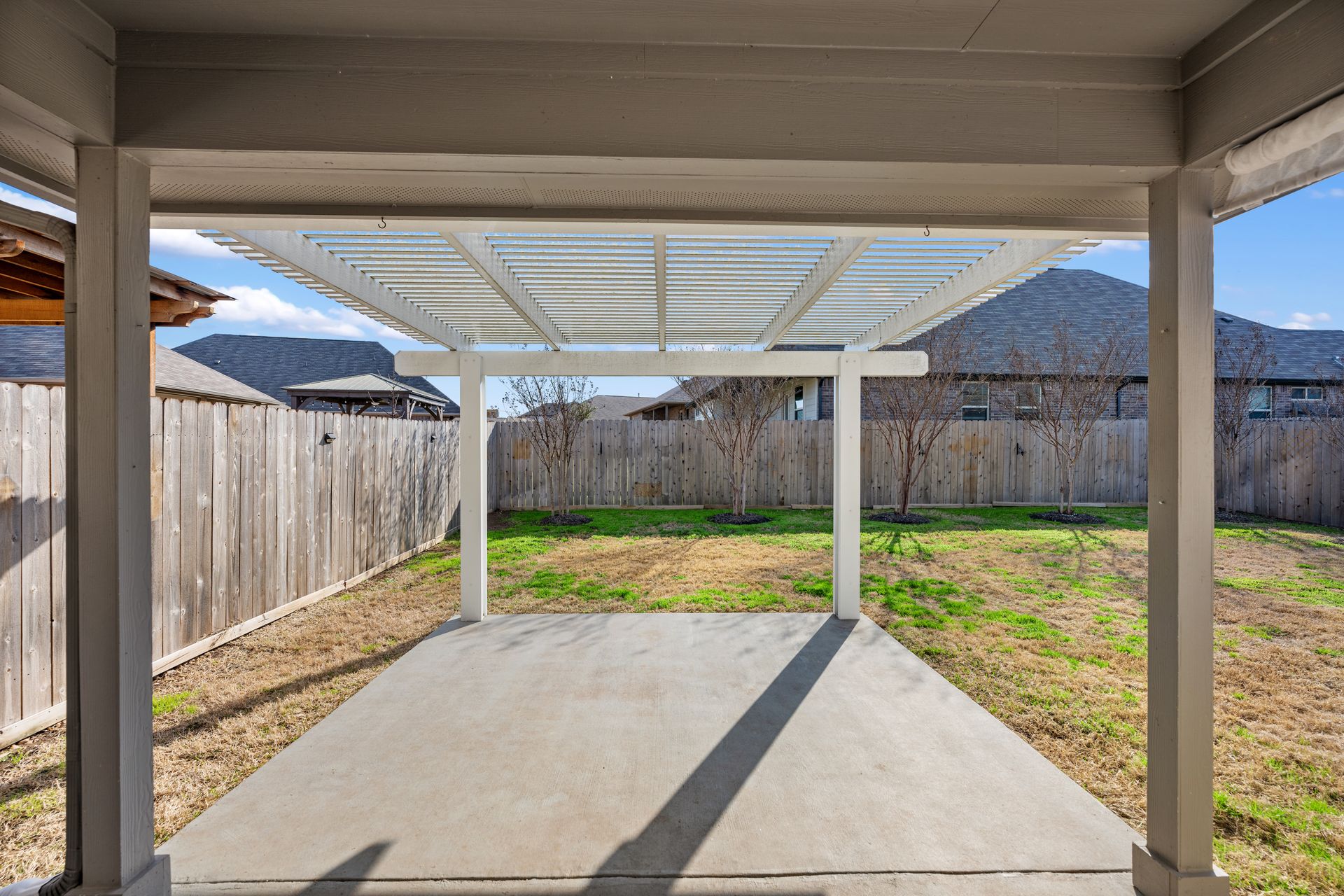 Situated in the Hills of Bear Creek, just South of Austin is this 2019-built, three bedroom, two bath home. This freshly painted home features the perfect-sized open floorplan with high ceilings and large kitchen with quartz countertops and ample cabinet space. There's just enough separation from the secondary bedrooms from your quiet primary suite in the back of the home. All the bedrooms have newly installed carpet, too! Love being outdoors? Then you'll enjoy the extended covered back patio and pergola. The Crape Myrtles will soon bloom and be a beautiful backdrop to your parties or kicking back. The HOA offers a large pool, grills, dining areas and plenty of green space throughout the neighborhood. Did I mention the low tax rate of 1.46%? With its prime location, Southpark Meadows for shopping, schools, highways and Buda & Kyle nearby. This is the right home at the right price point for you. Come take a look!