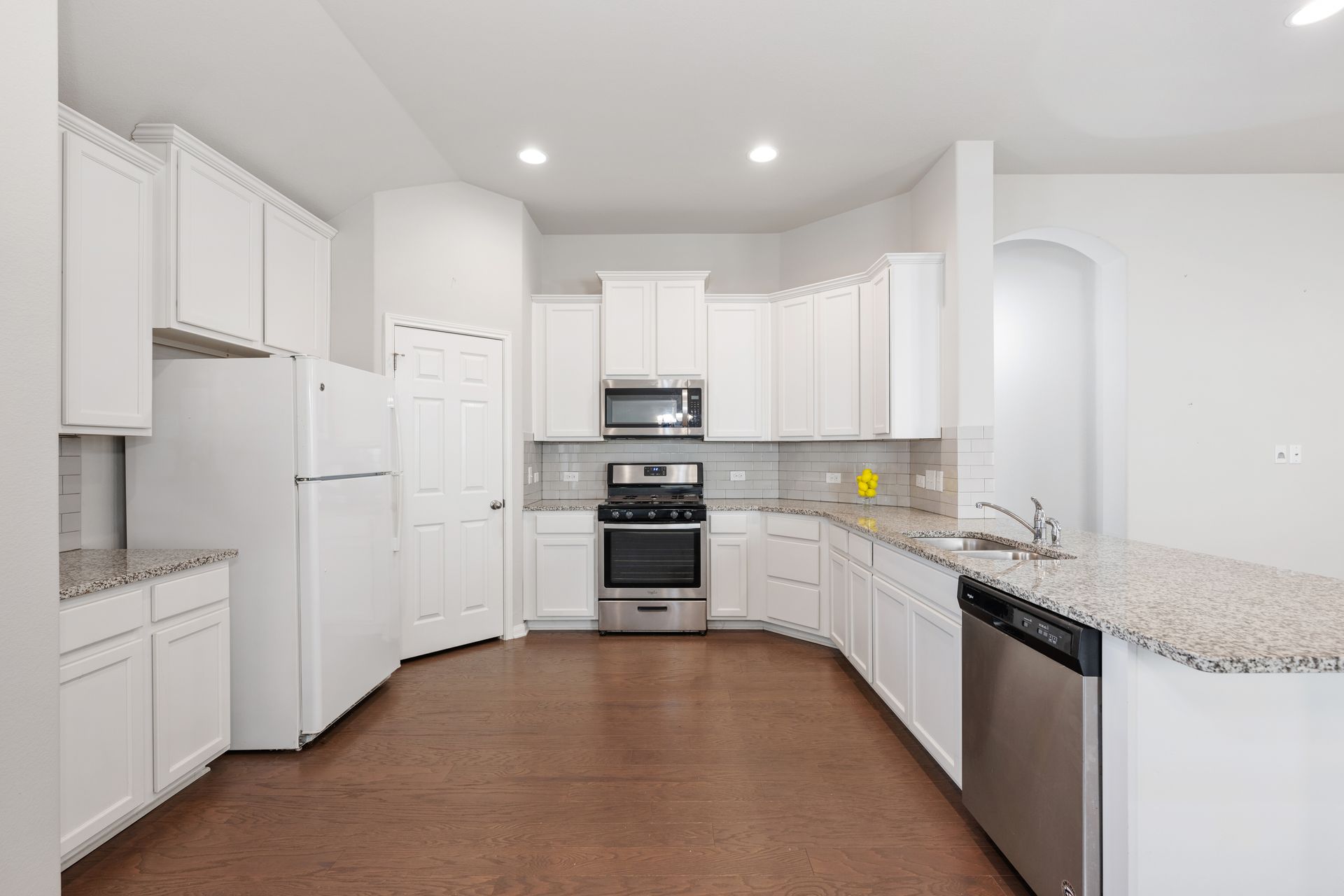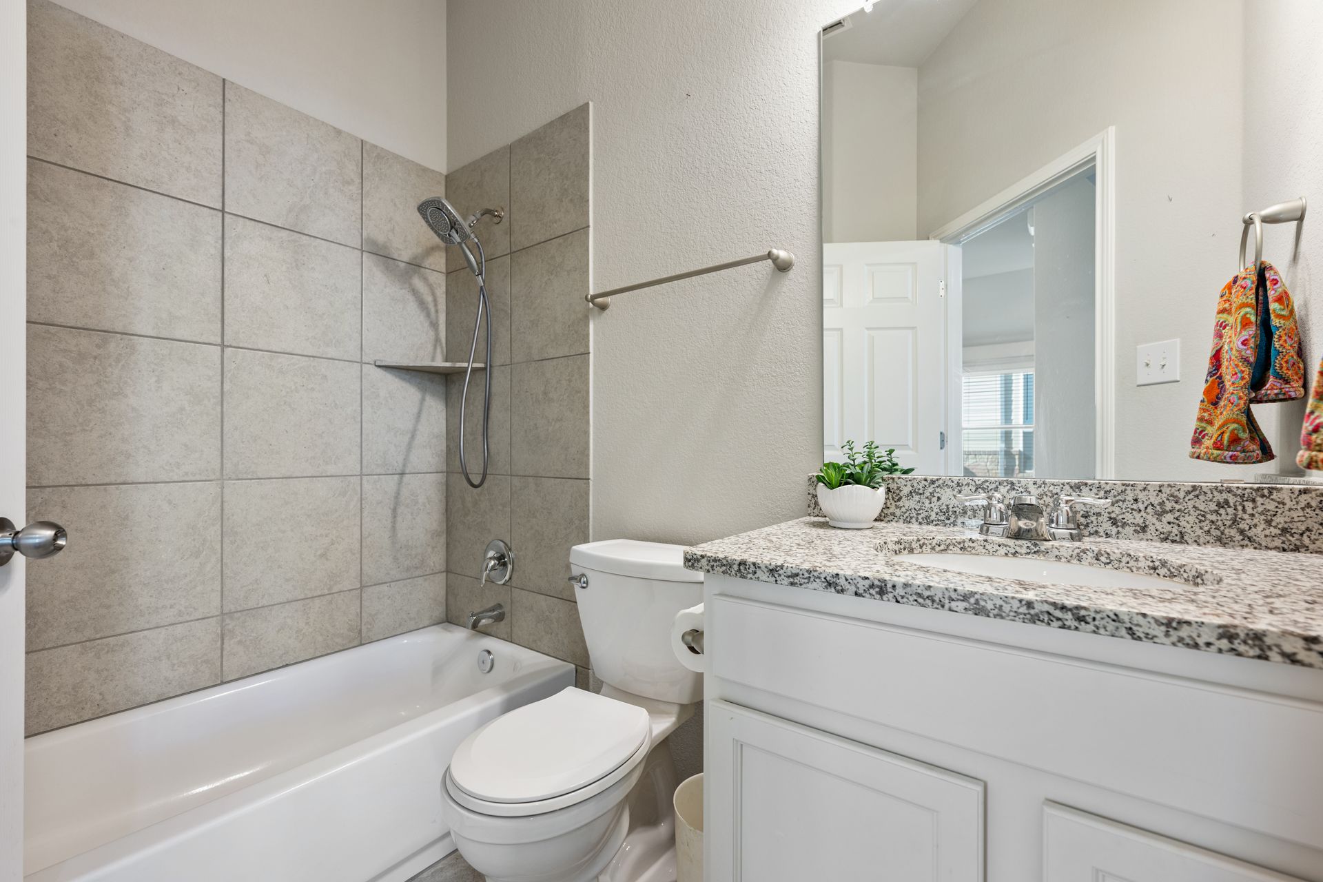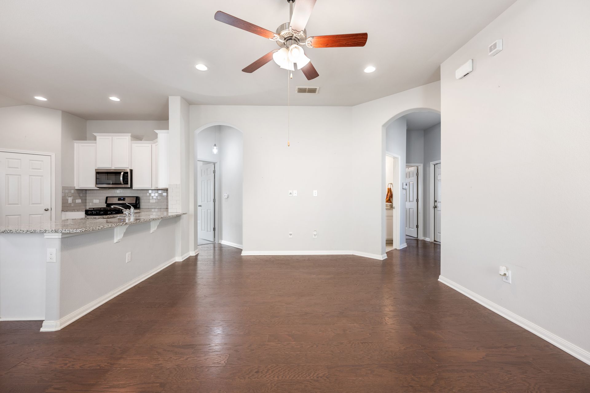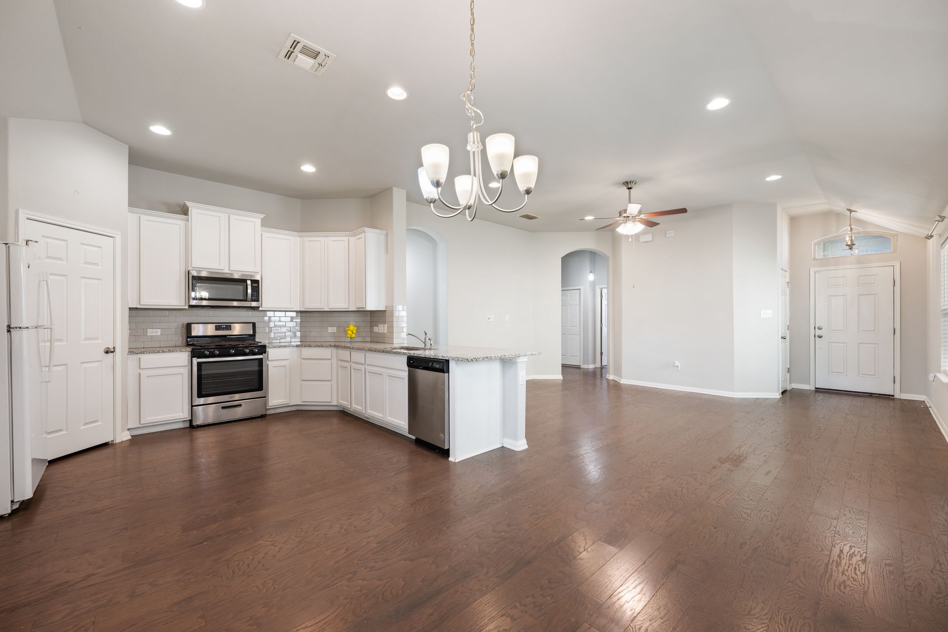 Situated in the Hills of Bear Creek, just South of Austin is this 2019-built, three bedroom, two bath home. This freshly painted home features the perfect-sized open floorplan with high ceilings and large kitchen with quartz countertops and ample cabinet space. There's just enough separation from the secondary bedrooms from your quiet primary suite in the back of the home. All the bedrooms have newly installed carpet, too! Love being outdoors? Then you'll enjoy the extended covered back patio and pergola. The Crape Myrtles will soon bloom and be a beautiful backdrop to your parties or kicking back. The HOA offers a large pool, grills, dining areas and plenty of green space throughout the neighborhood. Did I mention the low tax rate of 1.46%? With its prime location, Southpark Meadows for shopping, schools, highways and Buda & Kyle nearby. This is the right home at the right price point for you. Come take a look!