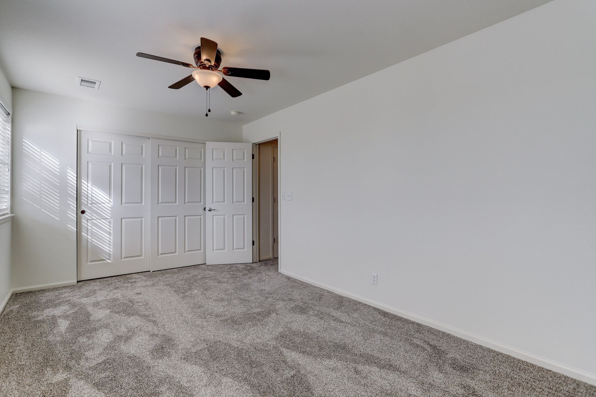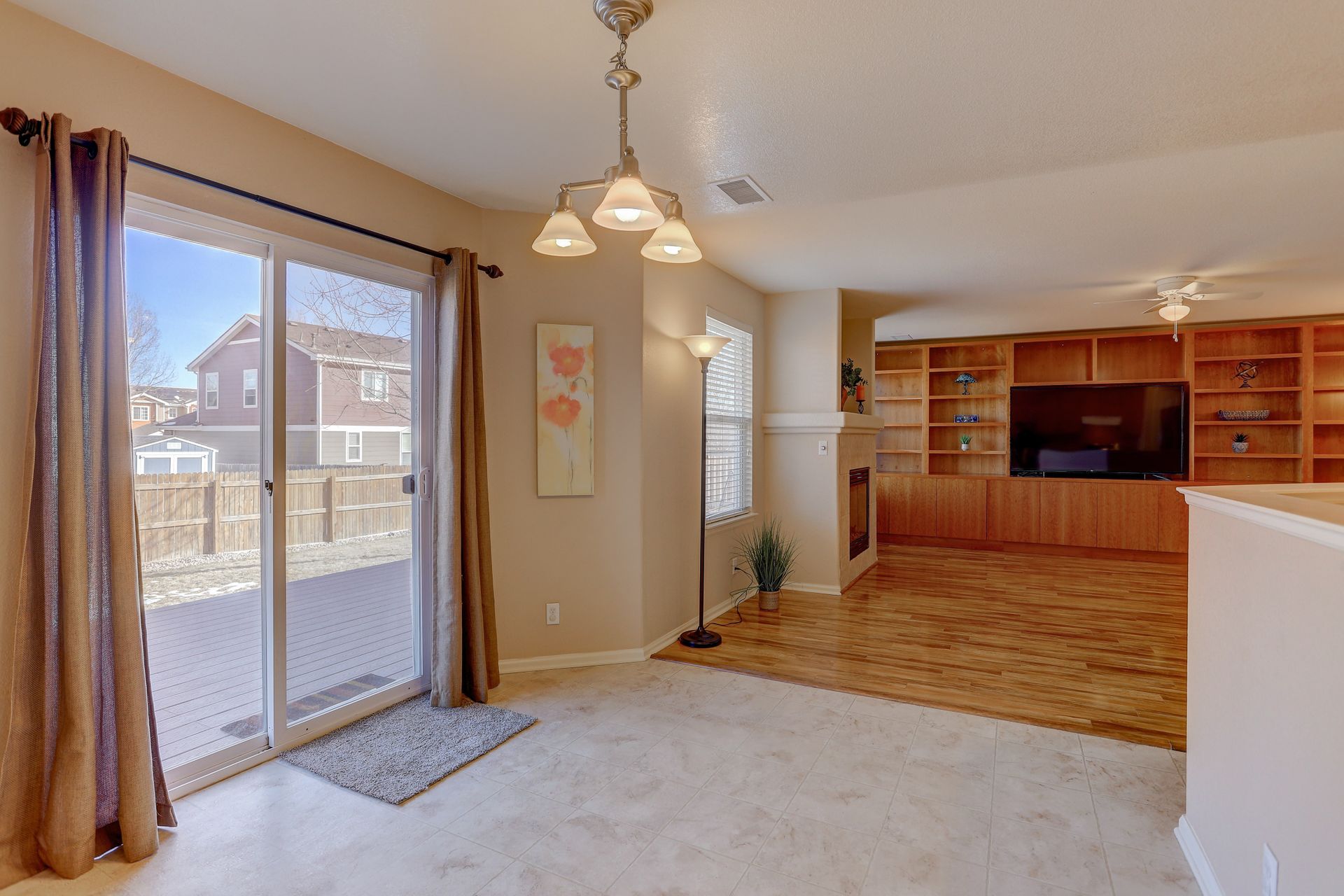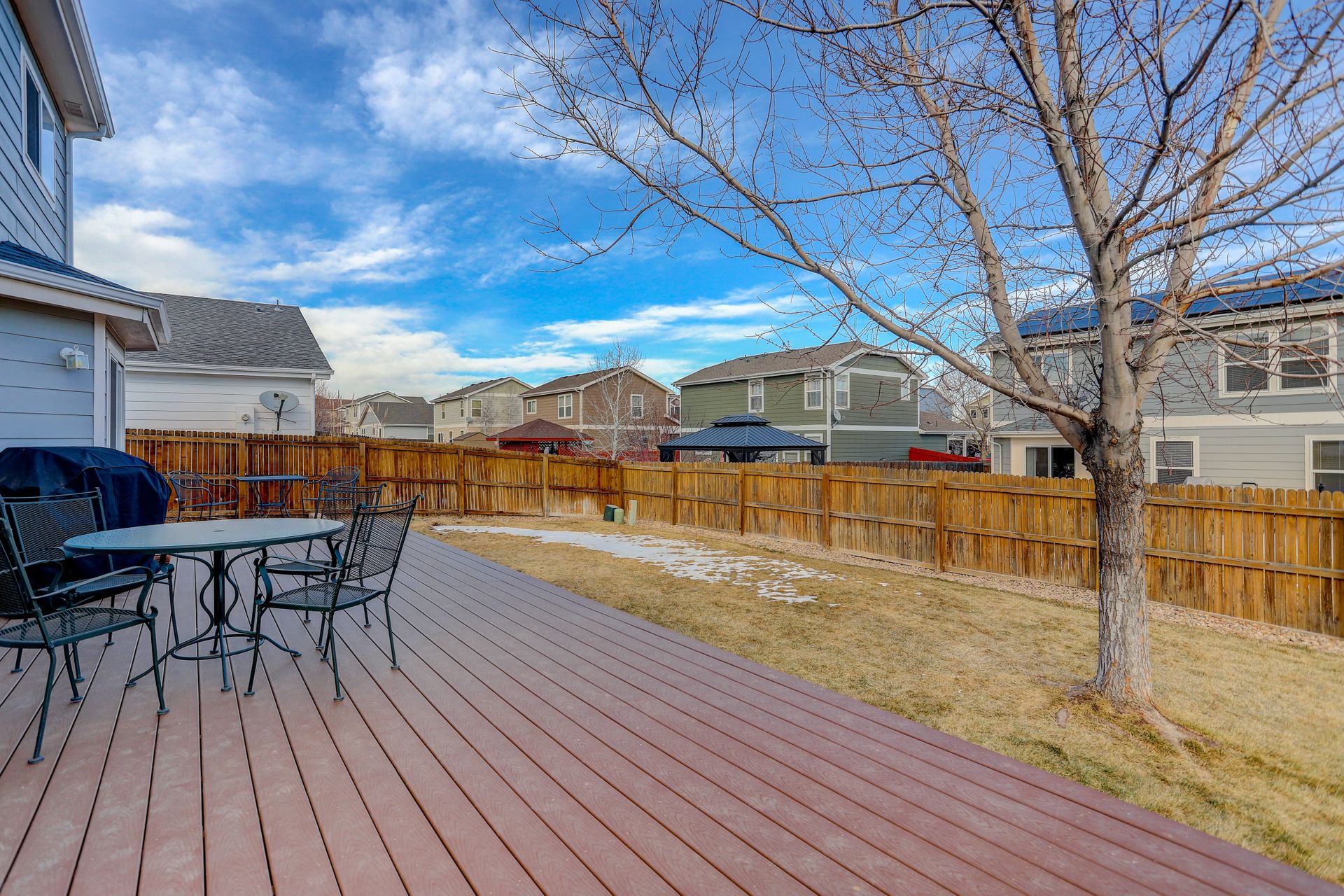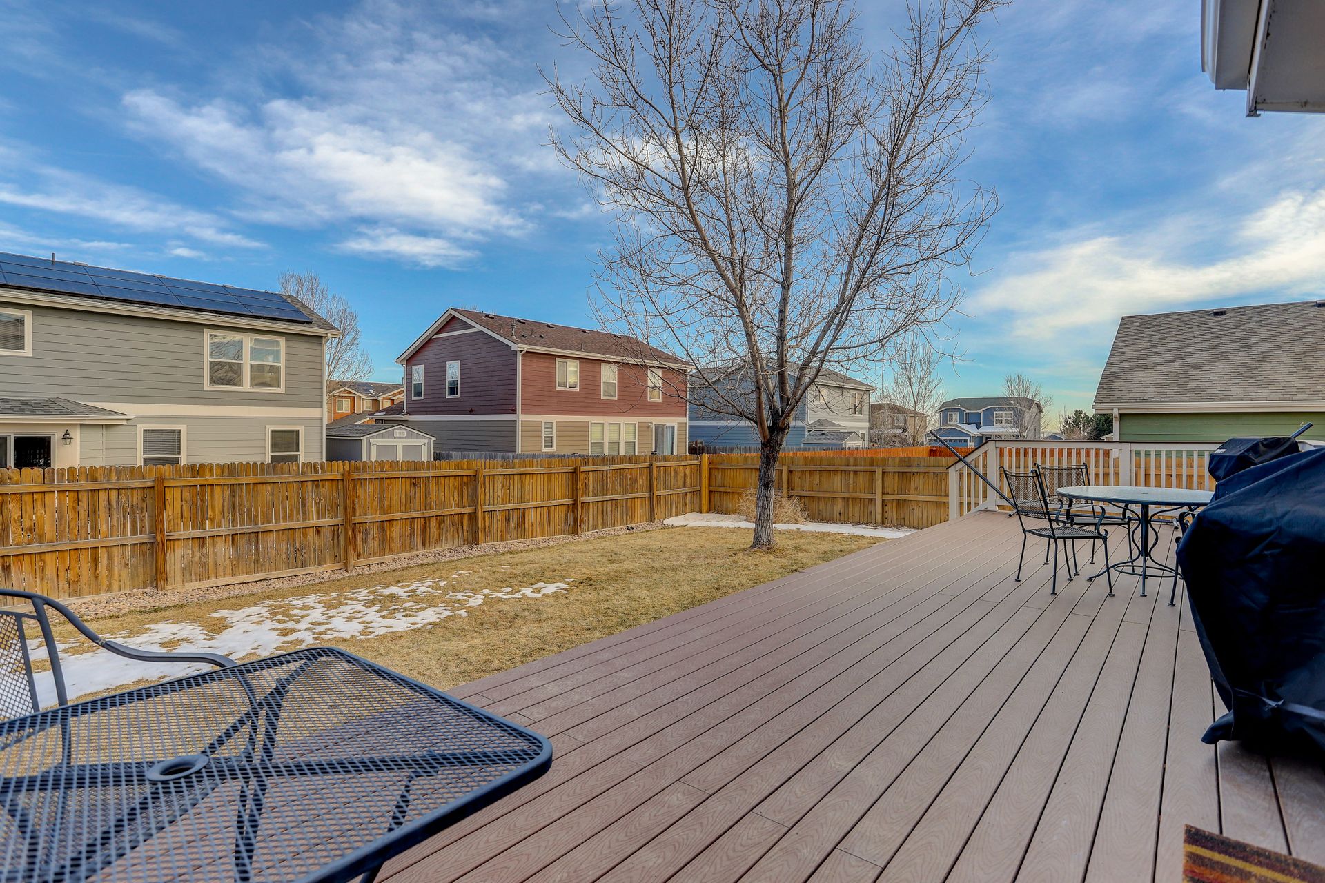 Welcome to this spacious two story home with many updated features! The living room features a cozy fireplace and a beautiful built-in cherry wood entertainment center with tons of storage. Kitchen with stainless steel appliances and roll out shelving opens to dining area with a sliding glass door to deck. The newer Trex deck spans the entire length of the home and is perfect for your BBQ's and outdoor entertaining. The backyard is fenced and has plenty of room for pets to roam or planting a garden. The laundry room is complete with LG washer/dryer and located on the main level. Upstairs has new plush carpet and features three bedrooms and two full baths. The main suite is complete with attached bath and walk-in closet. The second bedroom is generously sized and has a closet that spans the length of the room. The two-car attached garage has natural light, storage shelves and is fully dry walled. This home also has Samsung solar panels for energy savings. Springvale Park is blocks away and there are walking paths throughout the community. Located close to shopping and Trail Winds Rec Center with pool and dog park. This home has it all and it won't last long!
