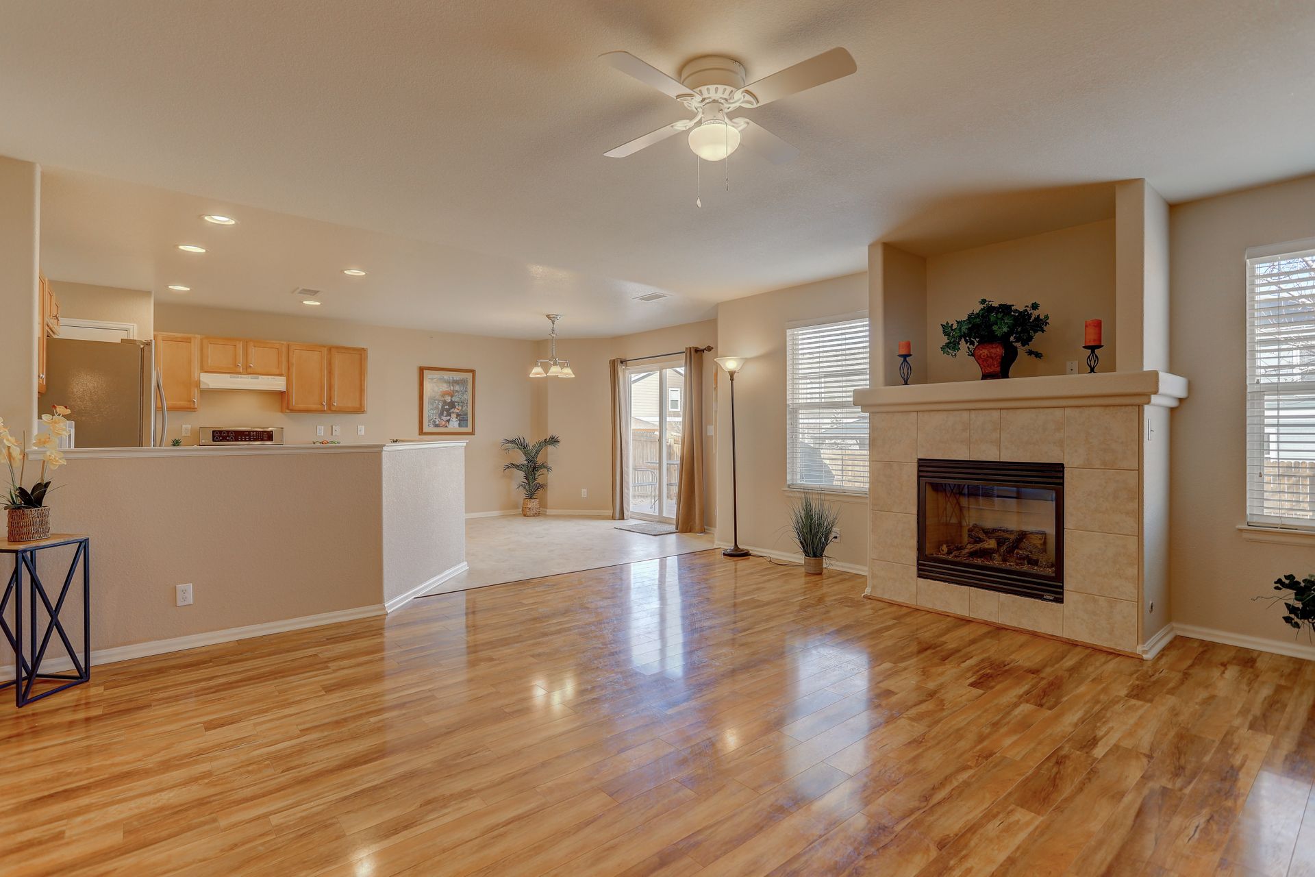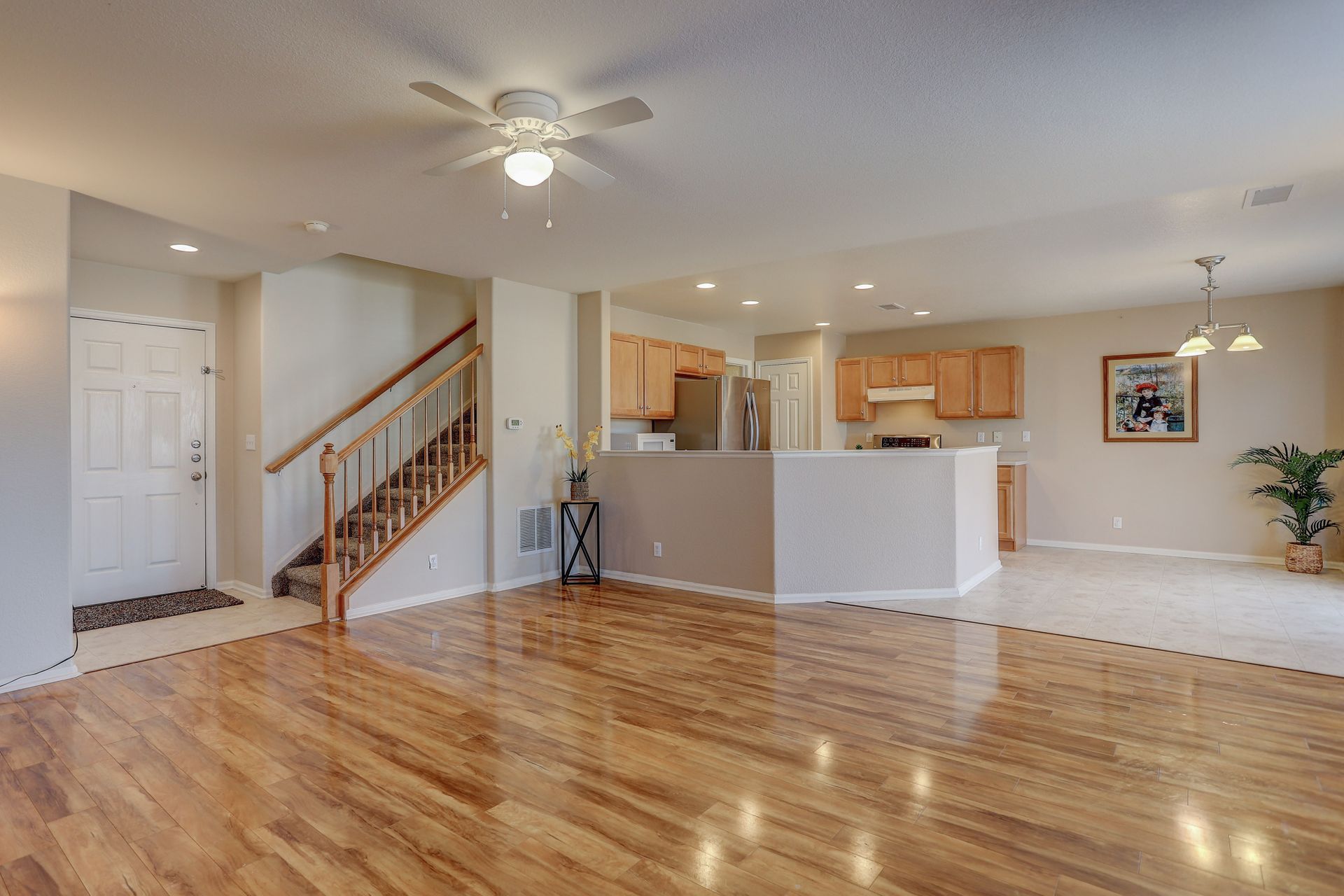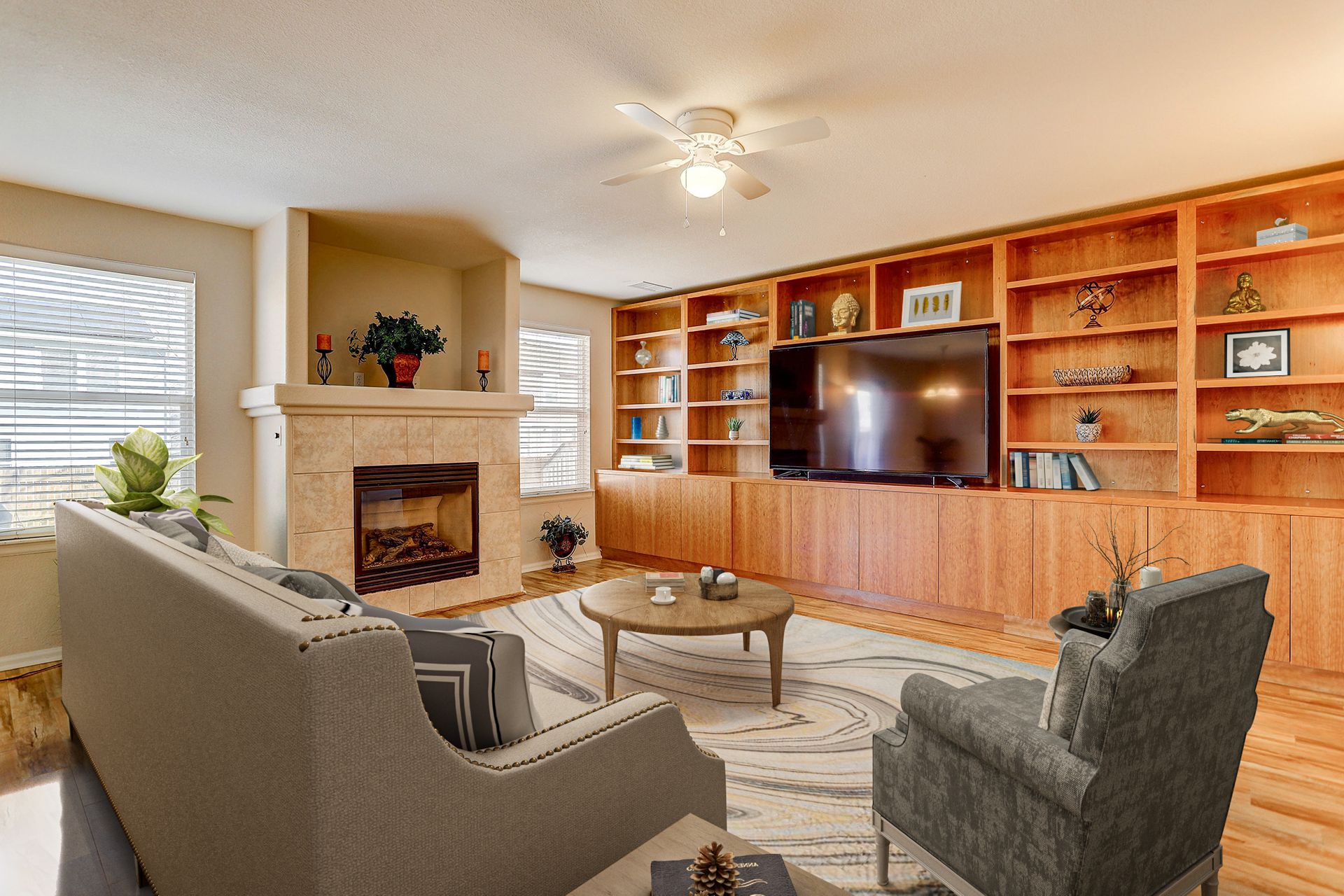 Welcome to this spacious two story home with many updated features! The living room features a cozy fireplace and a beautiful built-in cherry wood entertainment center with tons of storage. Kitchen with stainless steel appliances and roll out shelving opens to dining area with a sliding glass door to deck. The newer Trex deck spans the entire length of the home and is perfect for your BBQ's and outdoor entertaining. The backyard is fenced and has plenty of room for pets to roam or planting a garden. The laundry room is complete with LG washer/dryer and located on the main level. Upstairs has new plush carpet and features three bedrooms and two full baths. The main suite is complete with attached bath and walk-in closet. The second bedroom is generously sized and has a closet that spans the length of the room. The two-car attached garage has natural light, storage shelves and is fully dry walled. This home also has Samsung solar panels for energy savings. Springvale Park is blocks away and there are walking paths throughout the community. Located close to shopping and Trail Winds Rec Center with pool and dog park. This home has it all and it won't last long!