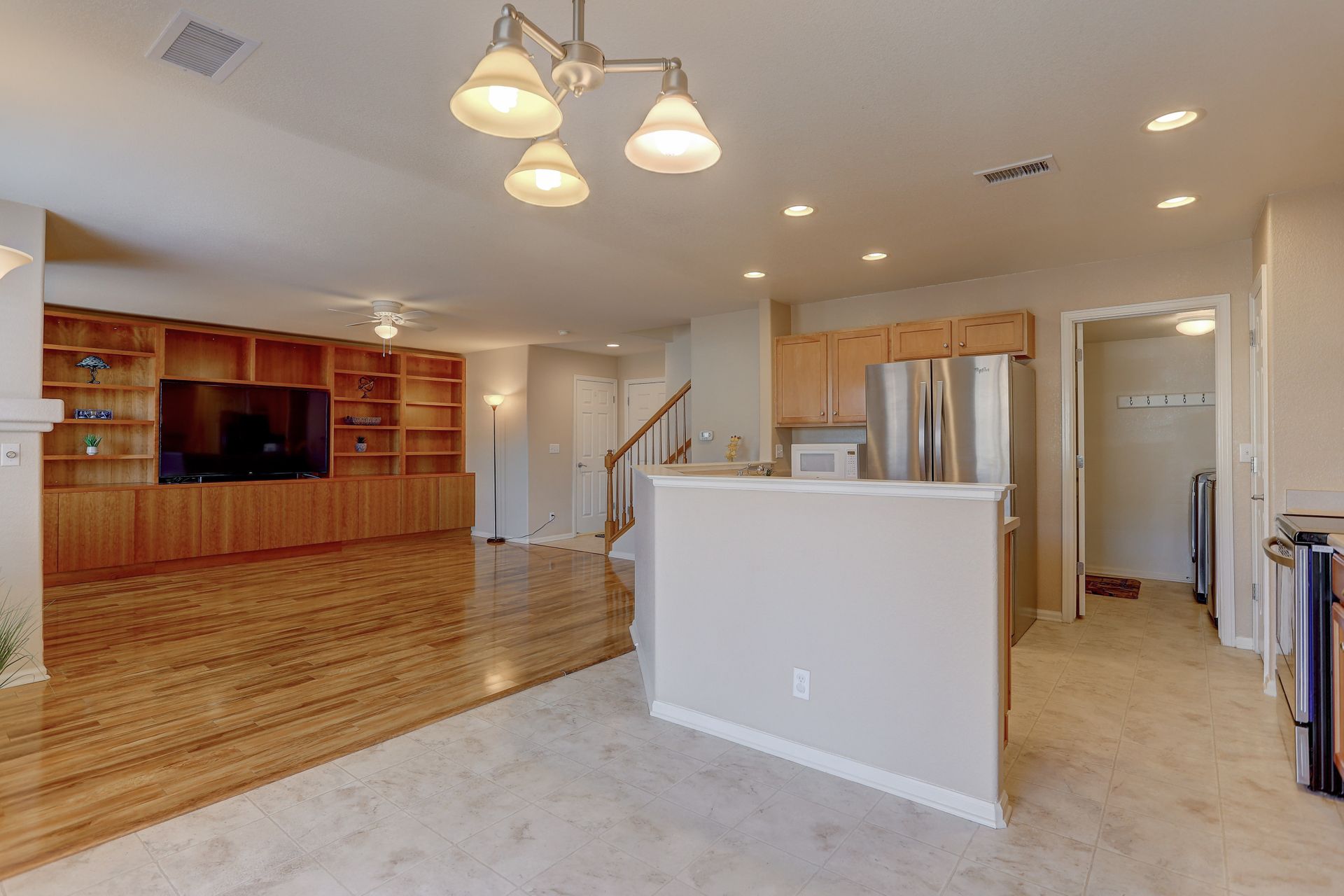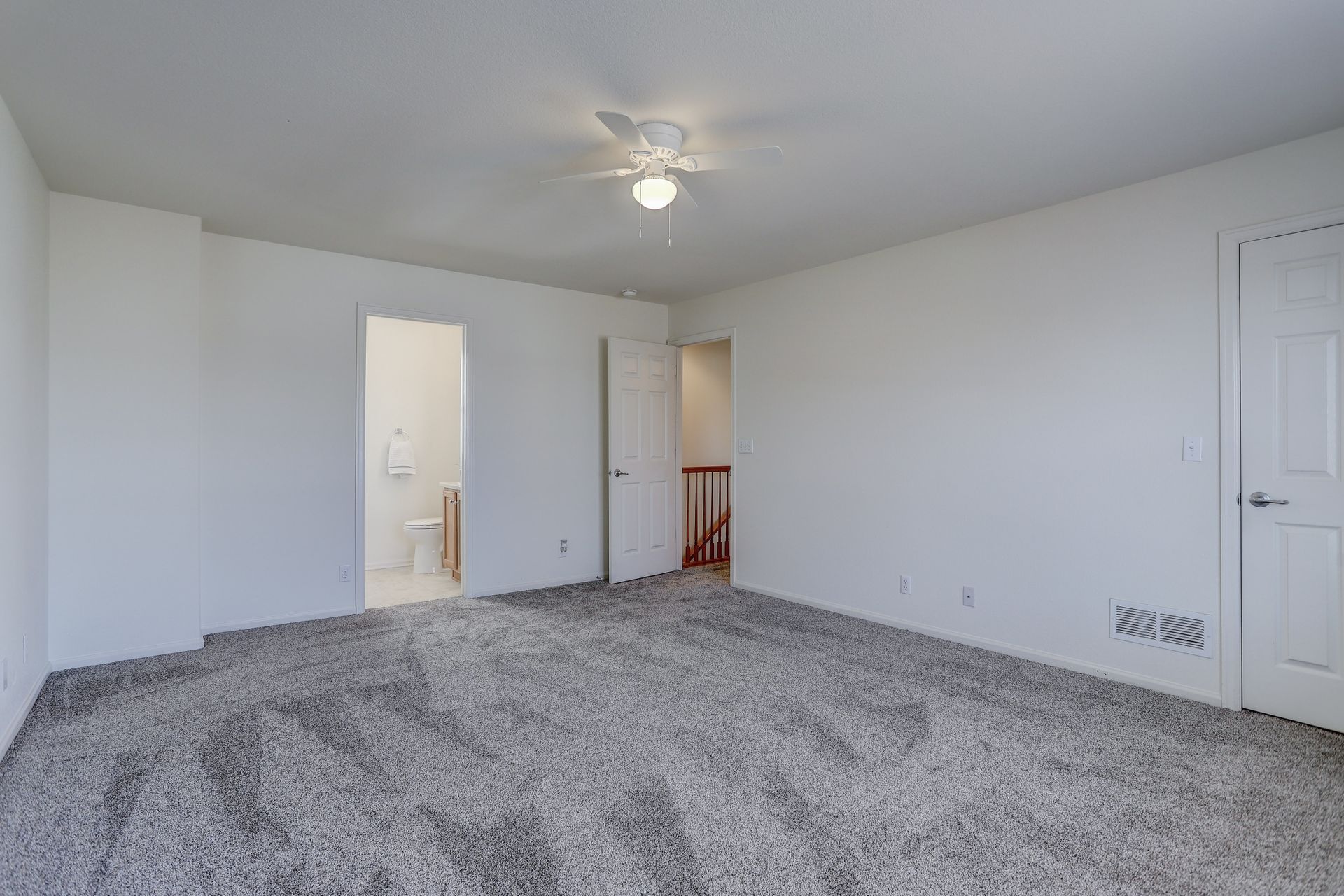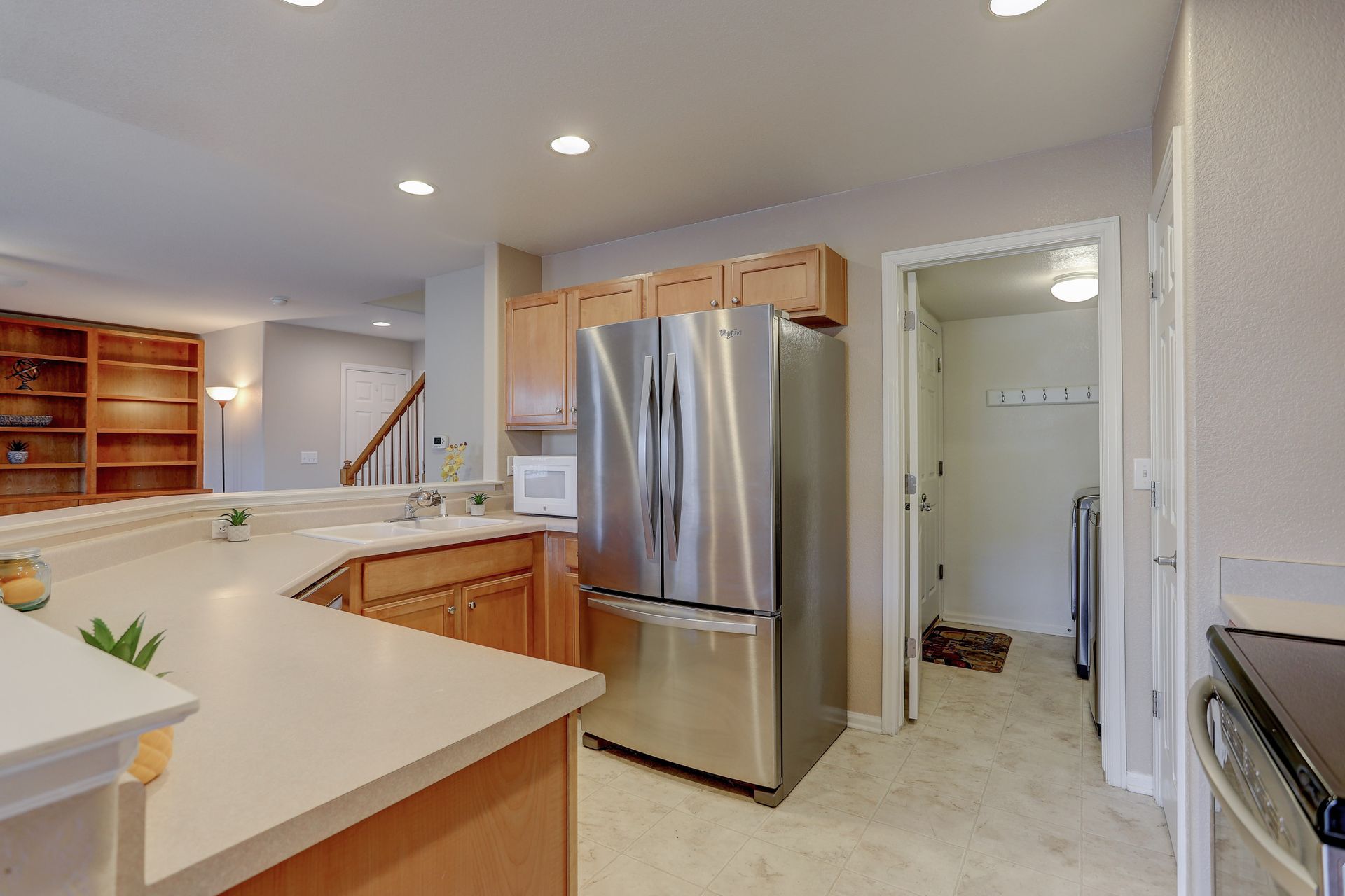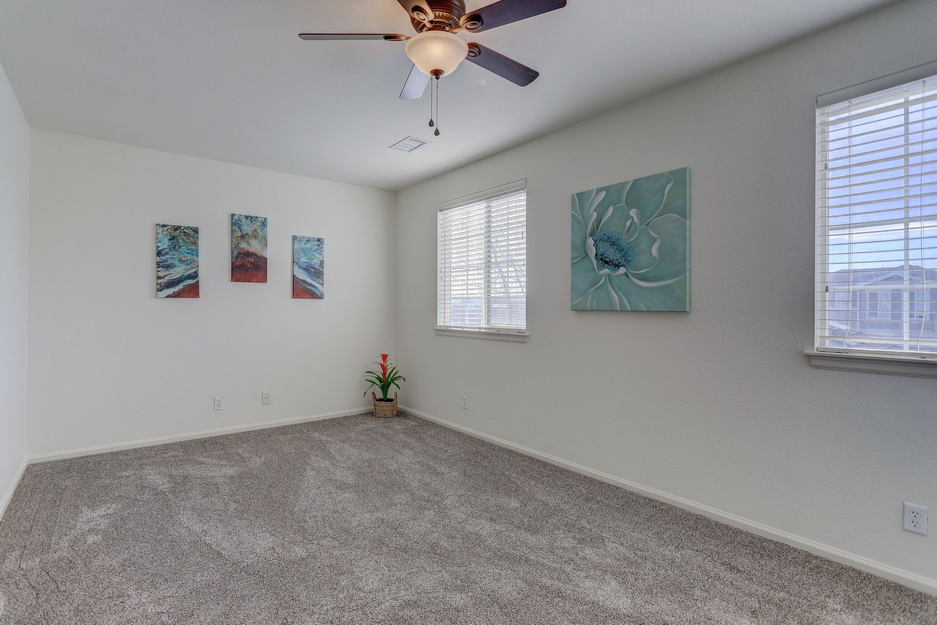 Welcome to this spacious two story home with many updated features! The living room features a cozy fireplace and a beautiful built-in cherry wood entertainment center with tons of storage. Kitchen with stainless steel appliances and roll out shelving opens to dining area with a sliding glass door to deck. The newer Trex deck spans the entire length of the home and is perfect for your BBQ's and outdoor entertaining. The backyard is fenced and has plenty of room for pets to roam or planting a garden. The laundry room is complete with LG washer/dryer and located on the main level. Upstairs has new plush carpet and features three bedrooms and two full baths. The main suite is complete with attached bath and walk-in closet. The second bedroom is generously sized and has a closet that spans the length of the room. The two-car attached garage has natural light, storage shelves and is fully dry walled. This home also has Samsung solar panels for energy savings. Springvale Park is blocks away and there are walking paths throughout the community. Located close to shopping and Trail Winds Rec Center with pool and dog park. This home has it all and it won't last long!