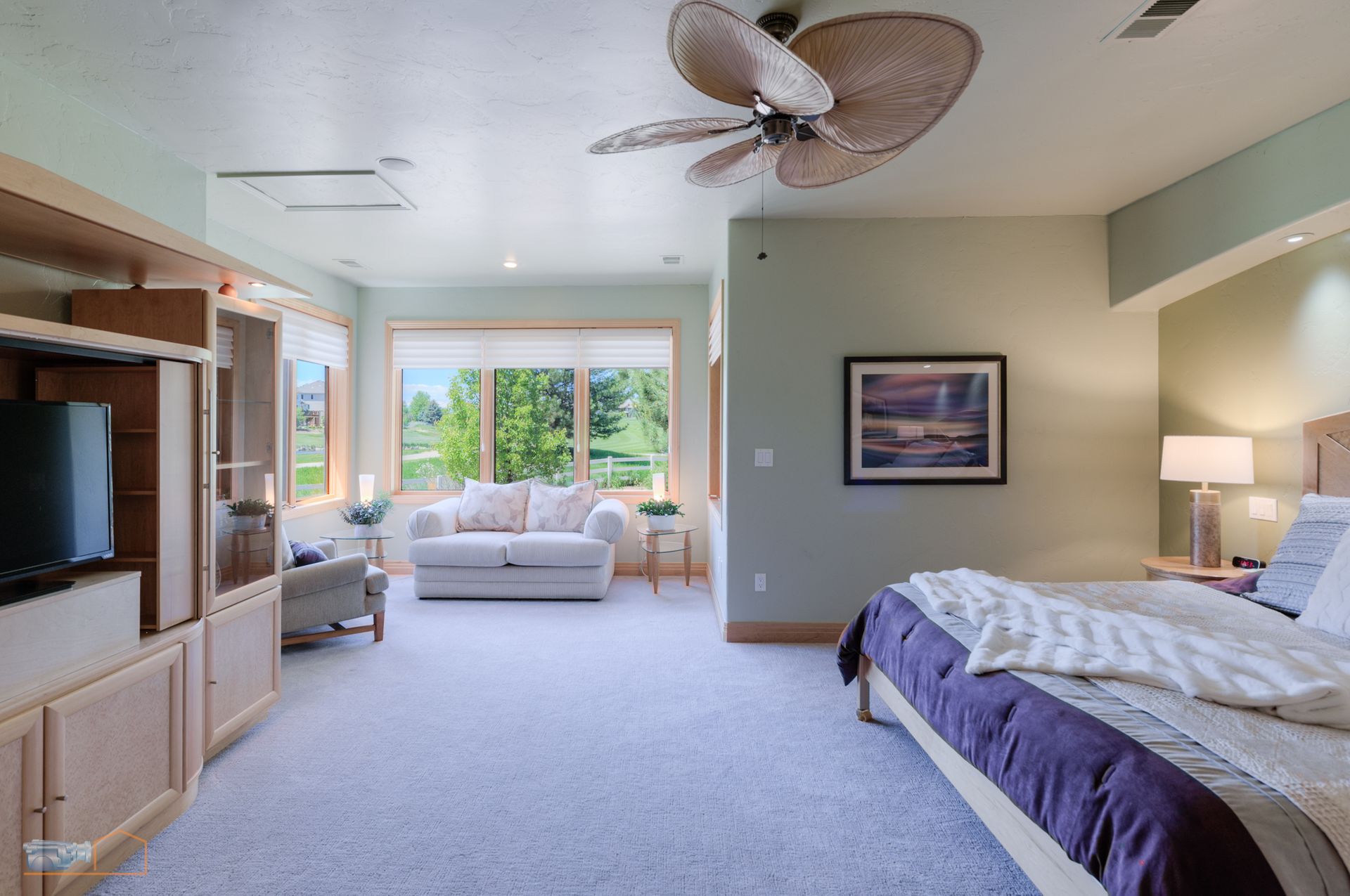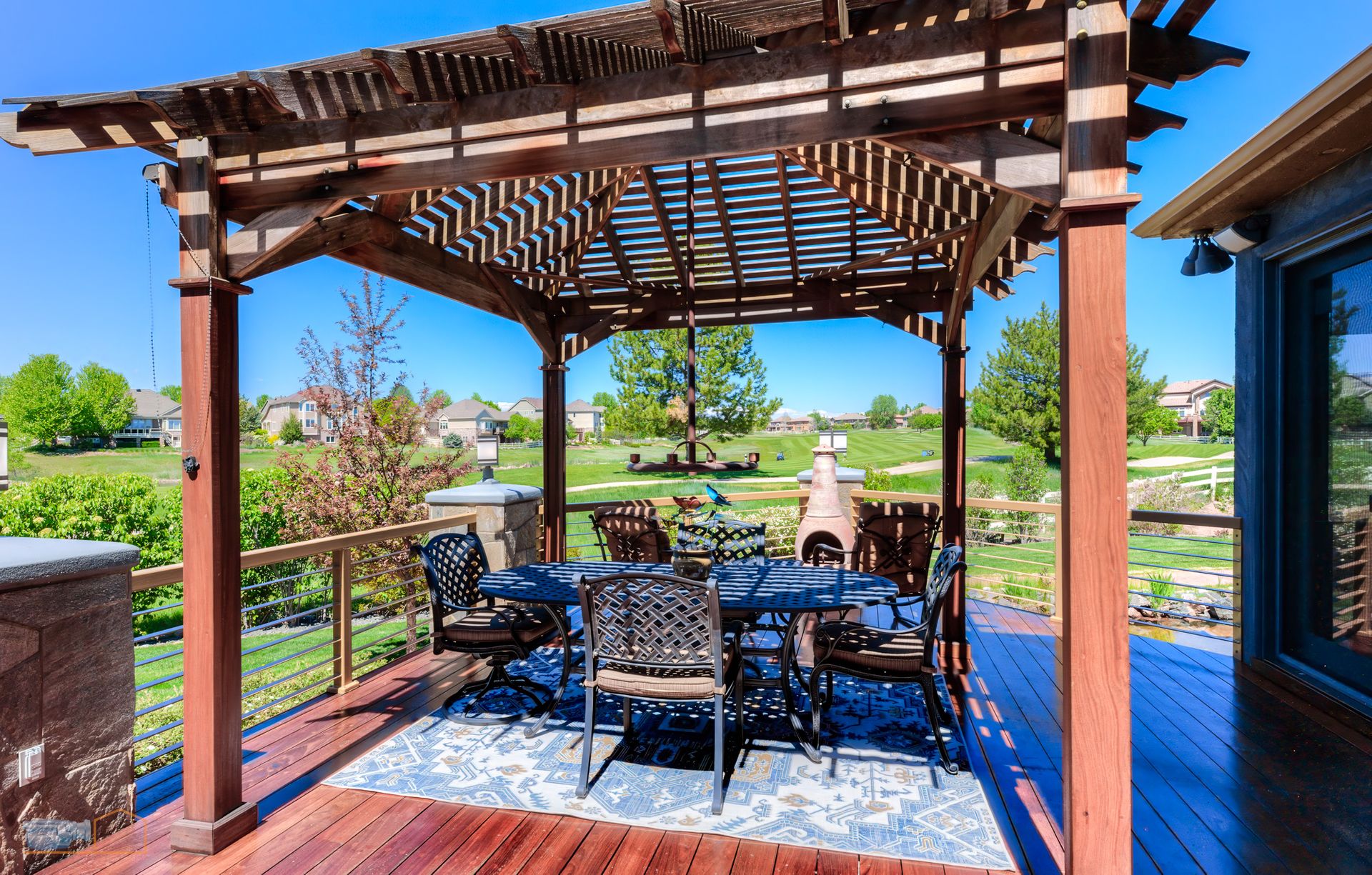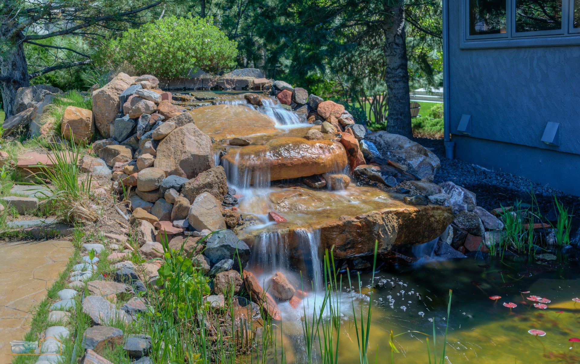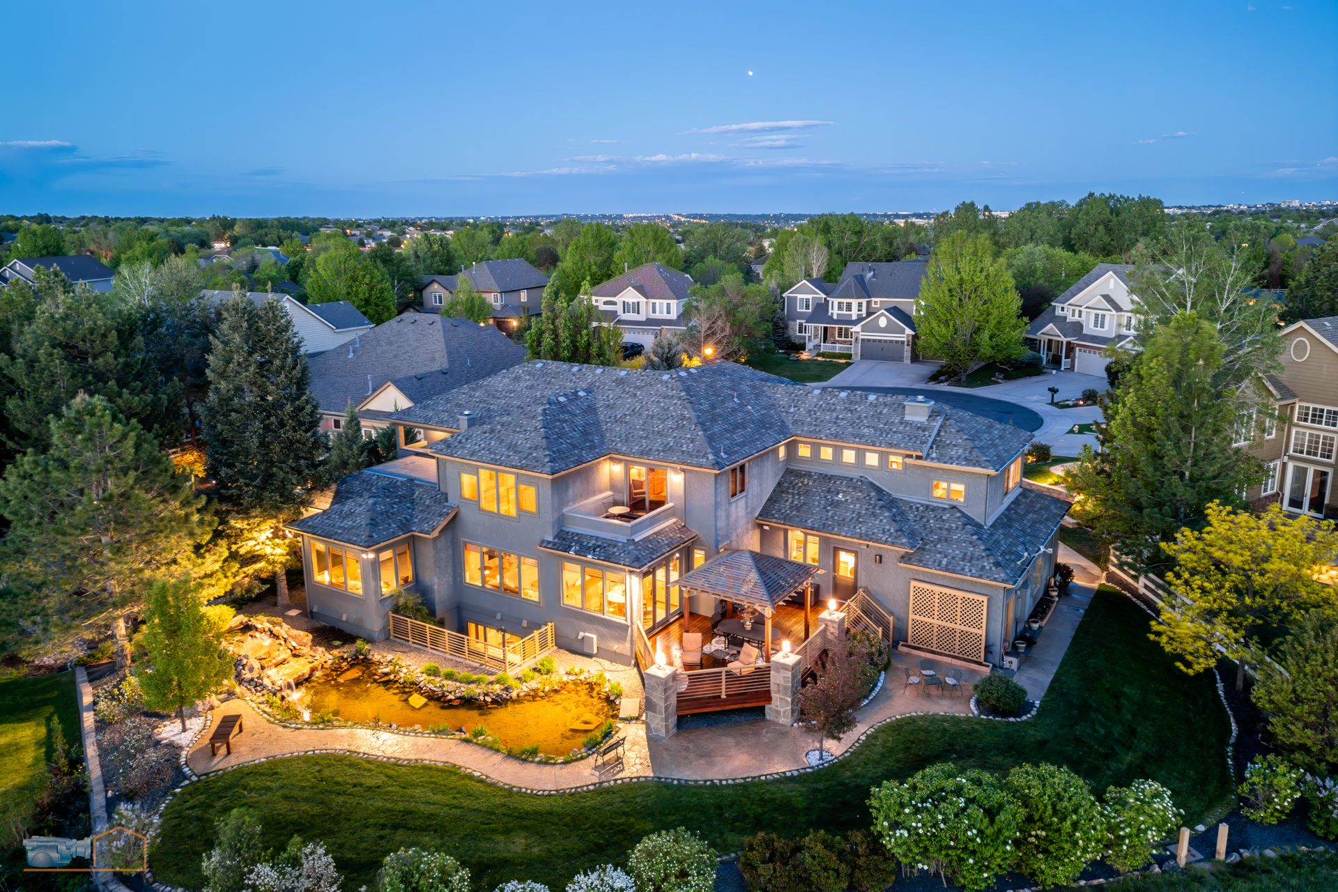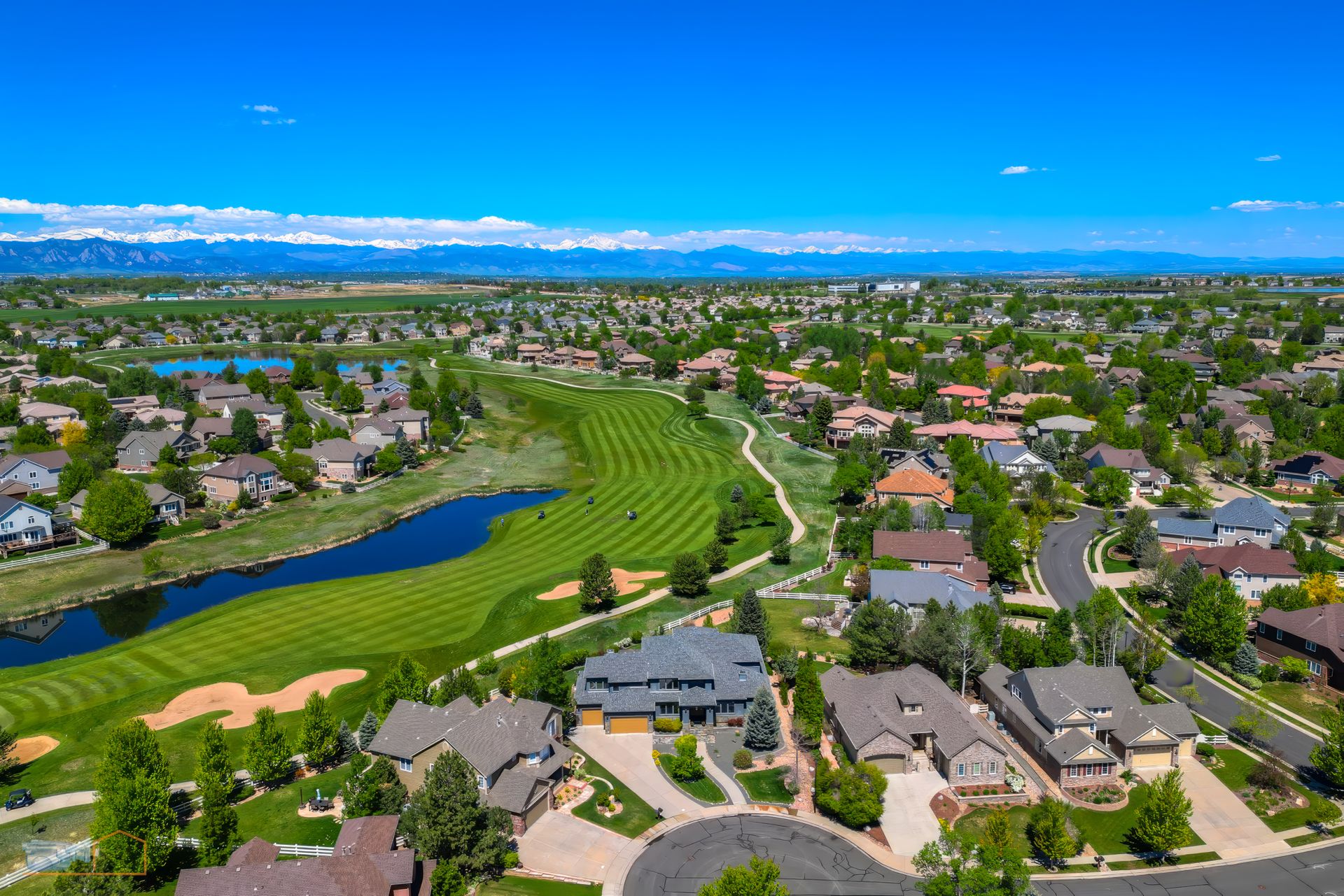 A rare custom home on the third fairway in the sought-after Broadlands with mountain views. Meticulously maintained with more than 8,000 finished square feet, you'll love this home whether for entertaining or relaxing on the sprawling rear deck. Quality architecture and workmanship by the owner/builder - bamboo floors, Rainforest marble, slab granite, Maple cabinets and Ironwood rear deck to name a few. Detail and functionality throughout. The large gourmet kitchen opens to a soaring great room with a wall of windows. The rear deck features a pond and Koi waterfall and a chiminea. A masterful, three-story custom spiral staircase. The main floor primary bedroom comes with a spa-like bathroom - dual showerhead and marble steam shower and a Jacuzzi tub. Other main floor designs include a cherry-paneled library with a fireplace, a spacious dining room and laundry room. The upper level houses large bedrooms with custom-tiled bathrooms, private decks and an optional fifth bedroom/office with a fireplace. A massive lower level with nine-foot ceilings boasts a well-equipped bar, exercise room, a pool table room, an office/flex area with its own bathroom, a craft room and additional storage. A large three-car garage and manicured landscaping complete this luxury home. If you're looking for quality construction, spacious rooms and beautiful exterior living in a golf course community - 13941 Westhampton is a must-see home. See the interior drone video (coming soon). If the timing is right, you might see the mallards fly in for a dip in the pond or late afternoon watch the pond reflection dance across the great room wall. Sunsets are magnificent!