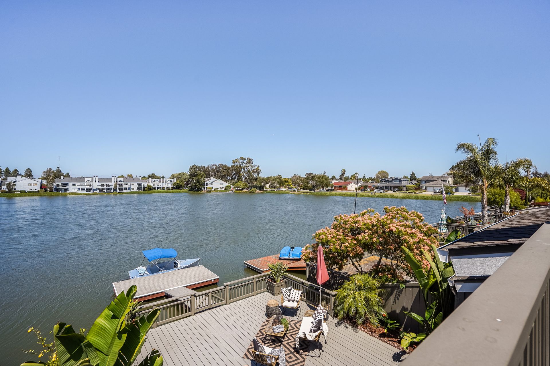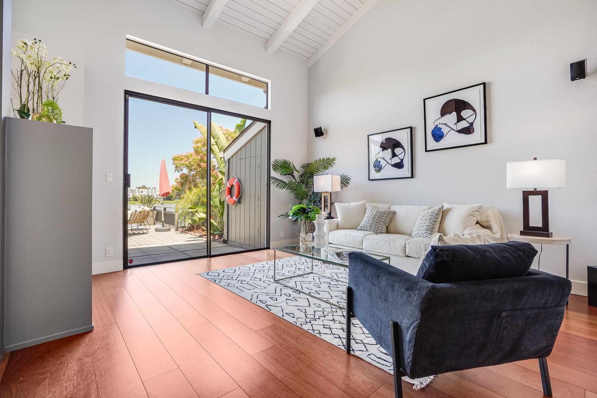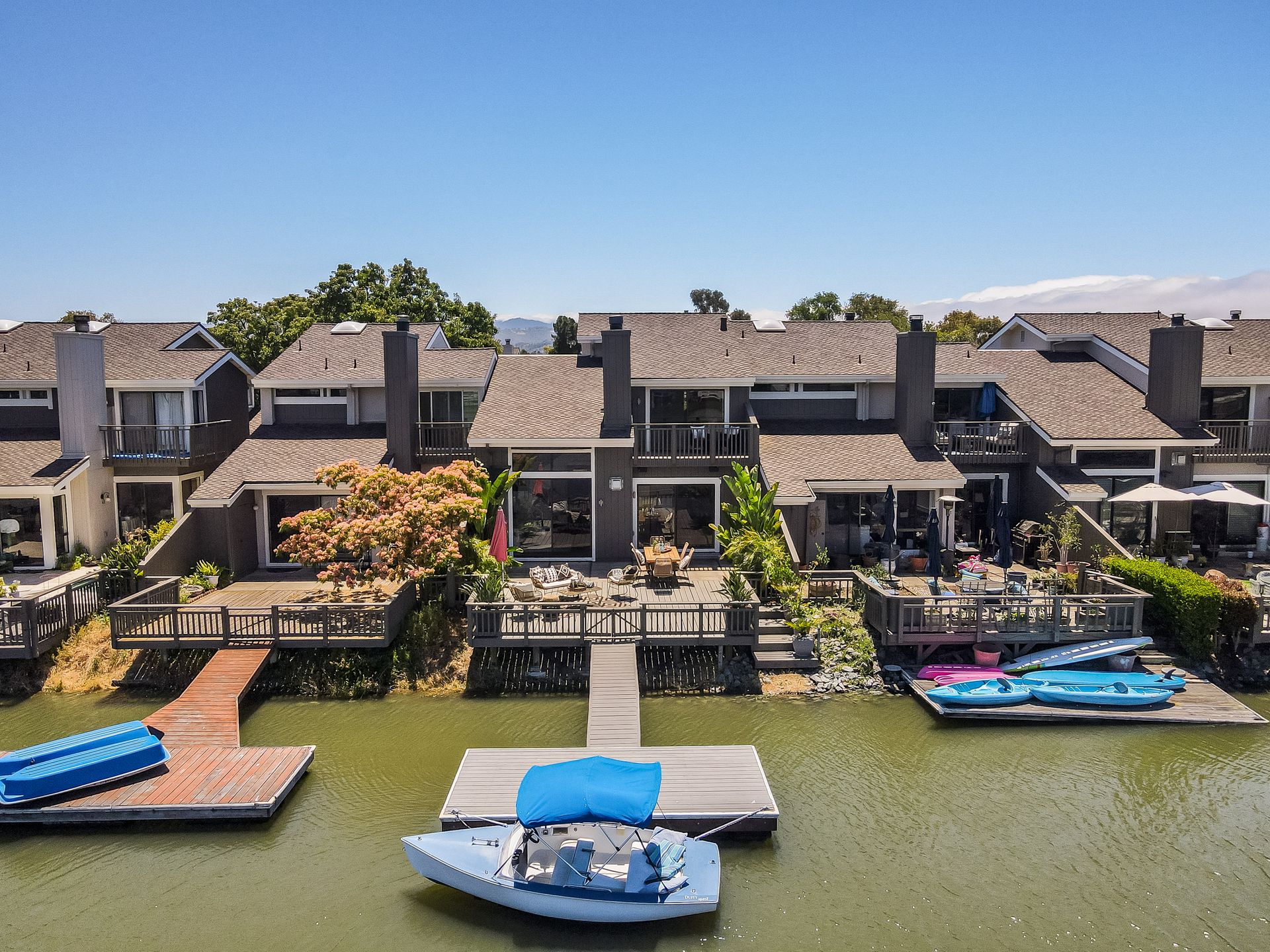 Resort living awaits in this spacious waterfront home - overlooking wide water, and your own private boat dock. Rarely available 3-bedrooms, 3-baths and approximately 1,740 square feet of living space. A pathway leads through the front gate to the front door, while inside awaits a tastefully remodeled home, done in a contemporary style, offering ample natural light. Wander into the inviting living room featuring a tall ceiling, a two-sided electric fireplace that also faces the dining room, and a glass sliding door that ushers in warm sunlight and leads to the spacious back deck. The roomy dining room with water views, opens to a contemporary chef's eat-in-kitchen, featuring Thermador stainless steel appliances, sleek cabinetry, and a wine refrigerator. A large picture window found in the family room faces the courtyard featuring mature succulent and tropical plants. The room also features built-in surround sound. Other features on the first floor include - A half-bath, indoor laundry room, and attached garage with storage space. All three bedrooms are upstairs. The master suite features a modern styling bathroom with skylight, walk-in closet, custom drapes, and a walk-out balcony with water views. The other two bedrooms are generous in size with lofty ceilings. An INCREDIBLE BACKYARD OASIS – offering limitless relaxation. Featuring a large deck with a new gate and bridge that leads to a personal boat dock. Truly a commanding statement for outdoor entertaining. This home has everything needed for today's lifestyle needs where work-from-home space is essential – attractive turnkey convenience. The Seabridge complex includes a pool, spa, and a tennis court. Redwood Shores a tucked away community with top-rated schools, flowing waterways, paths for jogging and biking that connect to the Bay Trail, parks, and sports fields. Low HOA!