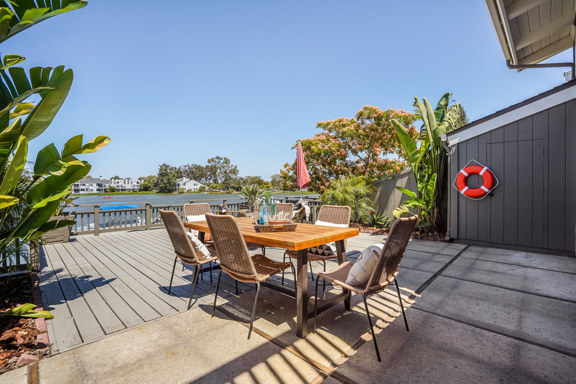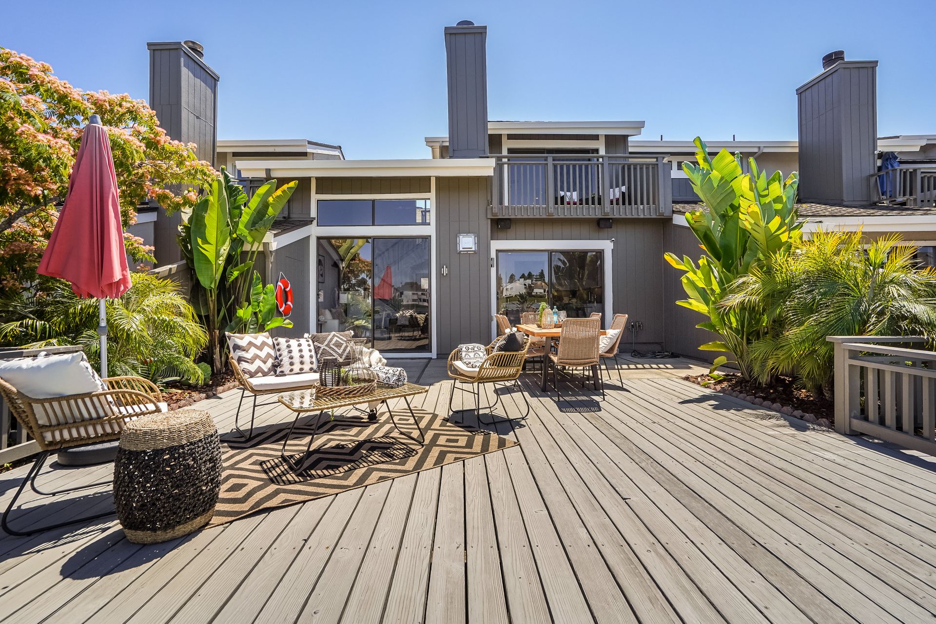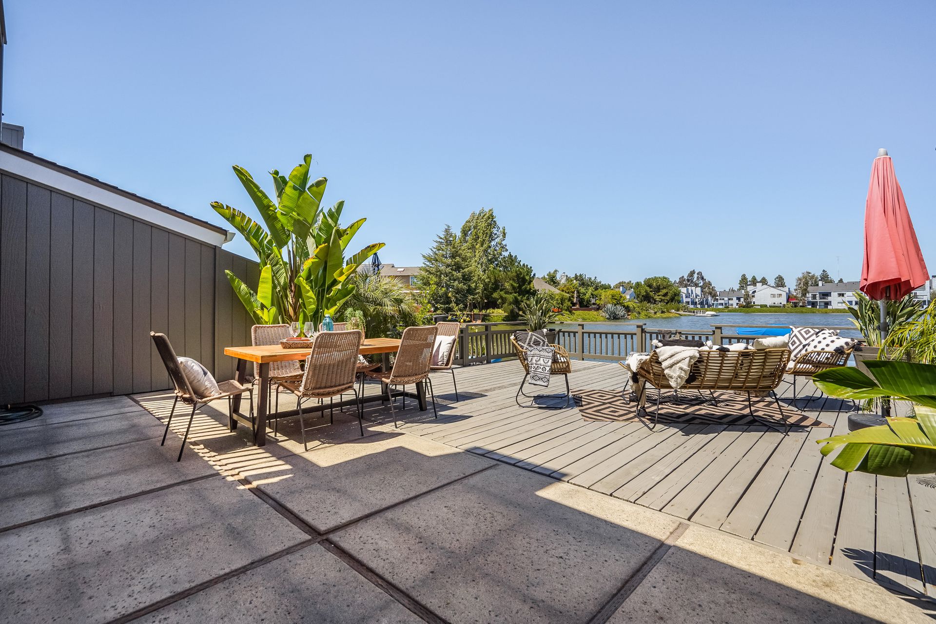 Resort living awaits in this spacious waterfront home - overlooking wide water, and your own private boat dock. Rarely available 3-bedrooms, 3-baths and approximately 1,740 square feet of living space. A pathway leads through the front gate to the front door, while inside awaits a tastefully remodeled home, done in a contemporary style, offering ample natural light. Wander into the inviting living room featuring a tall ceiling, a two-sided electric fireplace that also faces the dining room, and a glass sliding door that ushers in warm sunlight and leads to the spacious back deck. The roomy dining room with water views, opens to a contemporary chef's eat-in-kitchen, featuring Thermador stainless steel appliances, sleek cabinetry, and a wine refrigerator. A large picture window found in the family room faces the courtyard featuring mature succulent and tropical plants. The room also features built-in surround sound. Other features on the first floor include - A half-bath, indoor laundry room, and attached garage with storage space. All three bedrooms are upstairs. The master suite features a modern styling bathroom with skylight, walk-in closet, custom drapes, and a walk-out balcony with water views. The other two bedrooms are generous in size with lofty ceilings. An INCREDIBLE BACKYARD OASIS – offering limitless relaxation. Featuring a large deck with a new gate and bridge that leads to a personal boat dock. Truly a commanding statement for outdoor entertaining. This home has everything needed for today's lifestyle needs where work-from-home space is essential – attractive turnkey convenience. The Seabridge complex includes a pool, spa, and a tennis court. Redwood Shores a tucked away community with top-rated schools, flowing waterways, paths for jogging and biking that connect to the Bay Trail, parks, and sports fields. Low HOA!