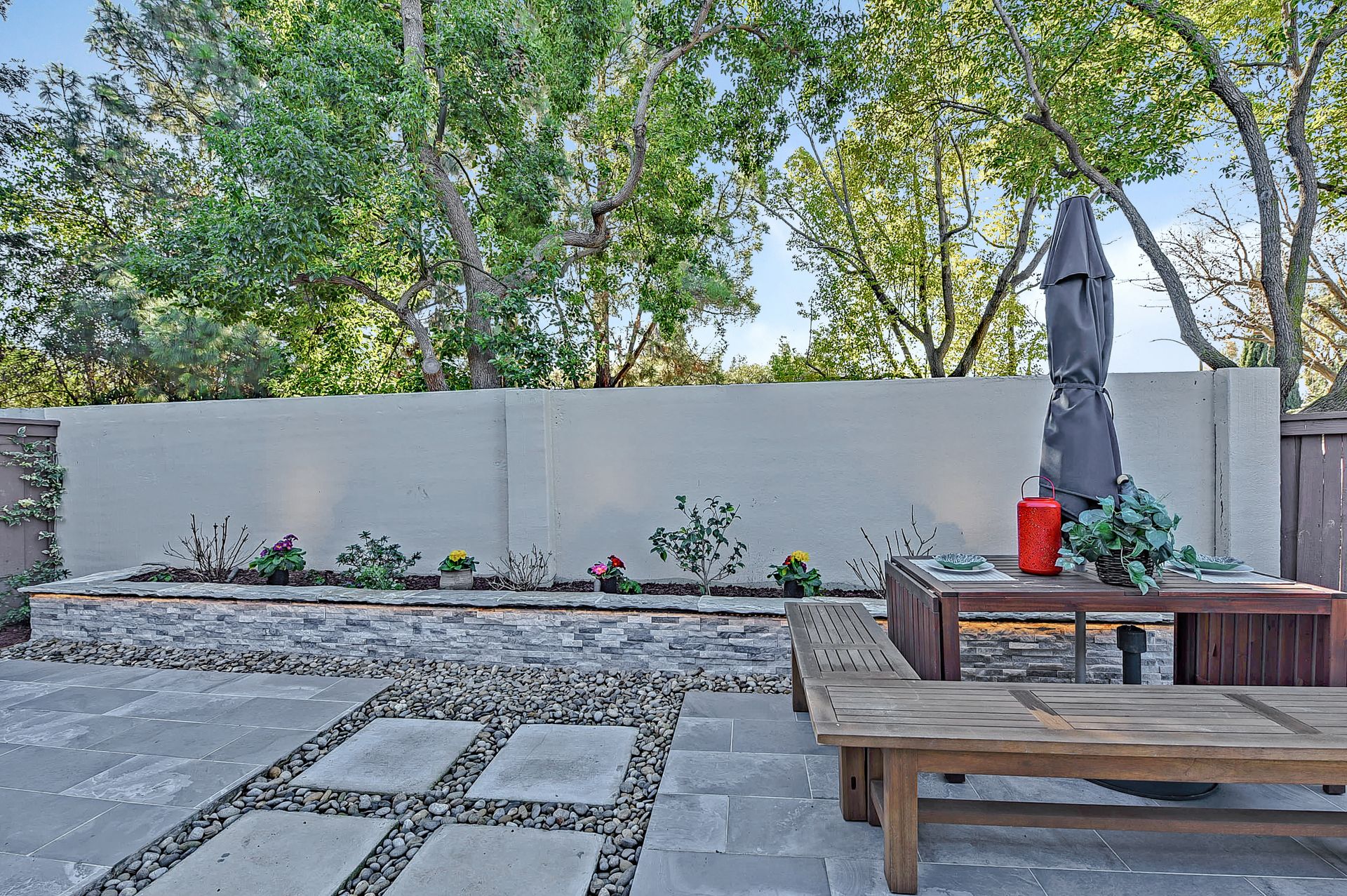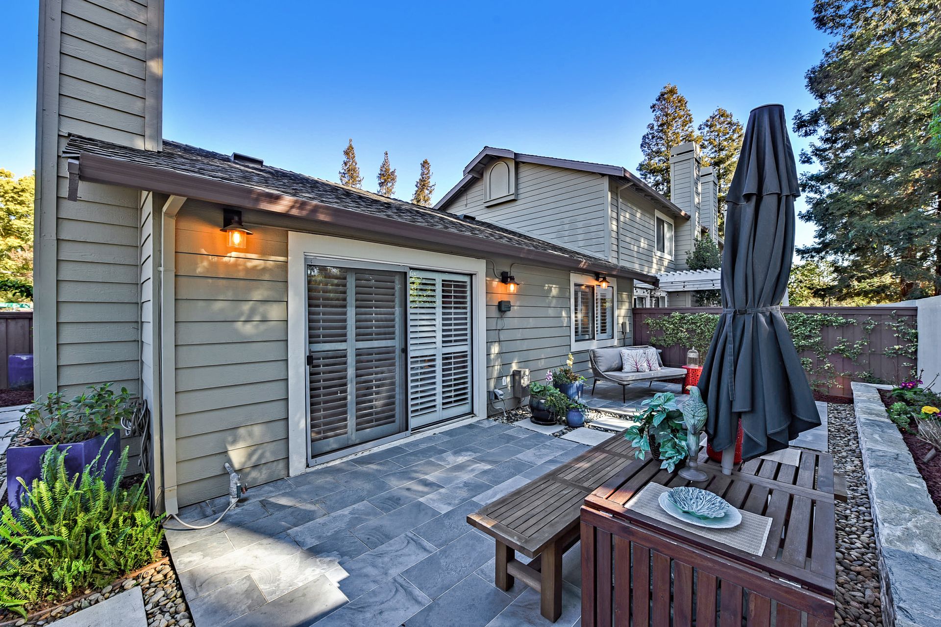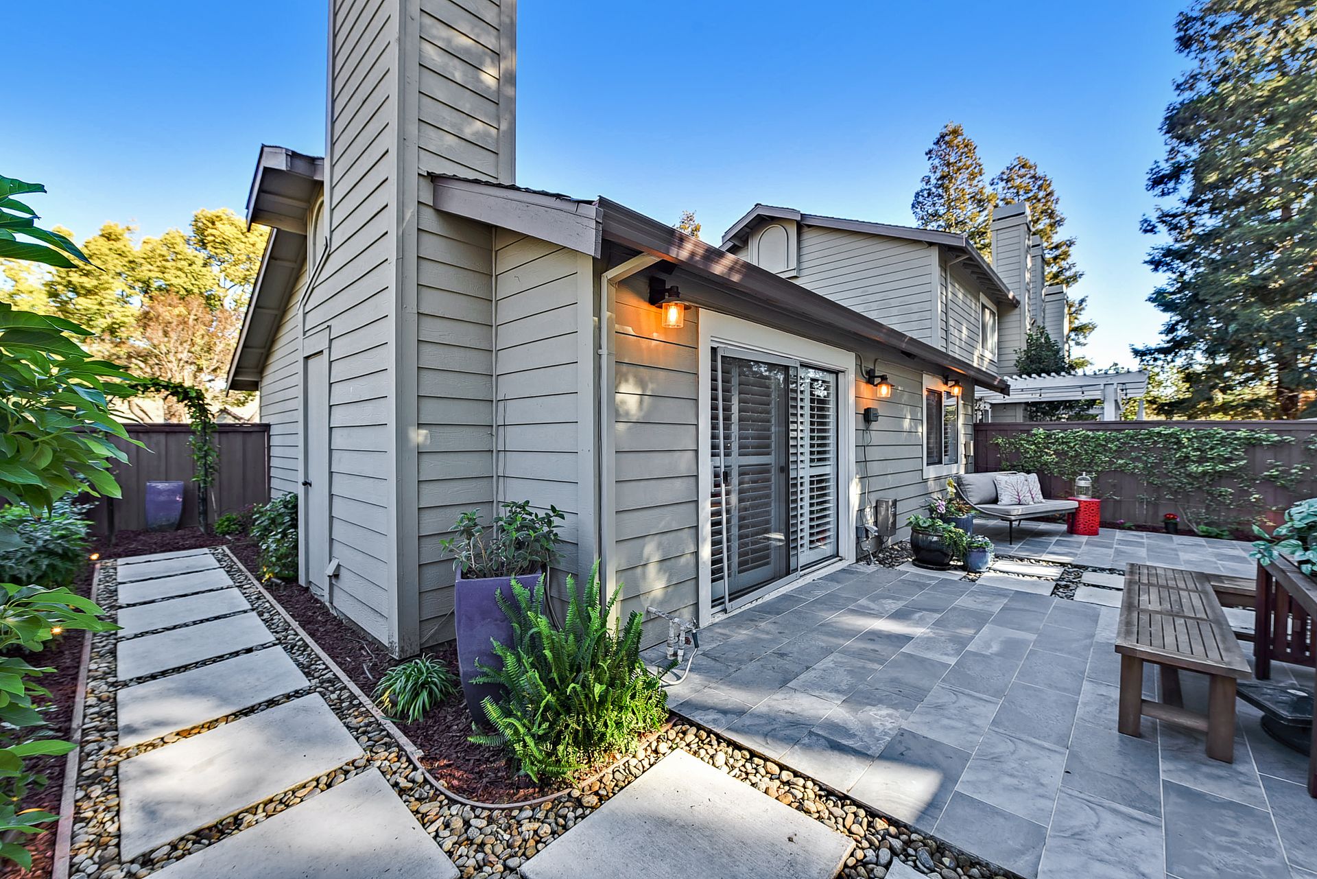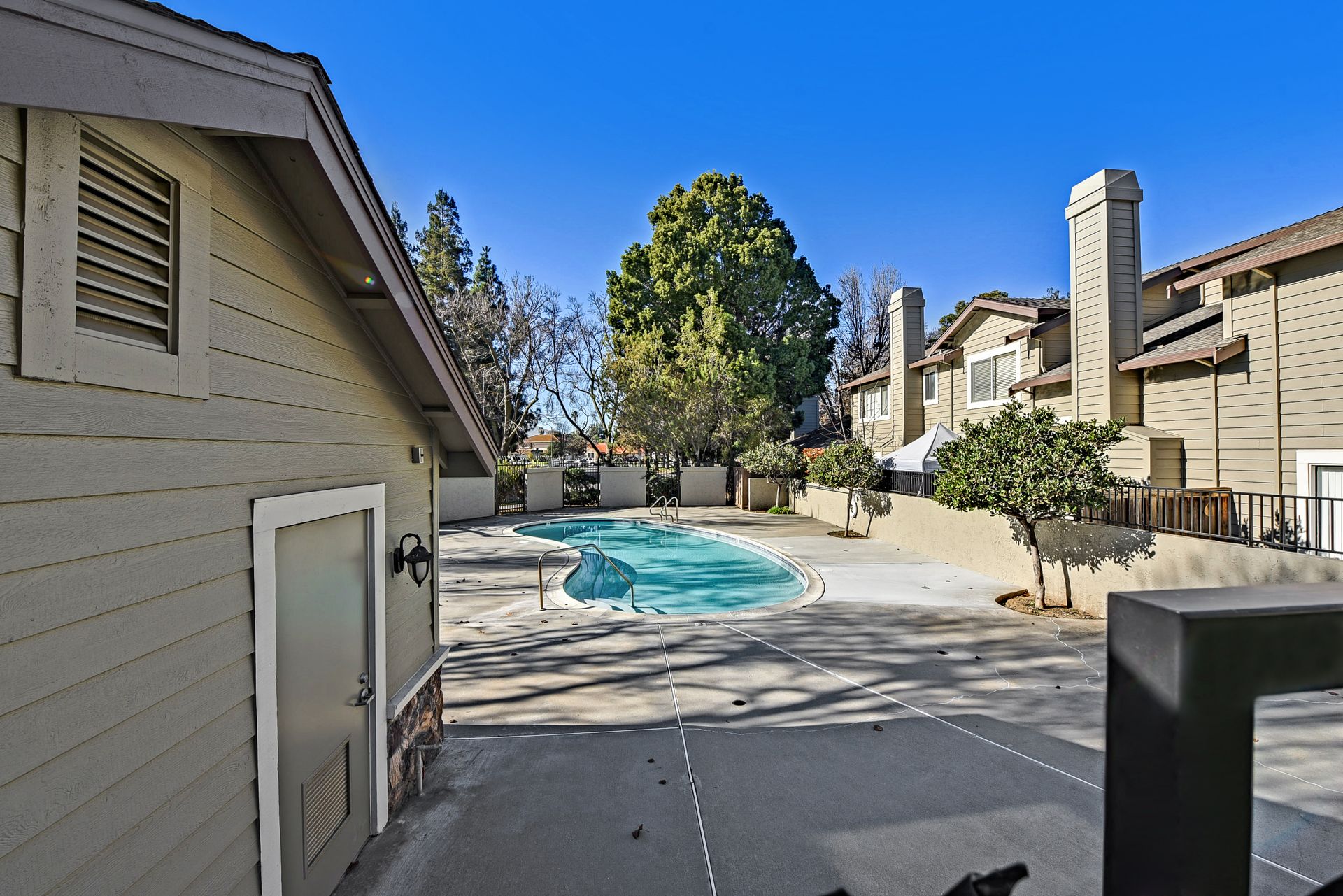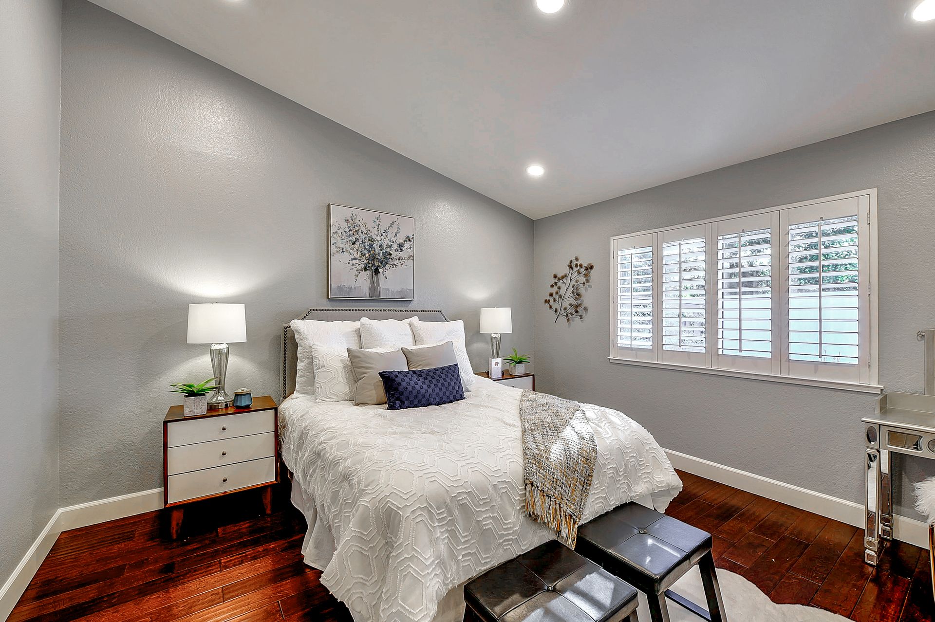 This charming single-story two bedroom, two bath townhouse is an end unit – this floorplan is rarely available on the market. Residents can enjoy the community pool and spa and other ample amenities nearby. Entertain in the beautifully landscaped backyard that features a tile patio and professional landscaping, which creates an inviting outdoor space. Hardwood floors, plantation shutters and recessed lighting are featured throughout. A bright living room has vaulted ceilings and a beautiful wood-burning fireplace with white mantel and granite surround. Enjoy a kitchen equipped with granite countertops, white cabinets, tile flooring and coffered ceiling with recessed lighting. The bathrooms, completed in March 2021, offers tile floors, a newer vanity and cabinets, newer light fixtures, medicine cabinets, newer toilets, newer bathtub hardware accessories and glass enclosures. Additional highlights of the home include an A/C, a washer and dryer in a laundry closet, double pane windows and a two-car garage with plenty of room for storage. This home is conveniently located near 85, 87 and 280 freeways, Snell and Branham Plaza (Safeway), Edenvale Branch Library, Edenvale Gardens Regional Park, Martial Cottle Park, Hayes Mansion and roughly 11 miles away from the San Jose International Airport.