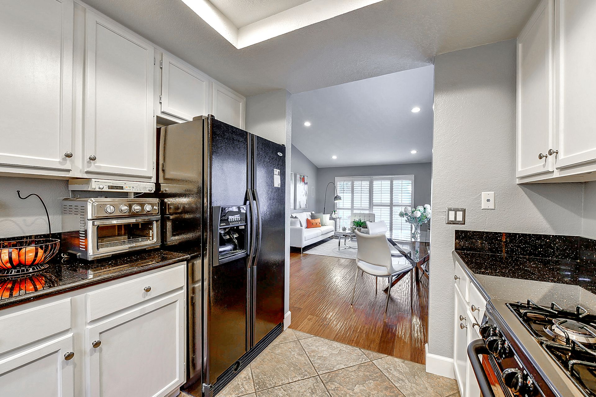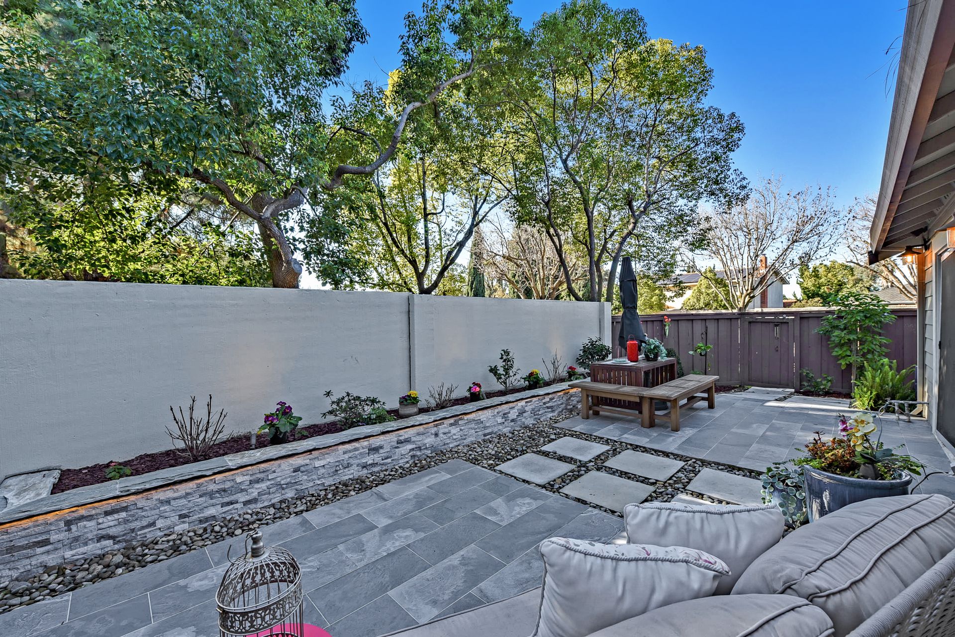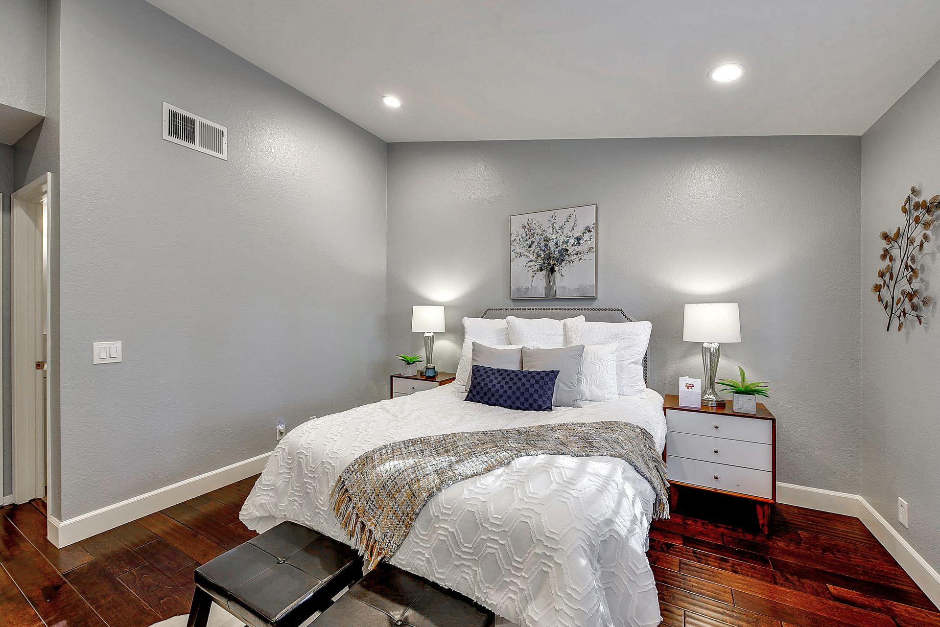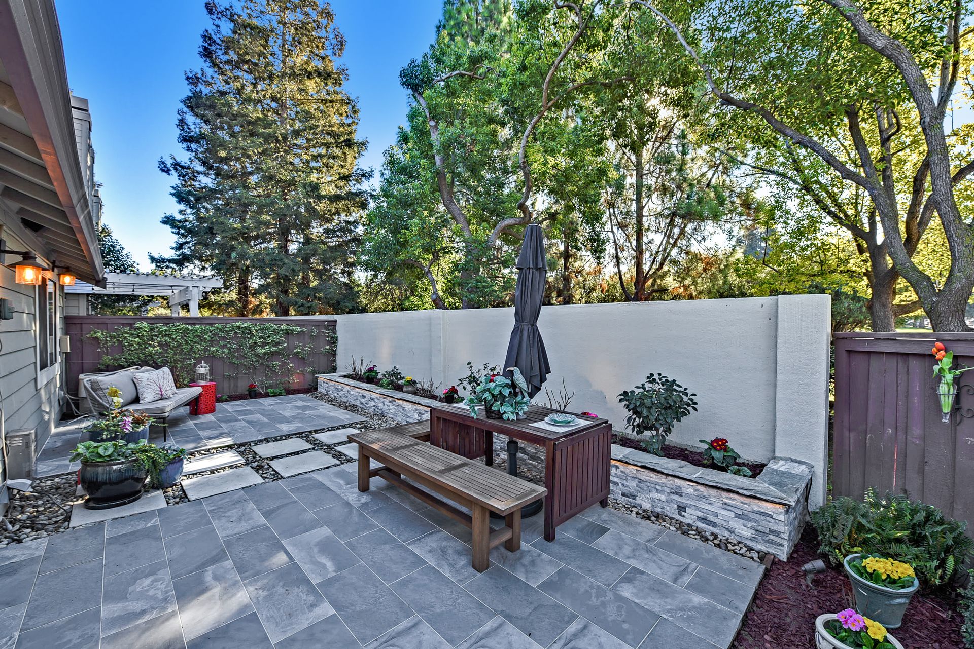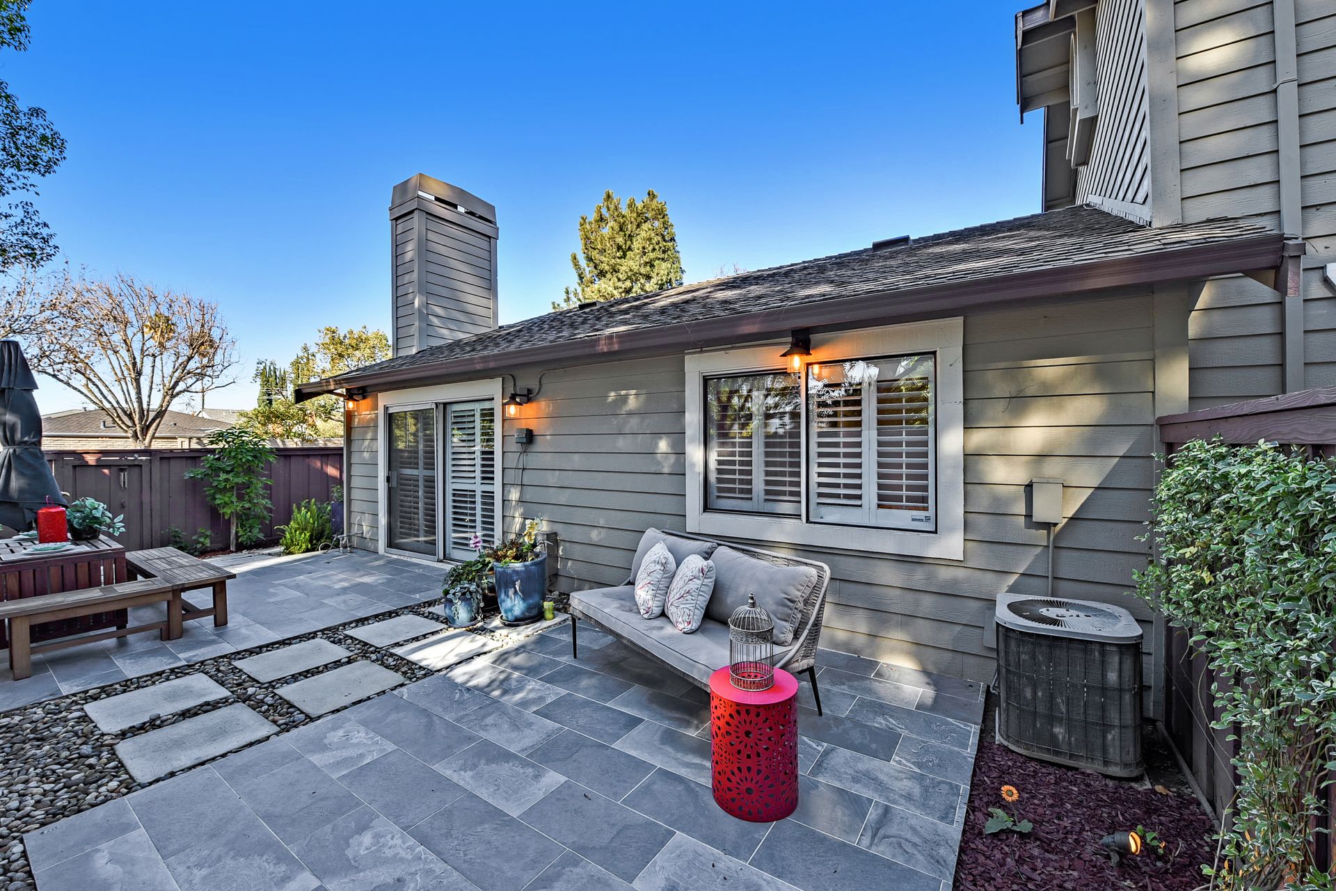 This charming single-story two bedroom, two bath townhouse is an end unit – this floorplan is rarely available on the market. Residents can enjoy the community pool and spa and other ample amenities nearby. Entertain in the beautifully landscaped backyard that features a tile patio and professional landscaping, which creates an inviting outdoor space. Hardwood floors, plantation shutters and recessed lighting are featured throughout. A bright living room has vaulted ceilings and a beautiful wood-burning fireplace with white mantel and granite surround. Enjoy a kitchen equipped with granite countertops, white cabinets, tile flooring and coffered ceiling with recessed lighting. The bathrooms, completed in March 2021, offers tile floors, a newer vanity and cabinets, newer light fixtures, medicine cabinets, newer toilets, newer bathtub hardware accessories and glass enclosures. Additional highlights of the home include an A/C, a washer and dryer in a laundry closet, double pane windows and a two-car garage with plenty of room for storage. This home is conveniently located near 85, 87 and 280 freeways, Snell and Branham Plaza (Safeway), Edenvale Branch Library, Edenvale Gardens Regional Park, Martial Cottle Park, Hayes Mansion and roughly 11 miles away from the San Jose International Airport.