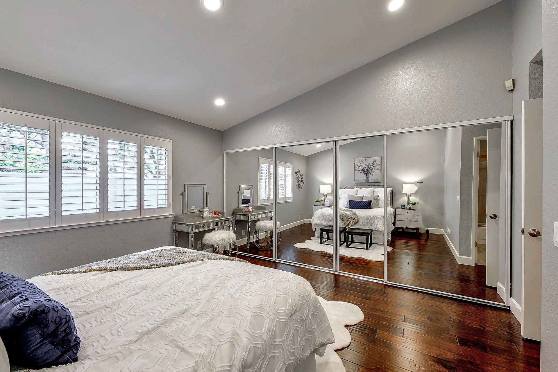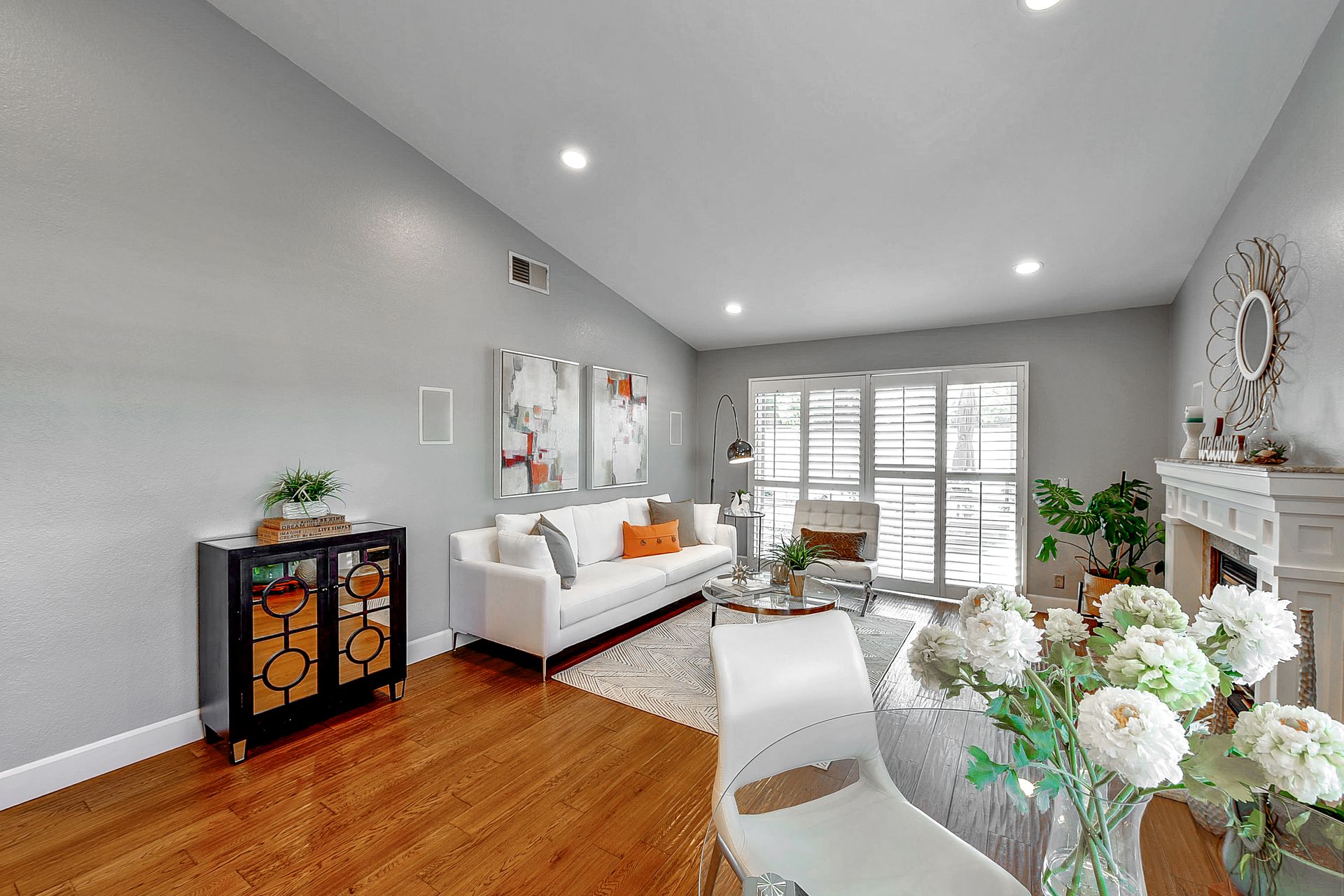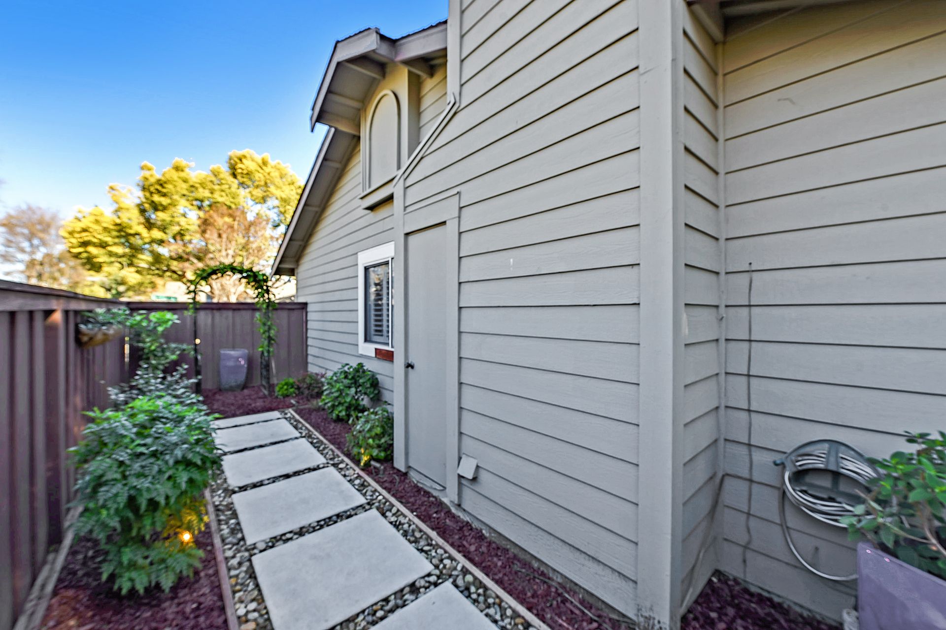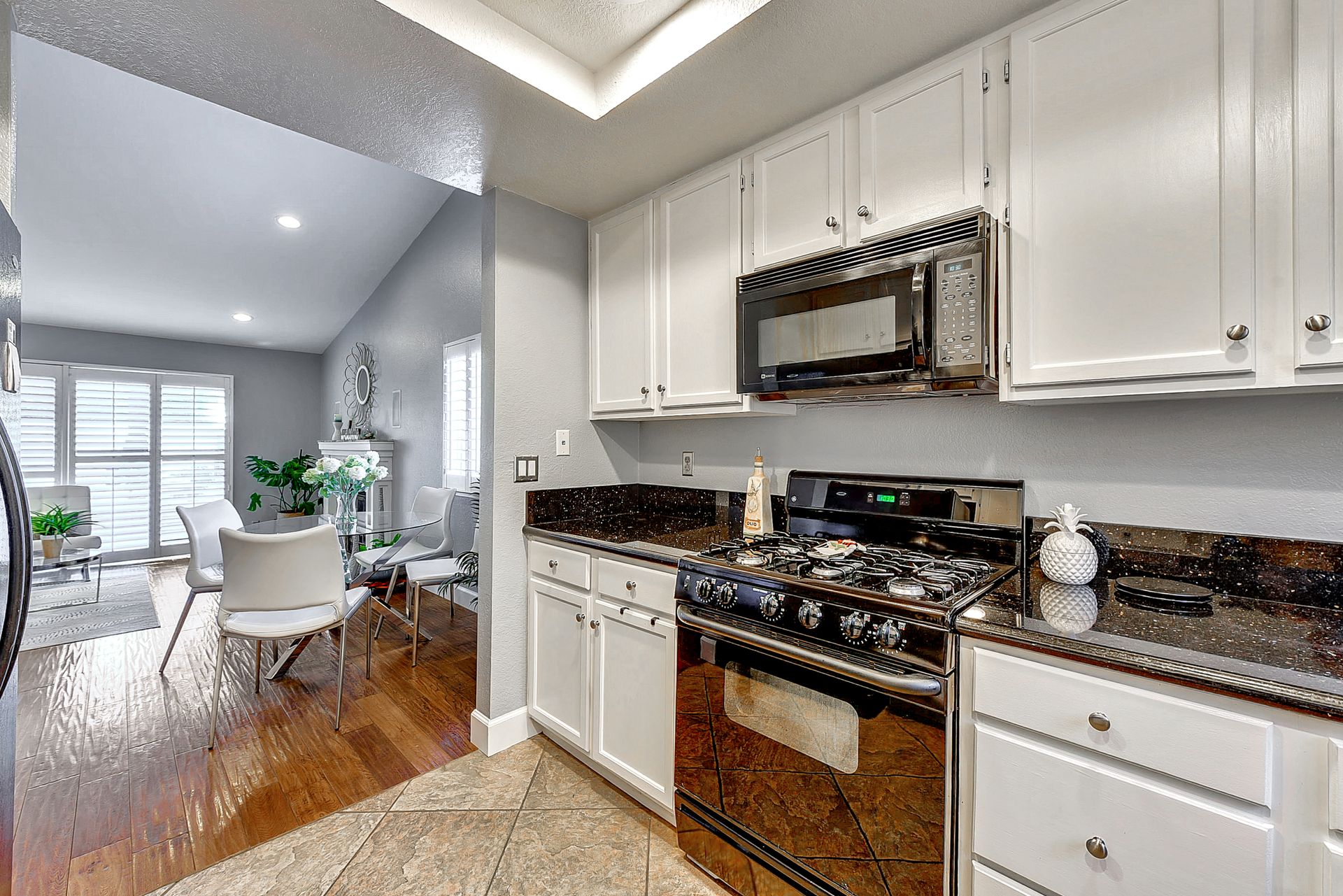 This charming single-story two bedroom, two bath townhouse is an end unit – this floorplan is rarely available on the market. Residents can enjoy the community pool and spa and other ample amenities nearby. Entertain in the beautifully landscaped backyard that features a tile patio and professional landscaping, which creates an inviting outdoor space. Hardwood floors, plantation shutters and recessed lighting are featured throughout. A bright living room has vaulted ceilings and a beautiful wood-burning fireplace with white mantel and granite surround. Enjoy a kitchen equipped with granite countertops, white cabinets, tile flooring and coffered ceiling with recessed lighting. The bathrooms, completed in March 2021, offers tile floors, a newer vanity and cabinets, newer light fixtures, medicine cabinets, newer toilets, newer bathtub hardware accessories and glass enclosures. Additional highlights of the home include an A/C, a washer and dryer in a laundry closet, double pane windows and a two-car garage with plenty of room for storage. This home is conveniently located near 85, 87 and 280 freeways, Snell and Branham Plaza (Safeway), Edenvale Branch Library, Edenvale Gardens Regional Park, Martial Cottle Park, Hayes Mansion and roughly 11 miles away from the San Jose International Airport.
