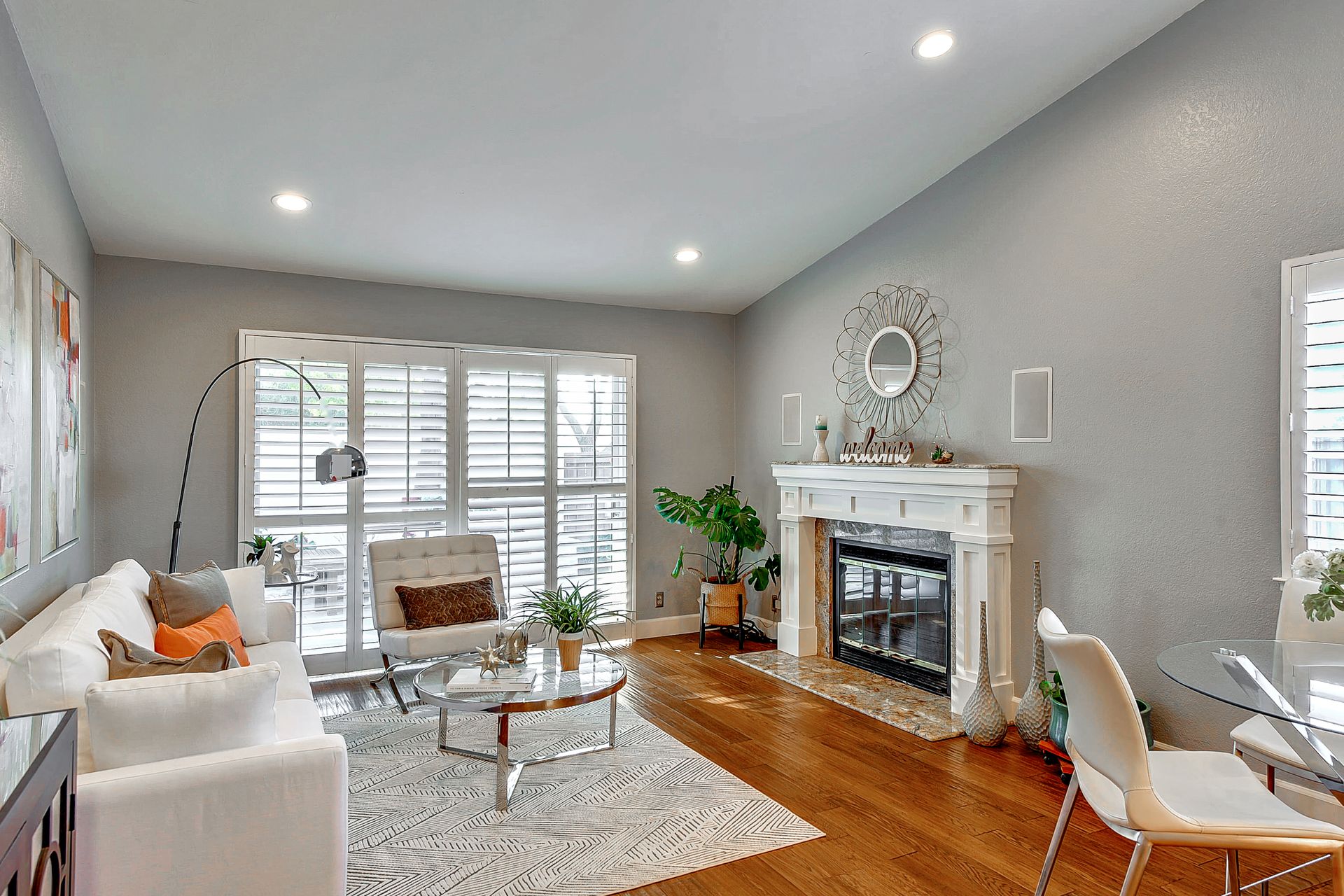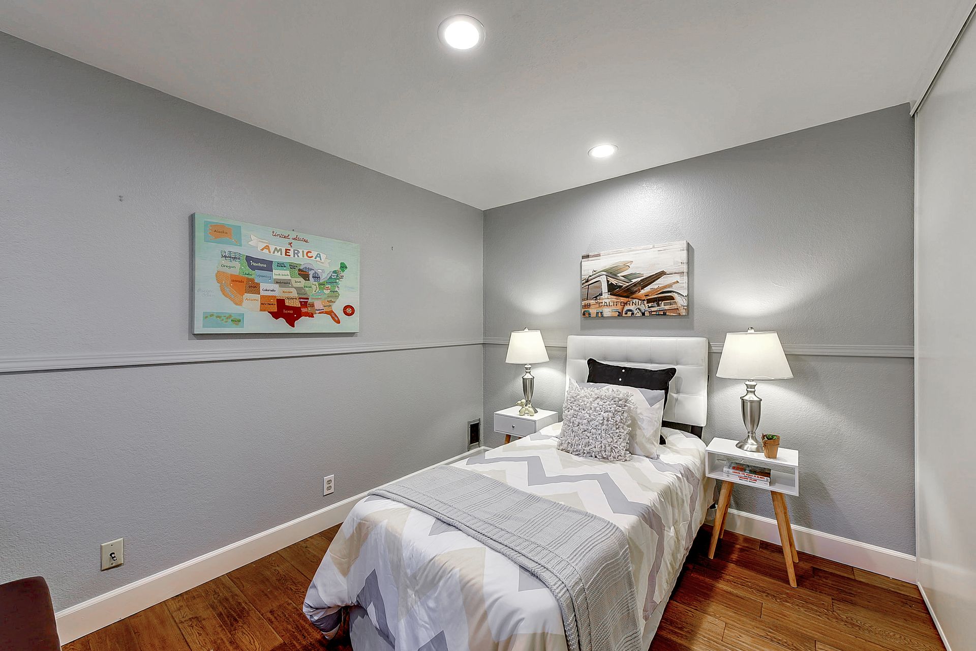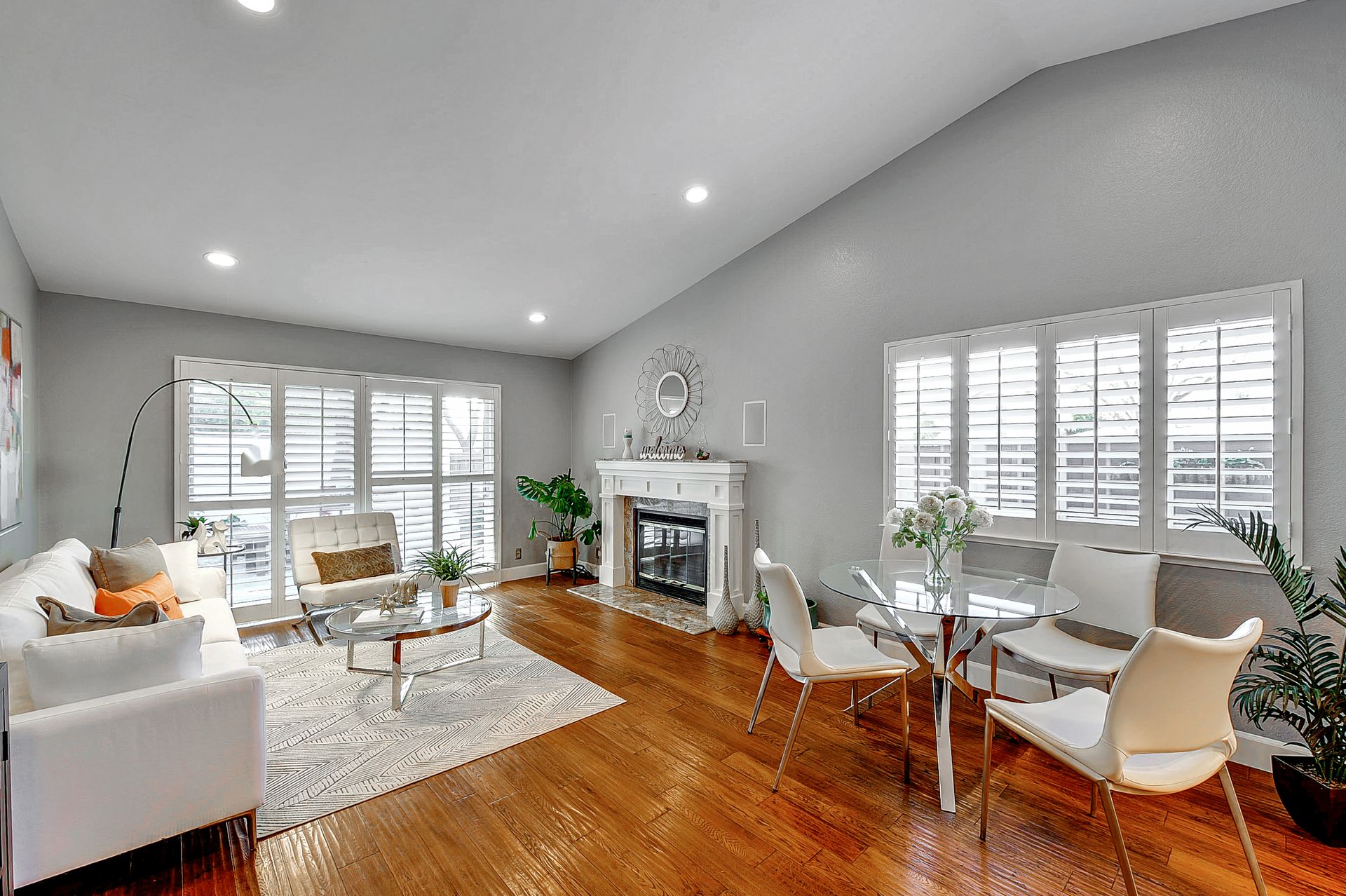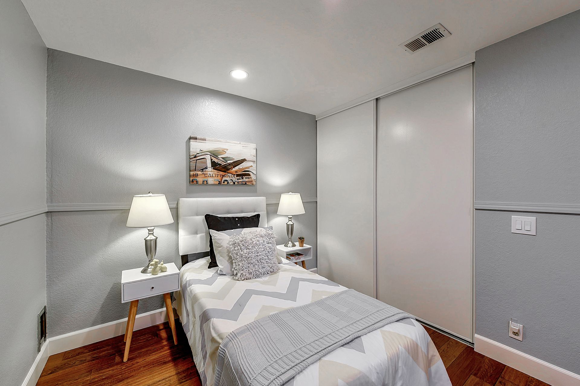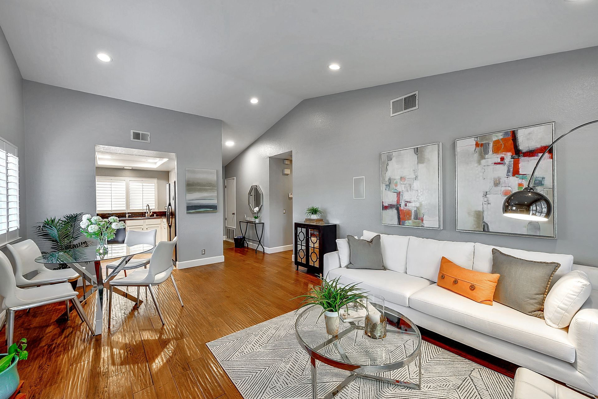 This charming single-story two bedroom, two bath townhouse is an end unit – this floorplan is rarely available on the market. Residents can enjoy the community pool and spa and other ample amenities nearby. Entertain in the beautifully landscaped backyard that features a tile patio and professional landscaping, which creates an inviting outdoor space. Hardwood floors, plantation shutters and recessed lighting are featured throughout. A bright living room has vaulted ceilings and a beautiful wood-burning fireplace with white mantel and granite surround. Enjoy a kitchen equipped with granite countertops, white cabinets, tile flooring and coffered ceiling with recessed lighting. The bathrooms, completed in March 2021, offers tile floors, a newer vanity and cabinets, newer light fixtures, medicine cabinets, newer toilets, newer bathtub hardware accessories and glass enclosures. Additional highlights of the home include an A/C, a washer and dryer in a laundry closet, double pane windows and a two-car garage with plenty of room for storage. This home is conveniently located near 85, 87 and 280 freeways, Snell and Branham Plaza (Safeway), Edenvale Branch Library, Edenvale Gardens Regional Park, Martial Cottle Park, Hayes Mansion and roughly 11 miles away from the San Jose International Airport.