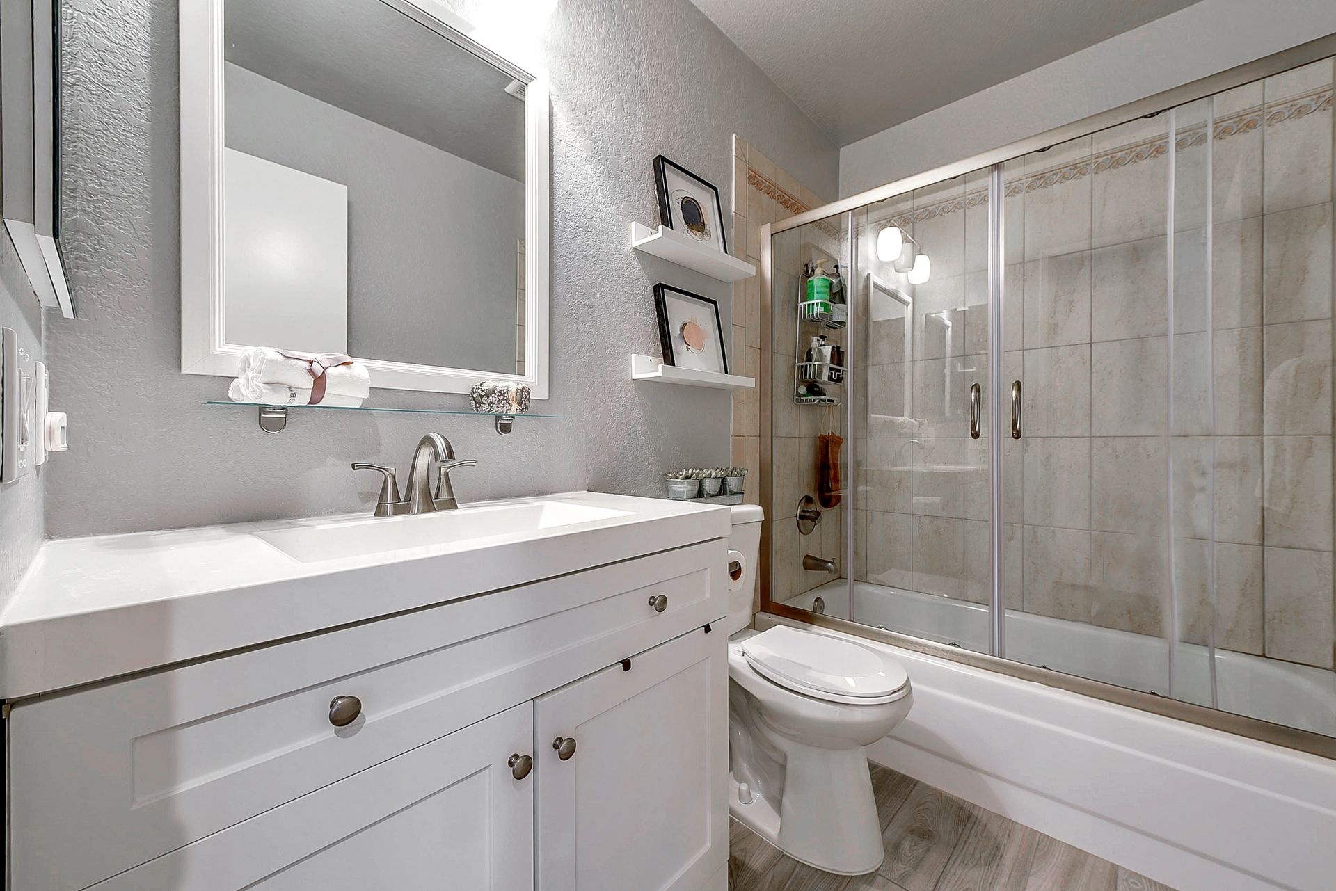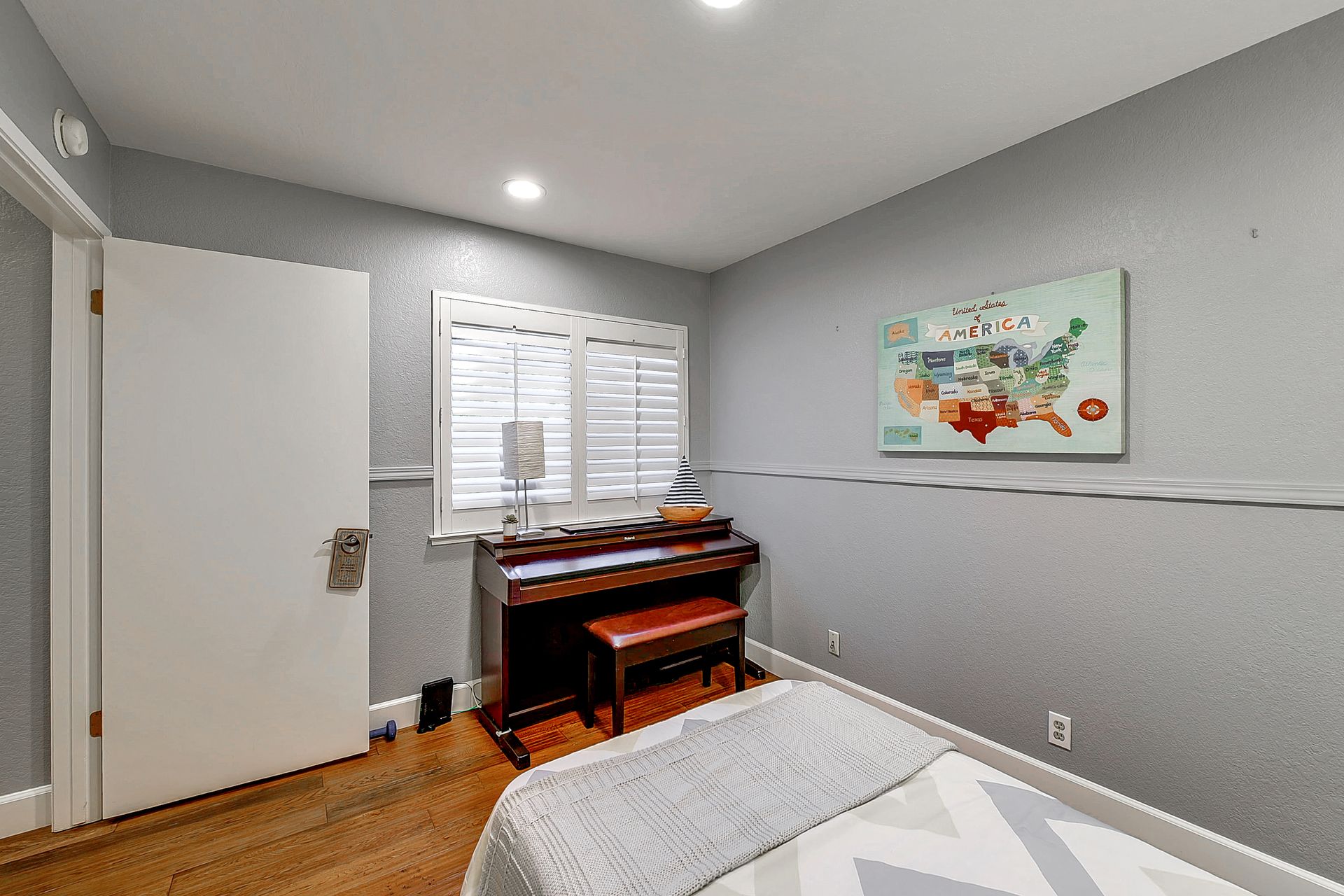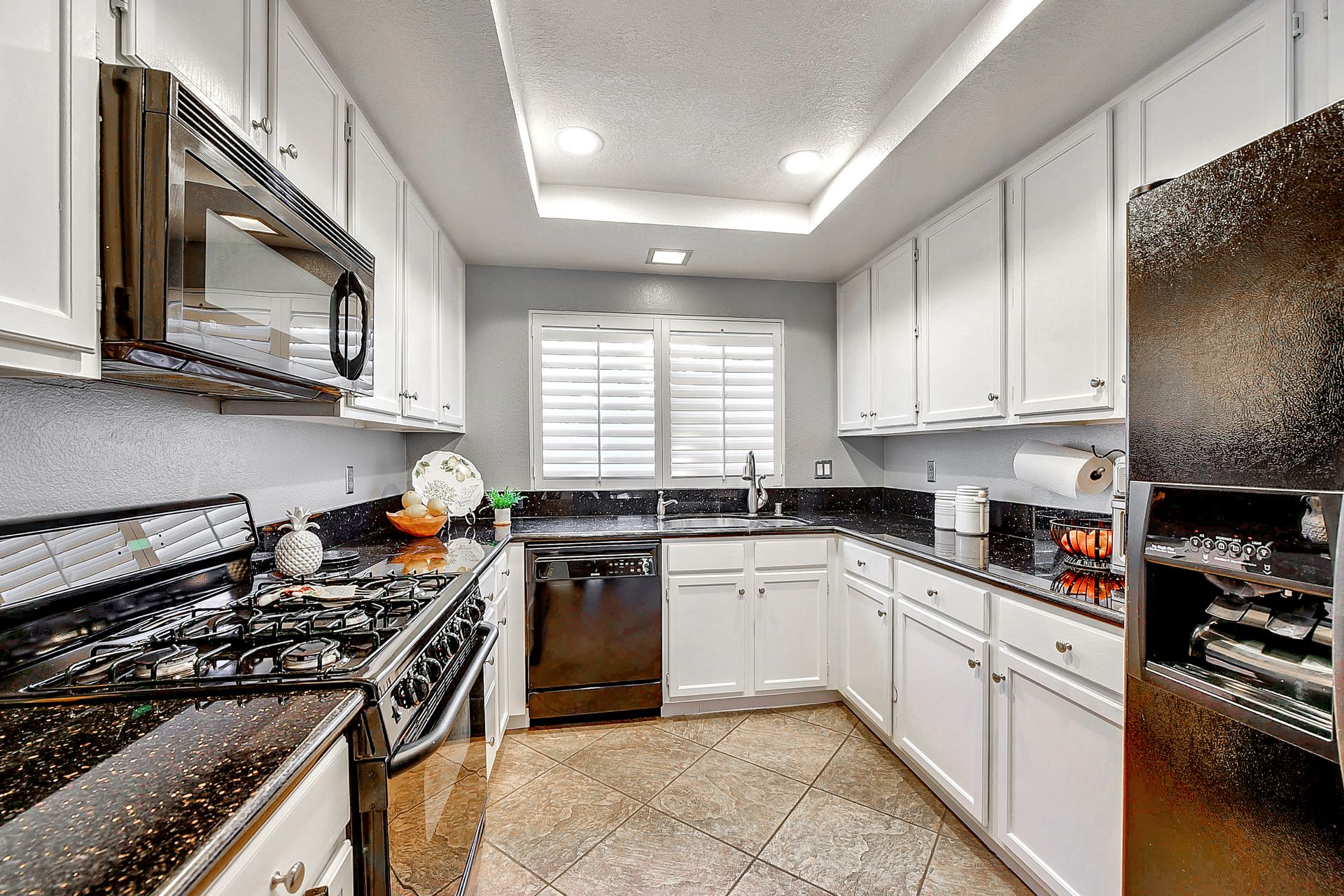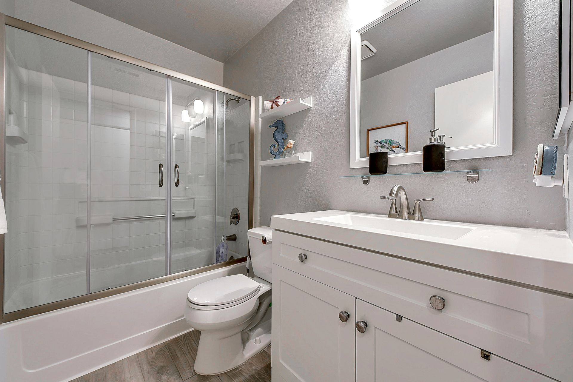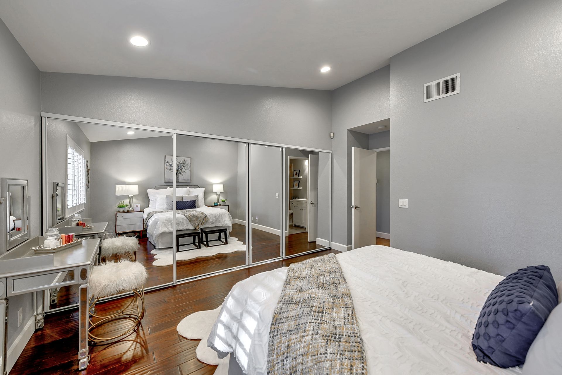 This charming single-story two bedroom, two bath townhouse is an end unit – this floorplan is rarely available on the market. Residents can enjoy the community pool and spa and other ample amenities nearby. Entertain in the beautifully landscaped backyard that features a tile patio and professional landscaping, which creates an inviting outdoor space. Hardwood floors, plantation shutters and recessed lighting are featured throughout. A bright living room has vaulted ceilings and a beautiful wood-burning fireplace with white mantel and granite surround. Enjoy a kitchen equipped with granite countertops, white cabinets, tile flooring and coffered ceiling with recessed lighting. The bathrooms, completed in March 2021, offers tile floors, a newer vanity and cabinets, newer light fixtures, medicine cabinets, newer toilets, newer bathtub hardware accessories and glass enclosures. Additional highlights of the home include an A/C, a washer and dryer in a laundry closet, double pane windows and a two-car garage with plenty of room for storage. This home is conveniently located near 85, 87 and 280 freeways, Snell and Branham Plaza (Safeway), Edenvale Branch Library, Edenvale Gardens Regional Park, Martial Cottle Park, Hayes Mansion and roughly 11 miles away from the San Jose International Airport.
