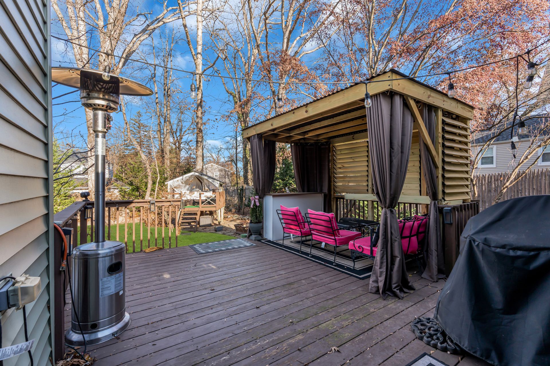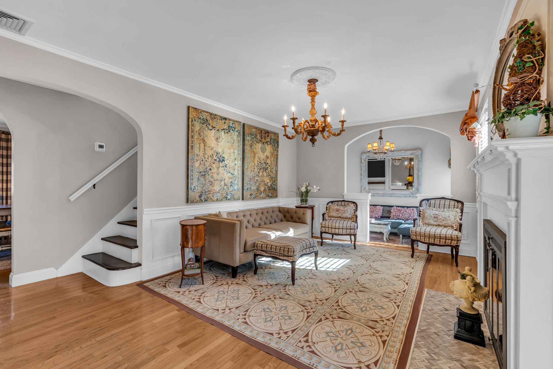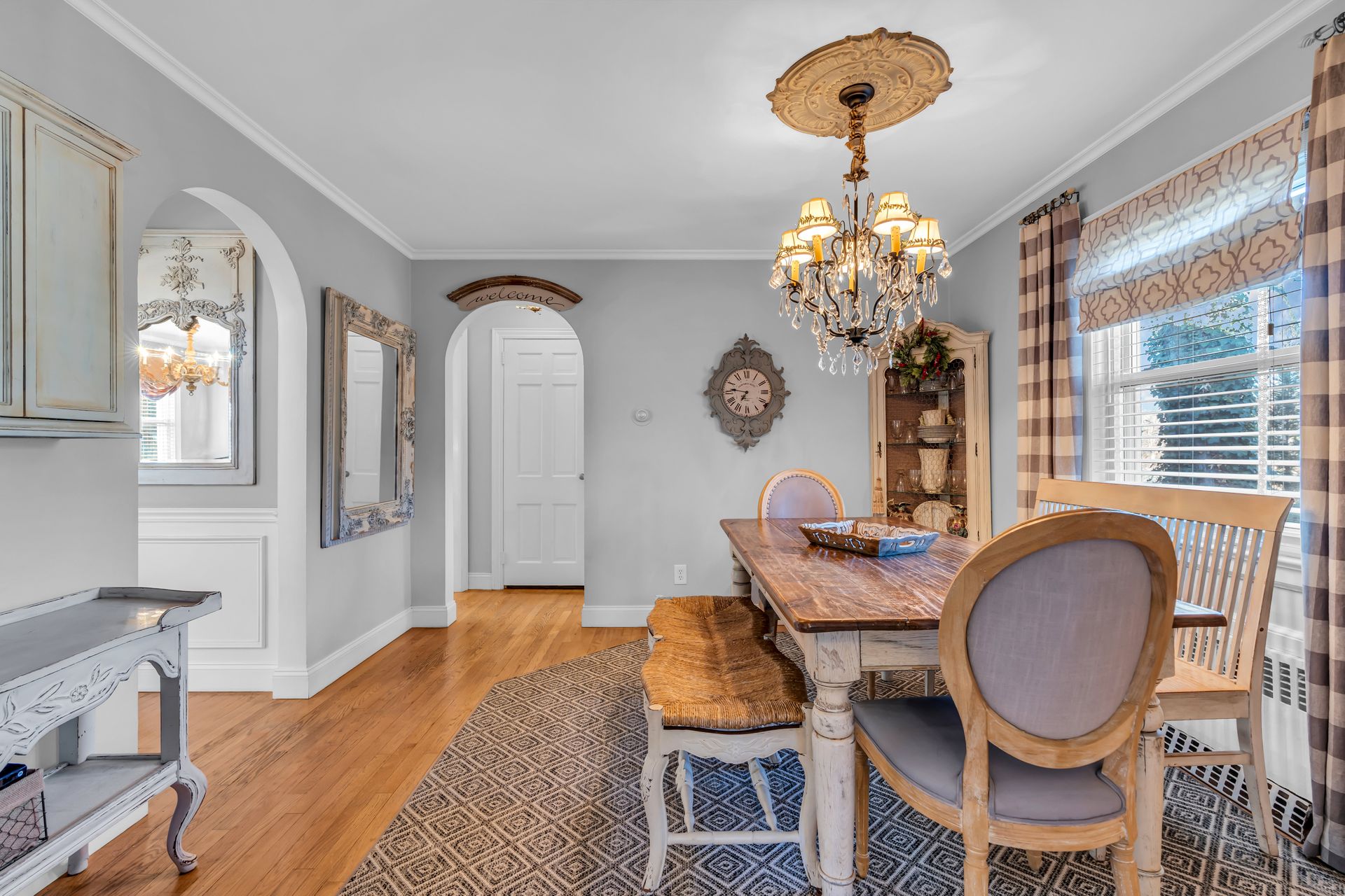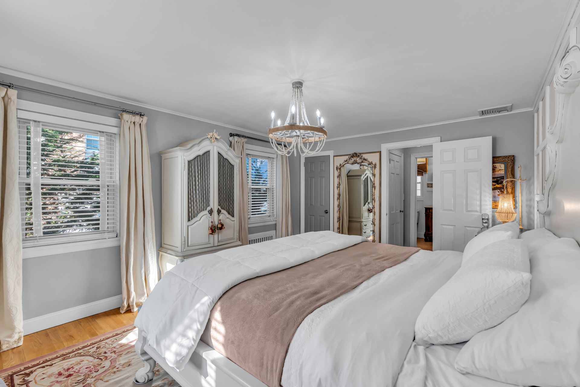 Discover timeless charm and unmatched curb appeal in this meticulously maintained Colonial Cape, nestled in the highly sought-after Burnet Hill neighborhood. As you step inside, elegant archways frame the formal living room, complete with a cozy wood-burning fireplace. The main floor also features a spacious family room, a formal dining room, a generously sized bedroom and a full bath for added convenience. Upstairs, the en-suite primary bedroom offers a serene sitting area and a walk-in closet, accompanied by an additional bedroom and attic storage. The fully finished basement extends the living space with a large recreation room, an office/bedroom, a separate laundry room and ample storage. Outside, the manicured backyard invites you to relax on the deck with a gazebo, perfect for gatherings. An attached garage completes this exceptional home. Blending elegance and comfort, this gem is truly a standout in a coveted location.