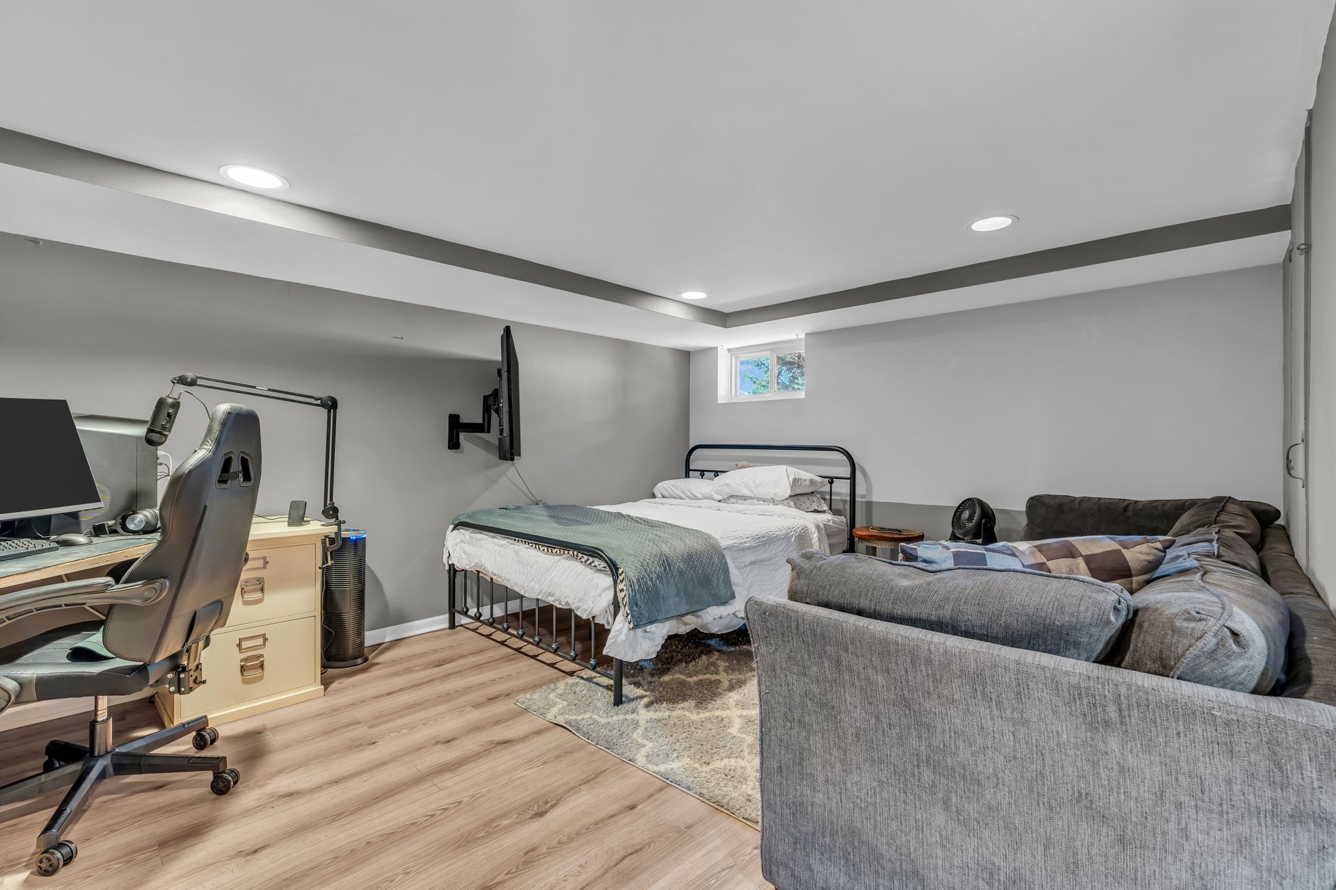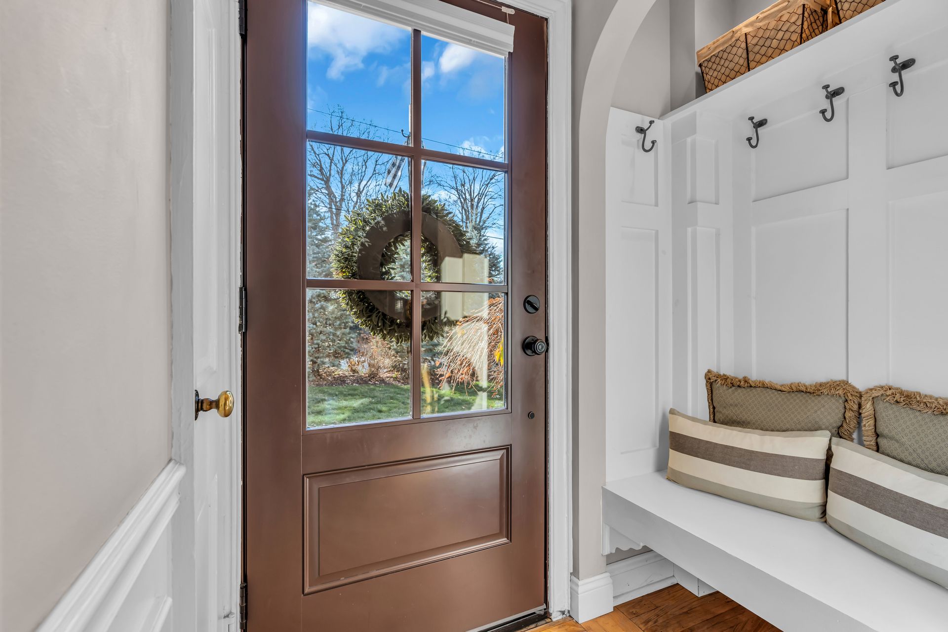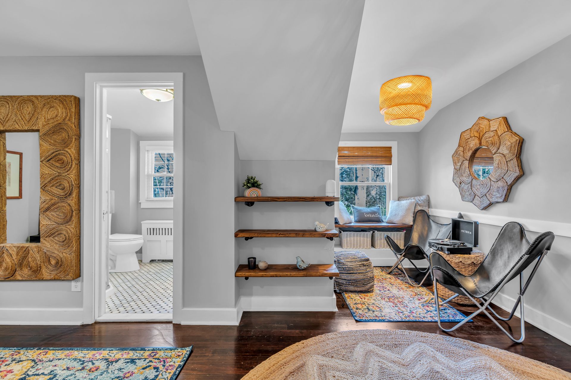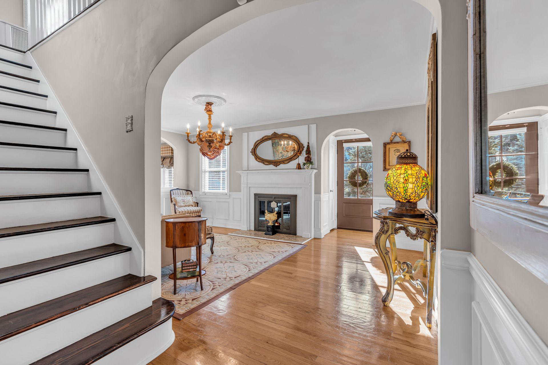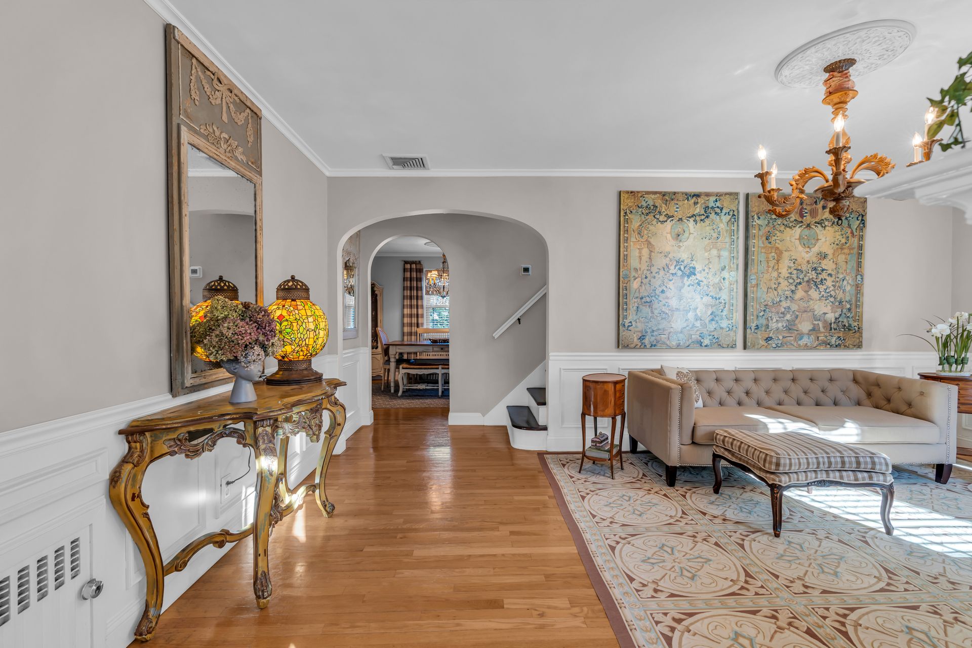Discover timeless charm and unmatched curb appeal in this meticulously maintained Colonial Cape, nestled in the highly sought-after Burnet Hill neighborhood. As you step inside, elegant archways frame the formal living room, complete with a cozy wood-burning fireplace. The main floor also features a spacious family room, a formal dining room, a generously sized bedroom and a full bath for added convenience. Upstairs, the en-suite primary bedroom offers a serene sitting area and a walk-in closet, accompanied by an additional bedroom and attic storage. The fully finished basement extends the living space with a large recreation room, an office/bedroom, a separate laundry room and ample storage. Outside, the manicured backyard invites you to relax on the deck with a gazebo, perfect for gatherings. An attached garage completes this exceptional home. Blending elegance and comfort, this gem is truly a standout in a coveted location.