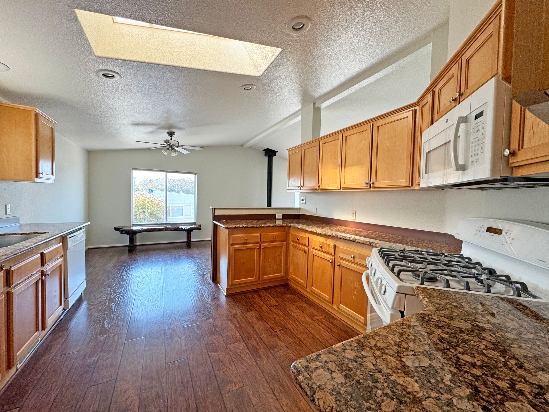 3 Bedroom | 2 Bath | 1,456 sq. ft. Come and enjoy ocean views from Oceanview! This unit is clean, spacious and move-in ready. Offering 3 bedrooms and 2 baths with a private primary suite featuring walk in- closet, porch access and large bathroom with soaking tub, separate shower and dual sink vanity. Newly carpeted and painted throughout. High ceilings, skylights, free-standing gas stove, open kitchen with granite counters, pantry and laundry room with additional storage and access into unit from the covered carport. It has a fully covered porch that runs the length of the home, a fenced backyard and free-standing storage unit. So much space! PLUS, New Roof!