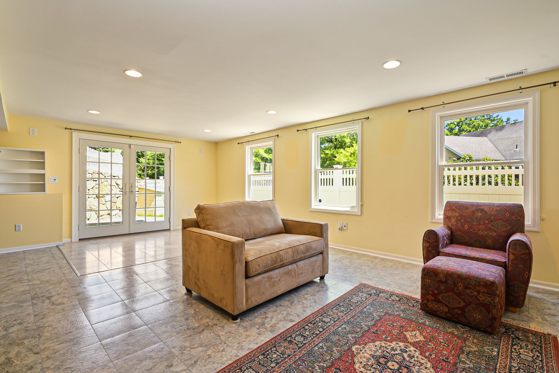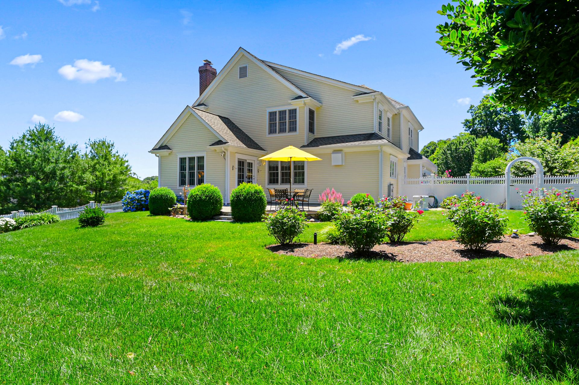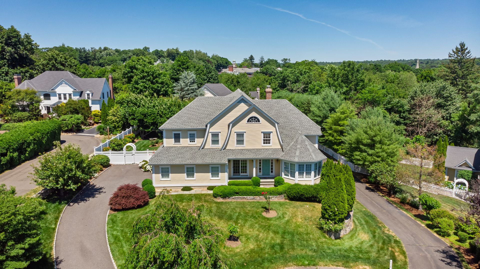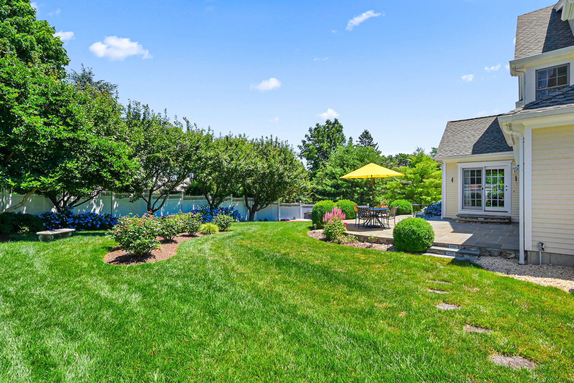 Welcome to this fabulous five bedroom, four and one-half bath colonial nestled in the heart of Westport. Bathed in natural light, the home welcomes you with a two-story foyer, setting the tone for the elegance within. The chef's kitchen boasts high-end Subzero and Wolf appliances including two wall ovens, gas cooktop and Bosch dishwasher, complemented by granite counters, white cabinetry and a generous island for both prep and casual dining. Entertain effortlessly as the kitchen flows into a spectacular great room with vaulted ceiling and a fireplace ensconced in stone. Enter through French doors to the serene bluestone patio, overlooking a private fenced yard adorned with mature landscaping that blooms in every season. The main level also features a formal dining room, a gracious living room, an office and a convenient laundry room. Upstairs, retreat to the primary suite with two walk-in closets, a vaulted ceiling, sitting area and ensuite bathroom with jetted tub and two sinks. Four additional bedrooms and two full bathrooms ensure space for all. The lower level offers a gym with mirrored wall, a full bathroom and a spacious family room with fireplace, wet bar with wine chiller and refrigerator/freezer drawers. French doors open to a patio - potential for a guest suite. Major mechanicals, including a 22KW generator, recently replaced. Situated at the end of a tranquil cul-de-sac, this home combines peaceful seclusion and strolling distance to school, the river, a variety of restaurants and just about one mile to the train. Welcome home!