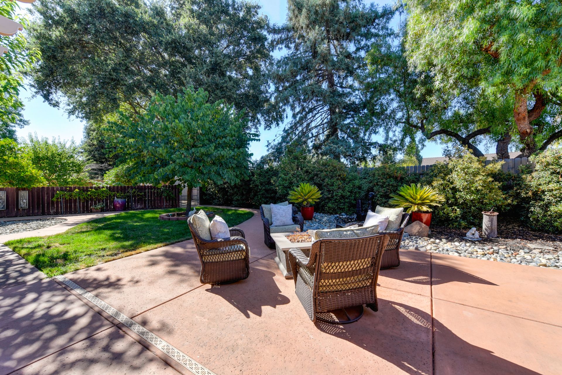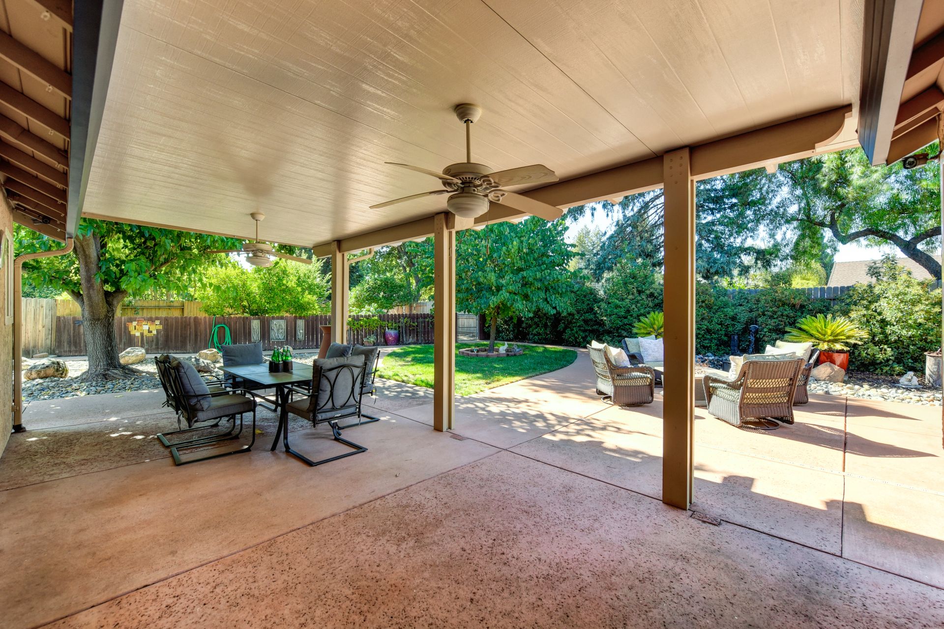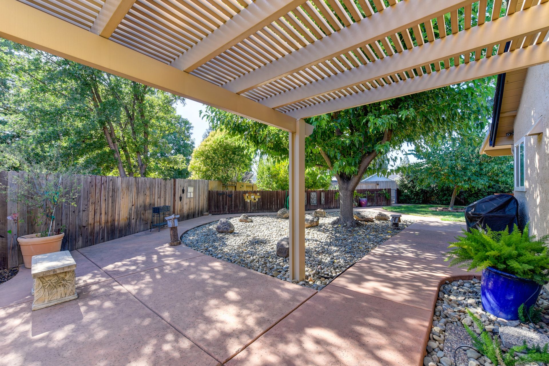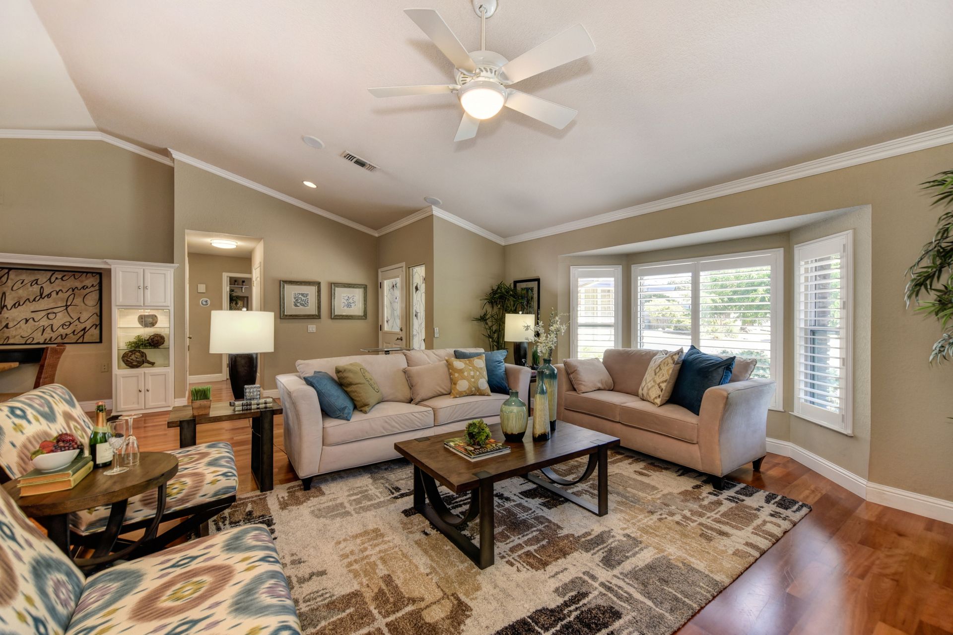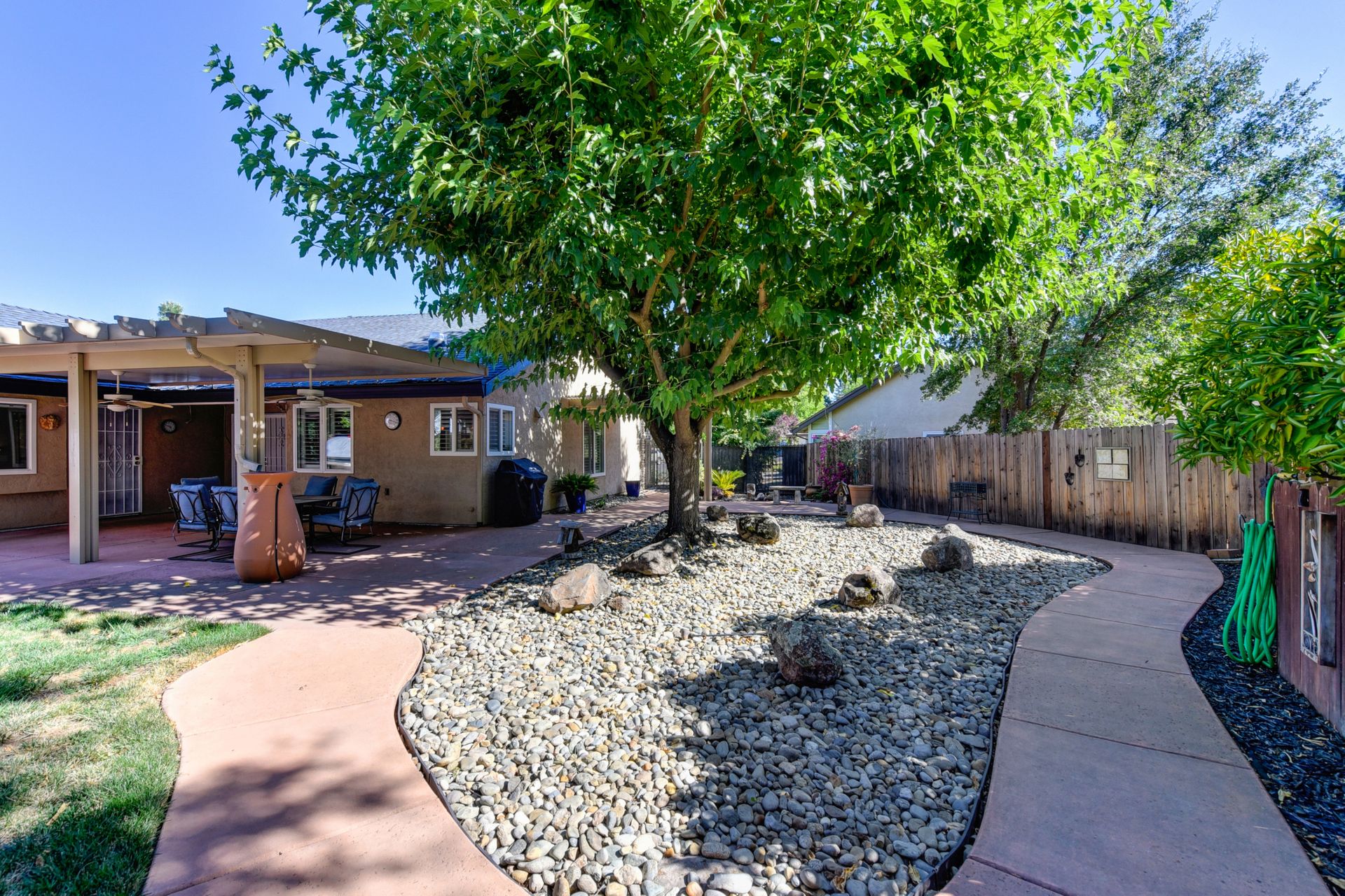 A HOME THAT CHECKS ALL THE BOXES! Cul-de-sac location, single story, fabulously designed great room floor plan that offers many accessible features, multiple security doors to enjoy the evening & morning breezes, amazing wrap around yard, 300 sq ft patio with ceiling fans, mini orchard, patio, spa and water fall features. 14X30 insulated garage/workshop with power and lighting, 13-foot RV parking cover with 30-amp electrical outlet, 9X9 vented storage with windows, 3X6 metal tool shed and a 2 car garage with insulated doors, built in storage & epoxy flooring. The owners labor of love and careful attention to detail, outshines the competition! The home and lot were remodeled and improved at just about every square inch, including windows. This home definitely has a WOW factor the instant you enter the home! The enhanced great room floor plan, has open flowing space, amazing filtered light through plantation shutters, architectural features and a kitchen to do amazing cooking & entertaining. The formal dining area has built-ins and lighted cabinetry and the kitchen has custom cabinetry, updated appliances, multiple counters and dinning options, that flow to the rear patios and yard. A custom bar/wine storage cabinet is located in the hallway, which could be used for many things- you choose!. Gorgeous custom bathrooms enhance the space and make this home easy to love!