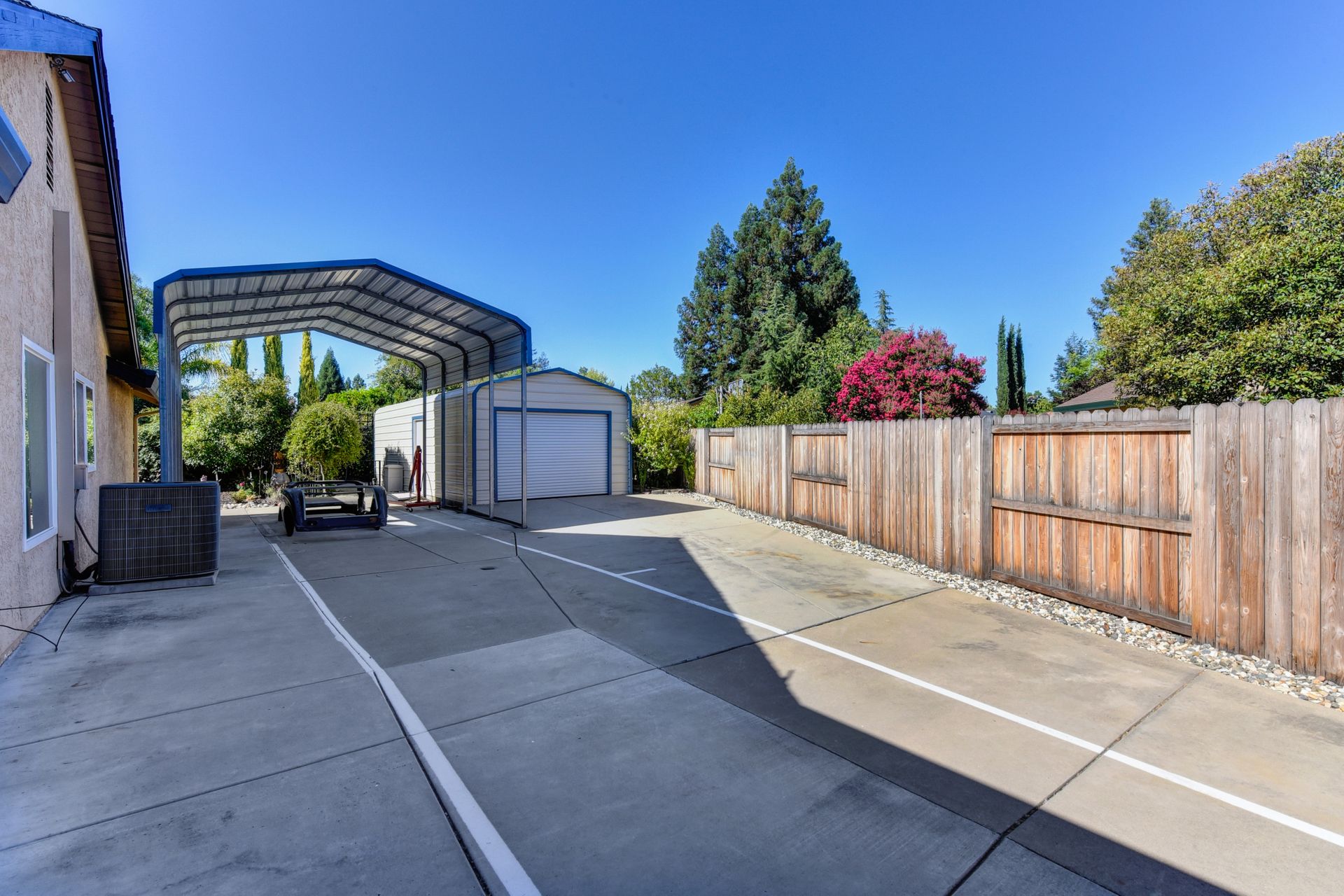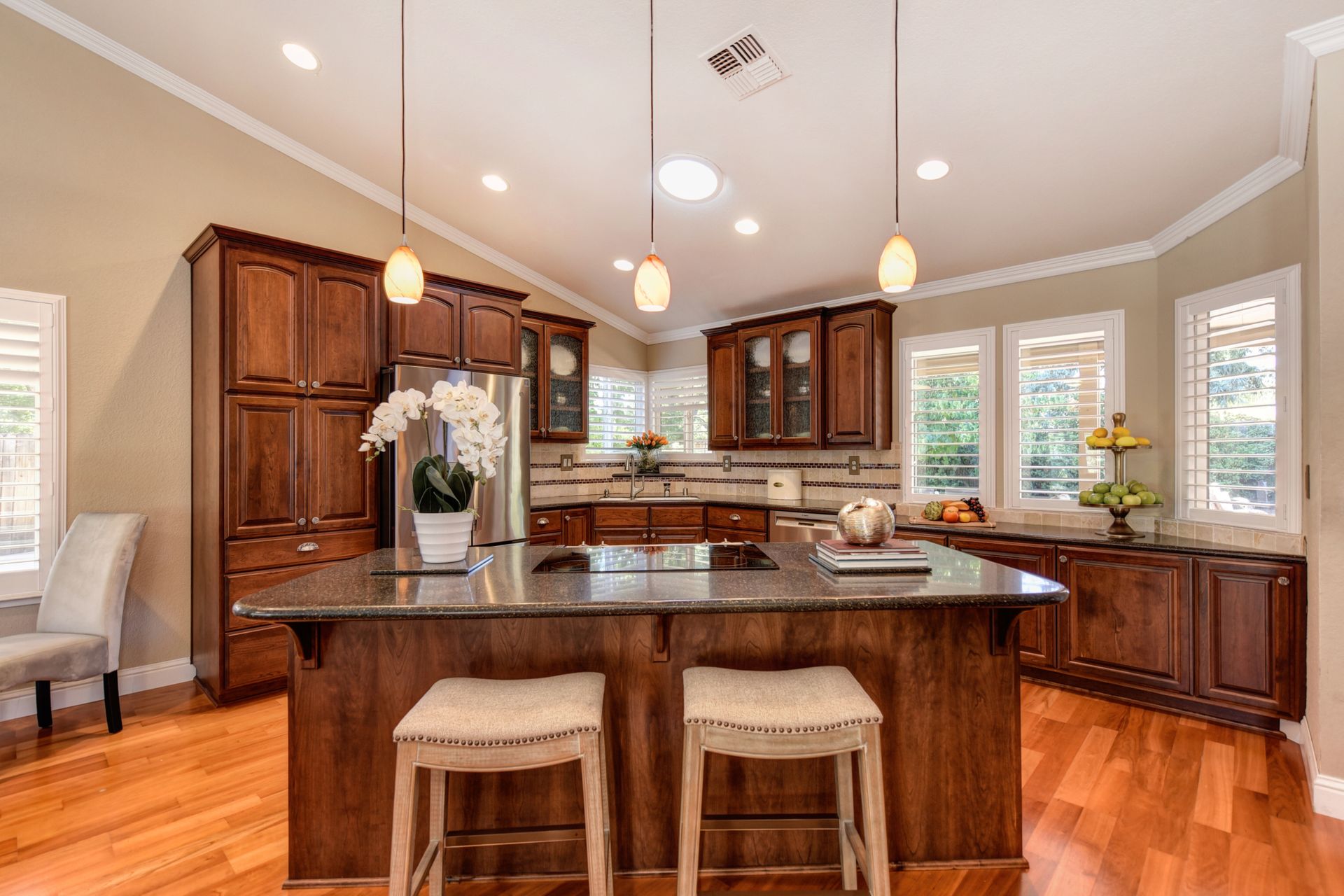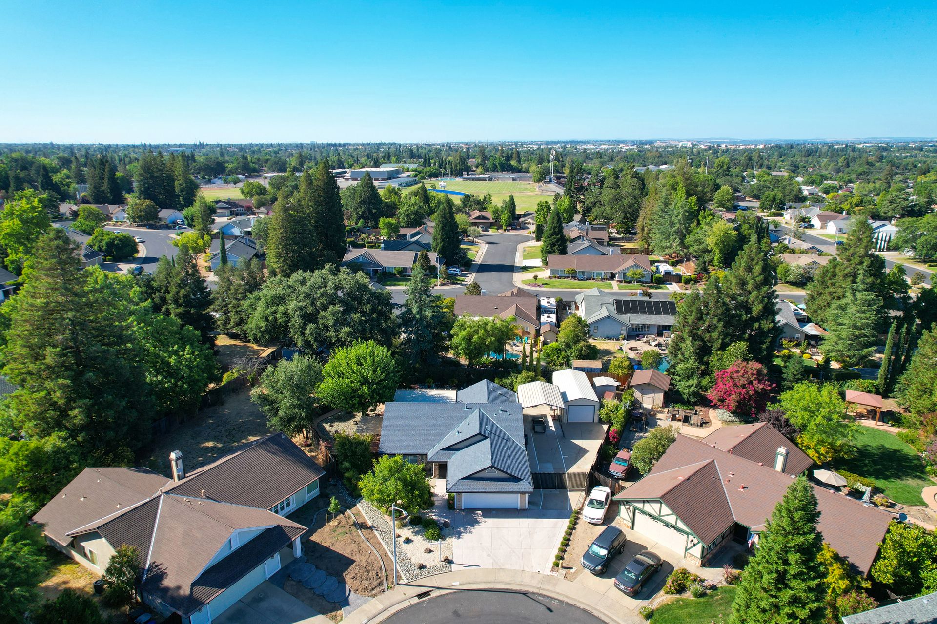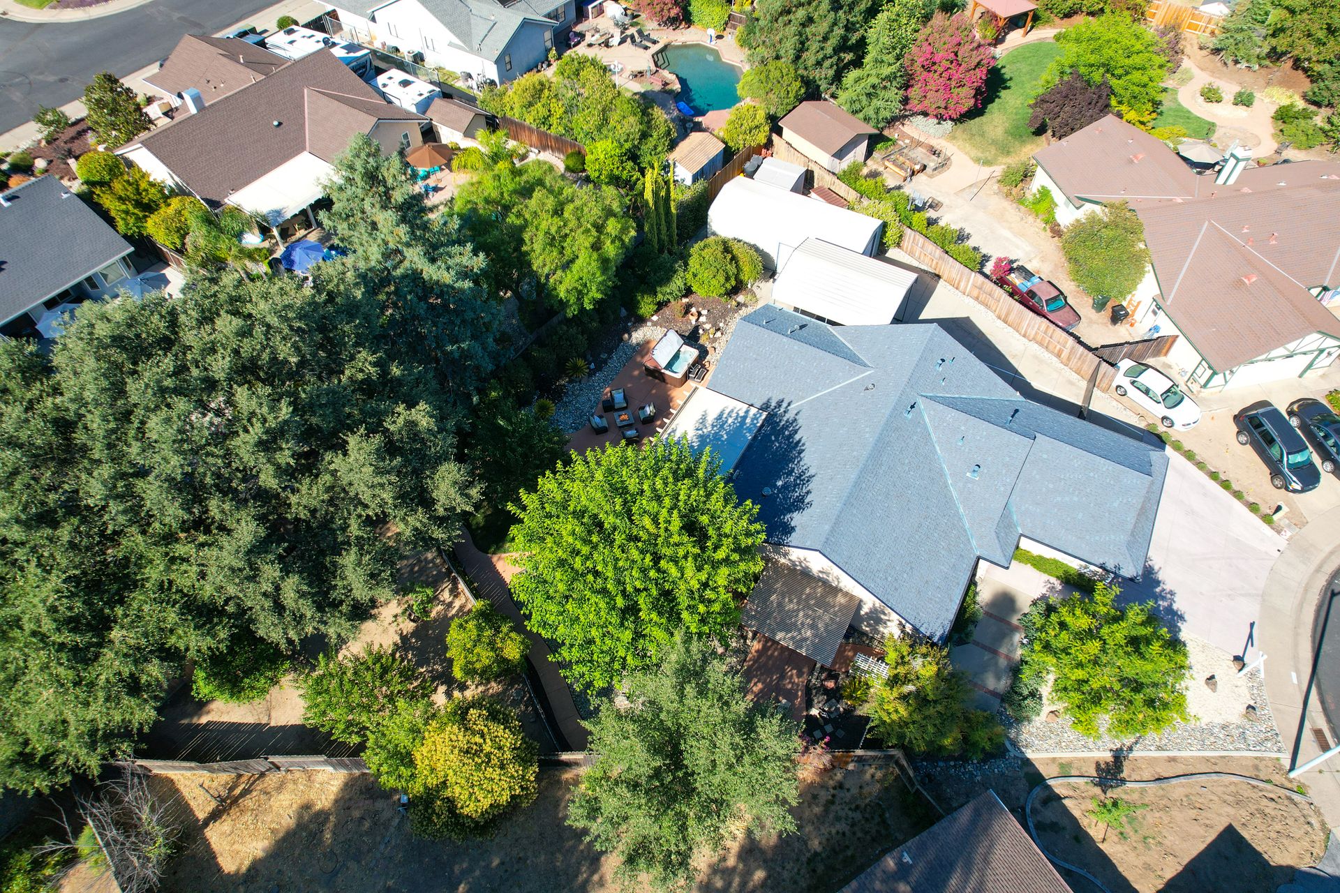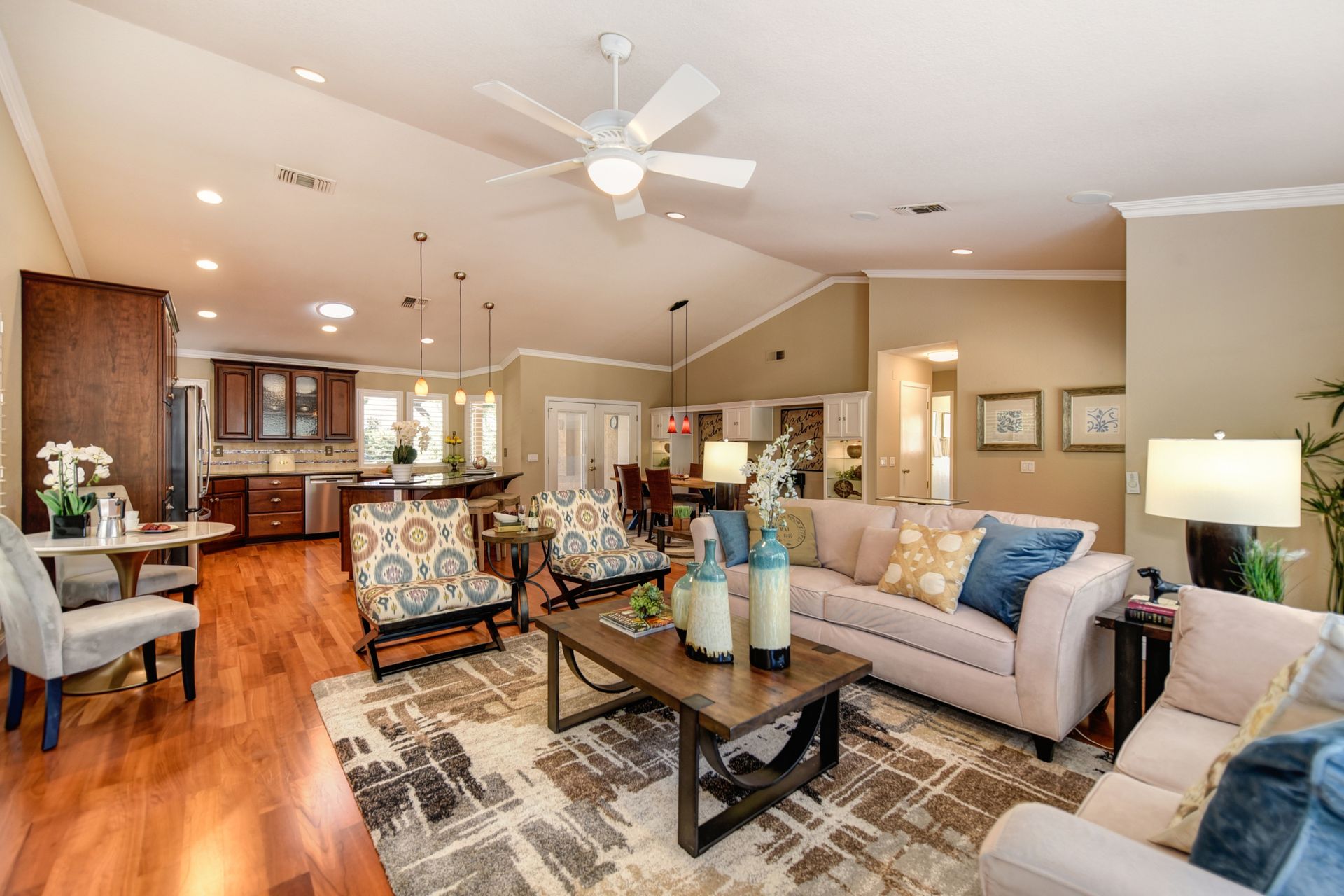 A HOME THAT CHECKS ALL THE BOXES! Cul-de-sac location, single story, fabulously designed great room floor plan that offers many accessible features, multiple security doors to enjoy the evening & morning breezes, amazing wrap around yard, 300 sq ft patio with ceiling fans, mini orchard, patio, spa and water fall features. 14X30 insulated garage/workshop with power and lighting, 13-foot RV parking cover with 30-amp electrical outlet, 9X9 vented storage with windows, 3X6 metal tool shed and a 2 car garage with insulated doors, built in storage & epoxy flooring. The owners labor of love and careful attention to detail, outshines the competition! The home and lot were remodeled and improved at just about every square inch, including windows. This home definitely has a WOW factor the instant you enter the home! The enhanced great room floor plan, has open flowing space, amazing filtered light through plantation shutters, architectural features and a kitchen to do amazing cooking & entertaining. The formal dining area has built-ins and lighted cabinetry and the kitchen has custom cabinetry, updated appliances, multiple counters and dinning options, that flow to the rear patios and yard. A custom bar/wine storage cabinet is located in the hallway, which could be used for many things- you choose!. Gorgeous custom bathrooms enhance the space and make this home easy to love!