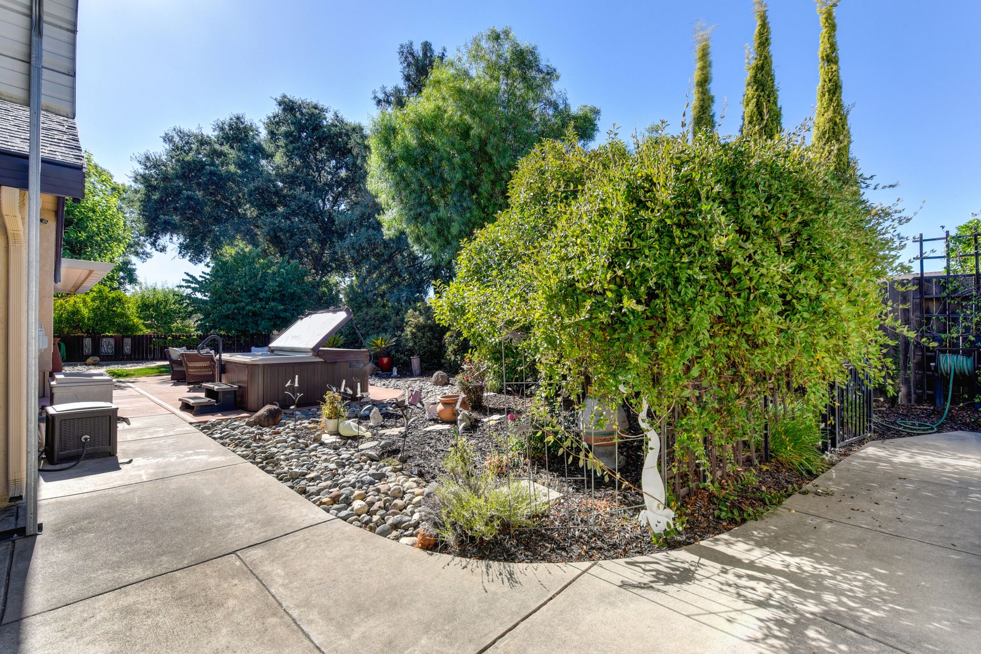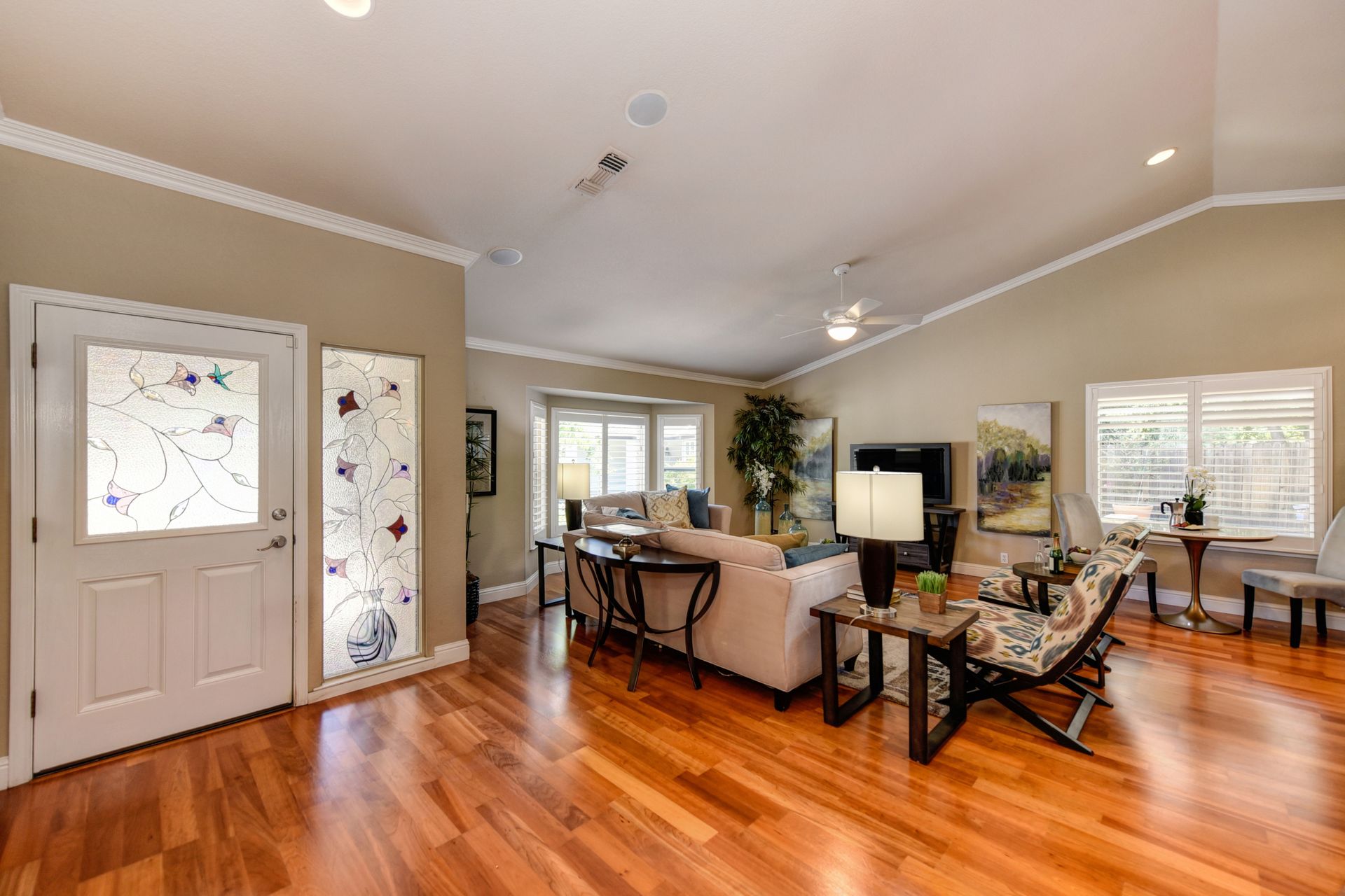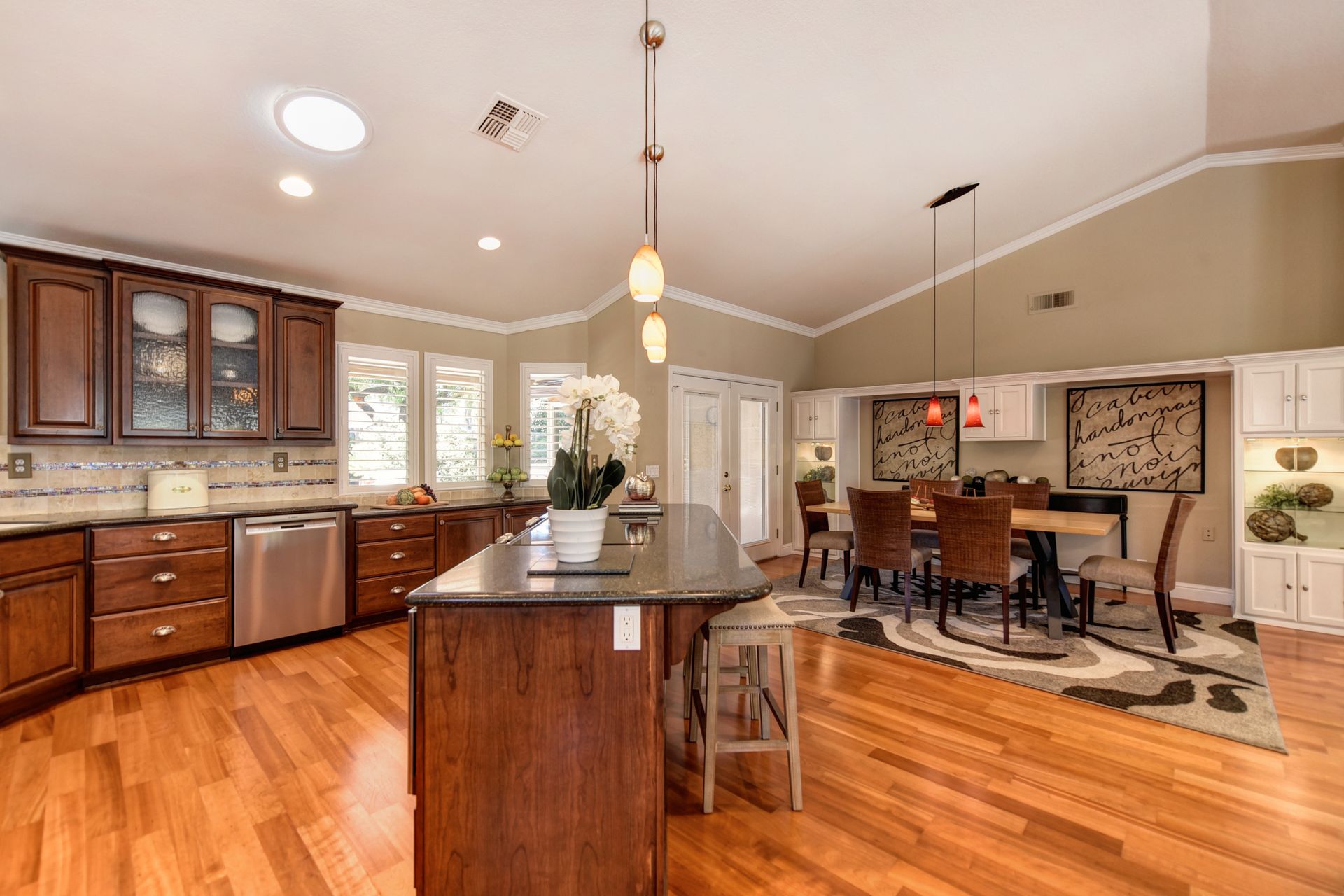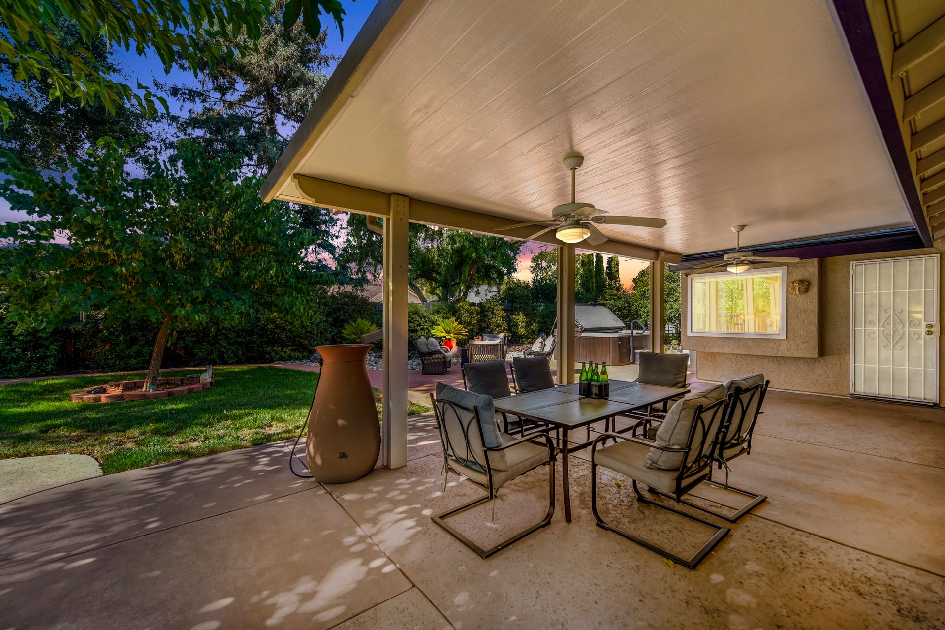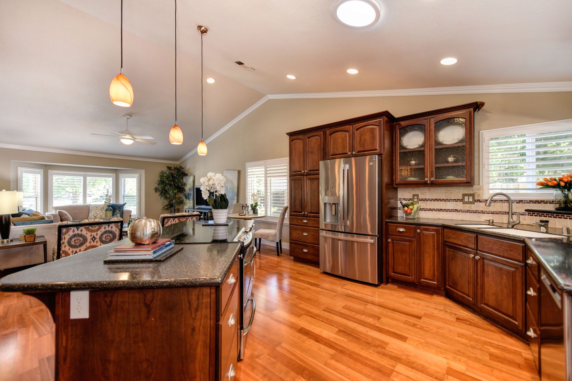 A HOME THAT CHECKS ALL THE BOXES! Cul-de-sac location, single story, fabulously designed great room floor plan that offers many accessible features, multiple security doors to enjoy the evening & morning breezes, amazing wrap around yard, 300 sq ft patio with ceiling fans, mini orchard, patio, spa and water fall features. 14X30 insulated garage/workshop with power and lighting, 13-foot RV parking cover with 30-amp electrical outlet, 9X9 vented storage with windows, 3X6 metal tool shed and a 2 car garage with insulated doors, built in storage & epoxy flooring. The owners labor of love and careful attention to detail, outshines the competition! The home and lot were remodeled and improved at just about every square inch, including windows. This home definitely has a WOW factor the instant you enter the home! The enhanced great room floor plan, has open flowing space, amazing filtered light through plantation shutters, architectural features and a kitchen to do amazing cooking & entertaining. The formal dining area has built-ins and lighted cabinetry and the kitchen has custom cabinetry, updated appliances, multiple counters and dinning options, that flow to the rear patios and yard. A custom bar/wine storage cabinet is located in the hallway, which could be used for many things- you choose!. Gorgeous custom bathrooms enhance the space and make this home easy to love!