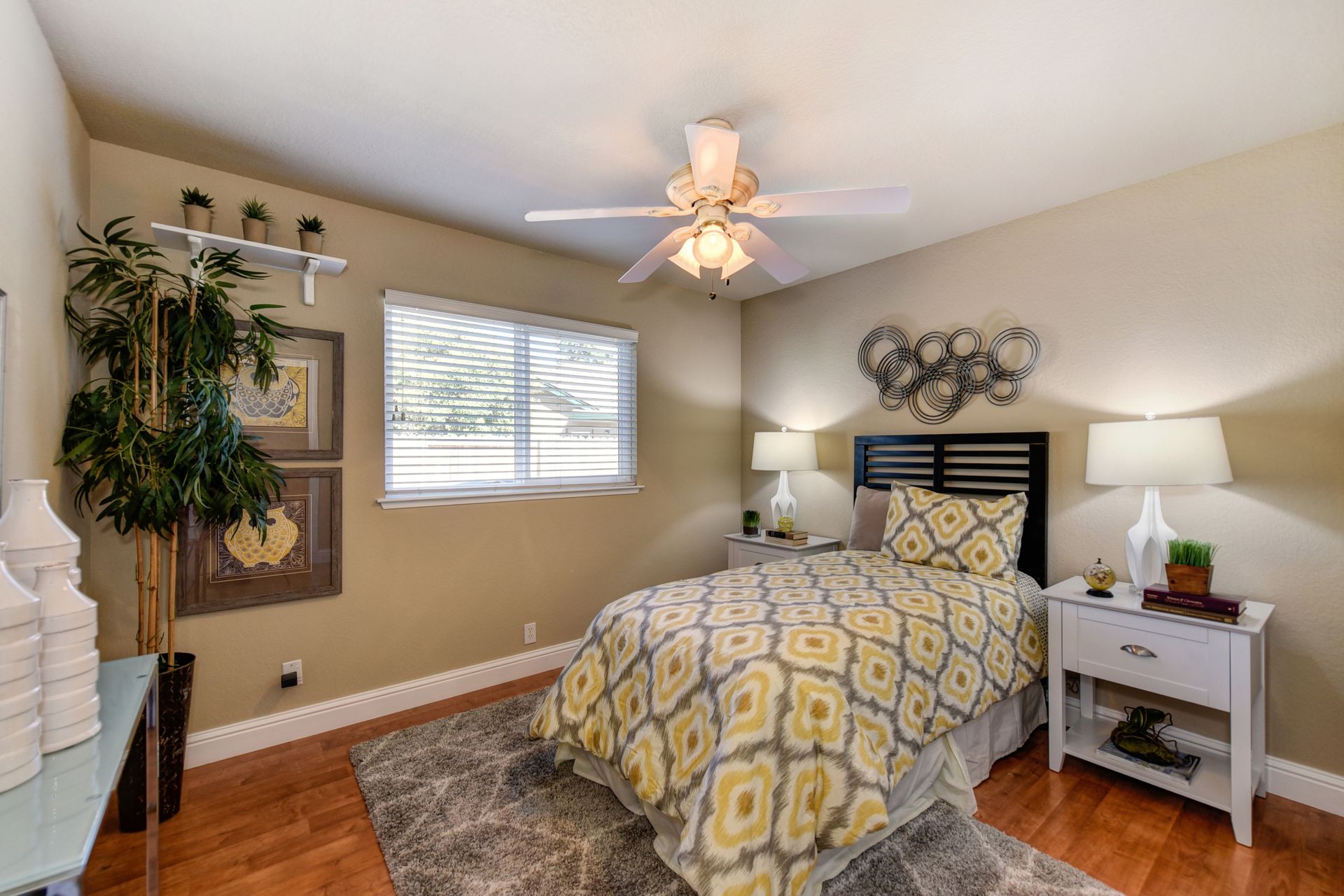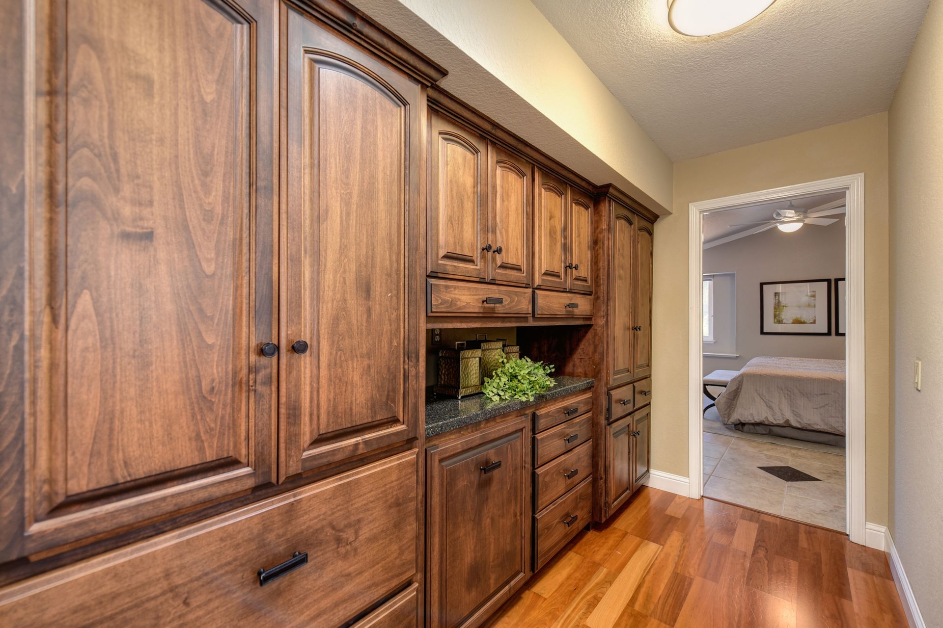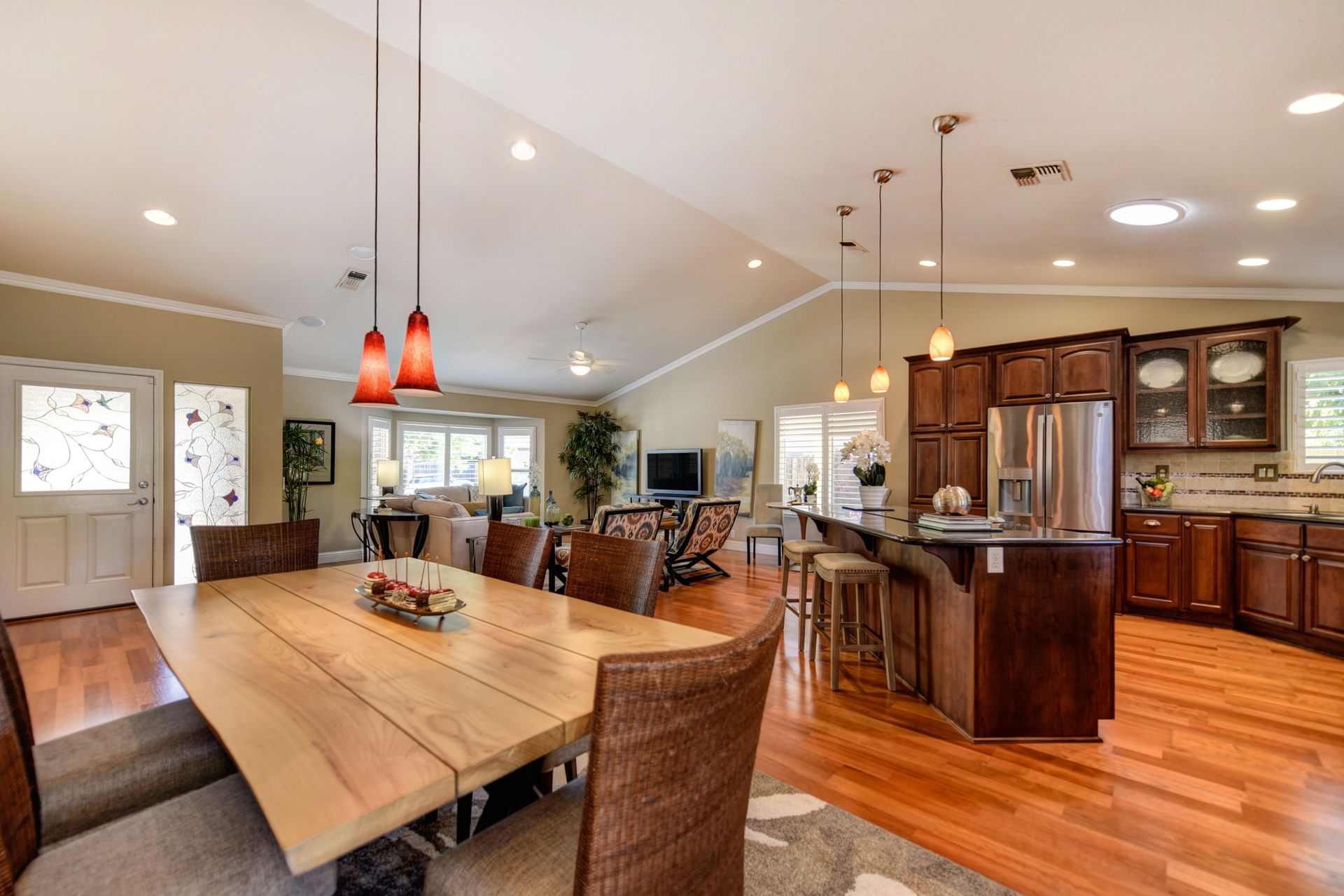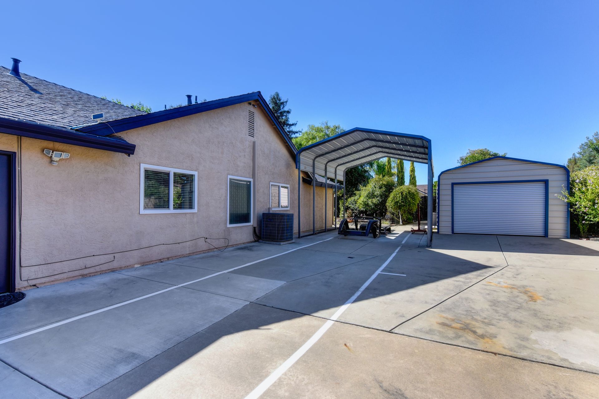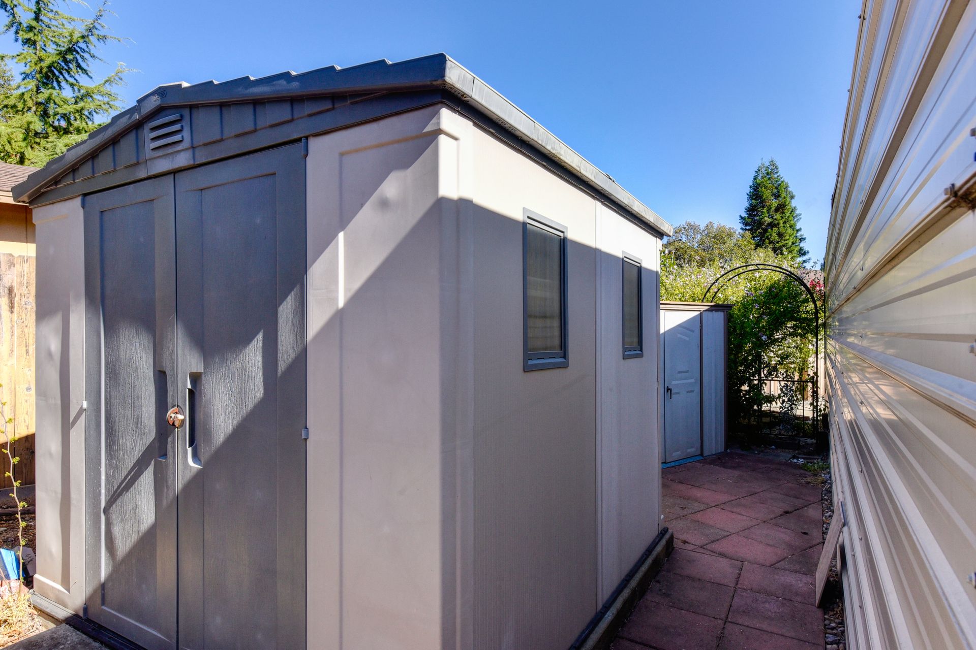 A HOME THAT CHECKS ALL THE BOXES! Cul-de-sac location, single story, fabulously designed great room floor plan that offers many accessible features, multiple security doors to enjoy the evening & morning breezes, amazing wrap around yard, 300 sq ft patio with ceiling fans, mini orchard, patio, spa and water fall features. 14X30 insulated garage/workshop with power and lighting, 13-foot RV parking cover with 30-amp electrical outlet, 9X9 vented storage with windows, 3X6 metal tool shed and a 2 car garage with insulated doors, built in storage & epoxy flooring. The owners labor of love and careful attention to detail, outshines the competition! The home and lot were remodeled and improved at just about every square inch, including windows. This home definitely has a WOW factor the instant you enter the home! The enhanced great room floor plan, has open flowing space, amazing filtered light through plantation shutters, architectural features and a kitchen to do amazing cooking & entertaining. The formal dining area has built-ins and lighted cabinetry and the kitchen has custom cabinetry, updated appliances, multiple counters and dinning options, that flow to the rear patios and yard. A custom bar/wine storage cabinet is located in the hallway, which could be used for many things- you choose!. Gorgeous custom bathrooms enhance the space and make this home easy to love!