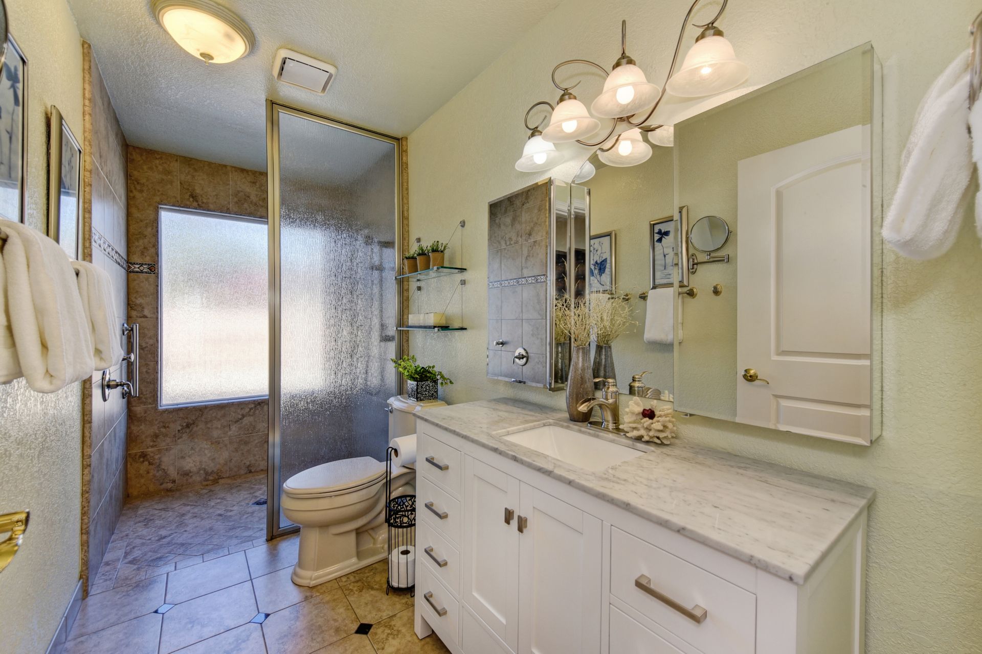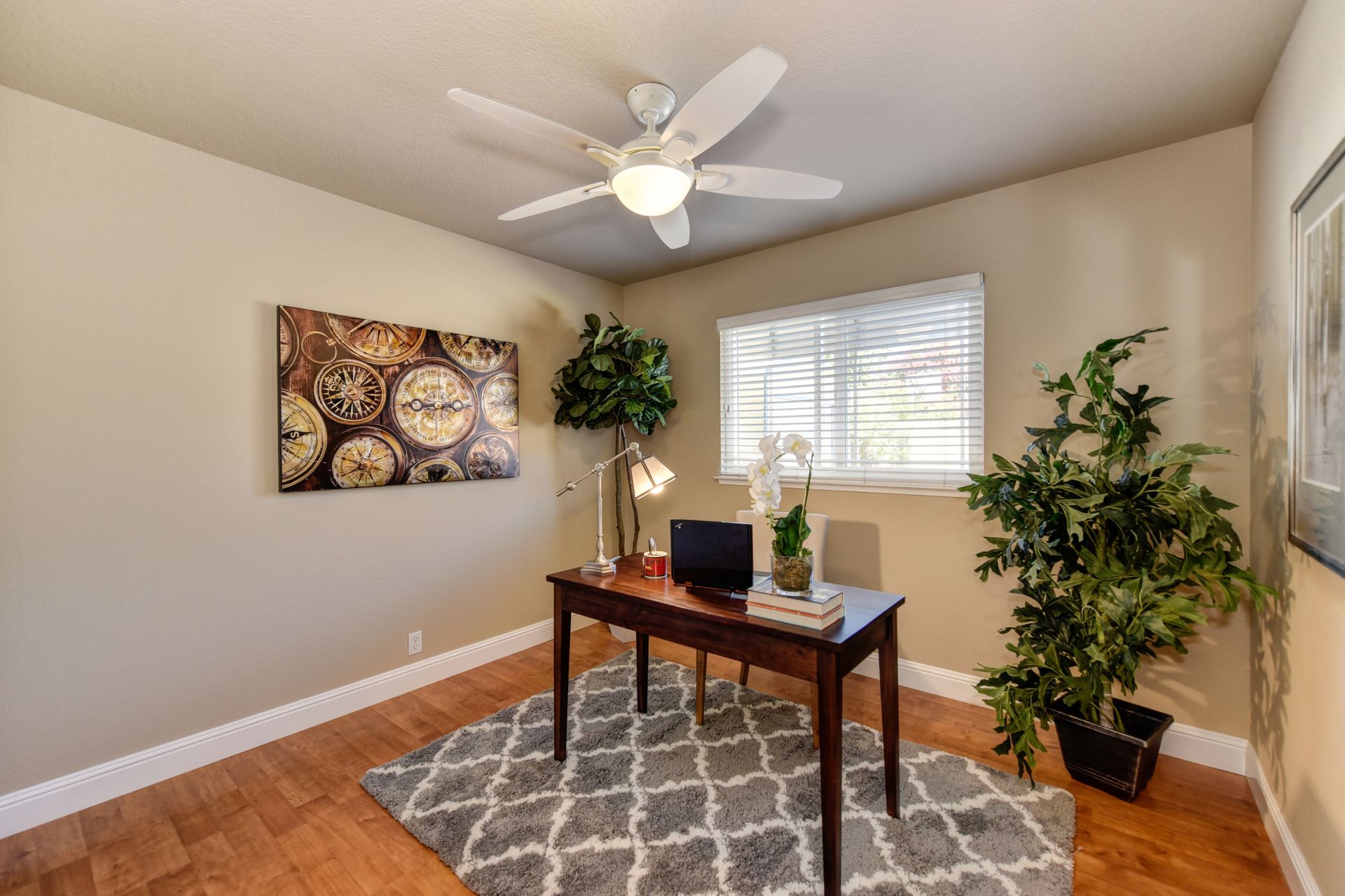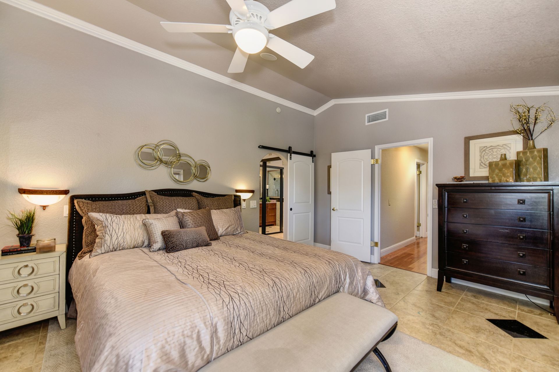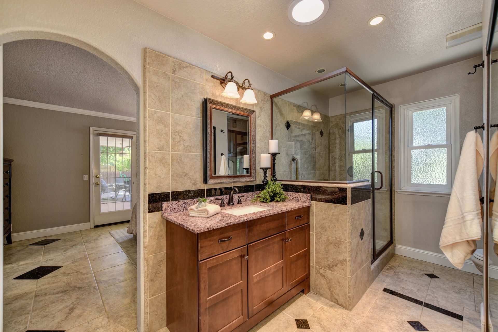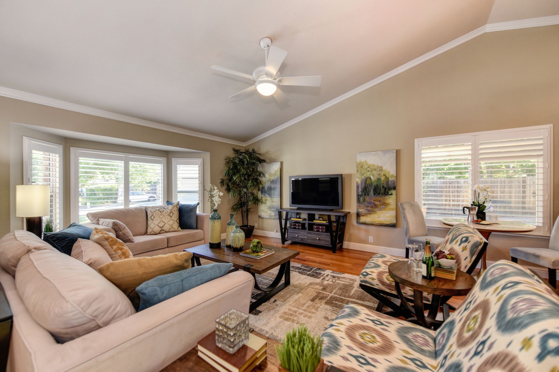 A HOME THAT CHECKS ALL THE BOXES! Cul-de-sac location, single story, fabulously designed great room floor plan that offers many accessible features, multiple security doors to enjoy the evening & morning breezes, amazing wrap around yard, 300 sq ft patio with ceiling fans, mini orchard, patio, spa and water fall features. 14X30 insulated garage/workshop with power and lighting, 13-foot RV parking cover with 30-amp electrical outlet, 9X9 vented storage with windows, 3X6 metal tool shed and a 2 car garage with insulated doors, built in storage & epoxy flooring. The owners labor of love and careful attention to detail, outshines the competition! The home and lot were remodeled and improved at just about every square inch, including windows. This home definitely has a WOW factor the instant you enter the home! The enhanced great room floor plan, has open flowing space, amazing filtered light through plantation shutters, architectural features and a kitchen to do amazing cooking & entertaining. The formal dining area has built-ins and lighted cabinetry and the kitchen has custom cabinetry, updated appliances, multiple counters and dinning options, that flow to the rear patios and yard. A custom bar/wine storage cabinet is located in the hallway, which could be used for many things- you choose!. Gorgeous custom bathrooms enhance the space and make this home easy to love!