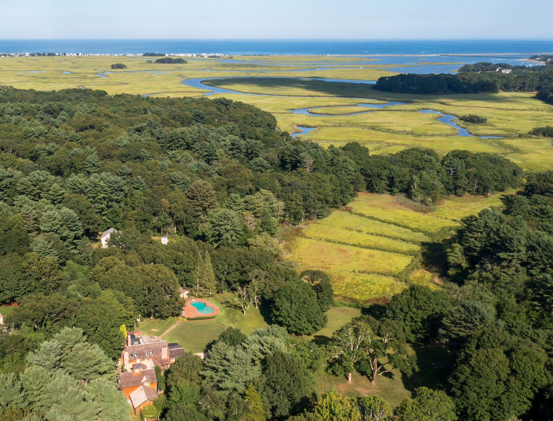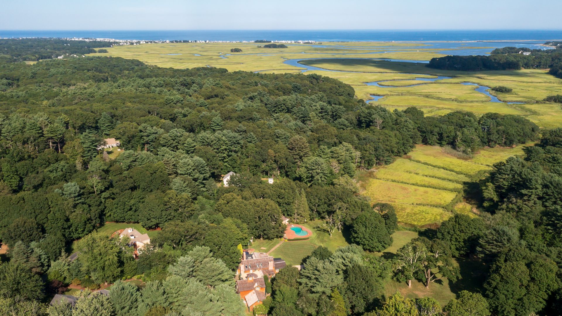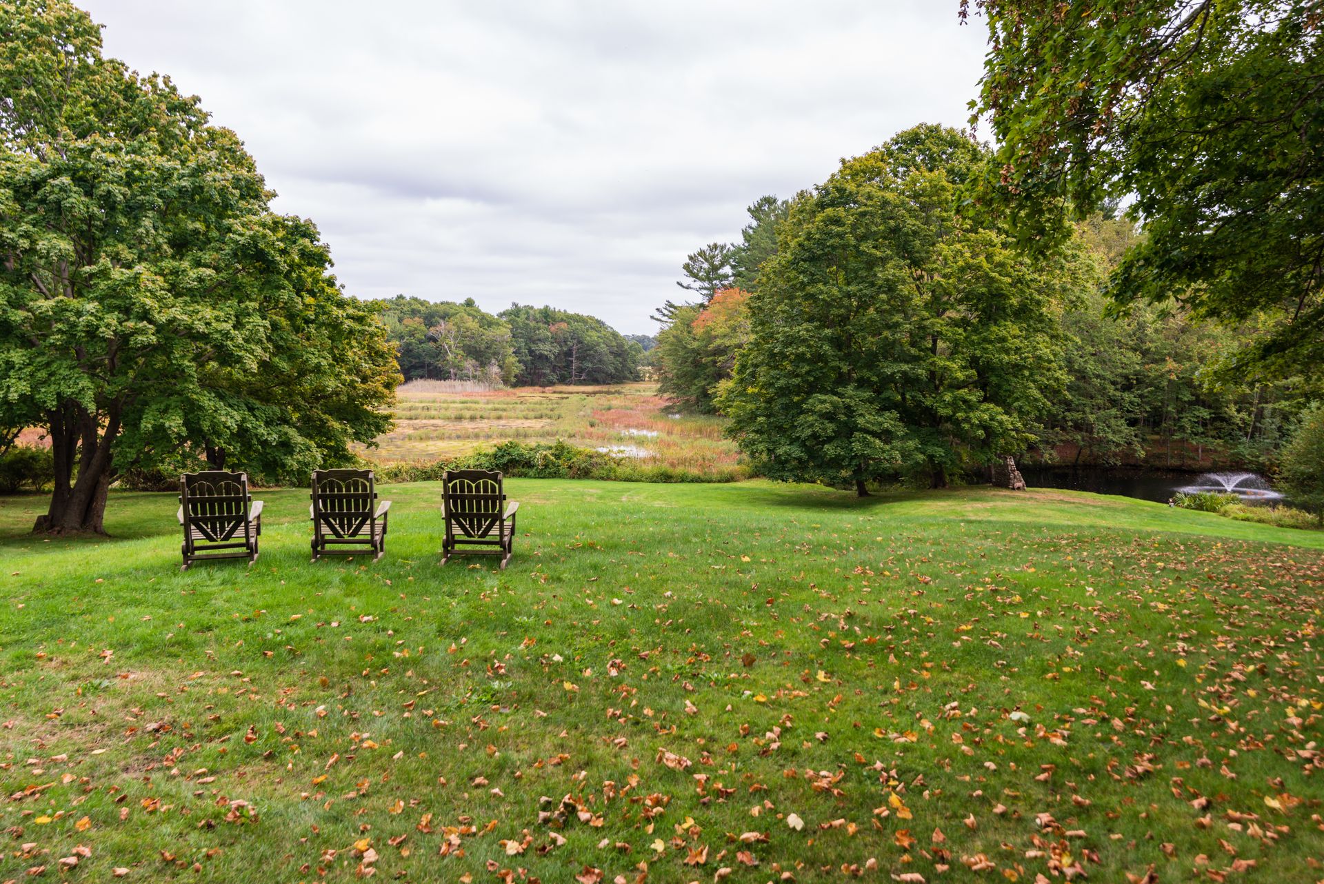 Welcome to Brook Haven Farm. This magnificent fourteen room country estate with detached stone front carriage house and roof top garden boasts ethereal views of the marsh and pond. This sprawling manor has soaring ceilings, three fireplaces, exposed wood, beams, custom woodwork, luxurious first floor primary suite with personalized dressing room, walk in closet, bathroom wing with jet tub and steam shower and fine updated appointments. Casual yet elegant living room with walls of wood wainscoting, pine floors and stone fireplace lead to a high-tech media room and a fireplaced kitchen with large center island cook station, six burner professional grade Viking stove with griddle and double ovens. Quartz counters and white painted cabinetry are a stunning balance to the adjoining brick floored tearoom. Owners themed billiards room, a second-floor family room with roof top deck and multiple bedrooms add to the allure. The pond exudes peaceful beauty with a fountain spray, arched bridge to a tranquil path, flowing brook to the marsh and beach stone fireplace all surrounded by manicured luminous landscape. Property consists of two separate lots. The rambling main house is perched on over 2.5 lush acres with Koi ponds, waterfalls, specimen plantings and heated inground pool. A stunning three stall barn, tack room with wood burning stove and upper hayloft is all ready for the horses. The second lot is a manicured approximately 4.55 acres and has a heated updated original 1700's barn garage and picturesque post and beam screen house which enhances the main property or can be rebuilt upon; 3rd lot potential with additional engineering. This exquisite 7+ acre masterpiece has been lovingly constructed over the years enhancing the verdant natural surroundings. Custom designed double entrance gates and complete property fencing preserve the ultimate privacy. Enjoy the sandy Duxbury beaches and Duxbury Bay for boating. Easy access to highway, Boston and Marshfield airport for private jet travel.