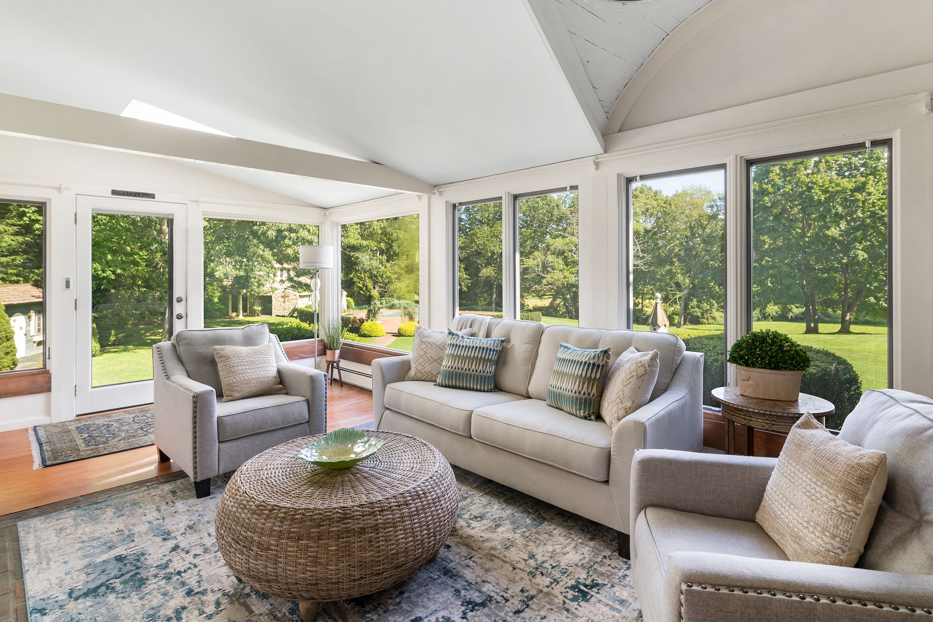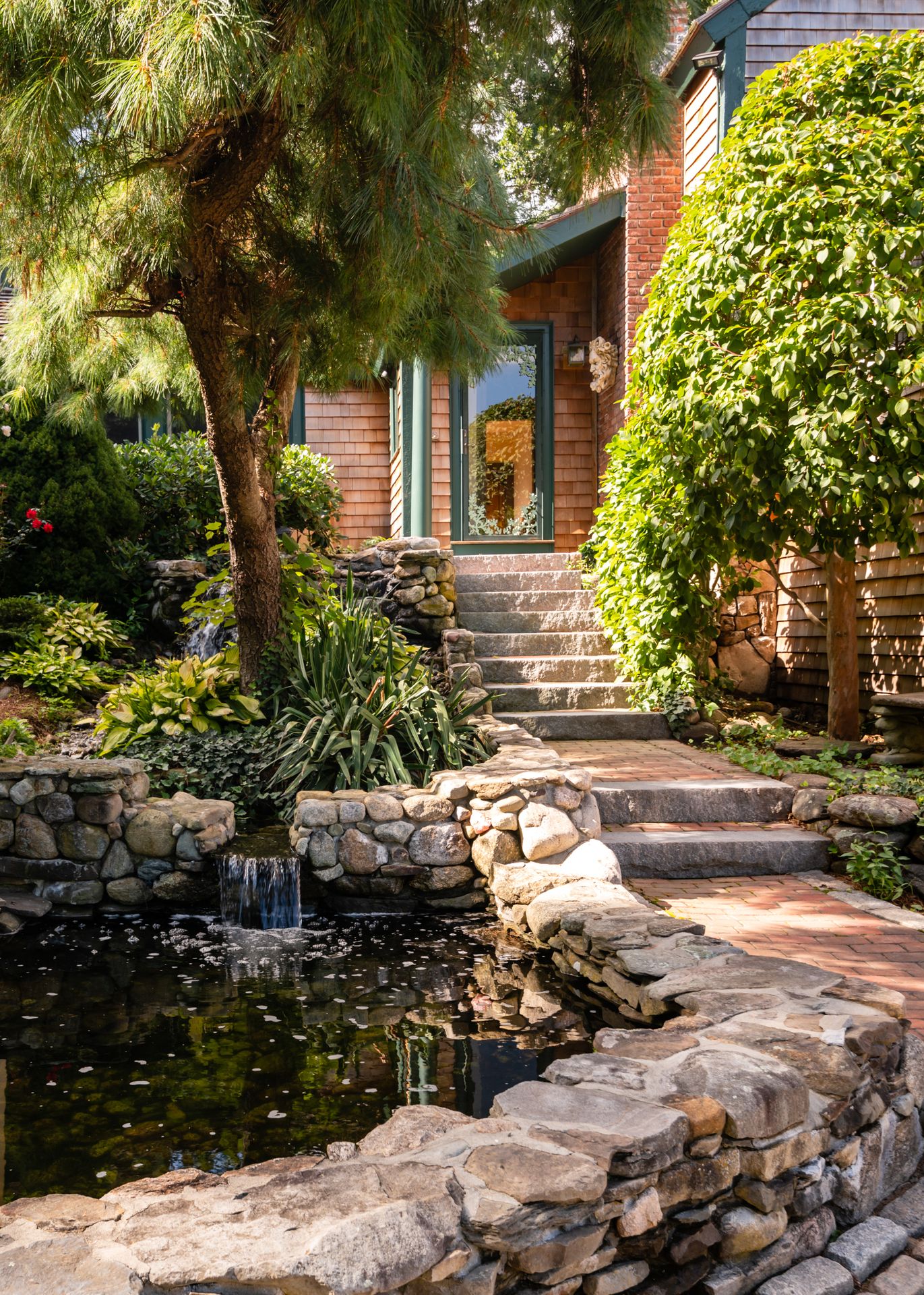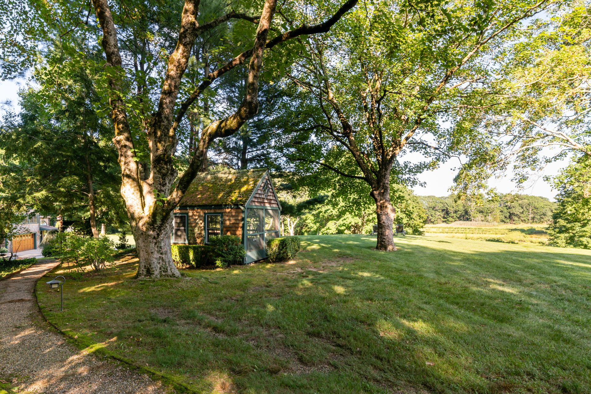 Welcome to Brook Haven Farm. This magnificent fourteen room country estate with detached stone front carriage house and roof top garden boasts ethereal views of the marsh and pond. This sprawling manor has soaring ceilings, three fireplaces, exposed wood, beams, custom woodwork, luxurious first floor primary suite with personalized dressing room, walk in closet, bathroom wing with jet tub and steam shower and fine updated appointments. Casual yet elegant living room with walls of wood wainscoting, pine floors and stone fireplace lead to a high-tech media room and a fireplaced kitchen with large center island cook station, six burner professional grade Viking stove with griddle and double ovens. Quartz counters and white painted cabinetry are a stunning balance to the adjoining brick floored tearoom. Owners themed billiards room, a second-floor family room with roof top deck and multiple bedrooms add to the allure. The pond exudes peaceful beauty with a fountain spray, arched bridge to a tranquil path, flowing brook to the marsh and beach stone fireplace all surrounded by manicured luminous landscape. Property consists of two separate lots. The rambling main house is perched on over 2.5 lush acres with Koi ponds, waterfalls, specimen plantings and heated inground pool. A stunning three stall barn, tack room with wood burning stove and upper hayloft is all ready for the horses. The second lot is a manicured approximately 4.55 acres and has a heated updated original 1700's barn garage and picturesque post and beam screen house which enhances the main property or can be rebuilt upon; 3rd lot potential with additional engineering. This exquisite 7+ acre masterpiece has been lovingly constructed over the years enhancing the verdant natural surroundings. Custom designed double entrance gates and complete property fencing preserve the ultimate privacy. Enjoy the sandy Duxbury beaches and Duxbury Bay for boating. Easy access to highway, Boston and Marshfield airport for private jet travel.