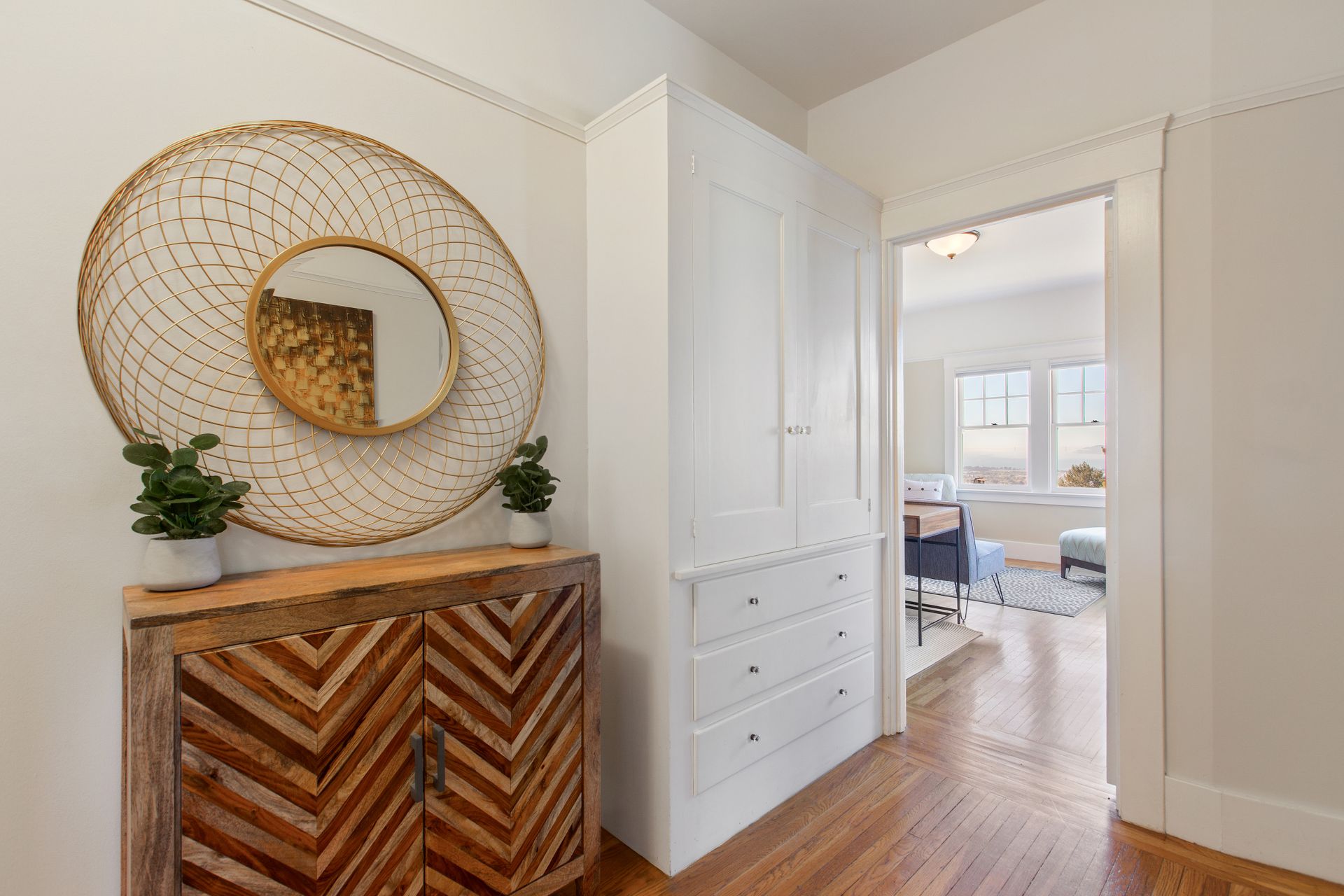 Magnificent Golden Gate Bridge View, top level corner unit in N. Berkeley next to The Rose Garden. Elegant New York 1920's style feel building has classic charm with modern updates. This beautiful 2 Bedroom residence provides a level of gracious living rarely found today. Beautiful San Francisco city skyline and 2 bridge view's, this top floor residence enjoys sunlight throughout the day. Entering through a classic foyer, you will immediately find this beautiful unit has a sensible flowing floor-plan. The plethora of windows brings in natural light, with the beautiful surrounding trees makes this home feel like a tranquil retreat resort. Come home to relax, cozy up to the fireplace and take in the magical sunsets to end your beautiful day. Great features included a large major bedroom with Golden Gate bridge view plus lounge/office space, wood floors throughout, updated kitchen, formal dining room, laundry, also comes with garage parking & storage. Enjoy all the peaceful natural environment this neighborhood has to offer- Berkeley Rose Garden, Tilden Park, hiking and biking trails… and only minutes to the N. Berkeley shops, cafes, restaurants, Solano Ave, UC Berkeley, downtown Berkeley, BART, Transbay bus to SF. A Must see! Truly an exceptional place to call homes!