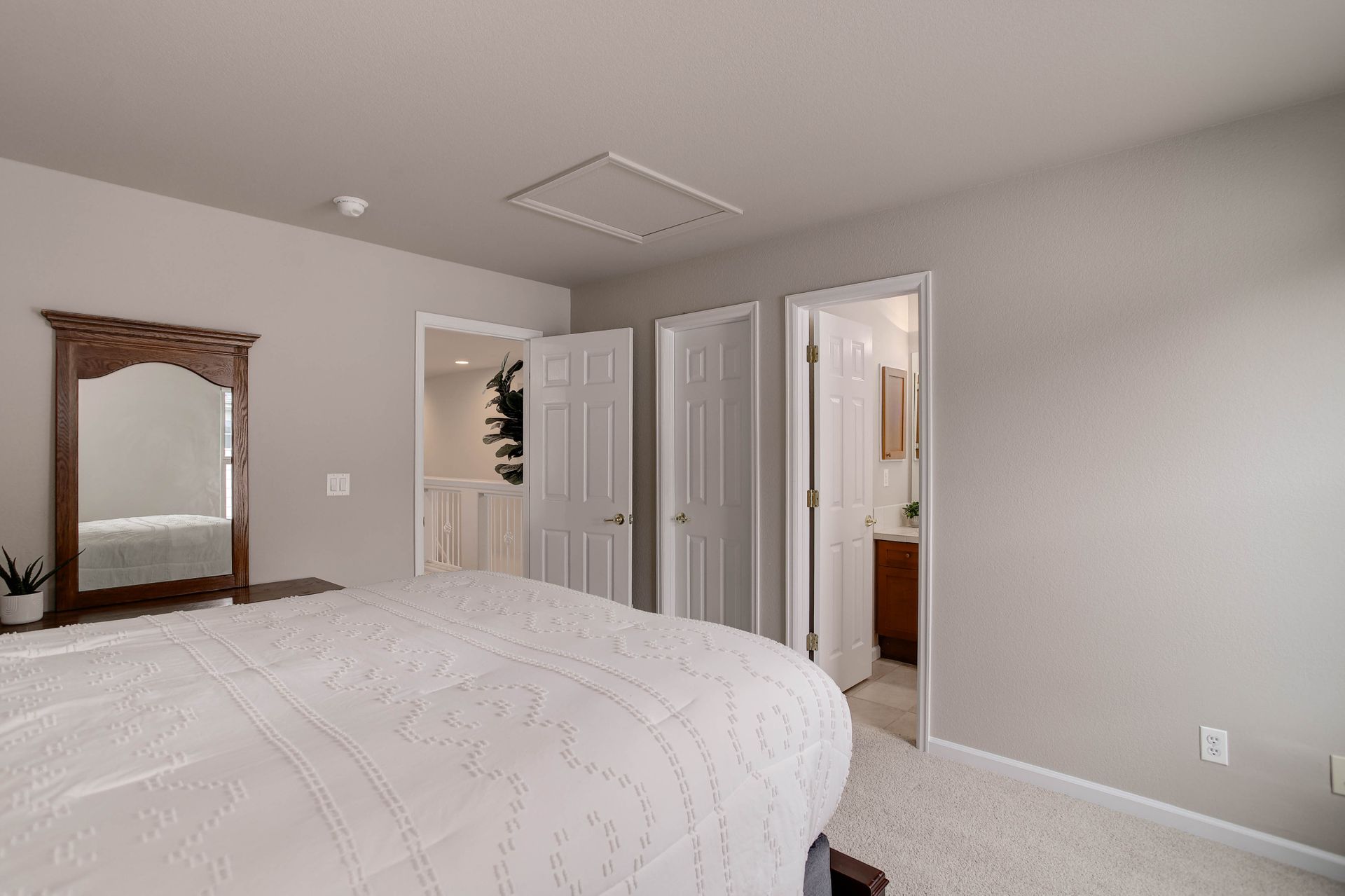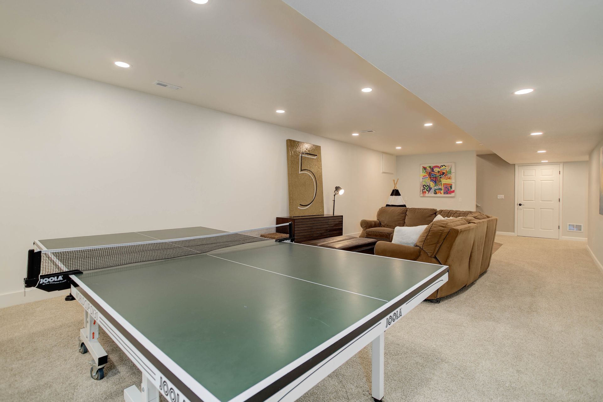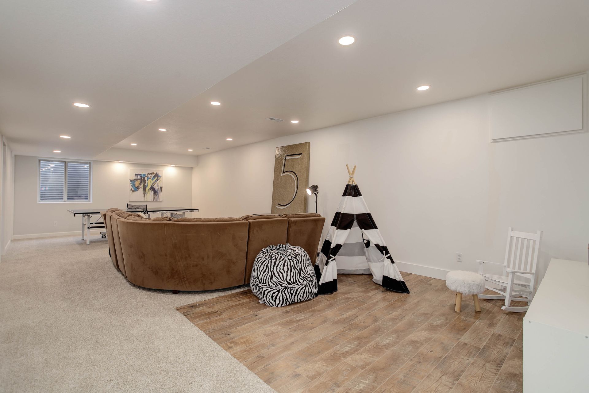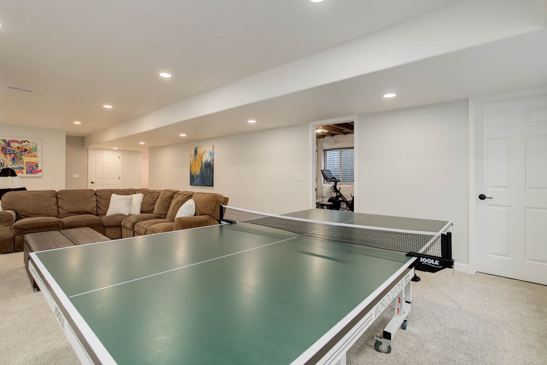 The spacious main-floor primary suite is a private sanctuary, complete with a spa-like en-suite bathroom, walk-in closet, and serene backyard views. Upstairs, a versatile loft area joins two additional bedrooms, each with its own full bathroom, great for guests. The finished basement adds even more flexibility, offering two additional bedrooms, a full bathroom, a bonus room great for a play area, or finish it as a basement bar area as well as an unfinished space shown as a home gym.